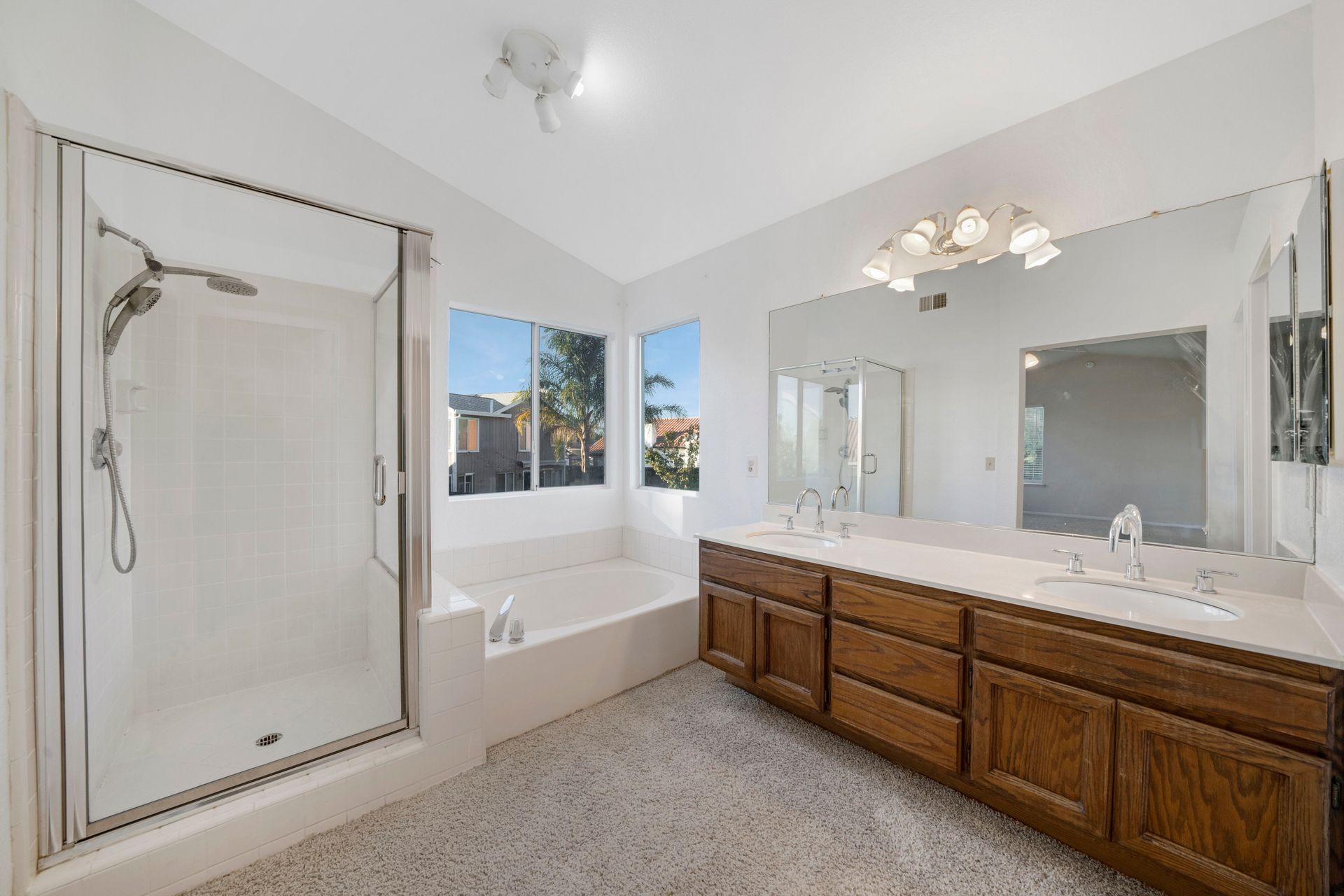 A convenient downstairs bedroom and full bathroom add flexibility, while the thoughtfully designed upstairs layout features a spacious primary suite, providing the ideal retreat. The primary bathroom boasts a large soaking tub, ideal for unwinding.