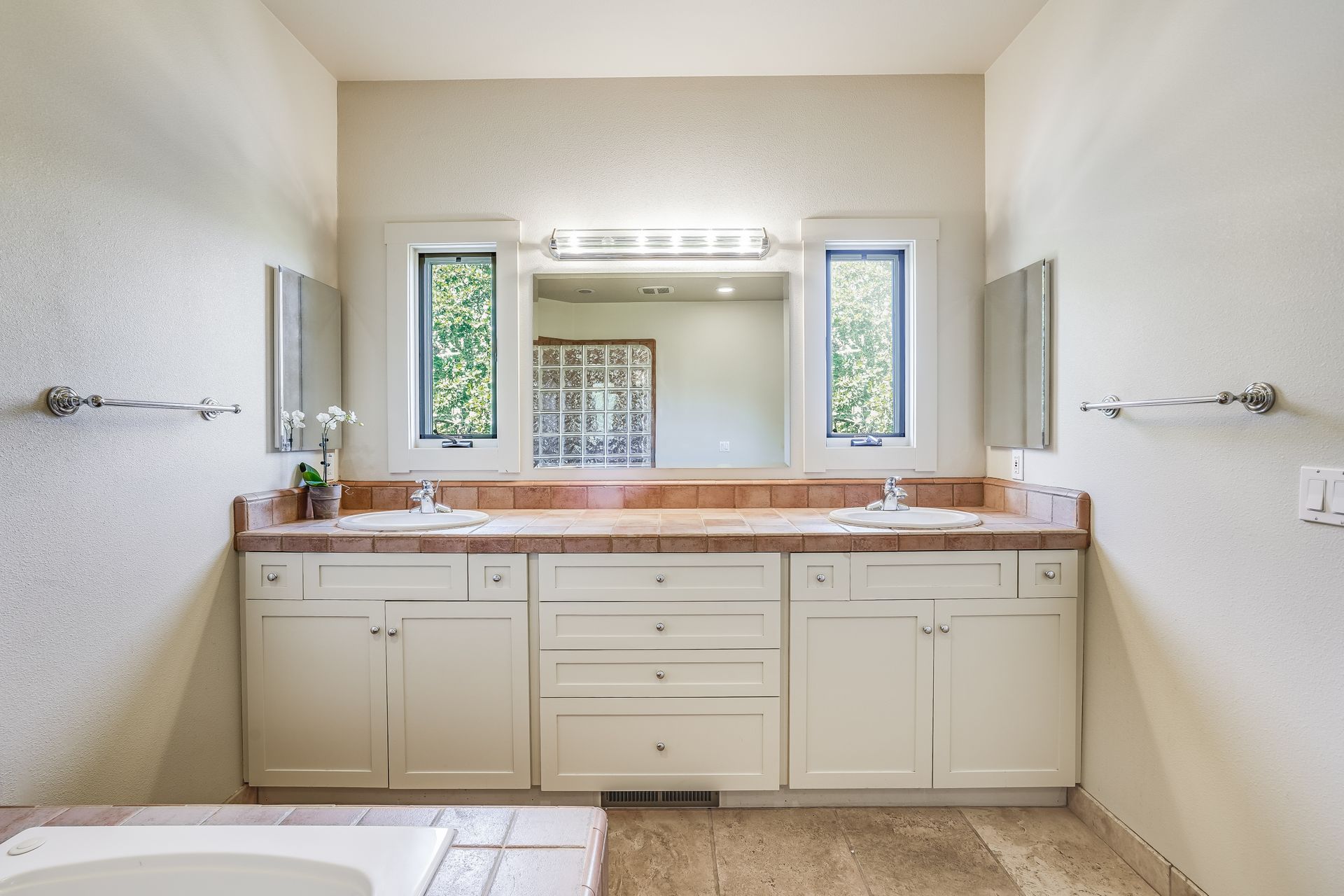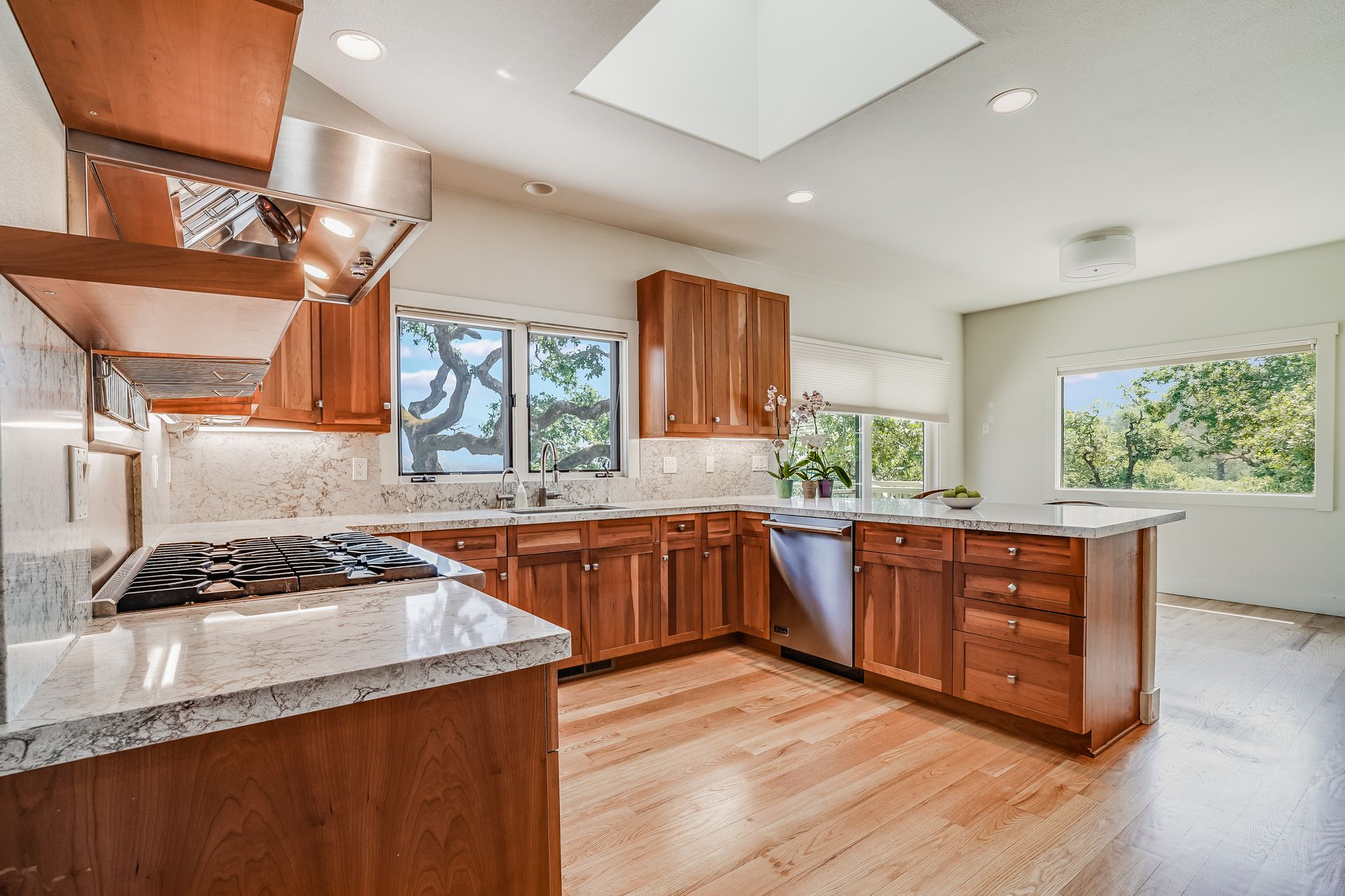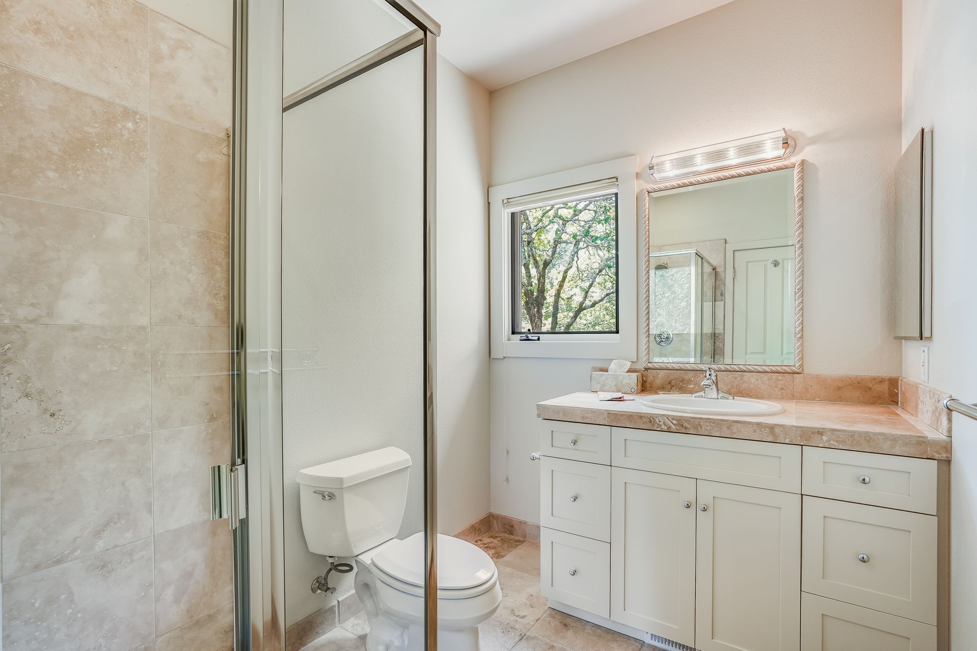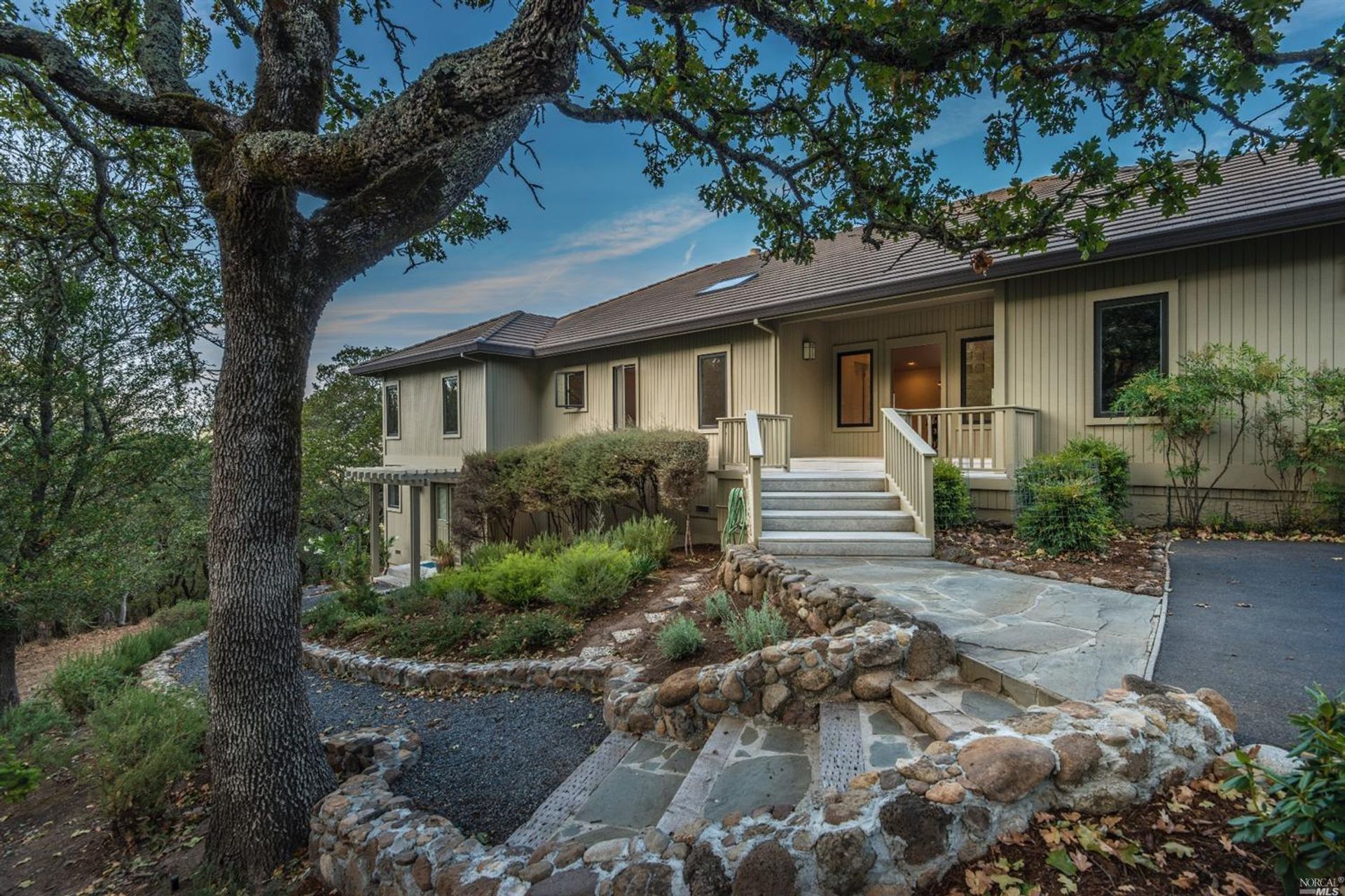 This custom designed single story home offers 4 Bedrooms, 4.5 bathrooms. Step into the large entry hall & spacious great room & be wowed by the spectacular views, gorgeous hardwood floors (throughout) & slider to deck running the width of the house. Remodeled kitchen has light stone counters, Subzero fridge, Viking range & Viking dishwasher, casual eating & slider to deck. Off the deck is fenced dog-run & pond. The three very spacious bedrooms on the main level each have ensuite bathrooms. Master has two cedar walled walk-in closets. The home has newer Tesla solar & battery so very low $ electric. The lower level has separate entrance & provides 4th BD & BA, great for guests or workout room, private home-office, school room, art studio, plus workshop area. A few steps away is fenced garden area w/ shed. This spectacular home has so much to offer & will please even the most discriminating buyer. All age-not Oakmont