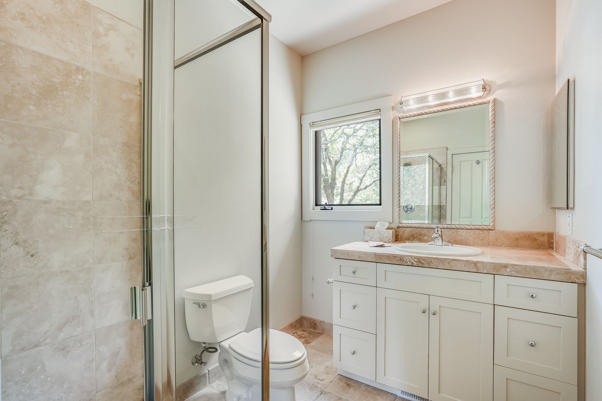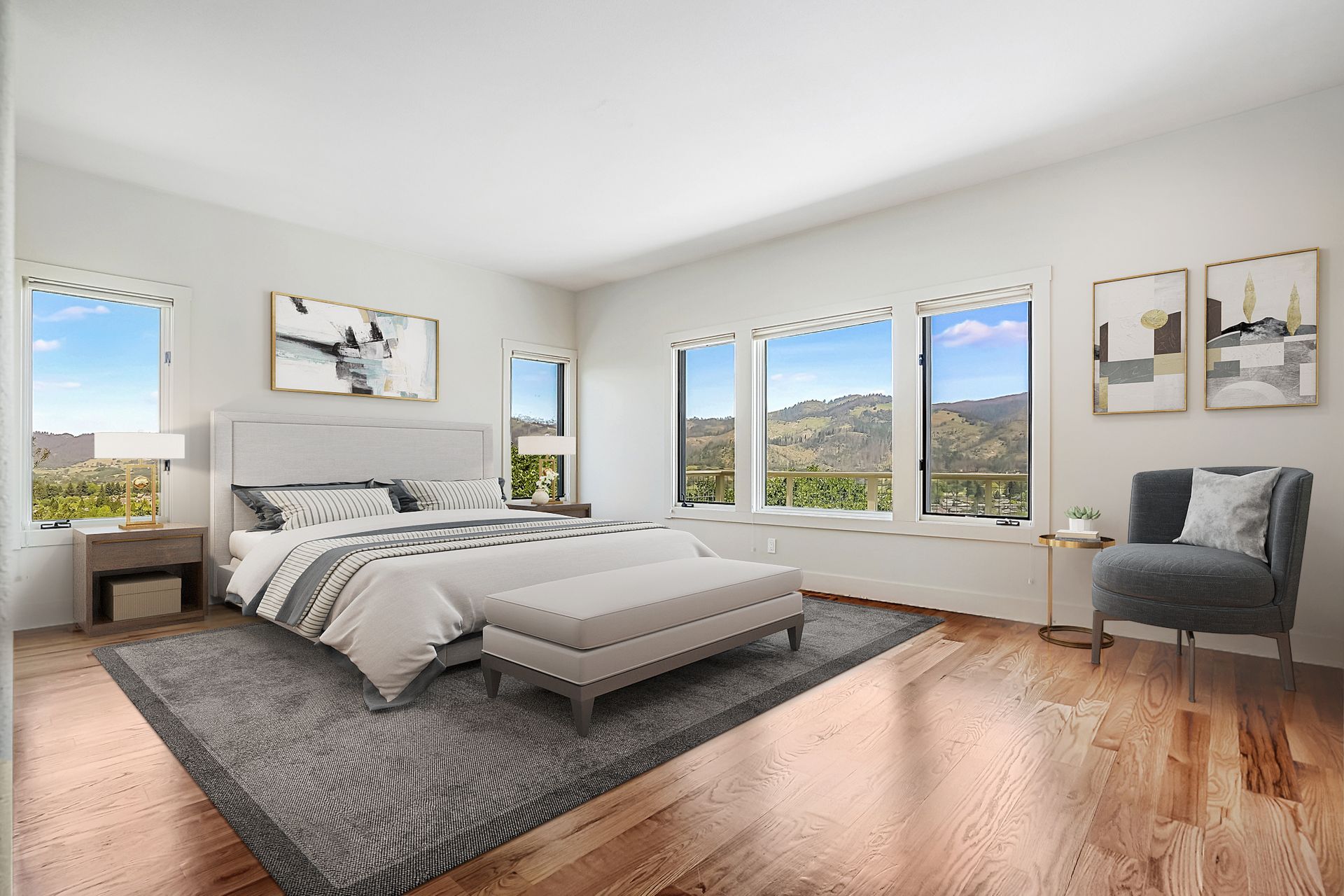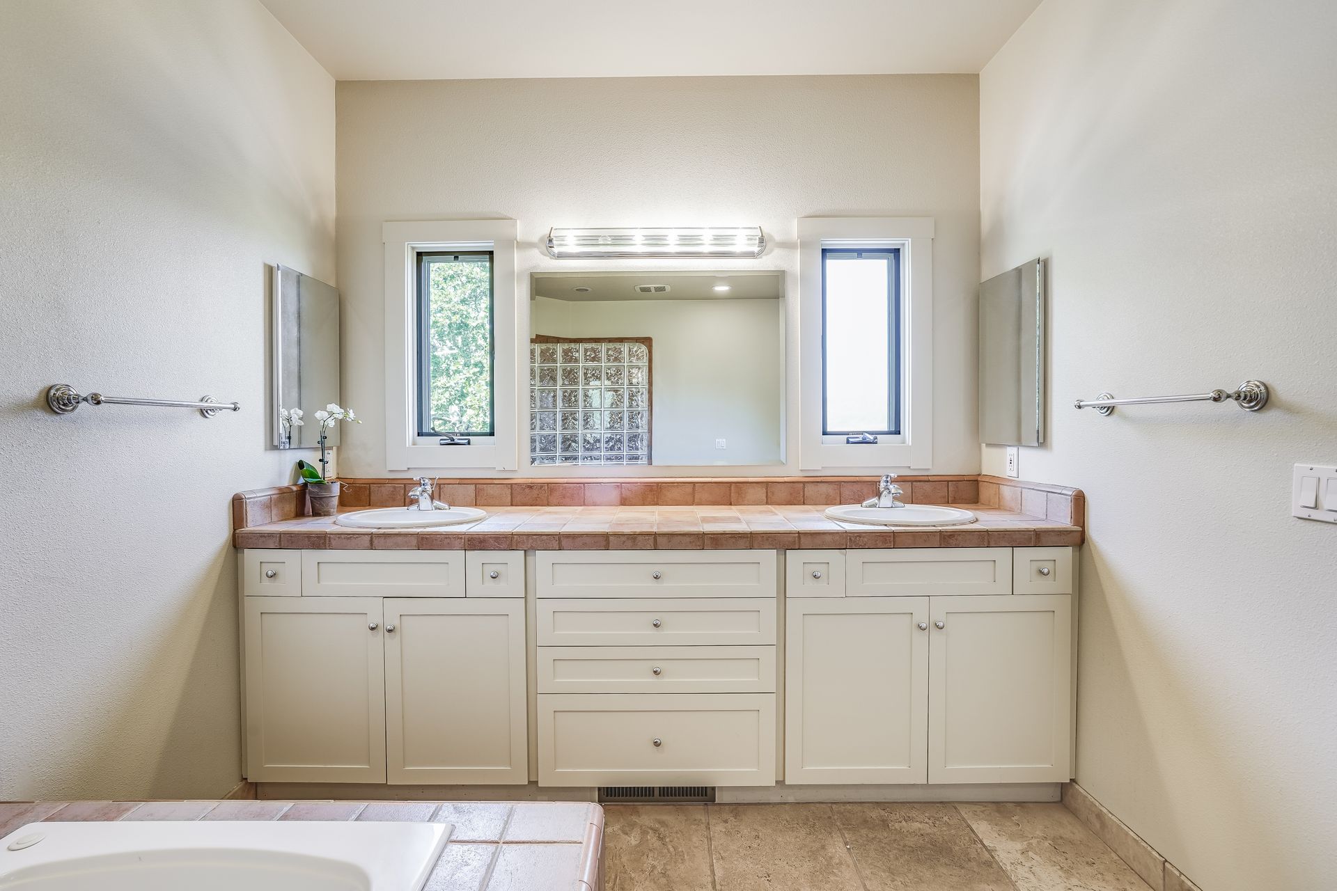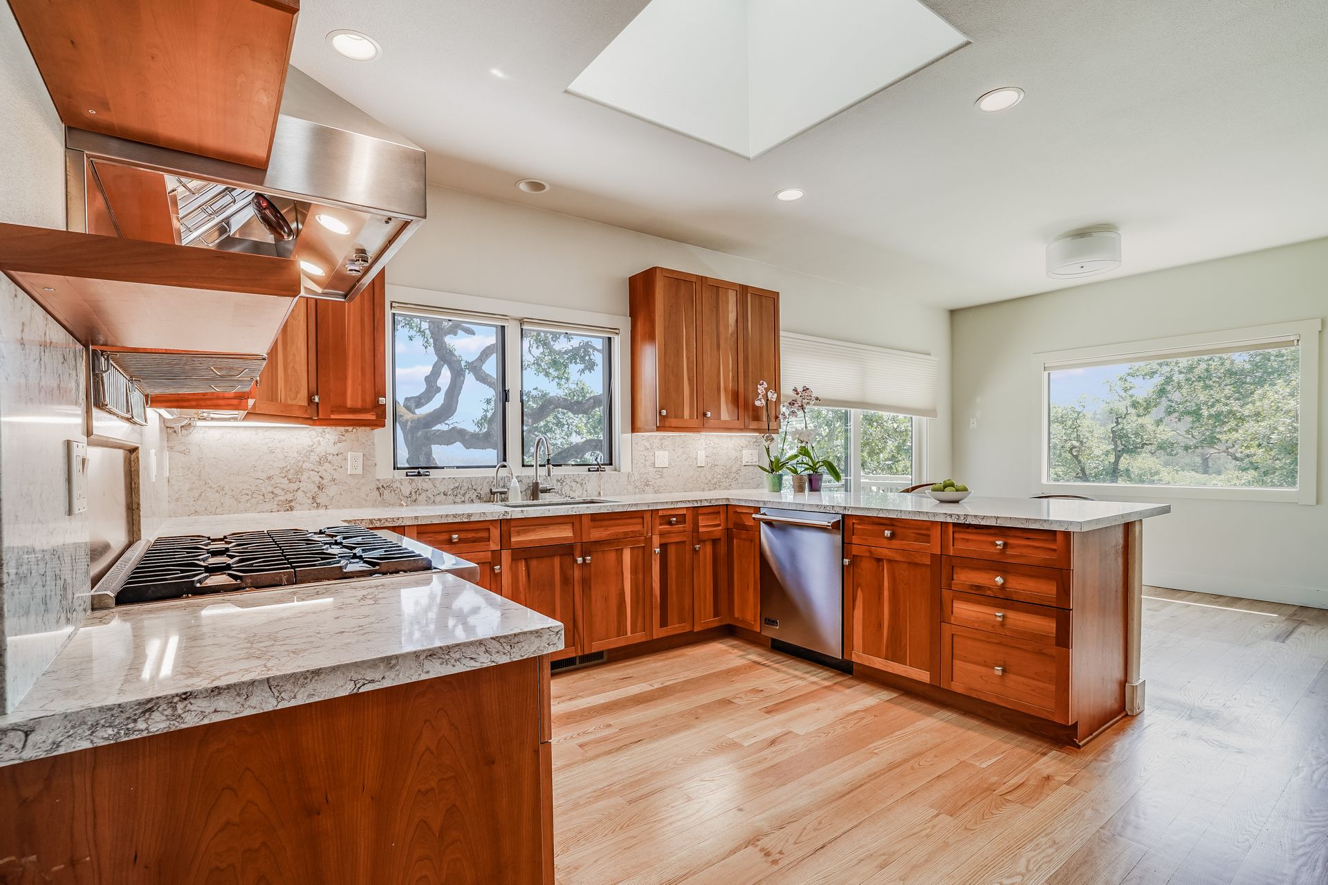 This custom designed single story home offers 4 Bedrooms, 4.5 bathrooms. Step into the large entry hall & spacious great room & be wowed by the spectacular views, gorgeous hardwood floors (throughout) & slider to deck running the width of the house. Remodeled kitchen has light stone counters, Subzero fridge, Viking range & Viking dishwasher, casual eating & slider to deck. Off the deck is fenced dog-run & pond. The three very spacious bedrooms on the main level each have ensuite bathrooms. Master has two cedar walled walk-in closets. The home has newer Tesla solar & battery so very low $ electric. The lower level has separate entrance & provides 4th BD & BA, great for guests or workout room, private home-office, school room, art studio, plus workshop area. A few steps away is fenced garden area w/ shed. This spectacular home has so much to offer & will please even the most discriminating buyer. All age-not Oakmont
