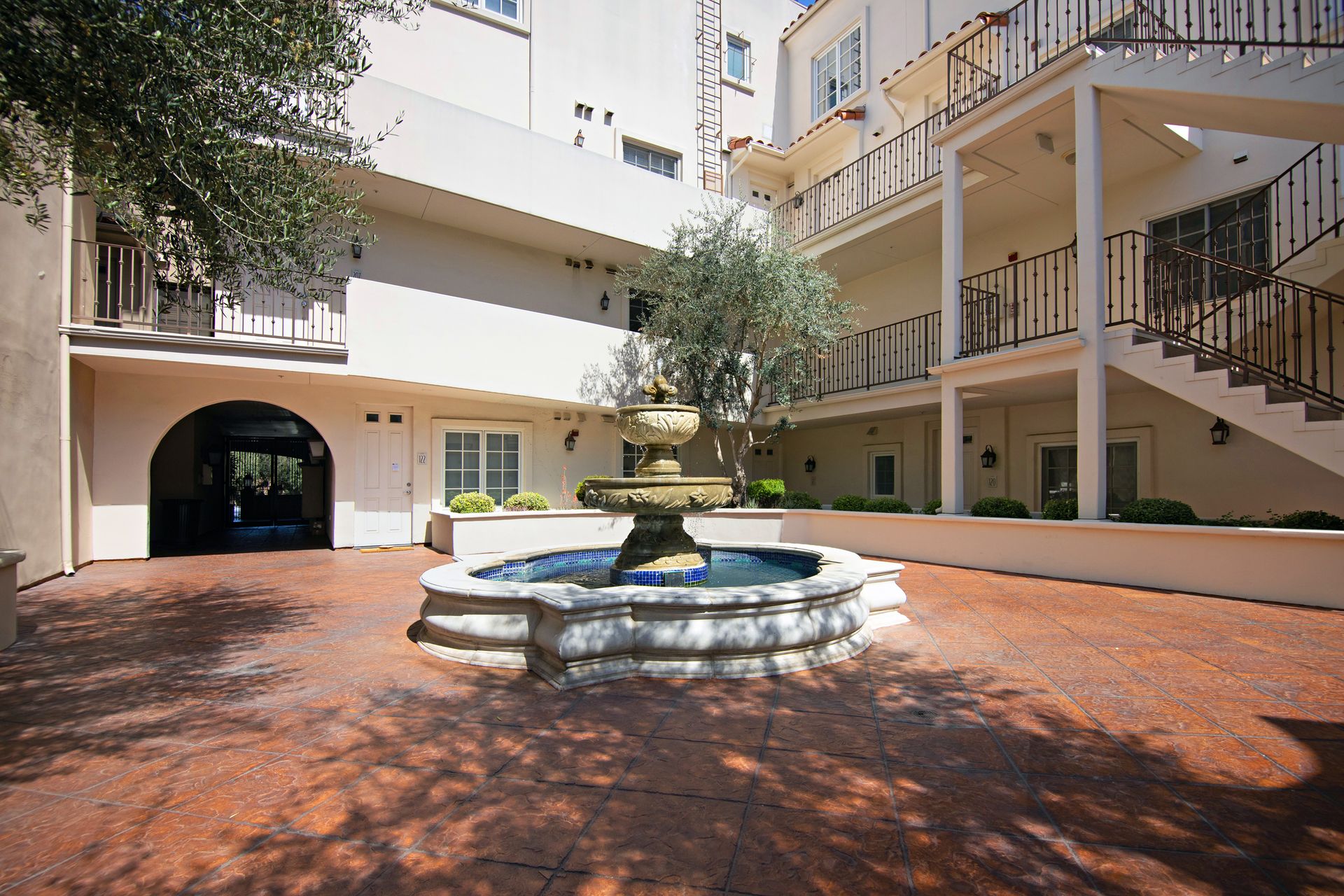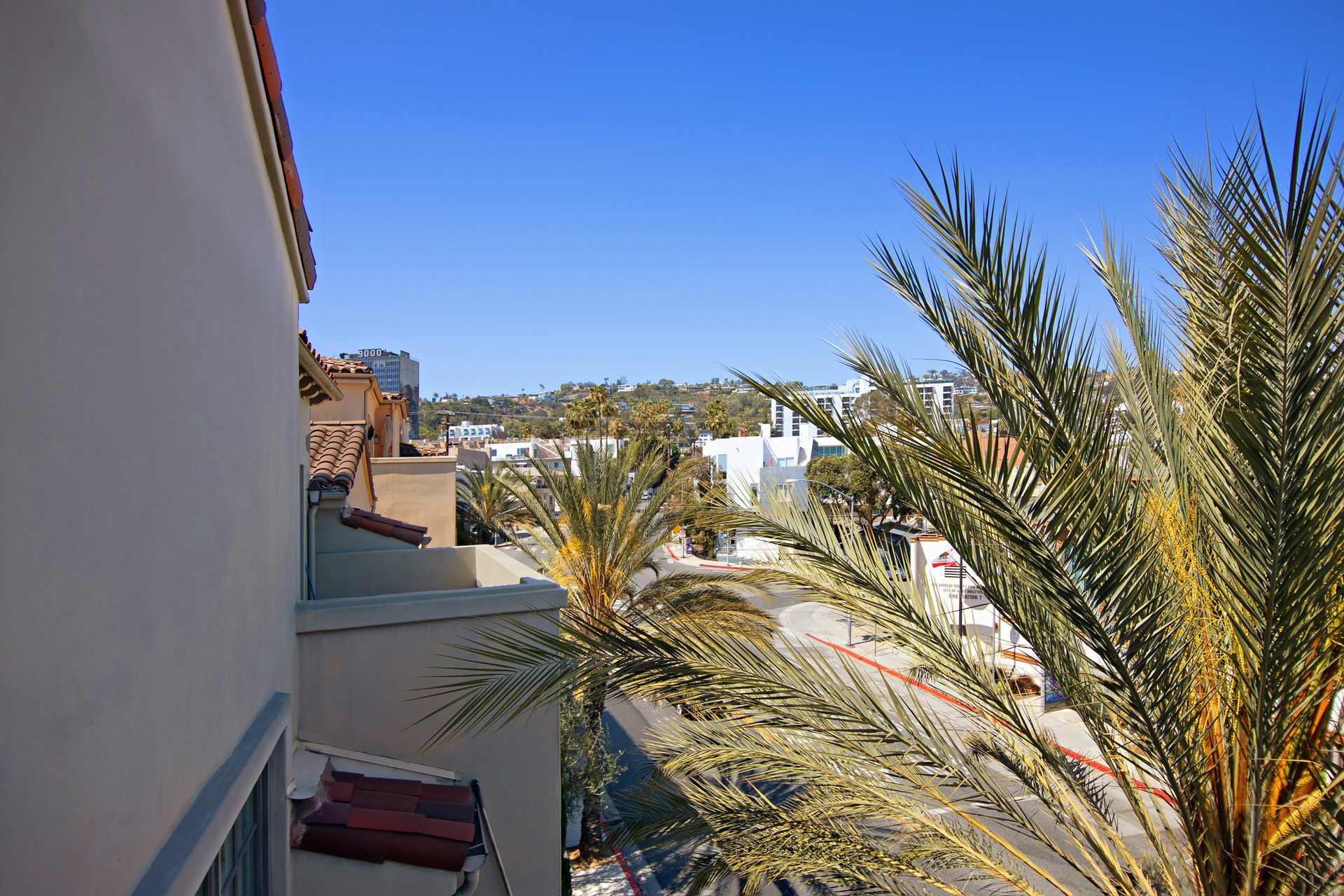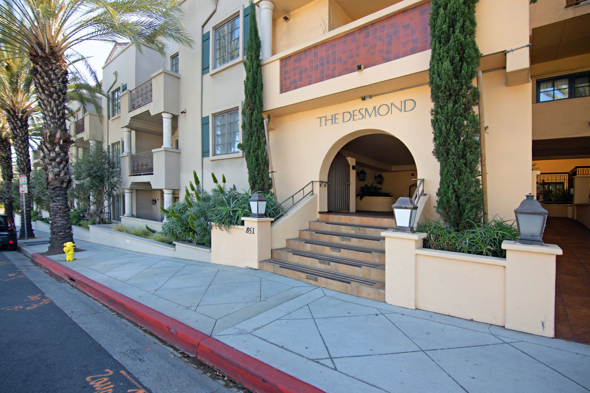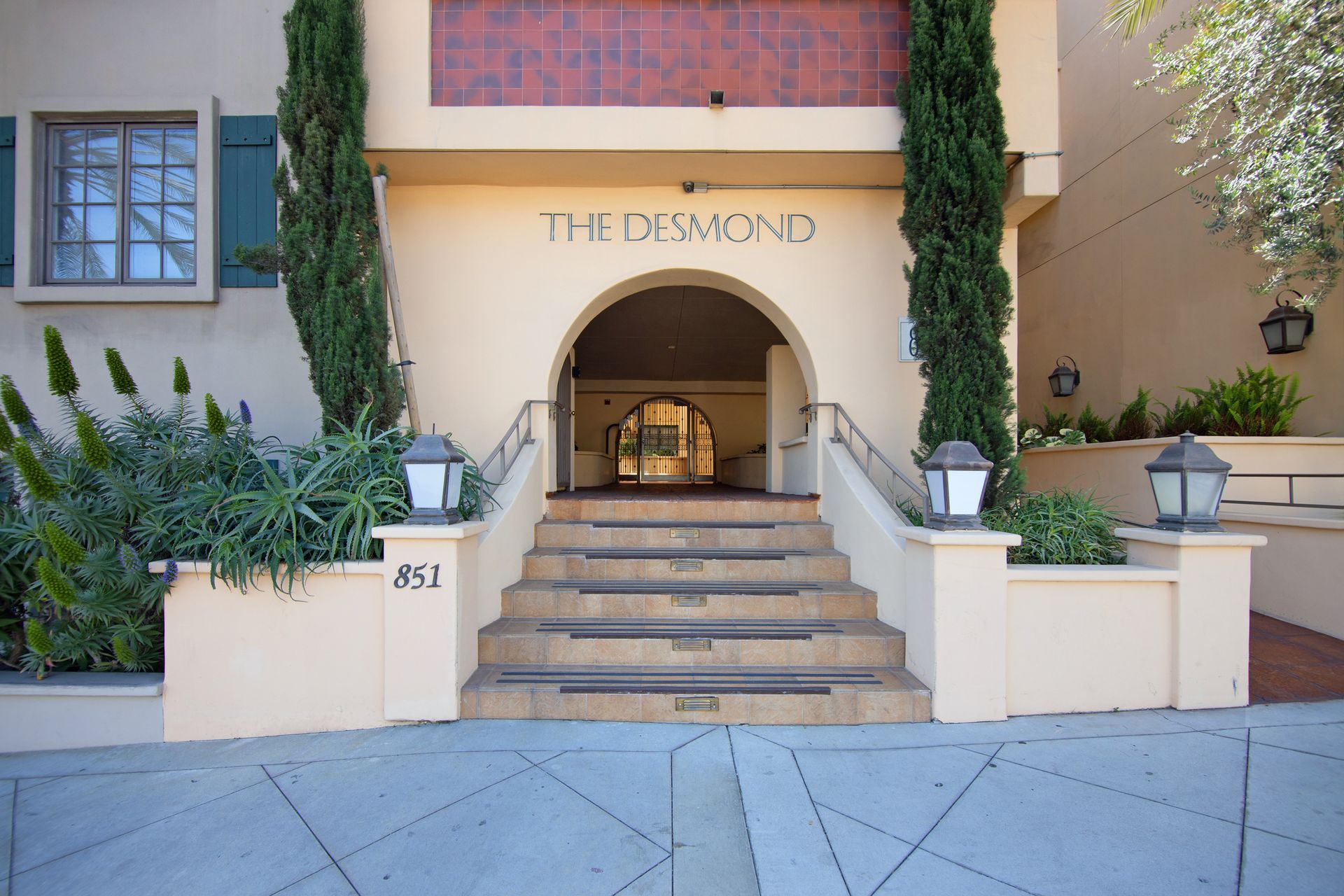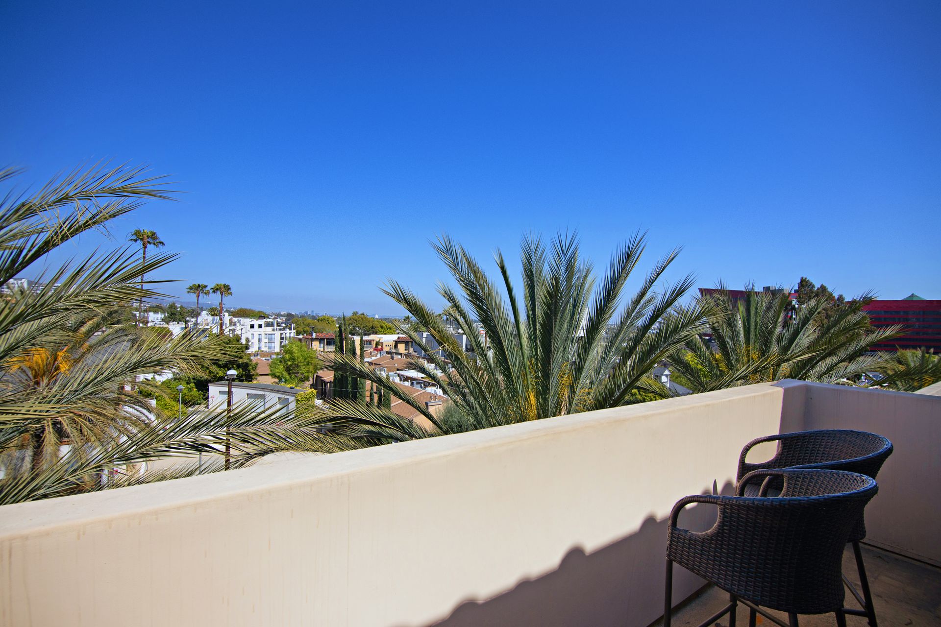 Located on the Penthouse level of one of West Hollywood's finest buildings, The Desmond shares its place along the truly special San Vicente corridor, with its famed design center, stunning library and world-renowned medical facilities - all just a stone's throw from the finest eateries and shops! Tranquil fountains and lush foliage at courtyard level are a precursor to a dramatic 2-story floor plan which boast high ceilings and an abundance of natural light. Dining and Living area with fireplace open to a spacious balcony - perfect for entertaining or just soaking in the breeze. Chef's kitchen with stainless appliances + guest bedroom and bathroom round out the lower level. A completely separate master bedroom on the upper level has an additional balcony with views of the Sunset Strip stretching to the Downtown Skyline. Inside laundry and two gated and secured parking spaces complete a near perfect package!