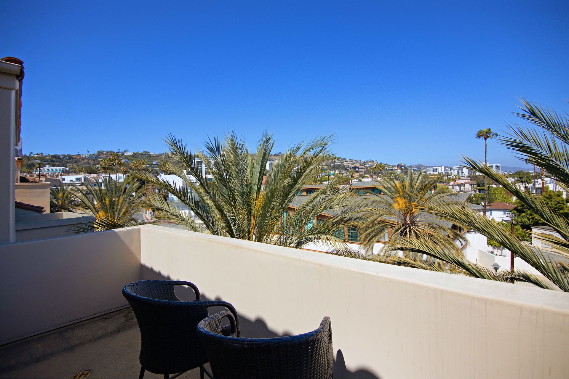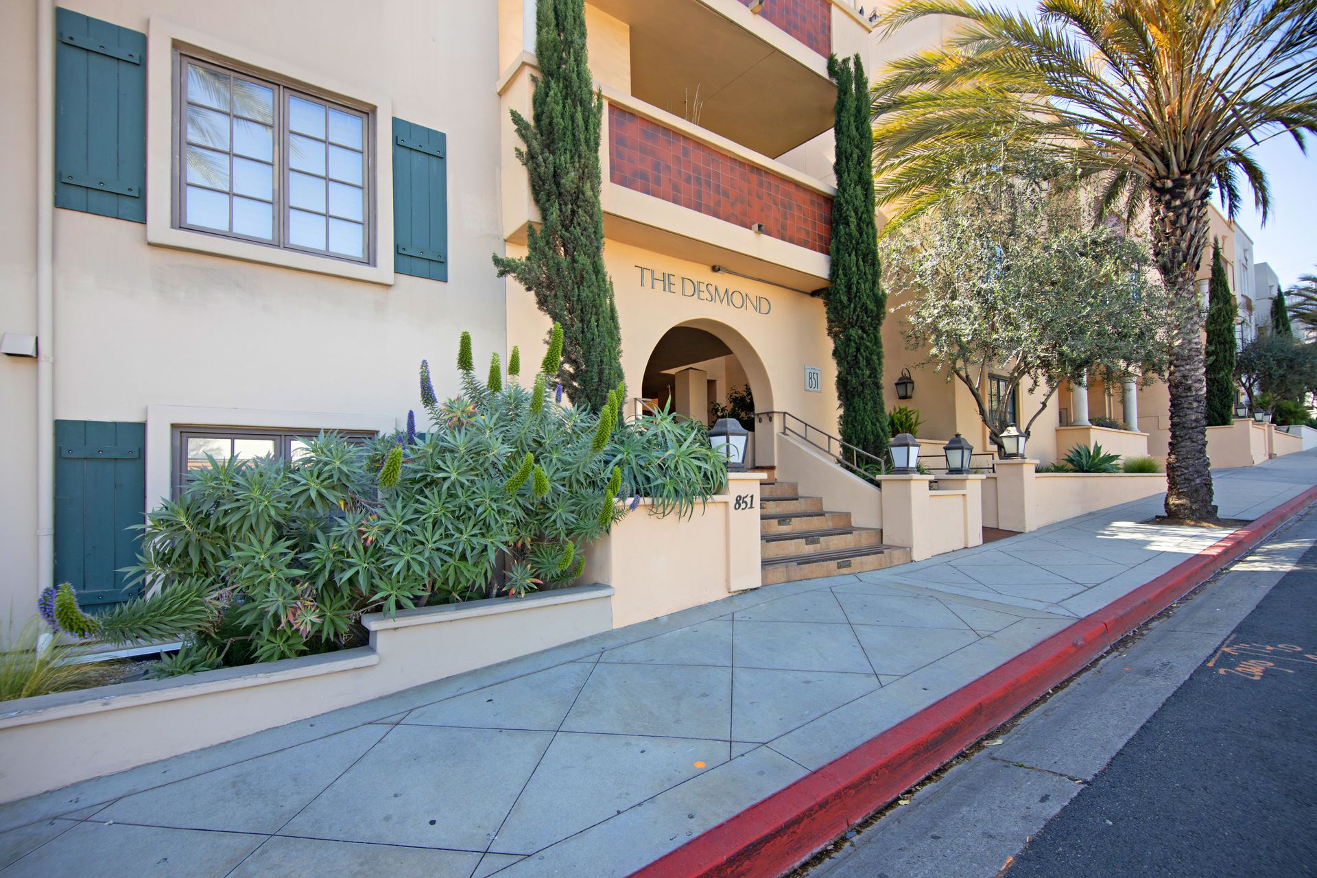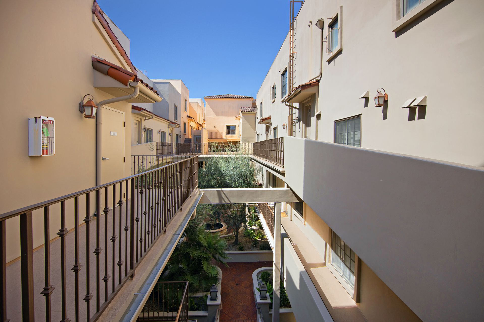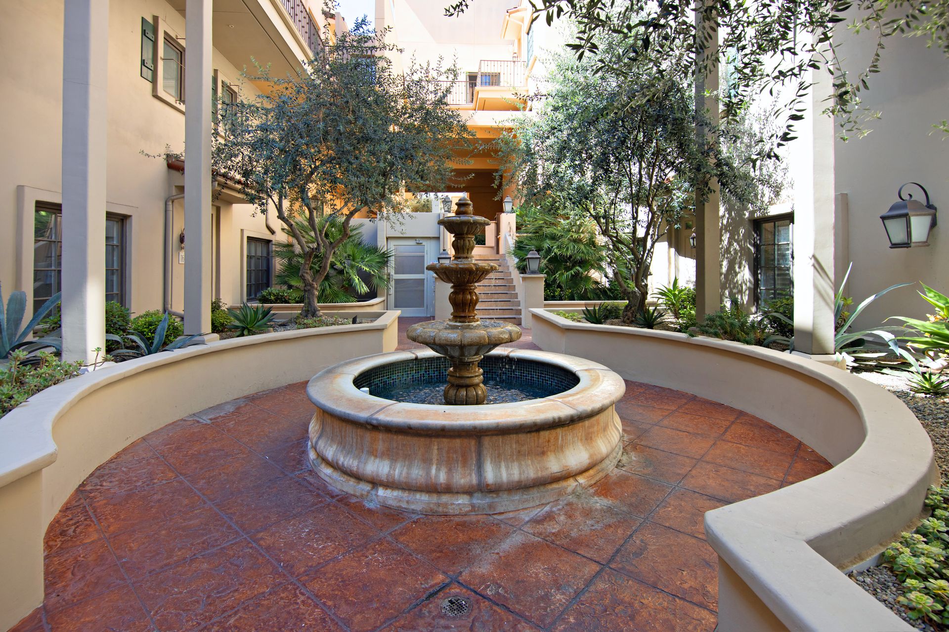 Located on the Penthouse level of one of West Hollywood's finest buildings, The Desmond shares its place along the truly special San Vicente corridor, with its famed design center, stunning library and world-renowned medical facilities - all just a stone's throw from the finest eateries and shops! Tranquil fountains and lush foliage at courtyard level are a precursor to a dramatic 2-story floor plan which boast high ceilings and an abundance of natural light. Dining and Living area with fireplace open to a spacious balcony - perfect for entertaining or just soaking in the breeze. Chef's kitchen with stainless appliances + guest bedroom and bathroom round out the lower level. A completely separate master bedroom on the upper level has an additional balcony with views of the Sunset Strip stretching to the Downtown Skyline. Inside laundry and two gated and secured parking spaces complete a near perfect package!