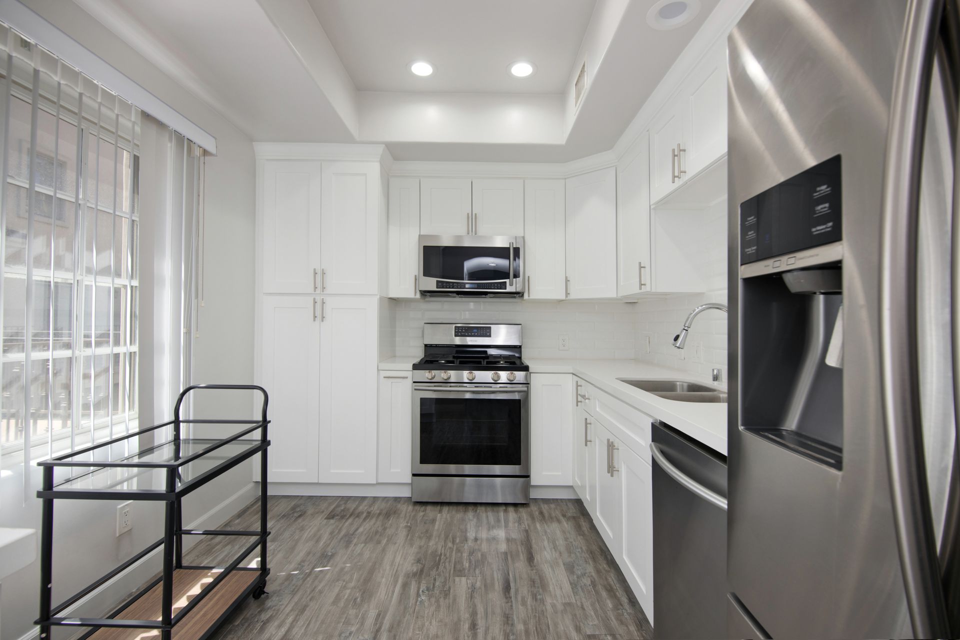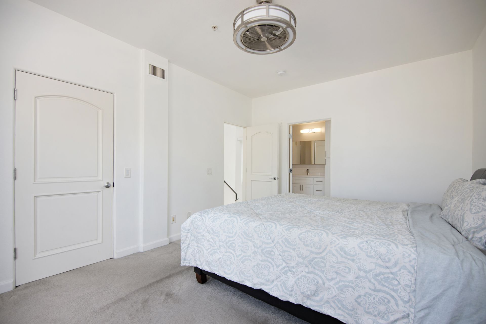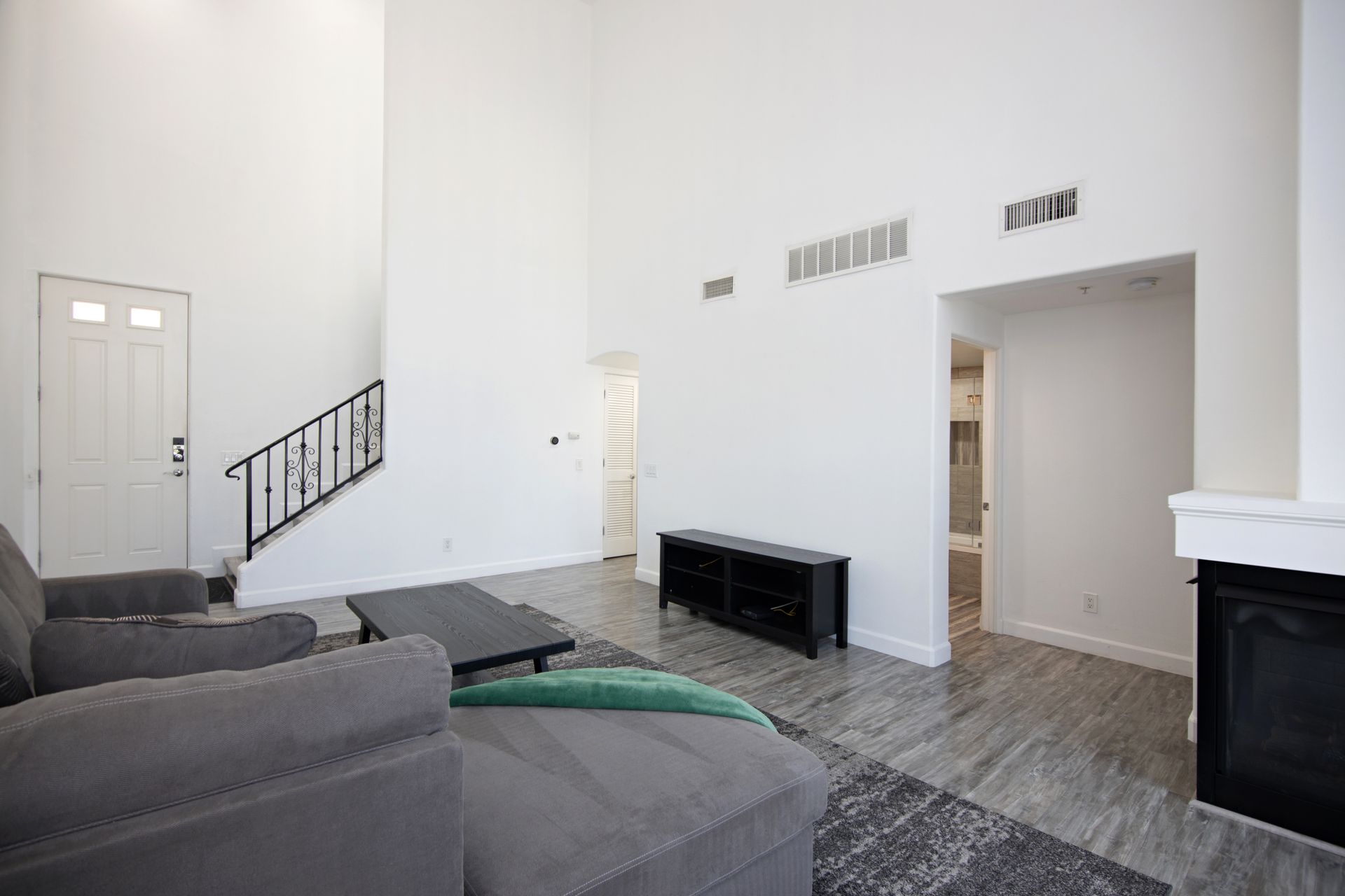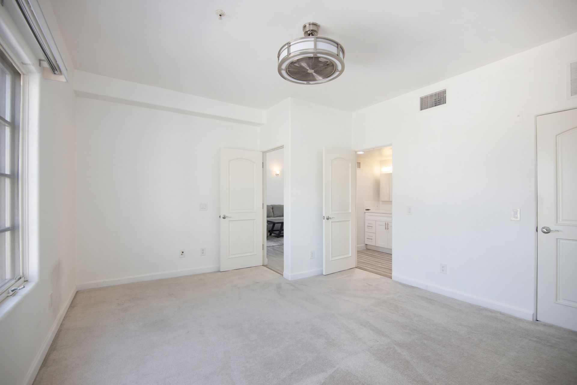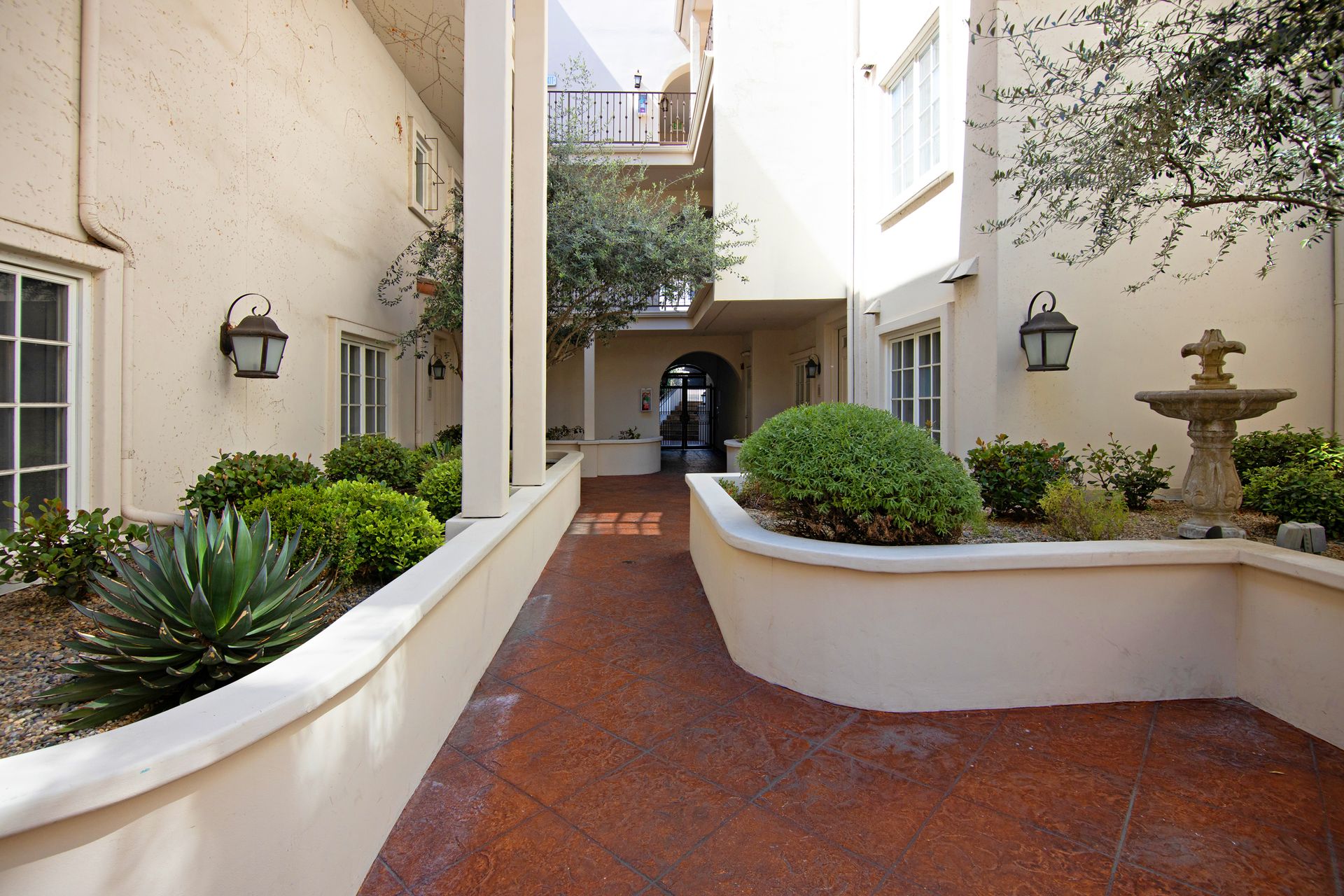 Located on the Penthouse level of one of West Hollywood's finest buildings, The Desmond shares its place along the truly special San Vicente corridor, with its famed design center, stunning library and world-renowned medical facilities - all just a stone's throw from the finest eateries and shops! Tranquil fountains and lush foliage at courtyard level are a precursor to a dramatic 2-story floor plan which boast high ceilings and an abundance of natural light. Dining and Living area with fireplace open to a spacious balcony - perfect for entertaining or just soaking in the breeze. Chef's kitchen with stainless appliances + guest bedroom and bathroom round out the lower level. A completely separate master bedroom on the upper level has an additional balcony with views of the Sunset Strip stretching to the Downtown Skyline. Inside laundry and two gated and secured parking spaces complete a near perfect package!