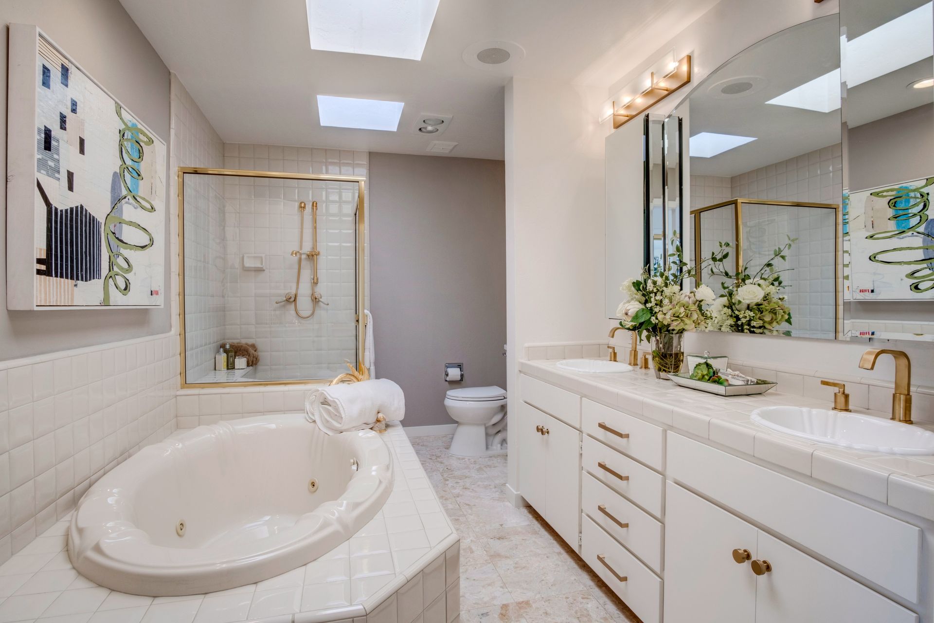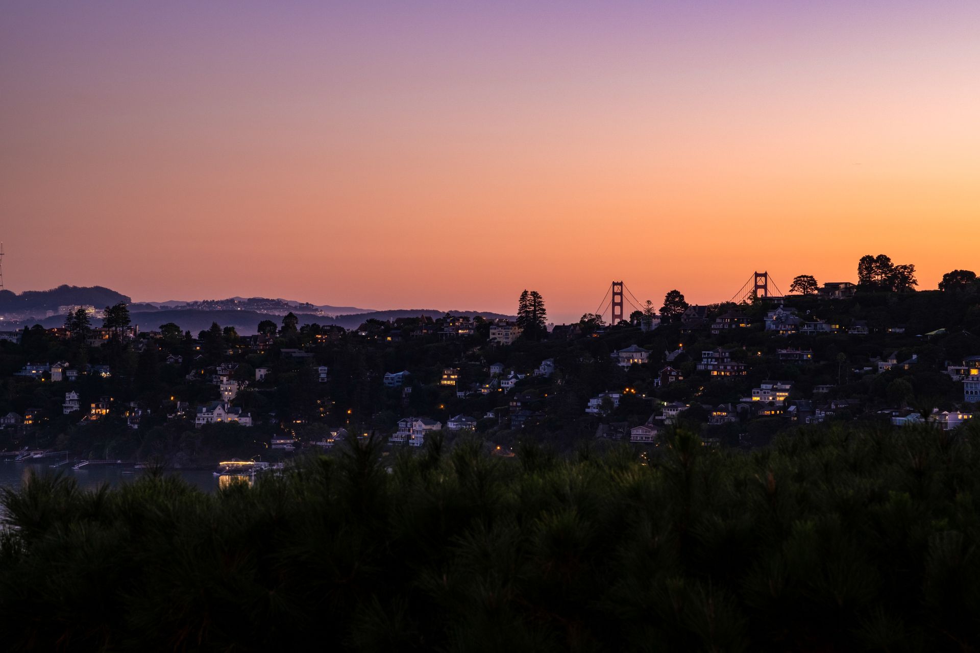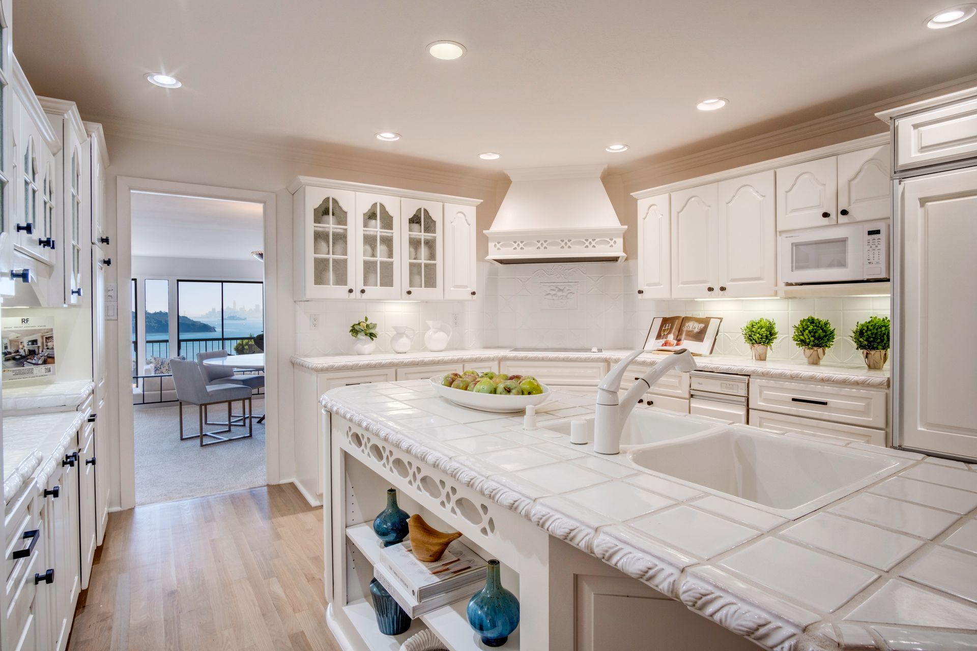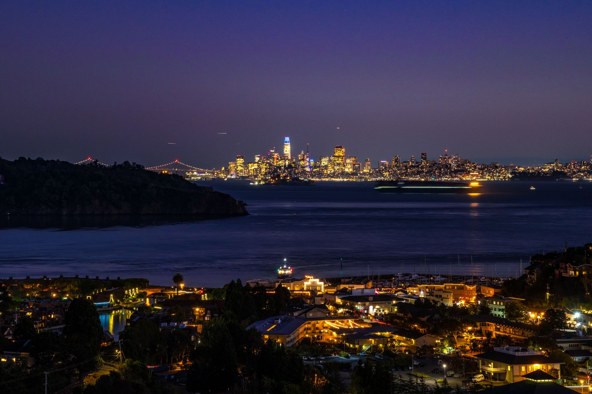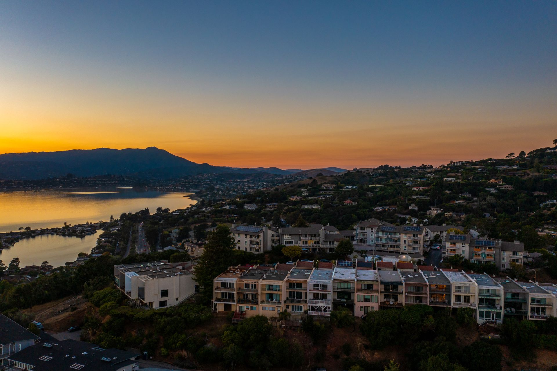 86 Red Hill Circle offers sweeping panoramic views that wrap around from Angel Island to the Golden Gate Bridge, SF & the Bay, to Belvedere Lagoon. This beautifully updated, southwest-facing 3 bedroom, 2.5 bathroom home is light-filled throughout the day. Sliding glass doors lead to the deck, perfect for indoor/outdoor flow. The open-concept design ensures unobstructed views of the Bay from the dining and living areas, making it a perfect space for entertaining. The large kitchen is great for cooking & socializing. The top floor has three bedrooms, two baths, and a laundry area all filled with natural light from the skylights. The spacious primary bedroom offers breathtaking views and a private balcony, inviting you to step out and enjoy the vistas, Bay & cityscape. The home features a two-car garage with space for SUPs, bikes, and more. Enjoy Tiburon's superb climate on the decks and expansive central courtyard. Savor vacation-like sunsets every day!