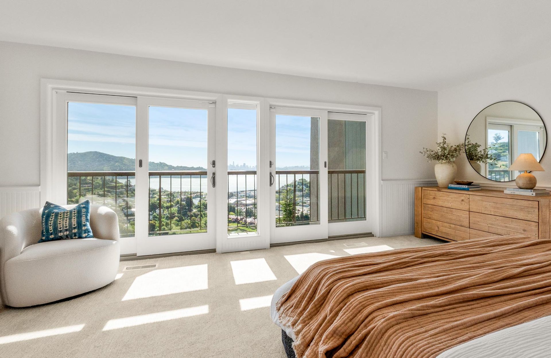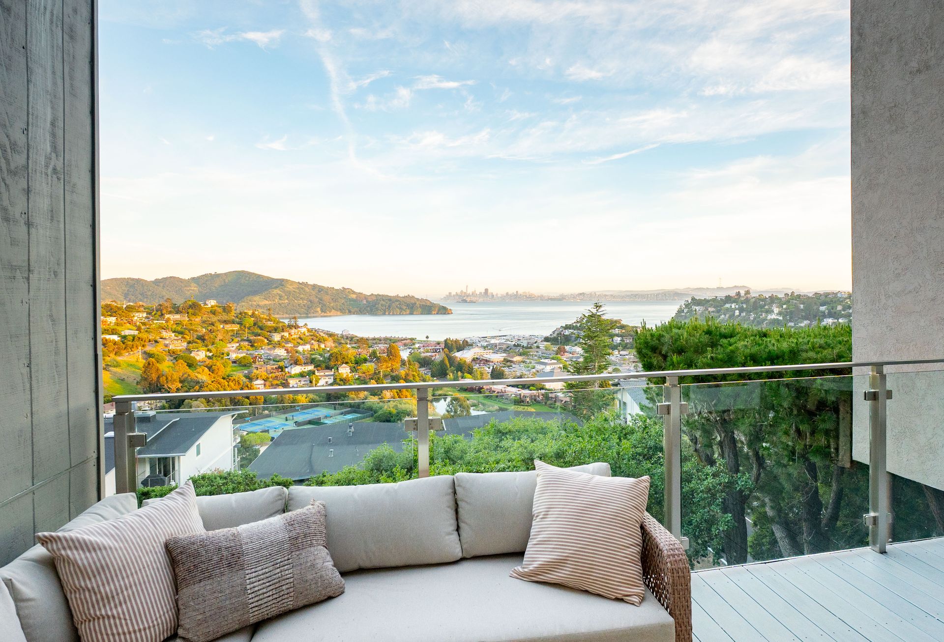 Perched above the Bay in one of Tiburon’s sought-after neighborhoods, 86 Redhill Circle offers sweeping, unobstructed bridge to bridge views of the San Francisco skyline, a backdrop that never quite gets old. Oriented to the south, the home is bright throughout the day, with light that moves through the rooms from morning to evening.