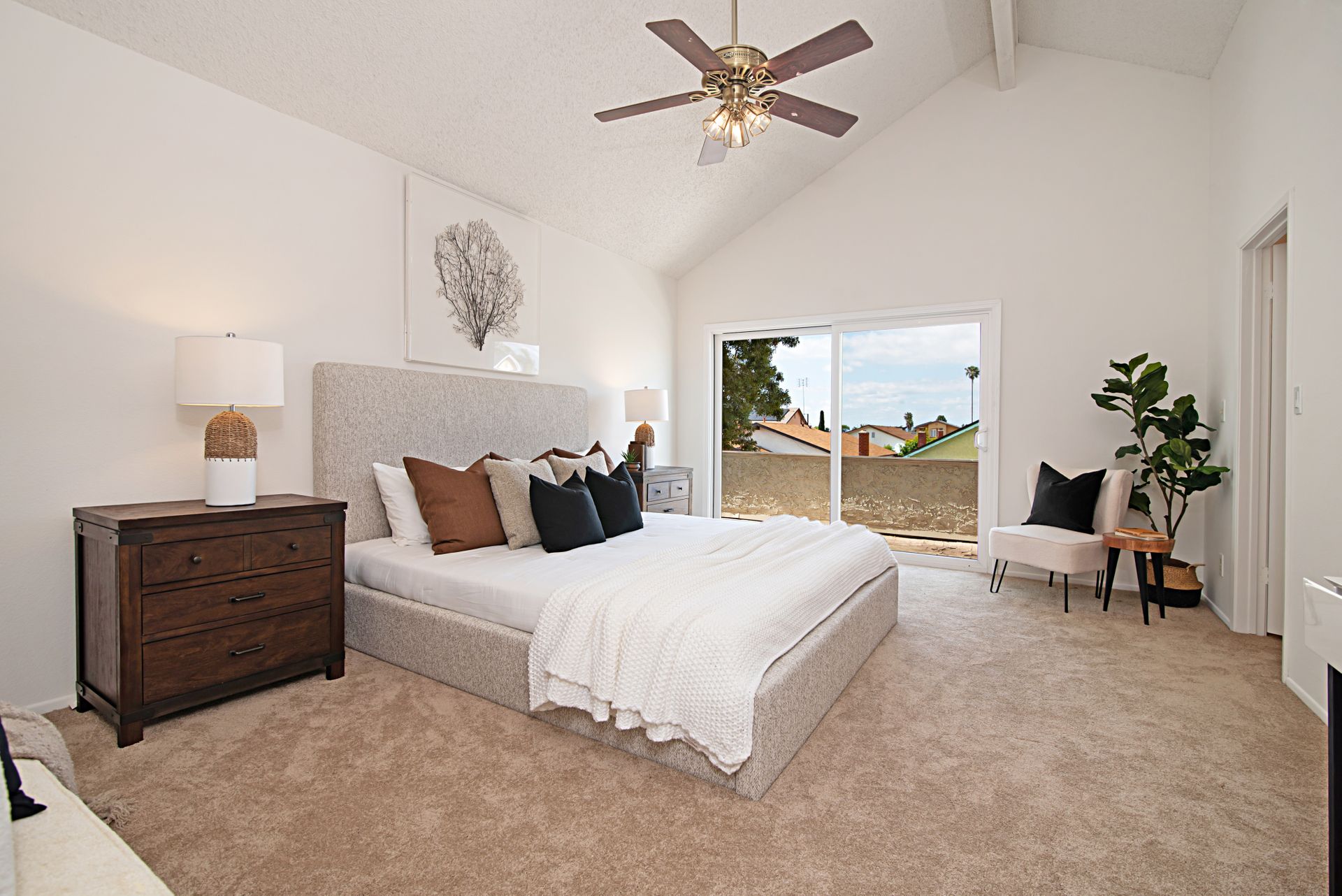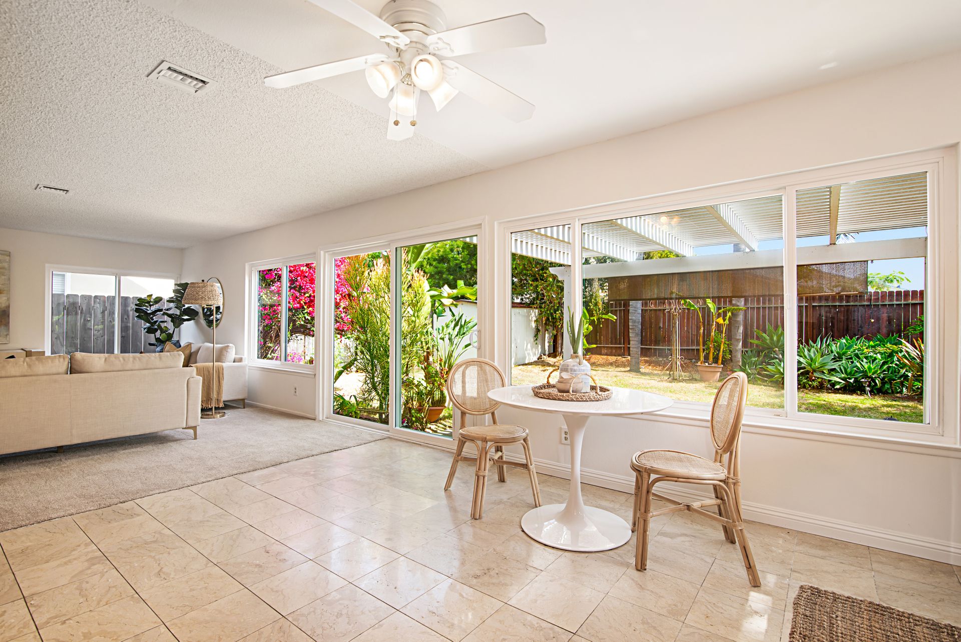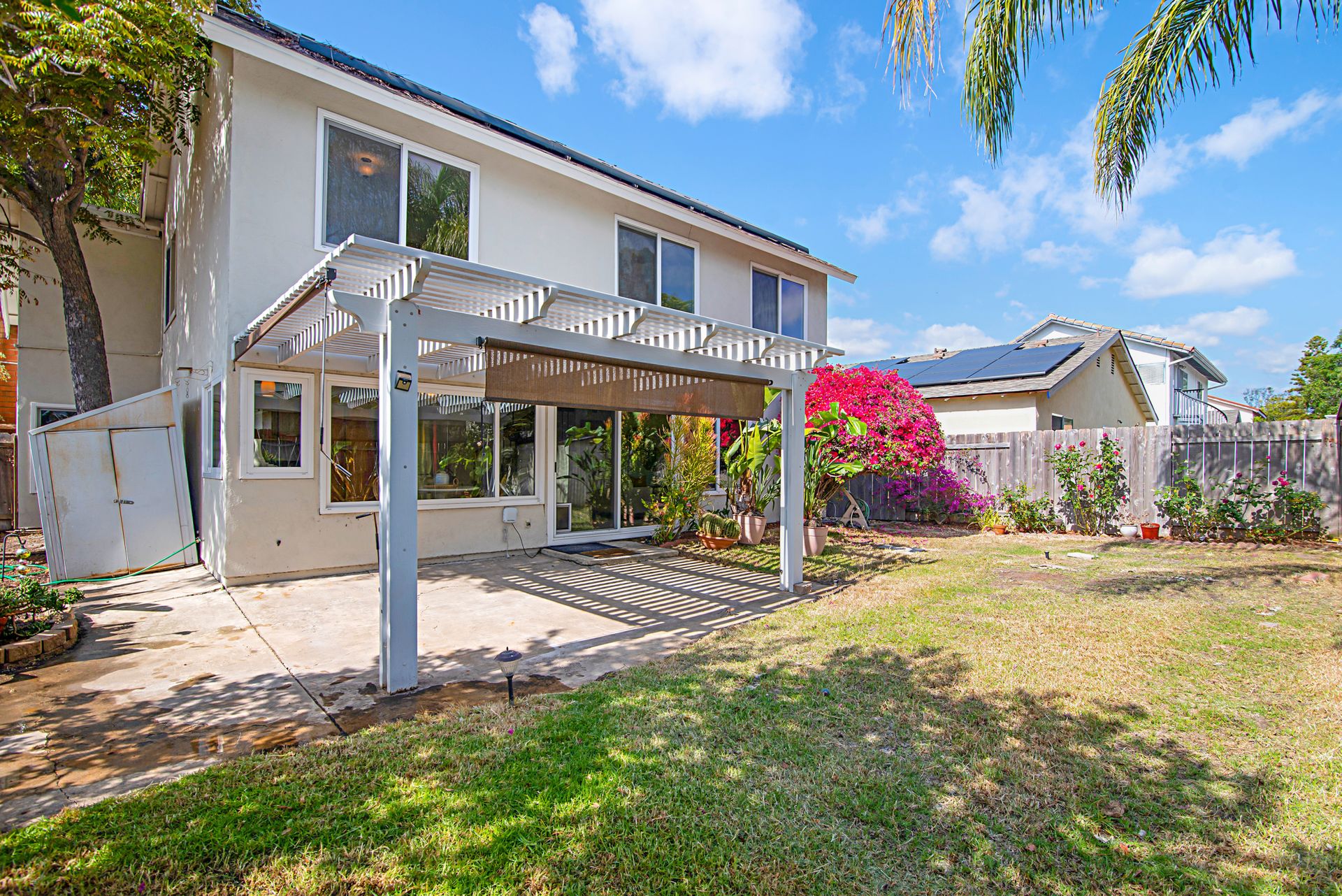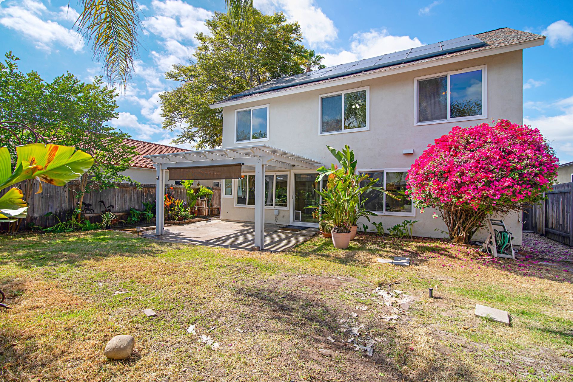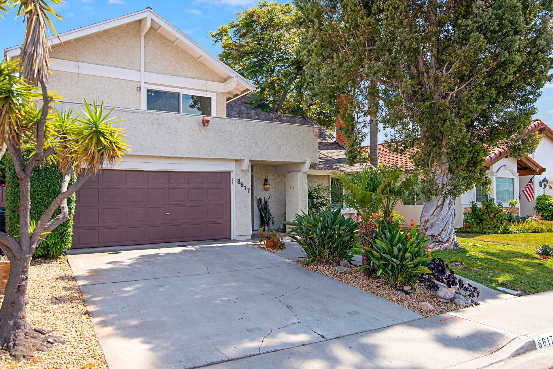 Highly desired Mira Mesa home including four bedrooms plus a loft and two and one-half baths is ready for new homeowners! The interior is freshly painted with new carpet throughout. As you enter you will find vaulted ceilings, a formal living room, a dining room and a fireplace. The kitchen is open to a bright family room with sliding glass door access to an amazing tropical backyard and patio. You will also find a newer stainless-steel refrigerator, a six-burner gas stove, along with washer/dryer that convey. The large primary suite includes vaulted ceiling, an ensuite bath and sliding glass door access to a balcony. You will love this home! The home has solar and water softener system. The community pool is located nearby.