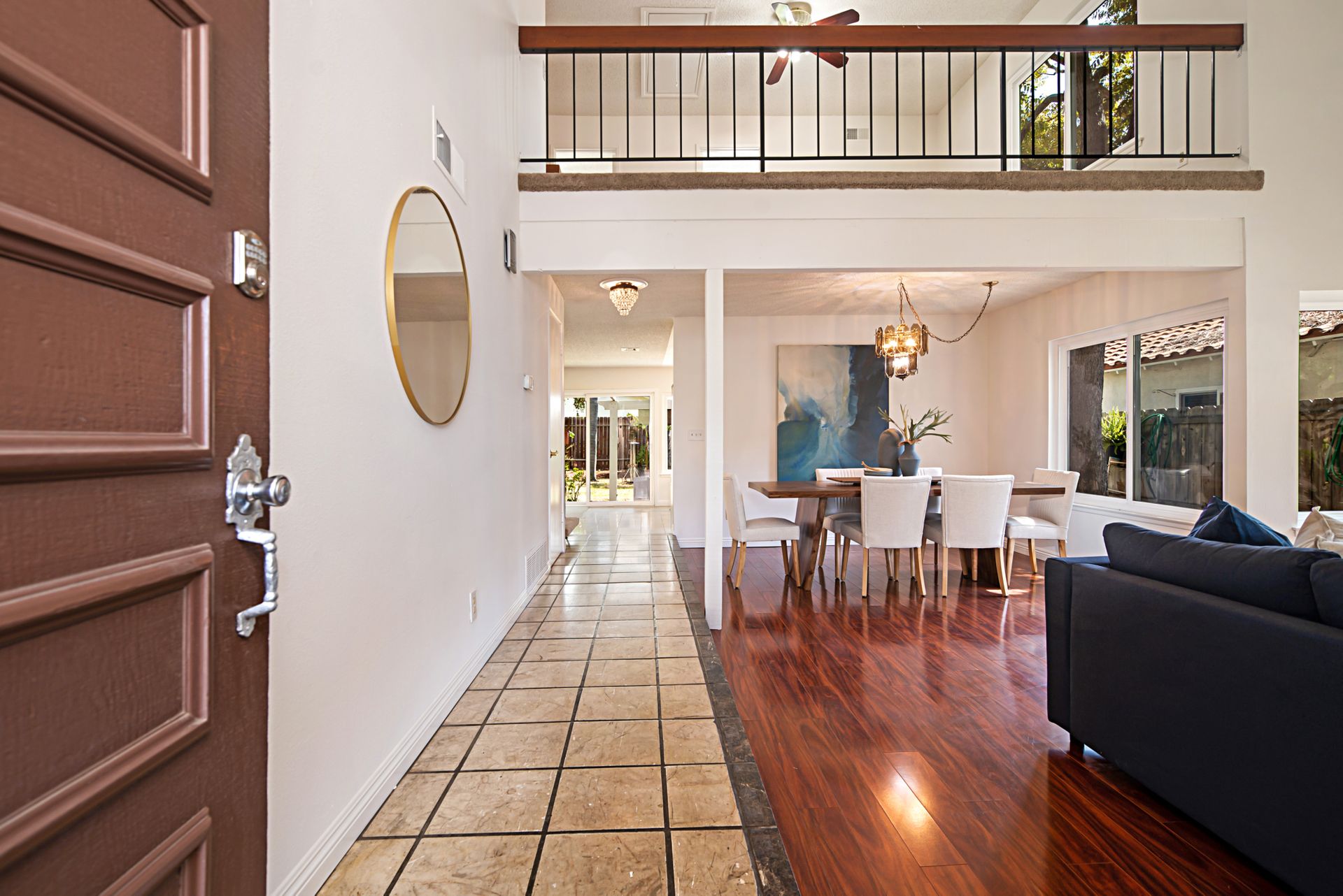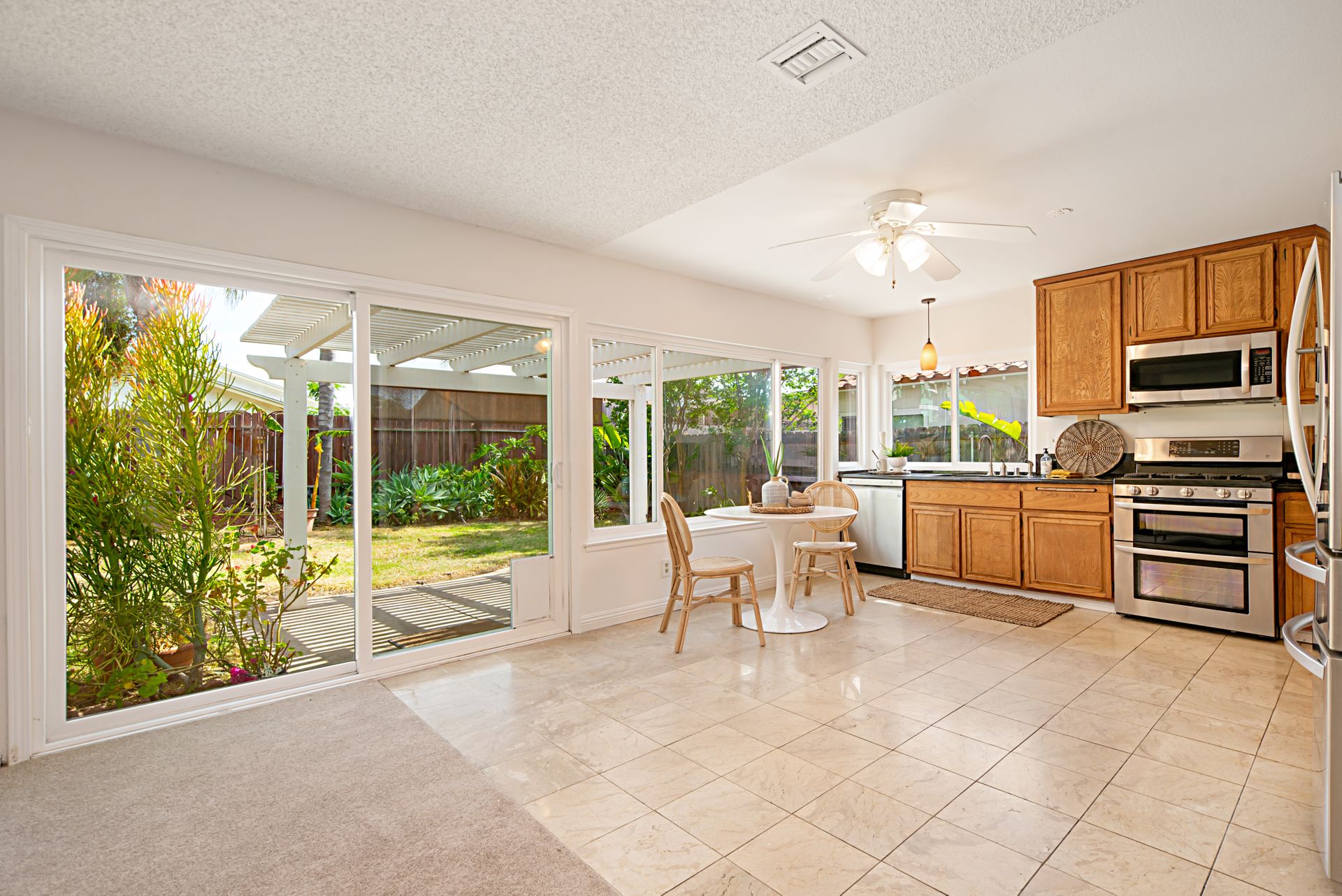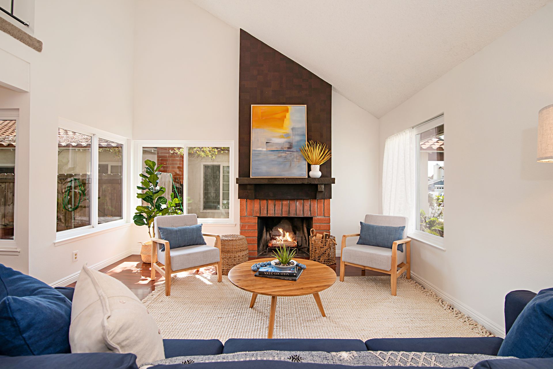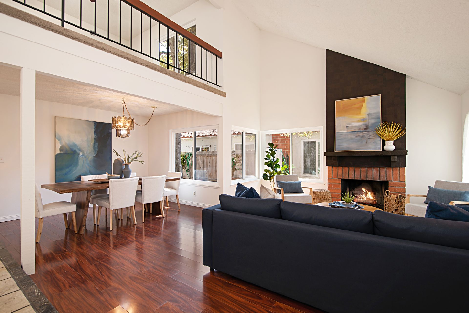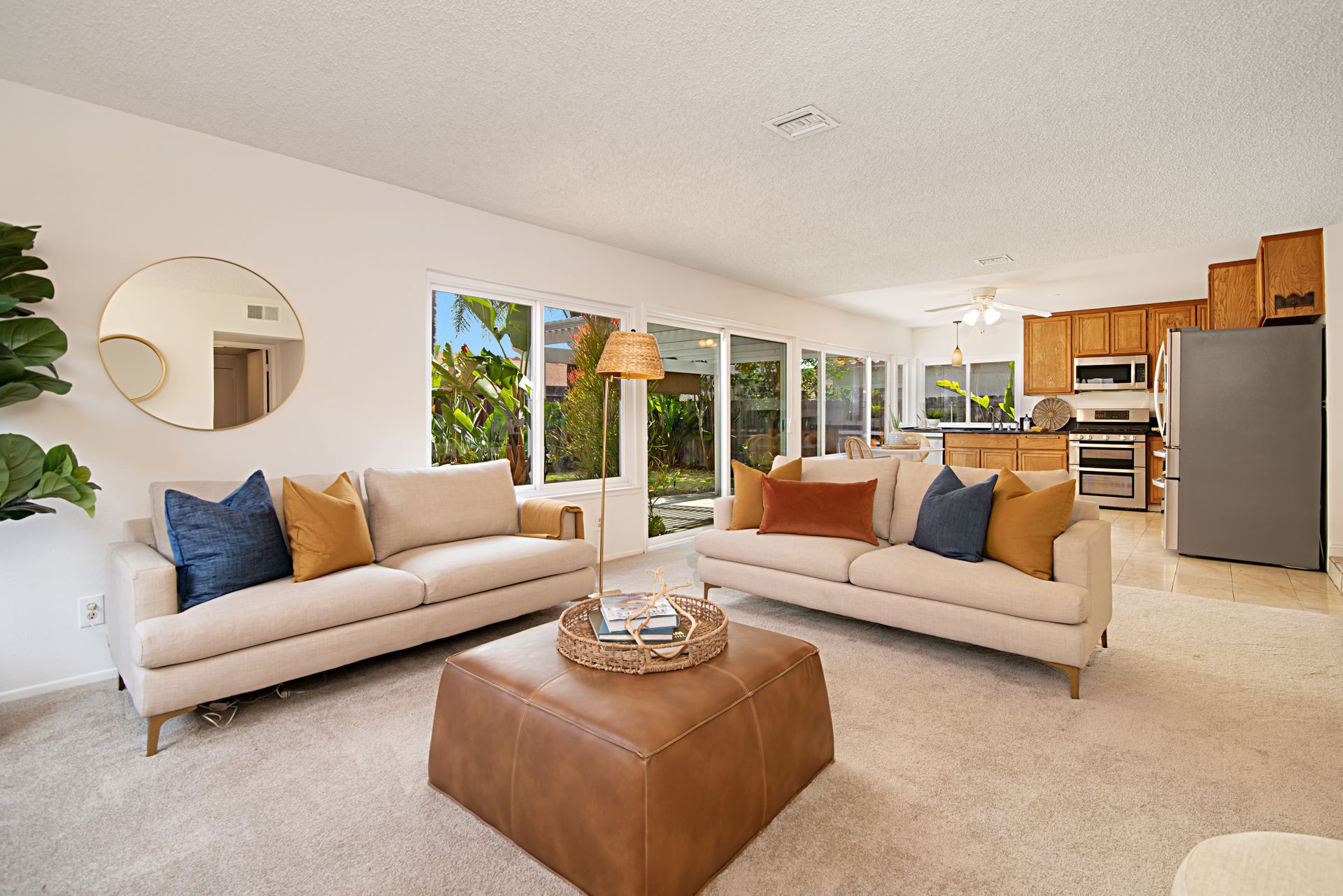 Highly desired Mira Mesa home including four bedrooms plus a loft and two and one-half baths is ready for new homeowners! The interior is freshly painted with new carpet throughout. As you enter you will find vaulted ceilings, a formal living room, a dining room and a fireplace. The kitchen is open to a bright family room with sliding glass door access to an amazing tropical backyard and patio. You will also find a newer stainless-steel refrigerator, a six-burner gas stove, along with washer/dryer that convey. The large primary suite includes vaulted ceiling, an ensuite bath and sliding glass door access to a balcony. You will love this home! The home has solar and water softener system. The community pool is located nearby.