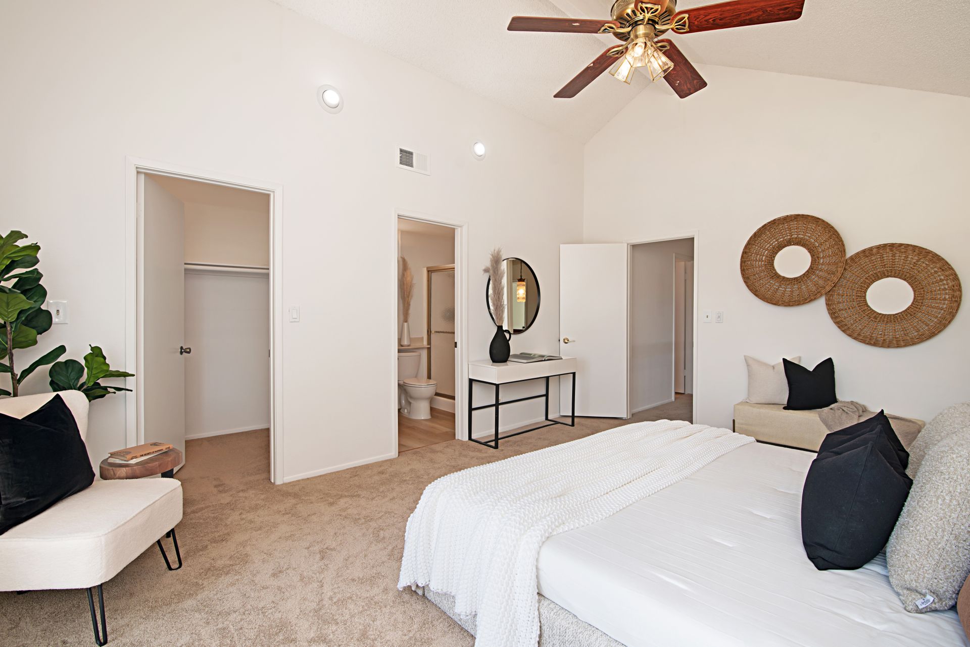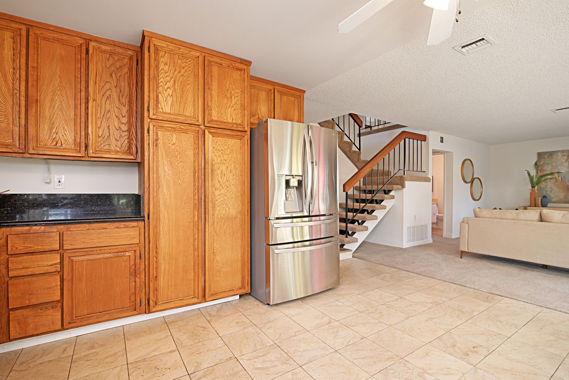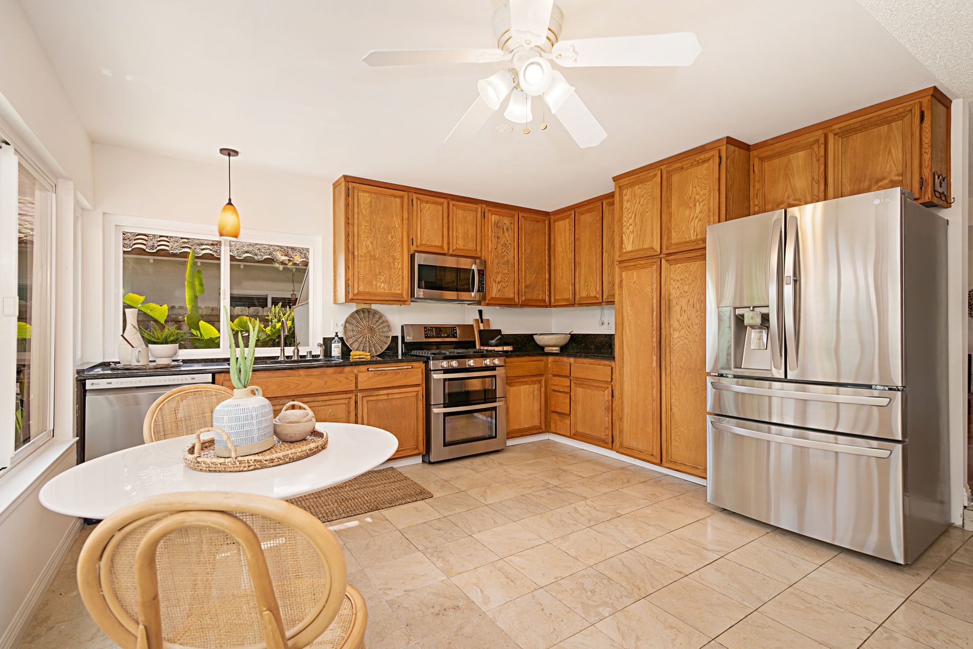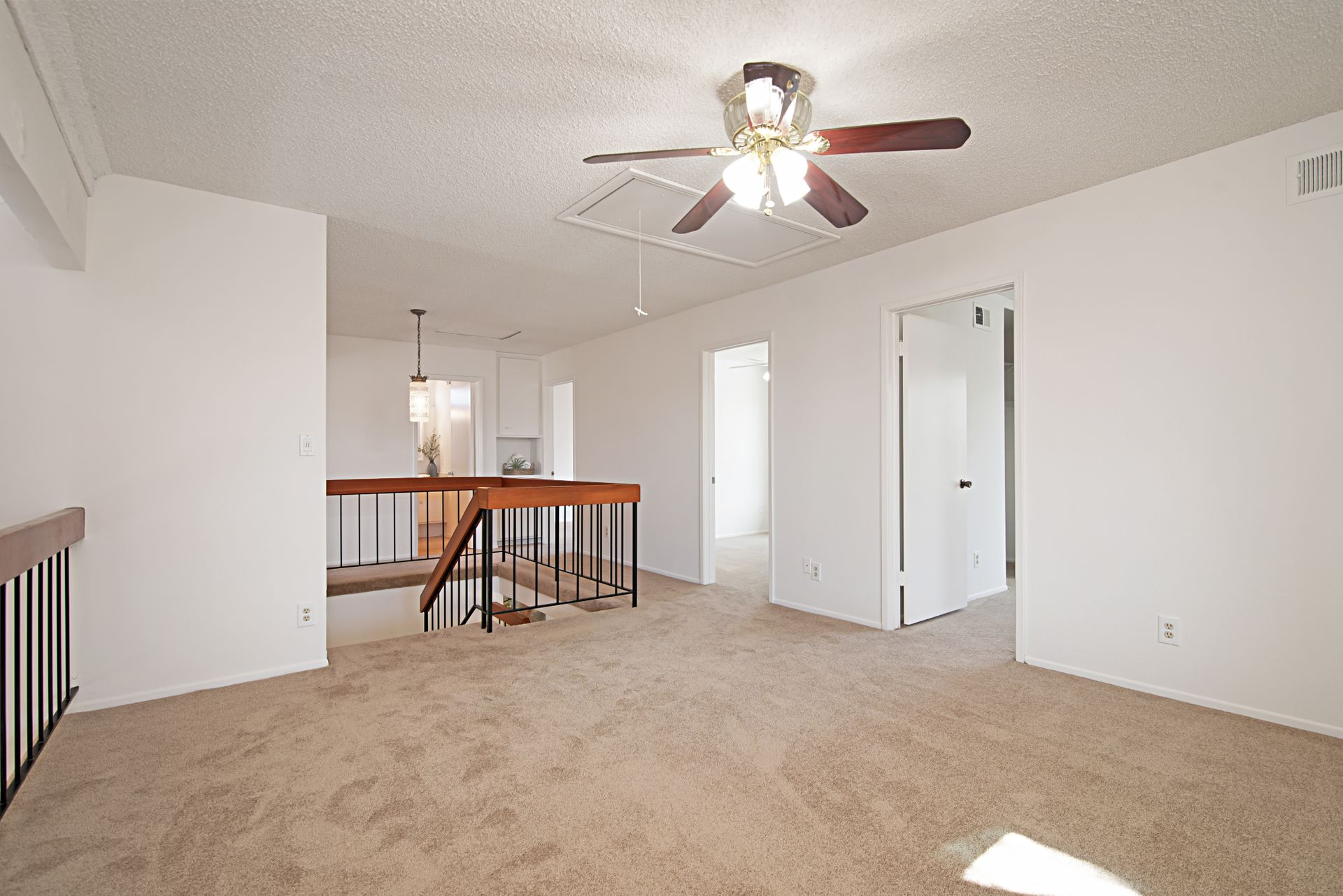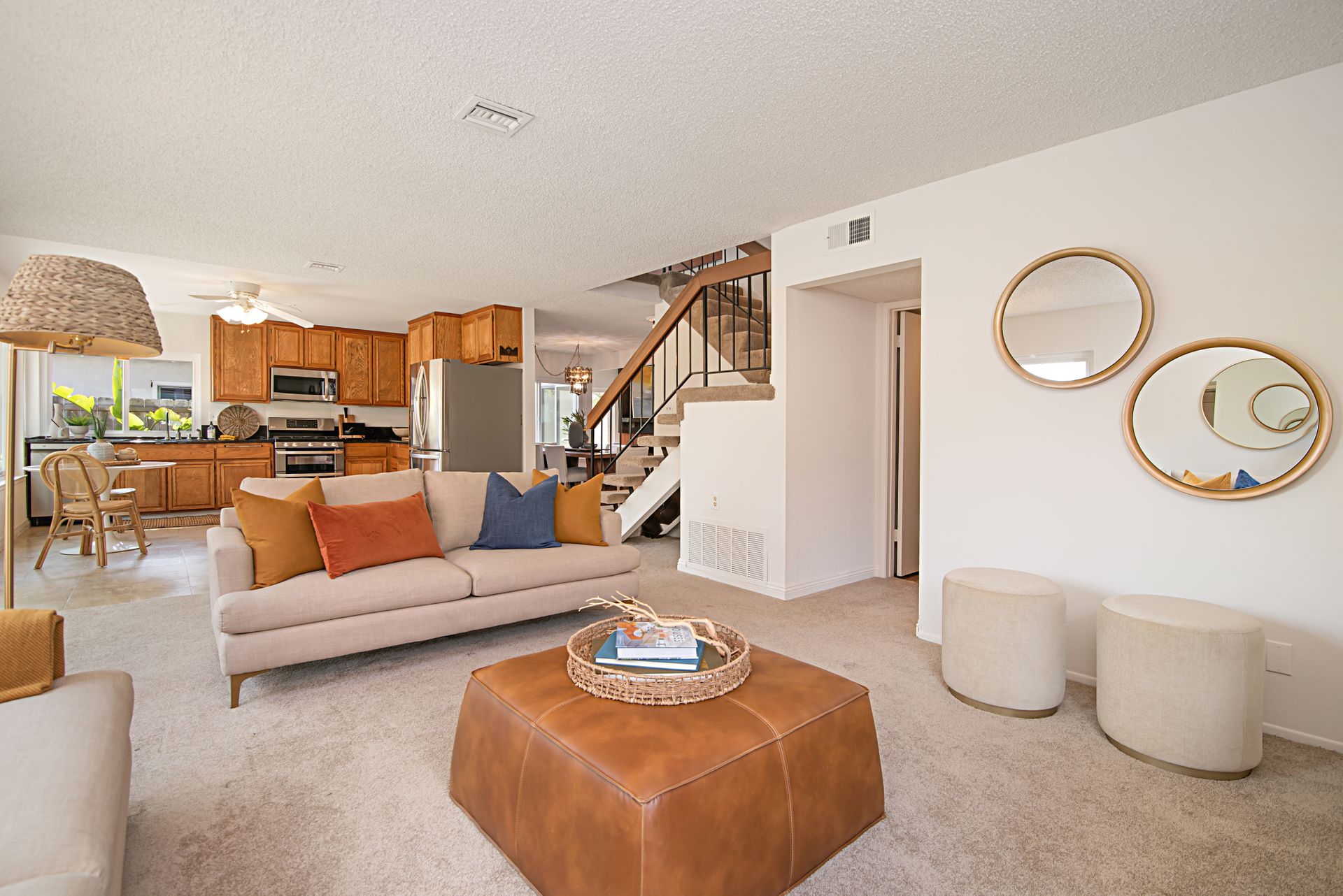 Highly desired Mira Mesa home including four bedrooms plus a loft and two and one-half baths is ready for new homeowners! The interior is freshly painted with new carpet throughout. As you enter you will find vaulted ceilings, a formal living room, a dining room and a fireplace. The kitchen is open to a bright family room with sliding glass door access to an amazing tropical backyard and patio. You will also find a newer stainless-steel refrigerator, a six-burner gas stove, along with washer/dryer that convey. The large primary suite includes vaulted ceiling, an ensuite bath and sliding glass door access to a balcony. You will love this home! The home has solar and water softener system. The community pool is located nearby.