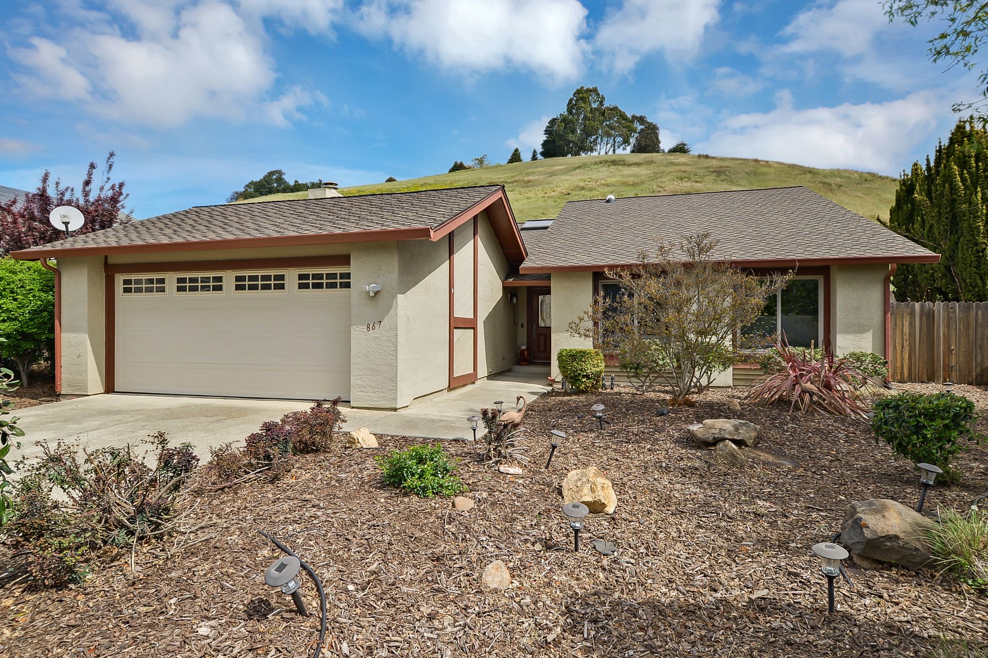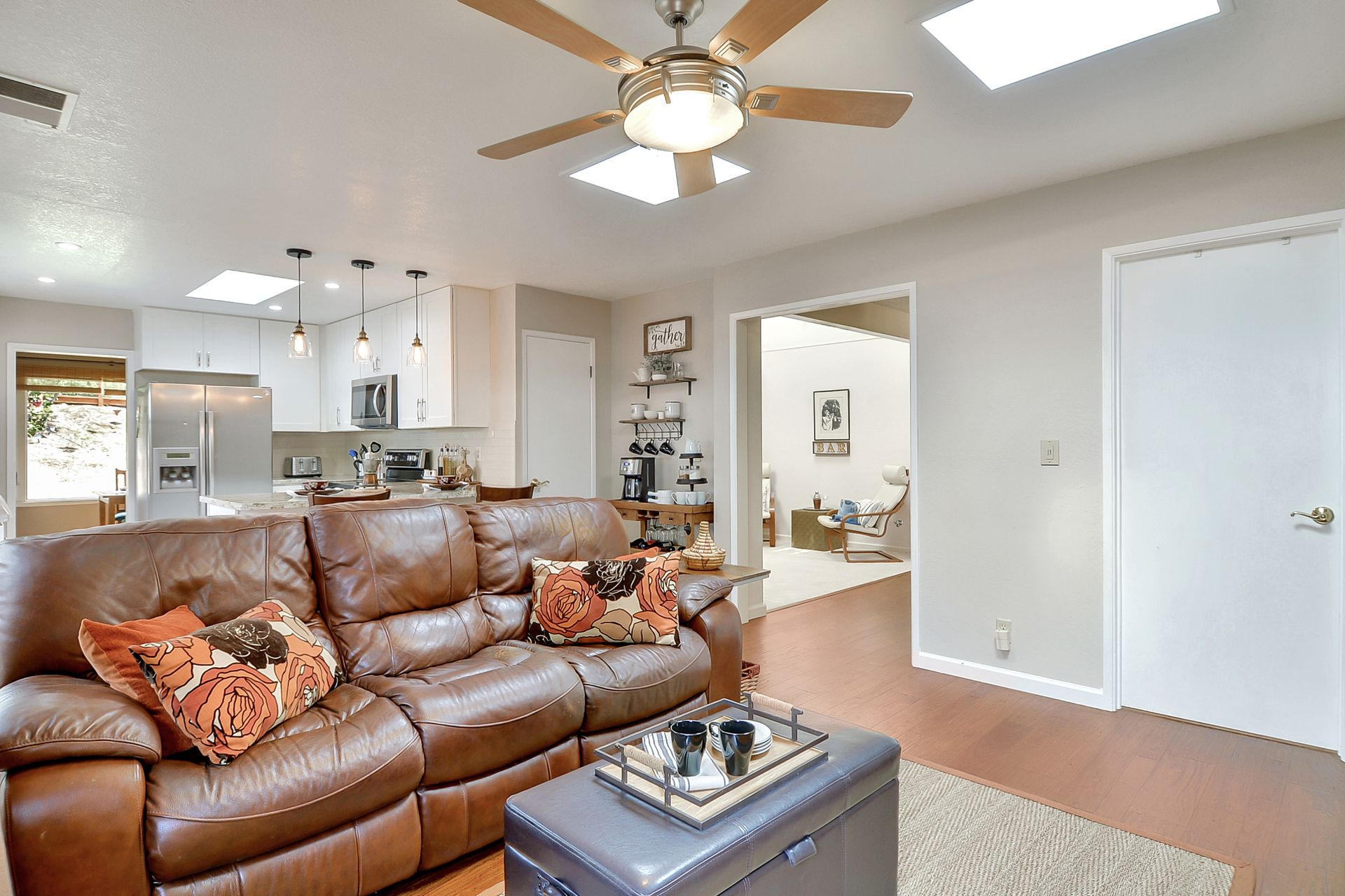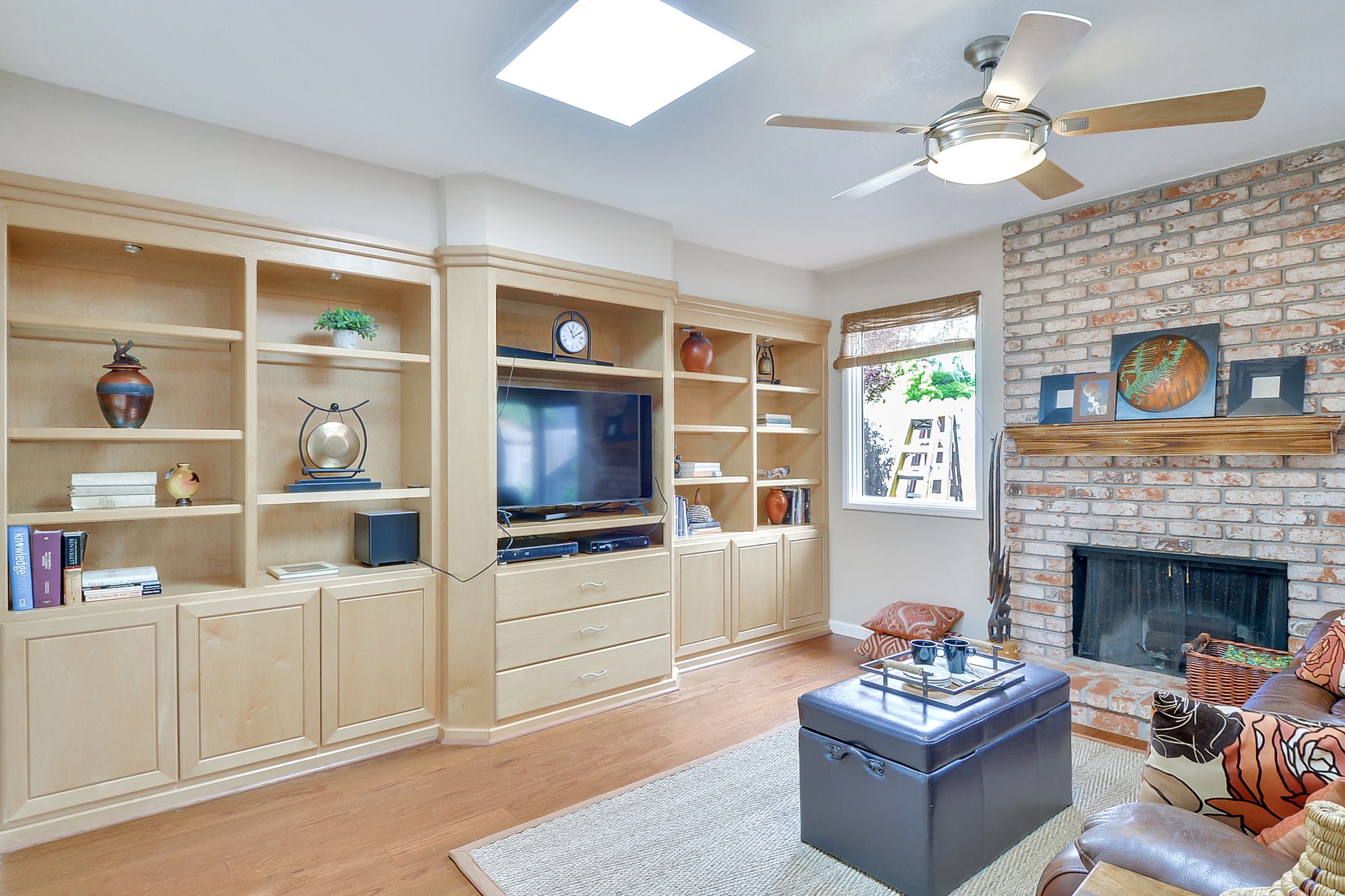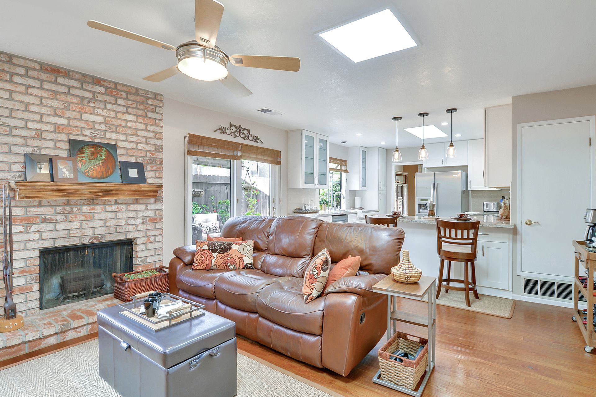This Southampton, single-story in a court location features approximately 1,980 square feet of livable space, four bedrooms, two baths, a tastefully updated kitchen with a skylight, a cozy family room with a built-in entertainment center and a brick fireplace. The separate dining area/living room with vaulted ceilings offers plenty of room for entertaining. Sliding glass doors lead to an inviting side and back yard with beautiful shrubs, trees, flowering plants and space for a garden, extending the livable space. Other features include a hardwood floor in the entry hall and family room, skylights, an indoor laundry, a two-car attached garage, a finished attic and a shed for storage. Enjoy being close to hiking trails and having easy freeway access! Don't miss this one!