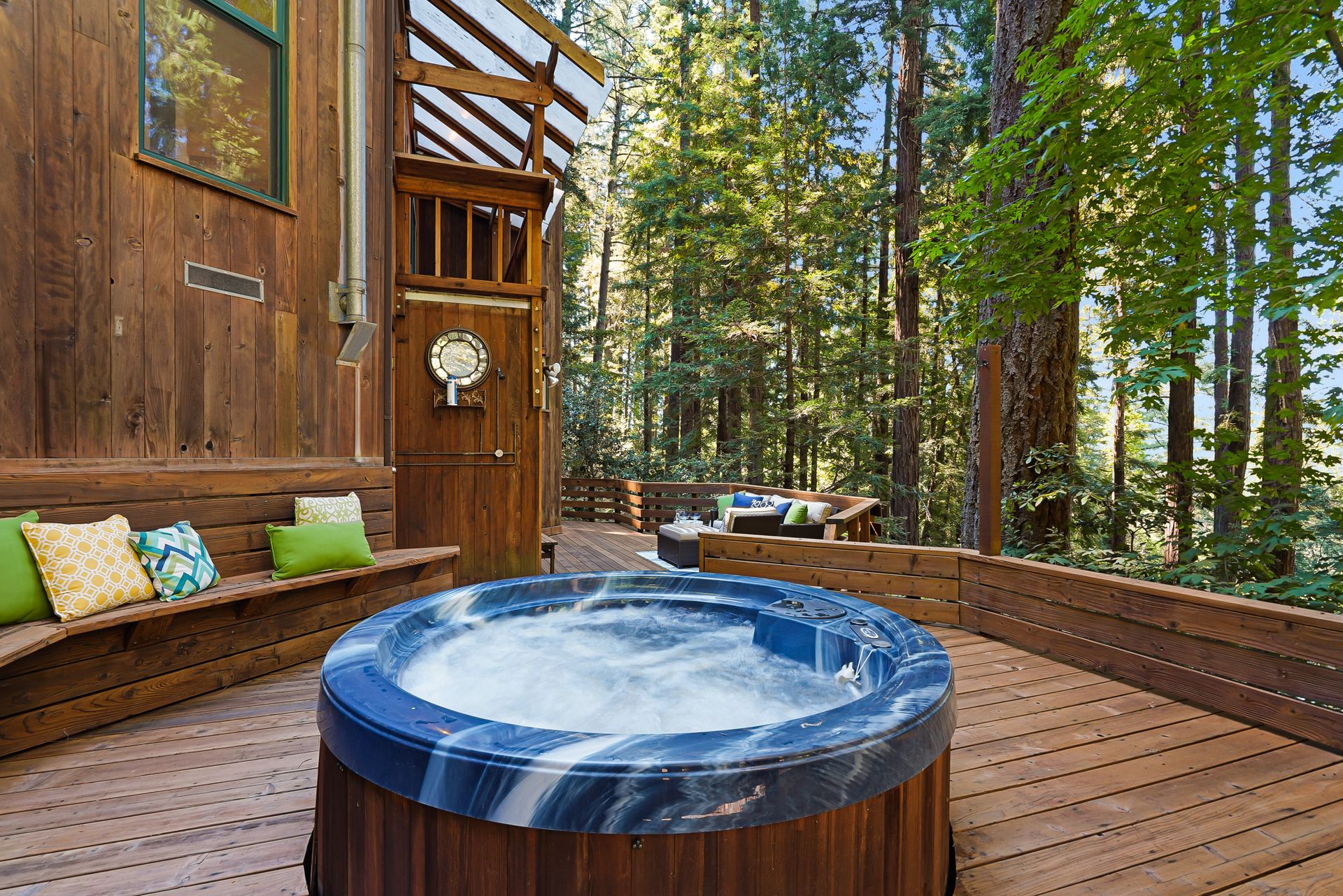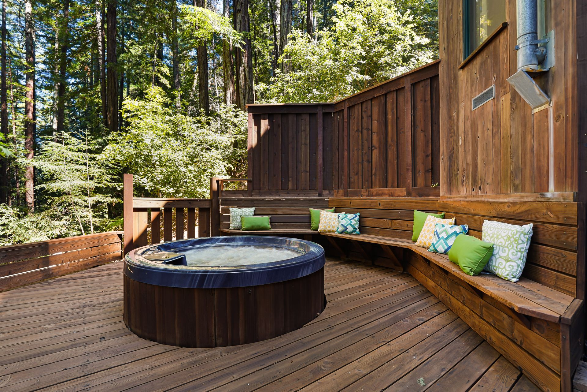 - Spa/hot tub set within a beautiful redwood decking and bench seating ideal for soaking under a star-filled night sky