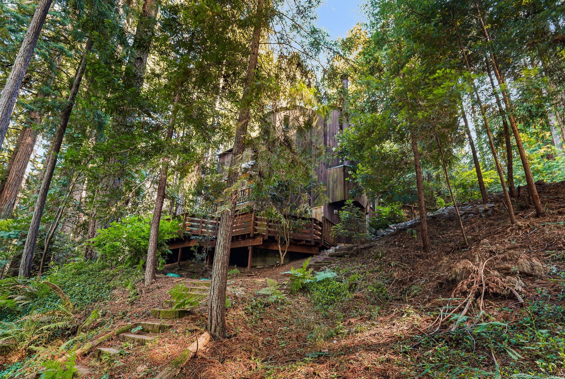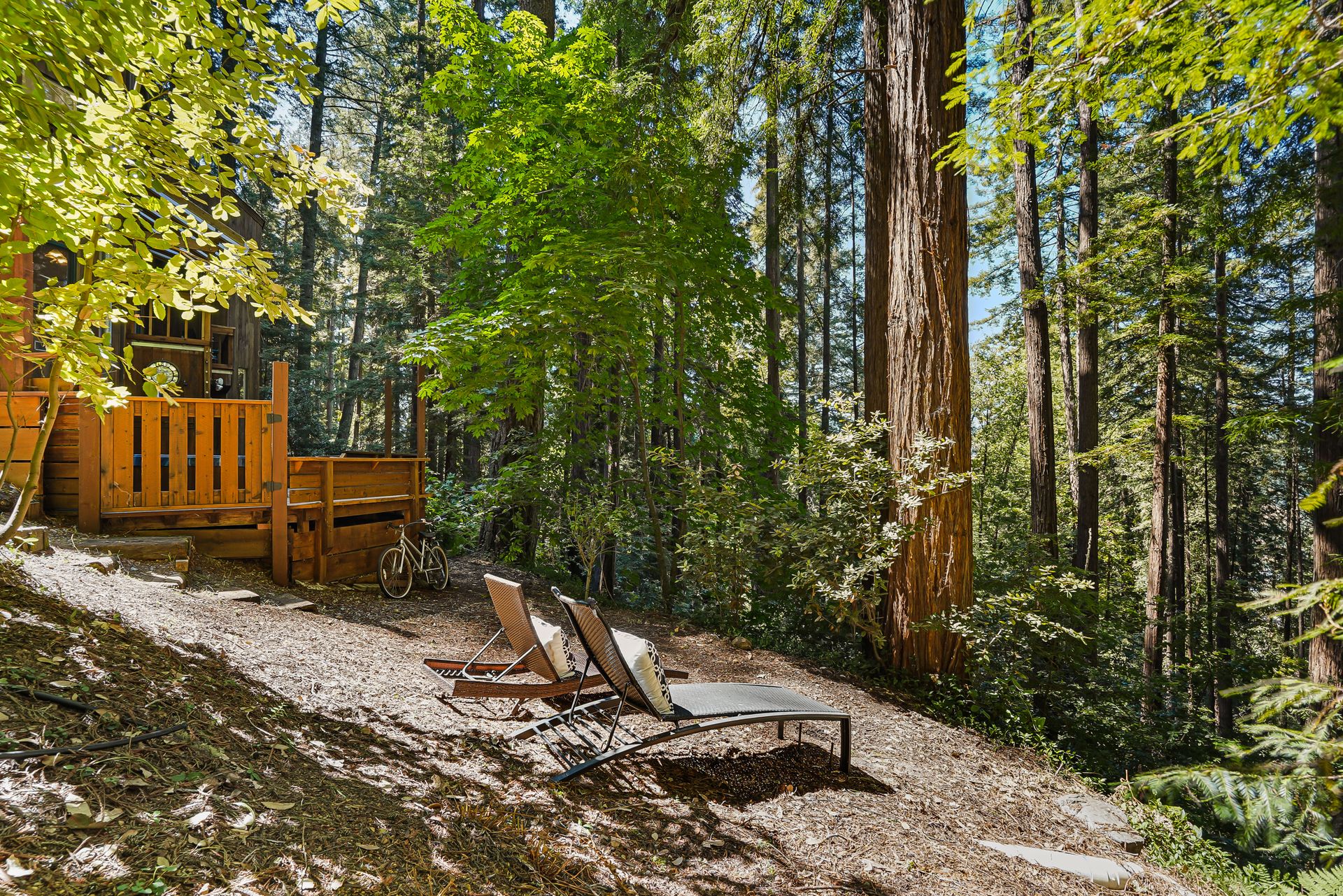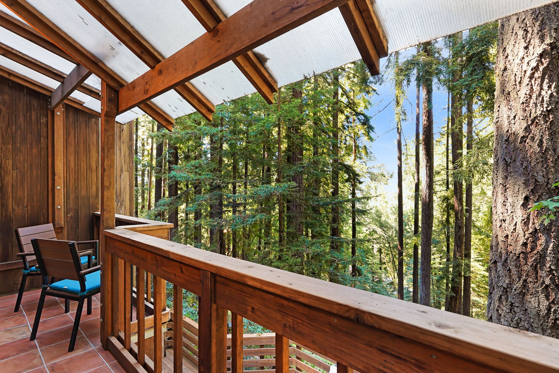 - Incredible primary suite with en-suite bath and loft overlook and outdoor balcony overlooking the redwood stand and valley beyond