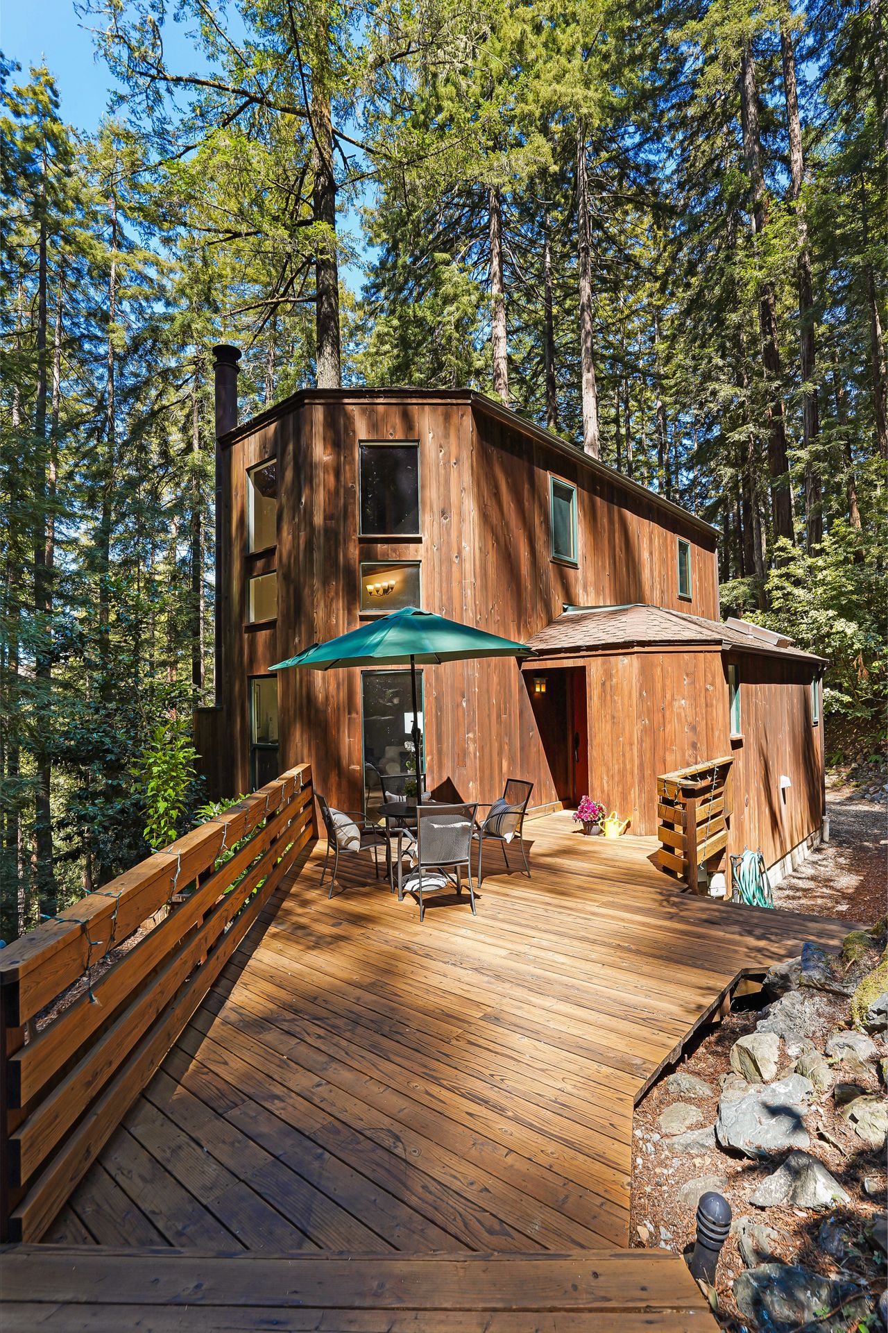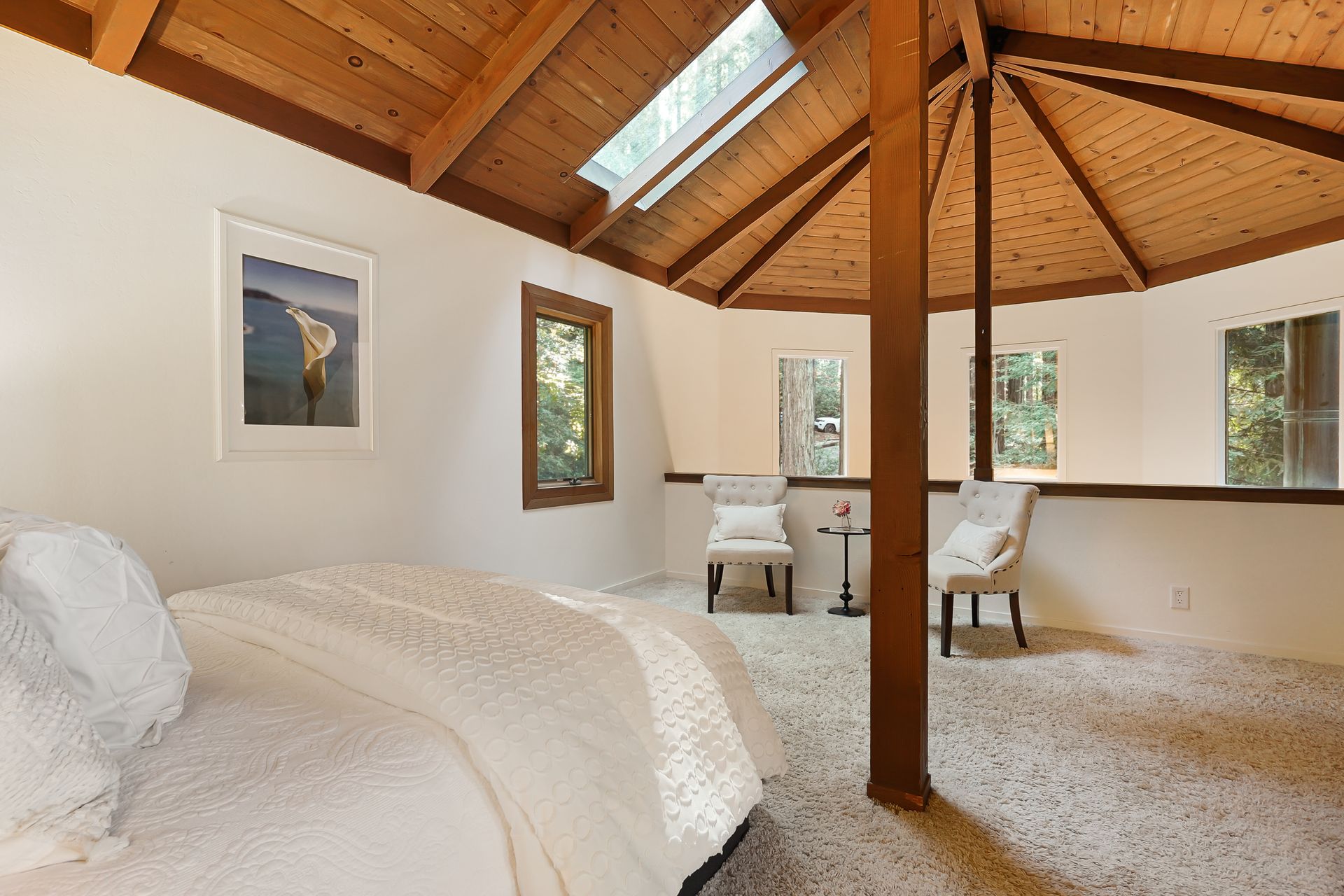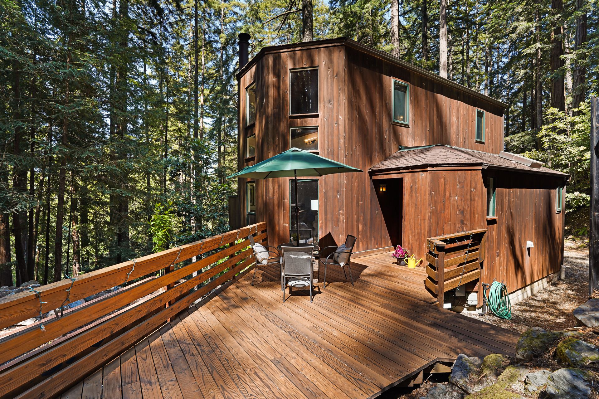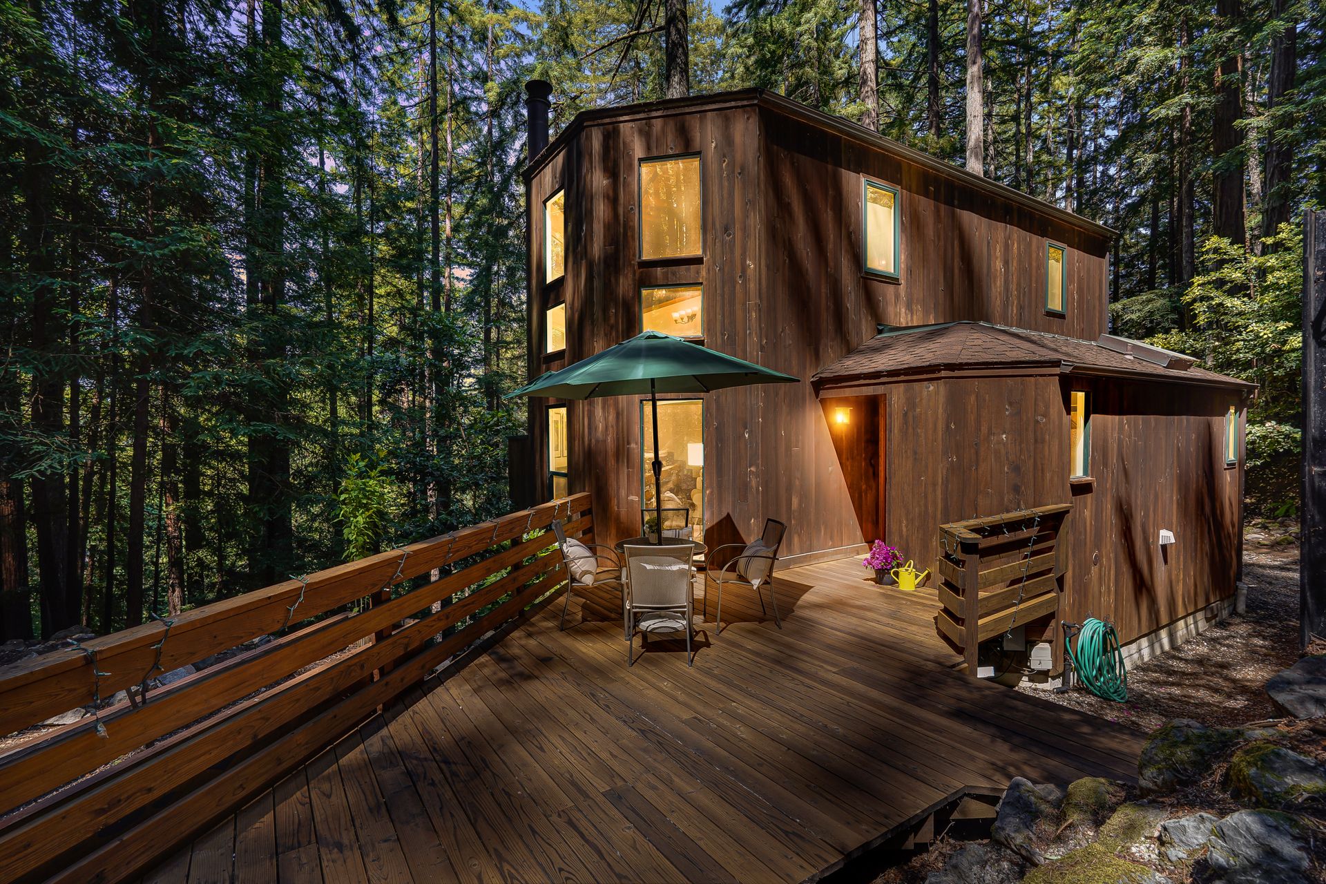 - Incredible primary suite with en-suite bath and loft overlook and outdoor balcony overlooking the redwood stand and valley beyond