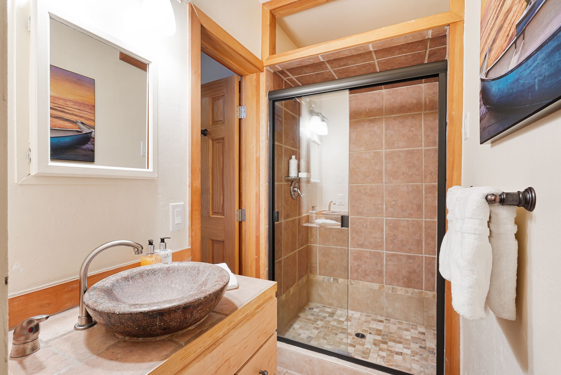 - Lower-level guest suite with private bath that opens to private deck and spa