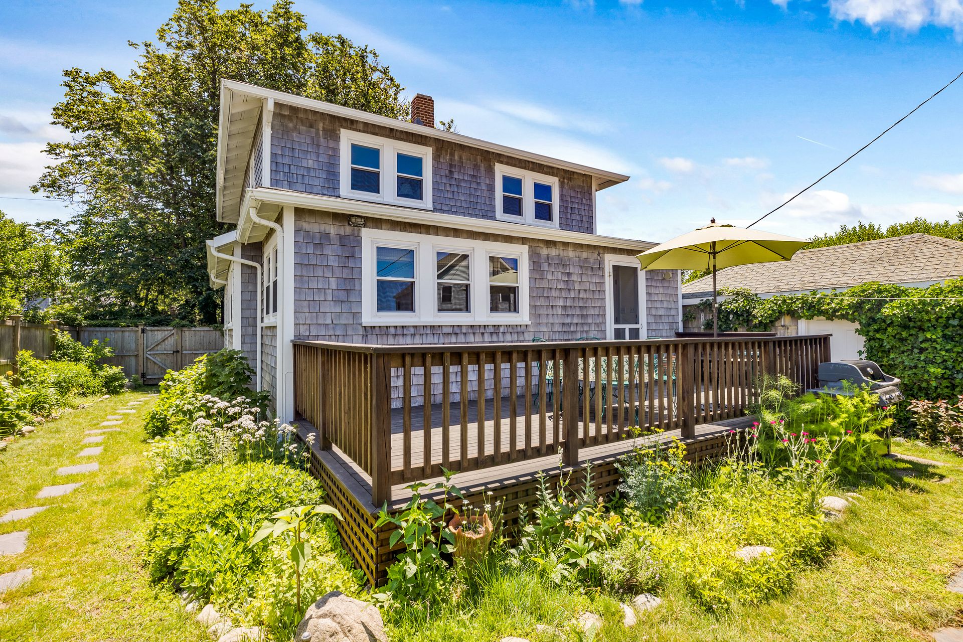 This is a special home! Quietly perched between Marion Road and 11th Ave. this home awaits its new owners. Spectacular gardens adorn the shingle styled home with peeks of the Atlantic Ocean. Minutes to your private beach at the end of Marion Road, close proximity to Scituate Lighthouse and the harbor with all its restaurants and shops. Enter through the front door and be enchanted by the charm of yesteryear with a spacious and cozy entry space. The first floor hosts a family room with gas fireplace and built-in bench seating which flows through to the dining room that offers much comfort and charm. Space for an office/bonus room and kitchen with cork tile floors complete this floor. Head upstairs to four bedrooms and a full bath. Hardwood floors throughout. First floor laundry, central air. Shed/garage with electricity and a wonderful deck to relax and enjoy the salt air. This is the Sand Hills Home you’ve been waiting for!