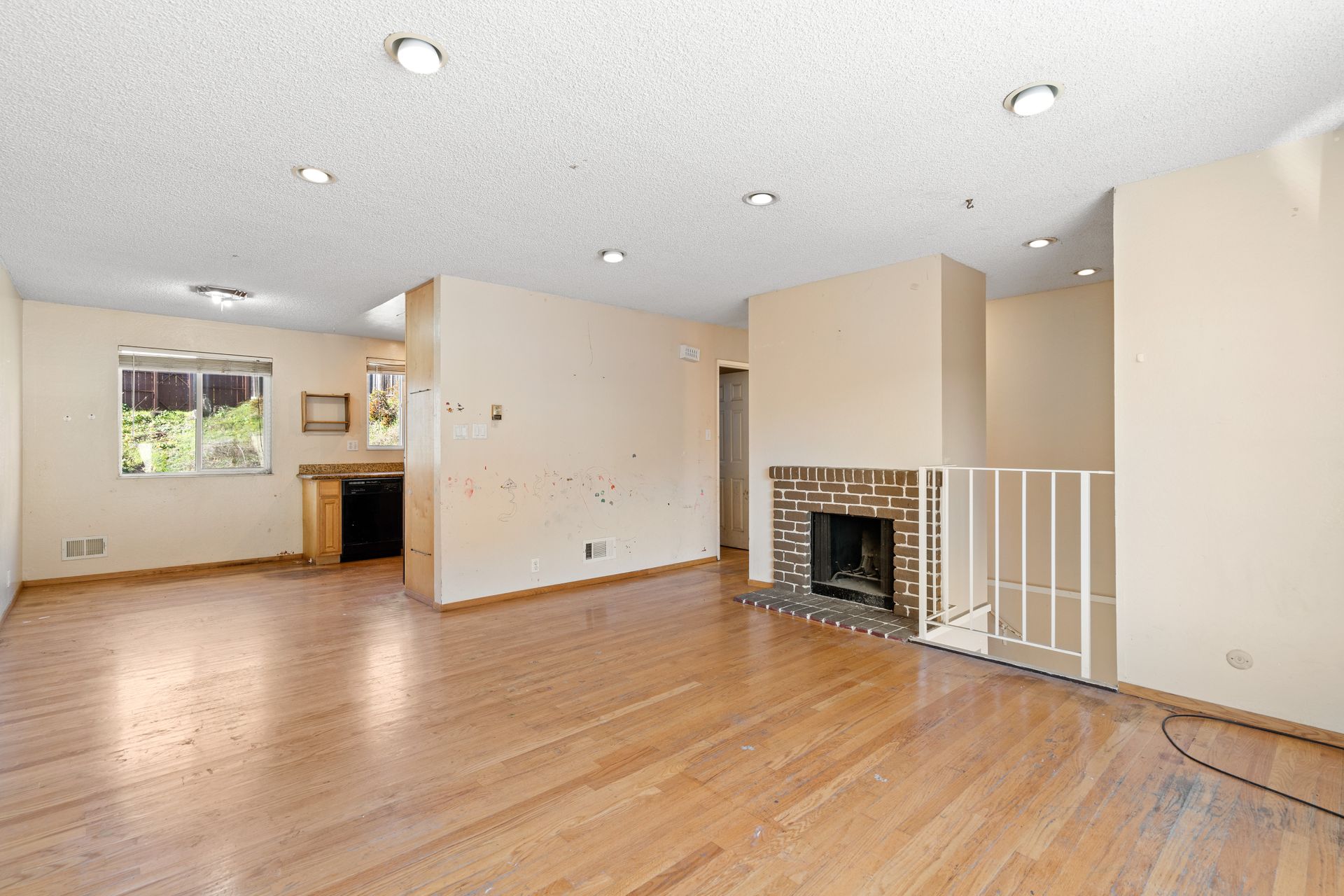 The main level has a bright, inviting living room with a cozy fireplace, dining area, kitchen, two bedrooms, a full bath and hardwood floors throughout. The lower level, with its own entrance, has a versatile room, a full bath and access to the huge yard. Enjoy one-car parking in the garage and two additional parking spaces on the driveway.