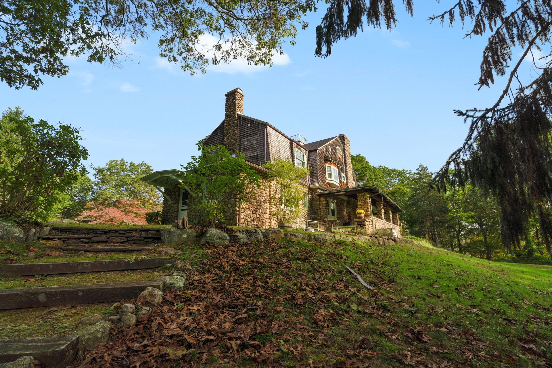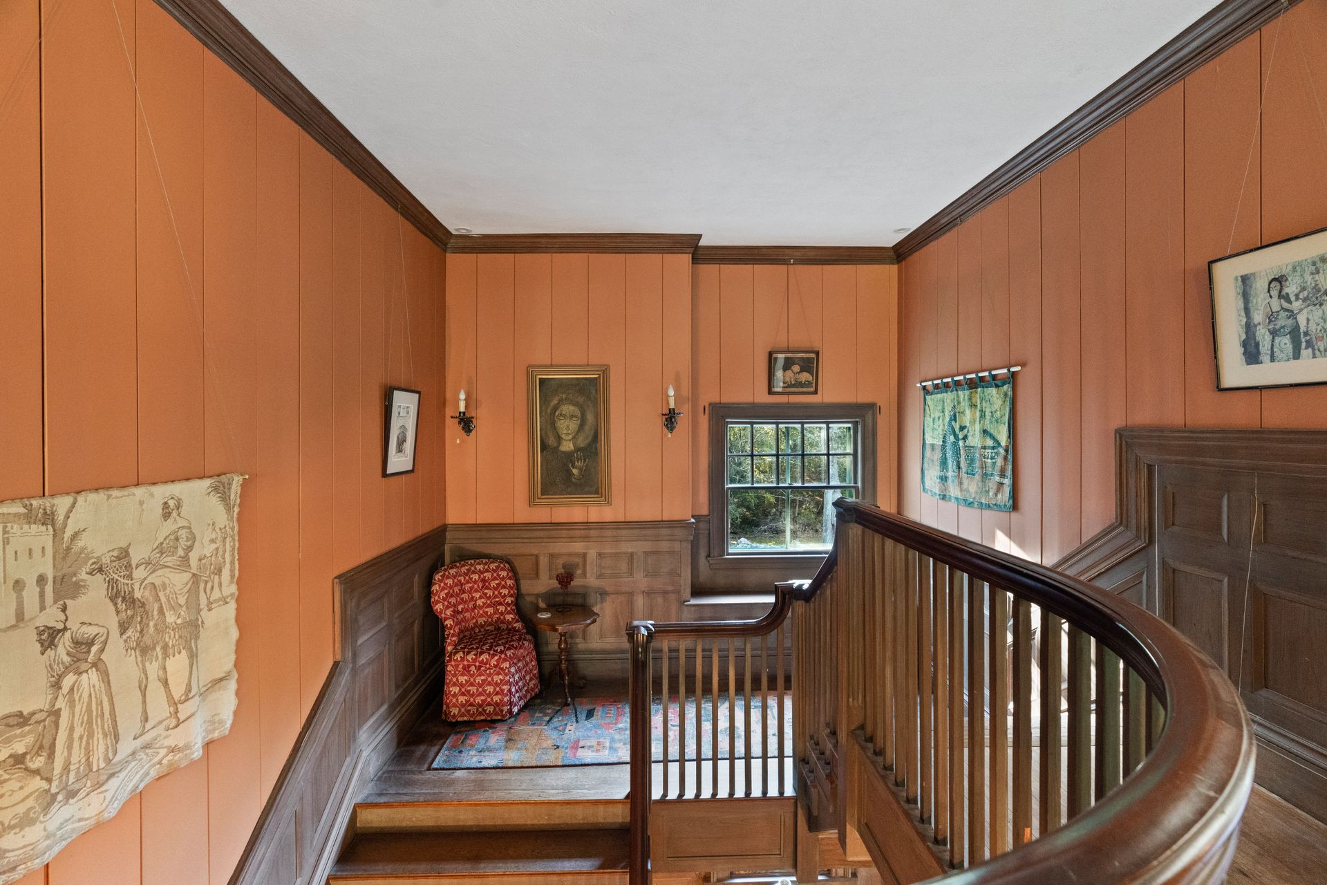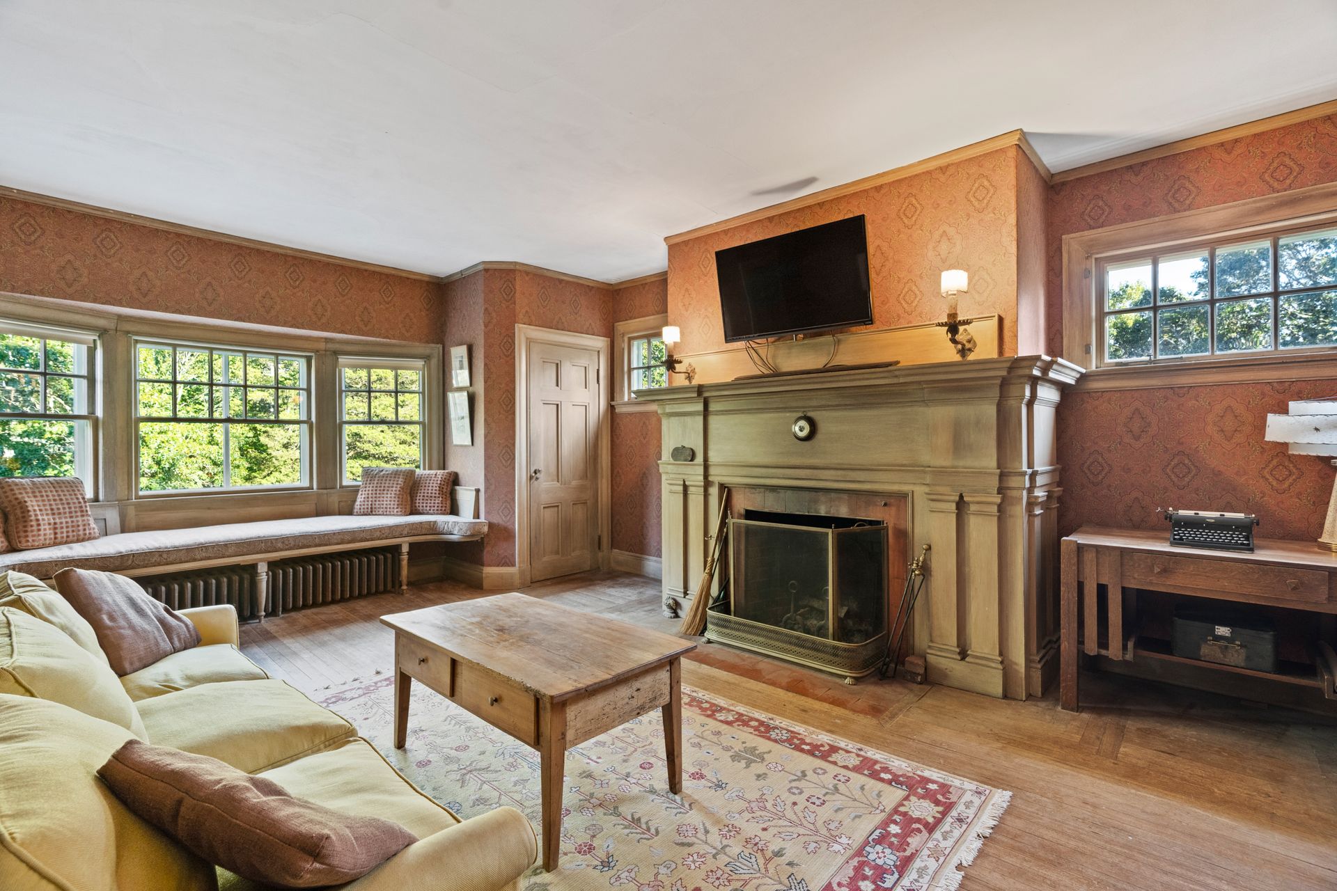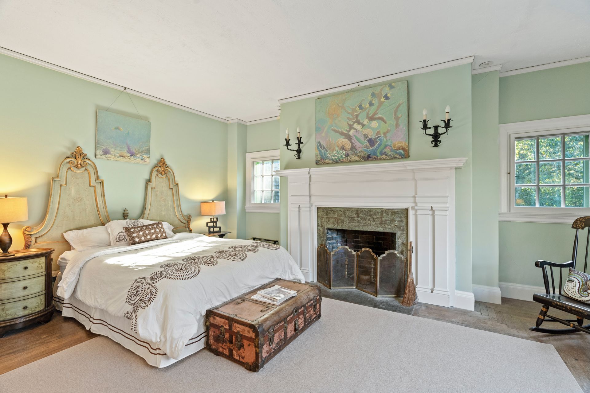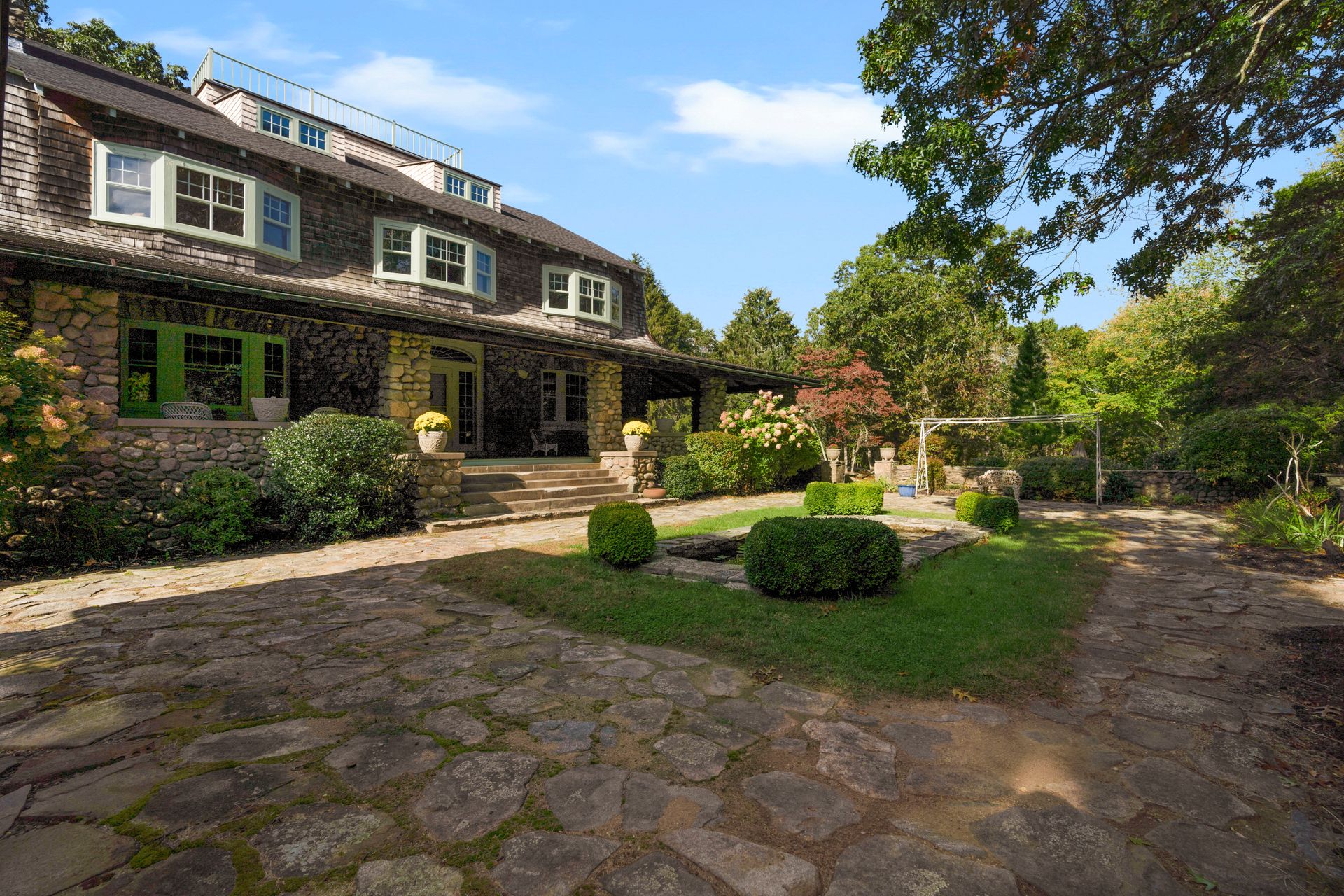 Built by Old Lyme Colony artist Harry Hoffman and his wife Beatrice Pope, "Chuluota" was constructed between 1908-1910 and designed to replicate an Italian Villa by Boston architects Magee and Rowe. This majestic, baronial like manor has elements that would be impossible to duplicate today. Constructed with local fieldstone and perched atop of Harding Hill and almost entirely surrounded by Old Lyme Preserve land, this iconic property boasts grandeur and privacy. A massive wrap around porch welcomes guests to this remarkable home which greets its inhabitants with 9'+ ceiling, four fireplaces and displays unusual and intriguing elements. Most of the light fixtures were acquired in Spain when Harry and Beatrice travelled there during the two years that the house was being built. The stone fireplace in Harry's studio has a massive fabricated mantle with lion-heads. The music room has hand-stenciled walls by the artist's wife, Beatrice. But, surely, the highlight of the home is the painted panels in the living room and the upstairs bedroom. Like the tradition at the Florence Griswold Museum for Old Lyme Colony artists, Harry chose to paint various, artistic scenes in the wood panels of his home which still remain on display today. A custom kitchen enhances the home. Agent owner.