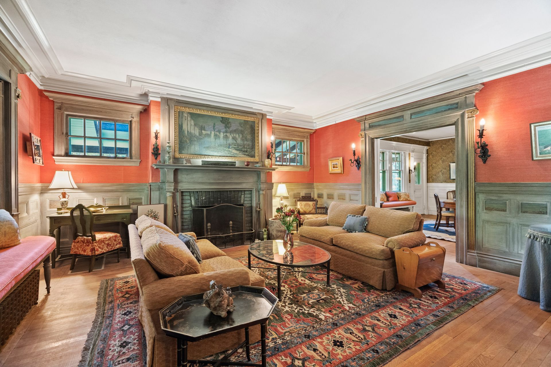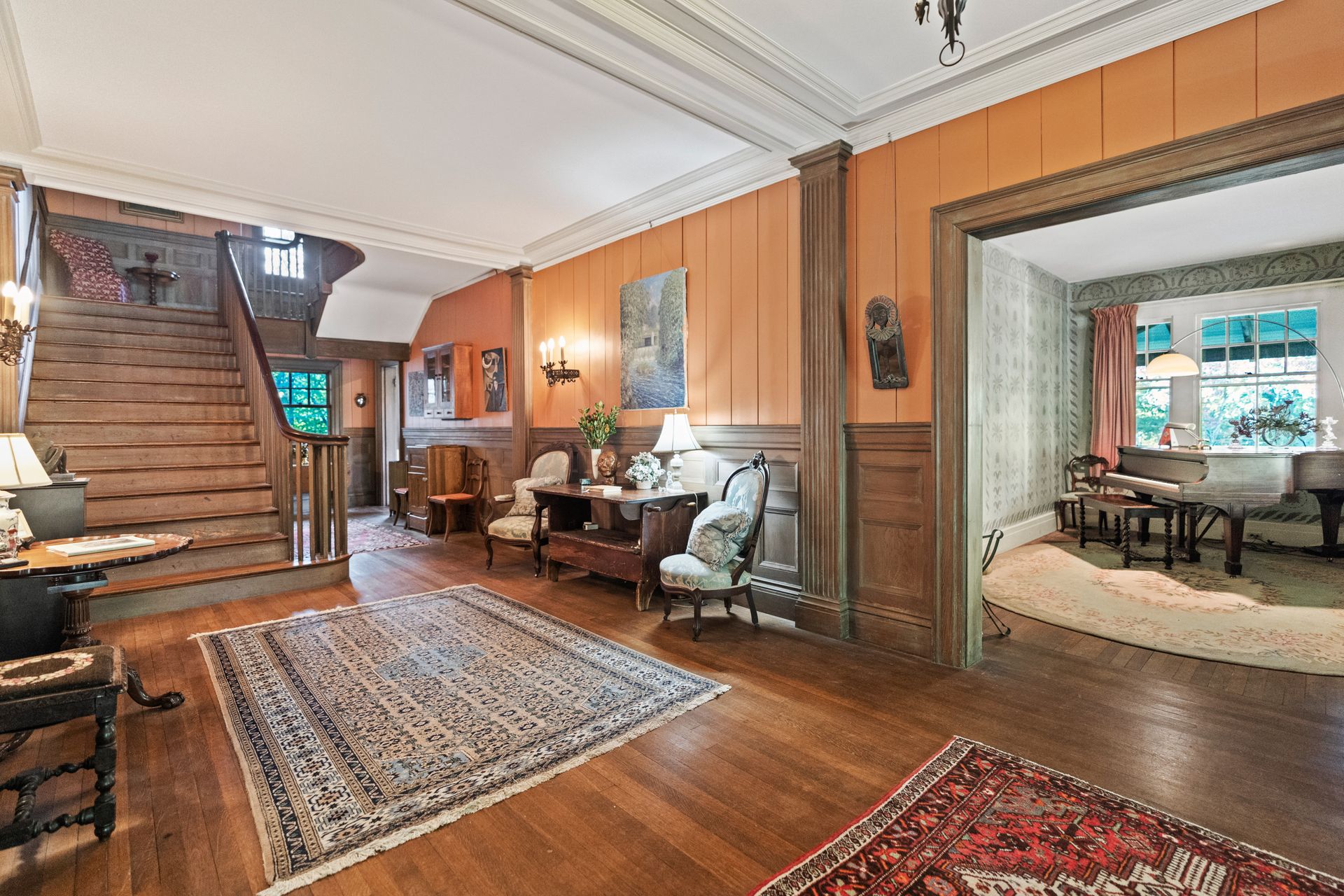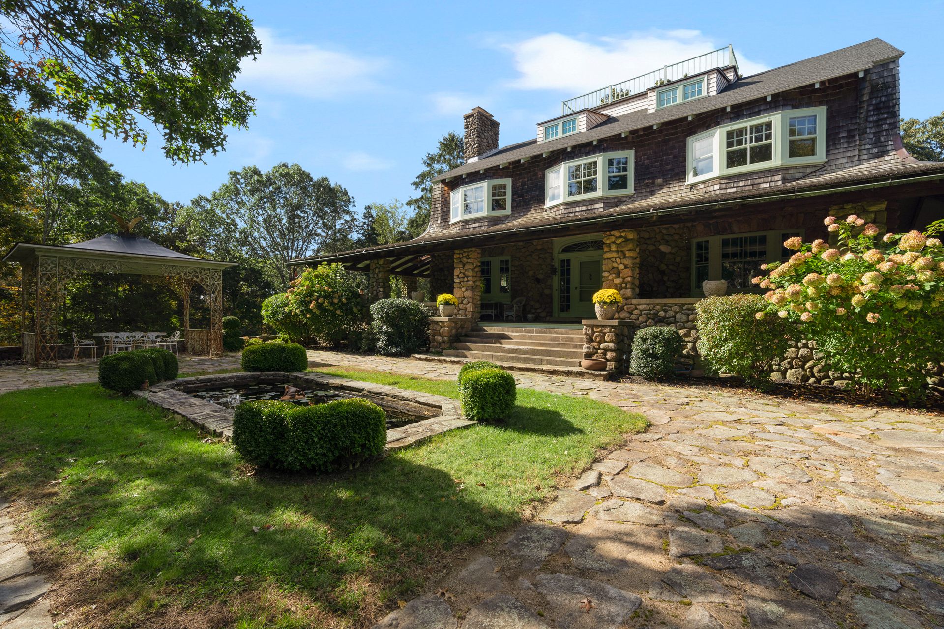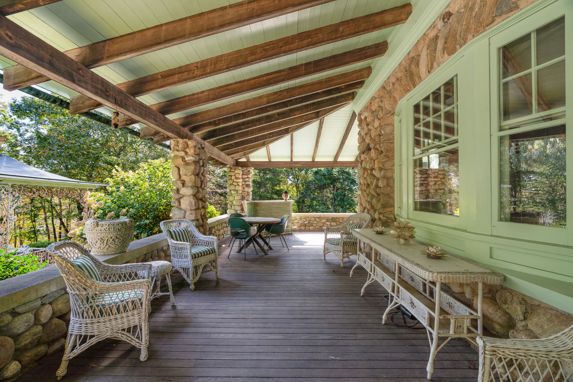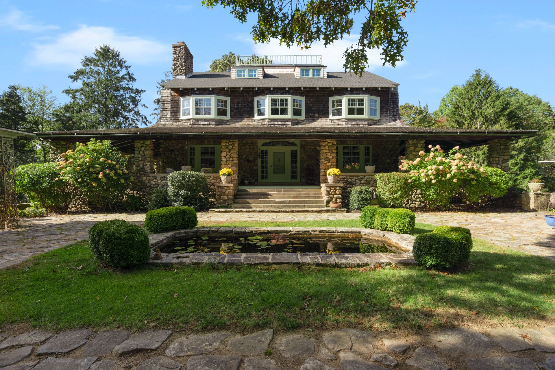 Built by Old Lyme Colony artist Harry Hoffman and his wife Beatrice Pope, "Chuluota" was constructed between 1908-1910 and designed to replicate an Italian Villa by Boston architects Magee and Rowe. This majestic, baronial like manor has elements that would be impossible to duplicate today. Constructed with local fieldstone and perched atop of Harding Hill and almost entirely surrounded by Old Lyme Preserve land, this iconic property boasts grandeur and privacy. A massive wrap around porch welcomes guests to this remarkable home which greets its inhabitants with 9'+ ceiling, four fireplaces and displays unusual and intriguing elements. Most of the light fixtures were acquired in Spain when Harry and Beatrice travelled there during the two years that the house was being built. The stone fireplace in Harry's studio has a massive fabricated mantle with lion-heads. The music room has hand-stenciled walls by the artist's wife, Beatrice. But, surely, the highlight of the home is the painted panels in the living room and the upstairs bedroom. Like the tradition at the Florence Griswold Museum for Old Lyme Colony artists, Harry chose to paint various, artistic scenes in the wood panels of his home which still remain on display today. A custom kitchen enhances the home. Agent owner.