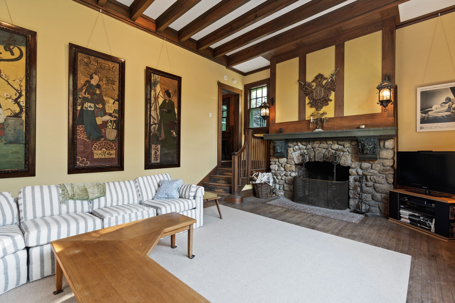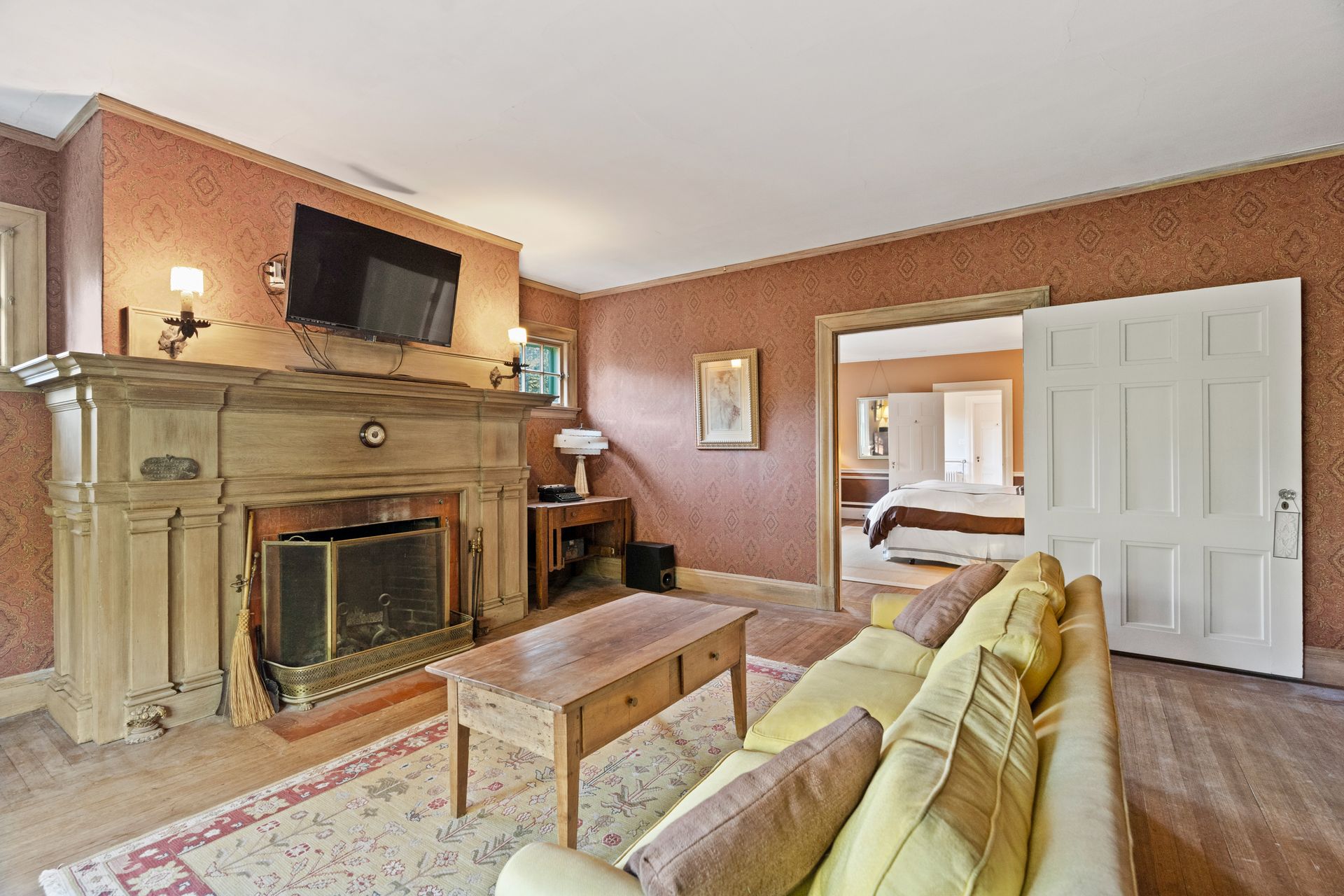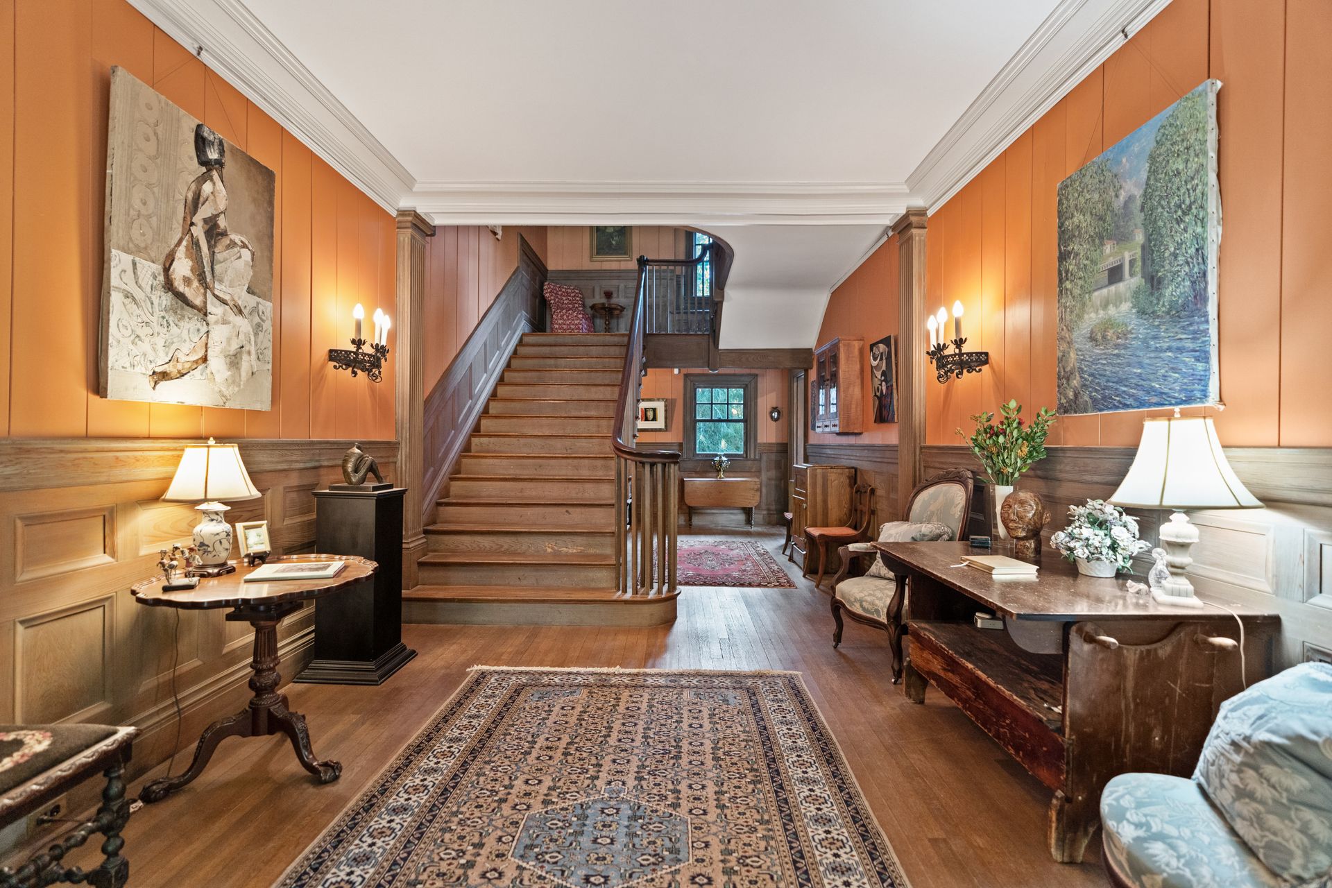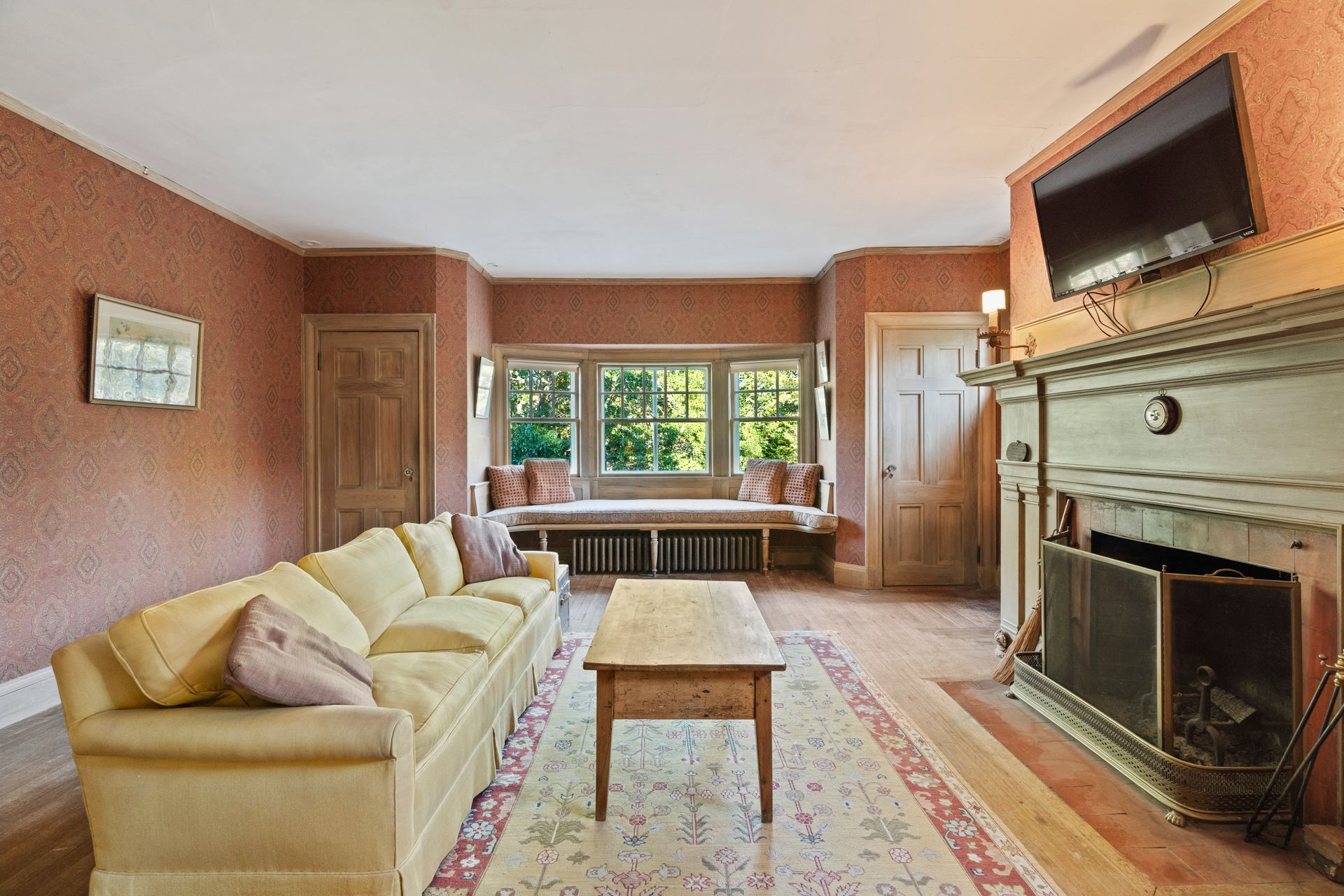 Built by Old Lyme Colony artist Harry Hoffman and his wife Beatrice Pope, "Chuluota" was constructed between 1908-1910 and designed to replicate an Italian Villa by Boston architects Magee and Rowe. This majestic, baronial like manor has elements that would be impossible to duplicate today. Constructed with local fieldstone and perched atop of Harding Hill and almost entirely surrounded by Old Lyme Preserve land, this iconic property boasts grandeur and privacy. A massive wrap around porch welcomes guests to this remarkable home which greets its inhabitants with 9'+ ceiling, four fireplaces and displays unusual and intriguing elements. Most of the light fixtures were acquired in Spain when Harry and Beatrice travelled there during the two years that the house was being built. The stone fireplace in Harry's studio has a massive fabricated mantle with lion-heads. The music room has hand-stenciled walls by the artist's wife, Beatrice. But, surely, the highlight of the home is the painted panels in the living room and the upstairs bedroom. Like the tradition at the Florence Griswold Museum for Old Lyme Colony artists, Harry chose to paint various, artistic scenes in the wood panels of his home which still remain on display today. A custom kitchen enhances the home. Agent owner.