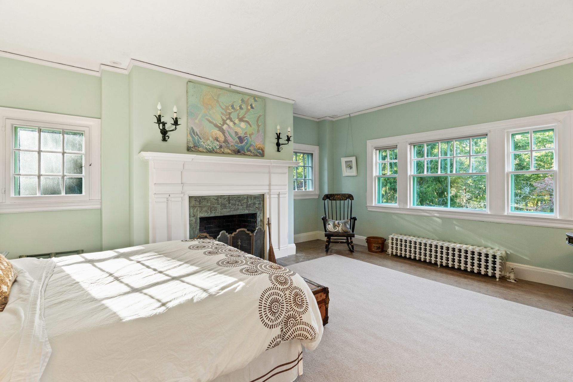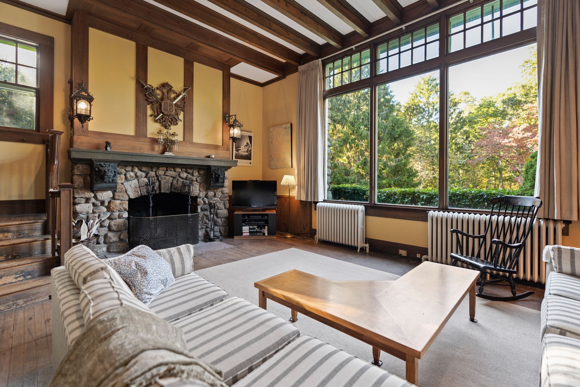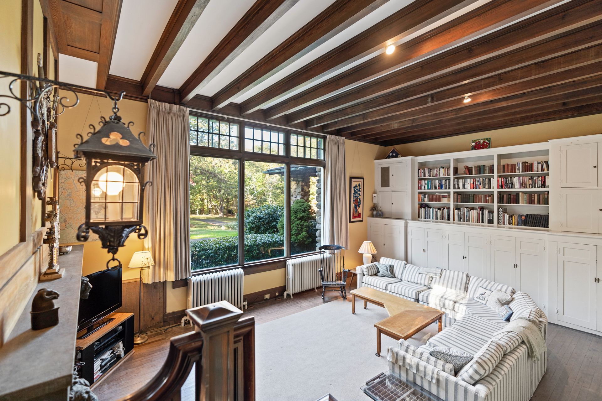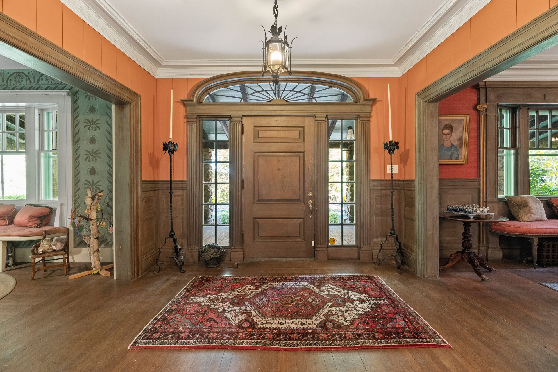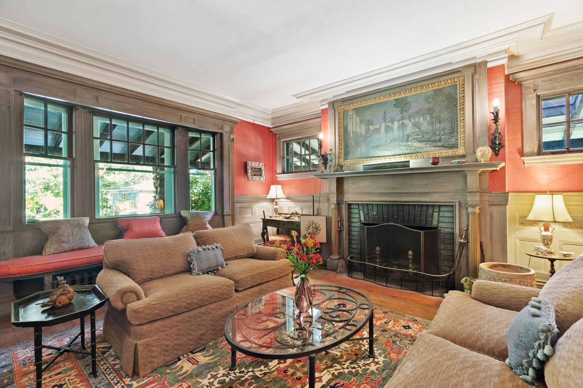 Built by Old Lyme Colony artist Harry Hoffman and his wife Beatrice Pope, "Chuluota" was constructed between 1908-1910 and designed to replicate an Italian Villa by Boston architects Magee and Rowe. This majestic, baronial like manor has elements that would be impossible to duplicate today. Constructed with local fieldstone and perched atop of Harding Hill and almost entirely surrounded by Old Lyme Preserve land, this iconic property boasts grandeur and privacy. A massive wrap around porch welcomes guests to this remarkable home which greets its inhabitants with 9'+ ceiling, four fireplaces and displays unusual and intriguing elements. Most of the light fixtures were acquired in Spain when Harry and Beatrice travelled there during the two years that the house was being built. The stone fireplace in Harry's studio has a massive fabricated mantle with lion-heads. The music room has hand-stenciled walls by the artist's wife, Beatrice. But, surely, the highlight of the home is the painted panels in the living room and the upstairs bedroom. Like the tradition at the Florence Griswold Museum for Old Lyme Colony artists, Harry chose to paint various, artistic scenes in the wood panels of his home which still remain on display today. A custom kitchen enhances the home. Agent owner.