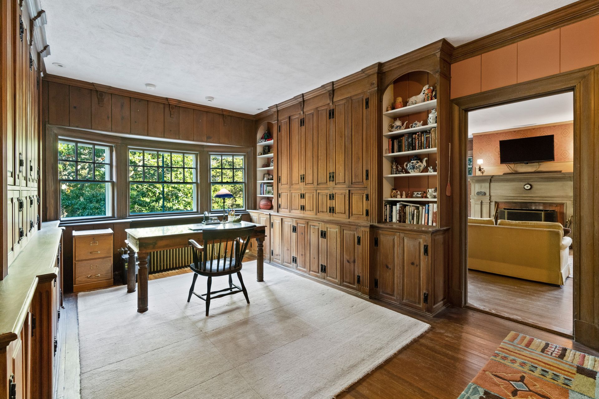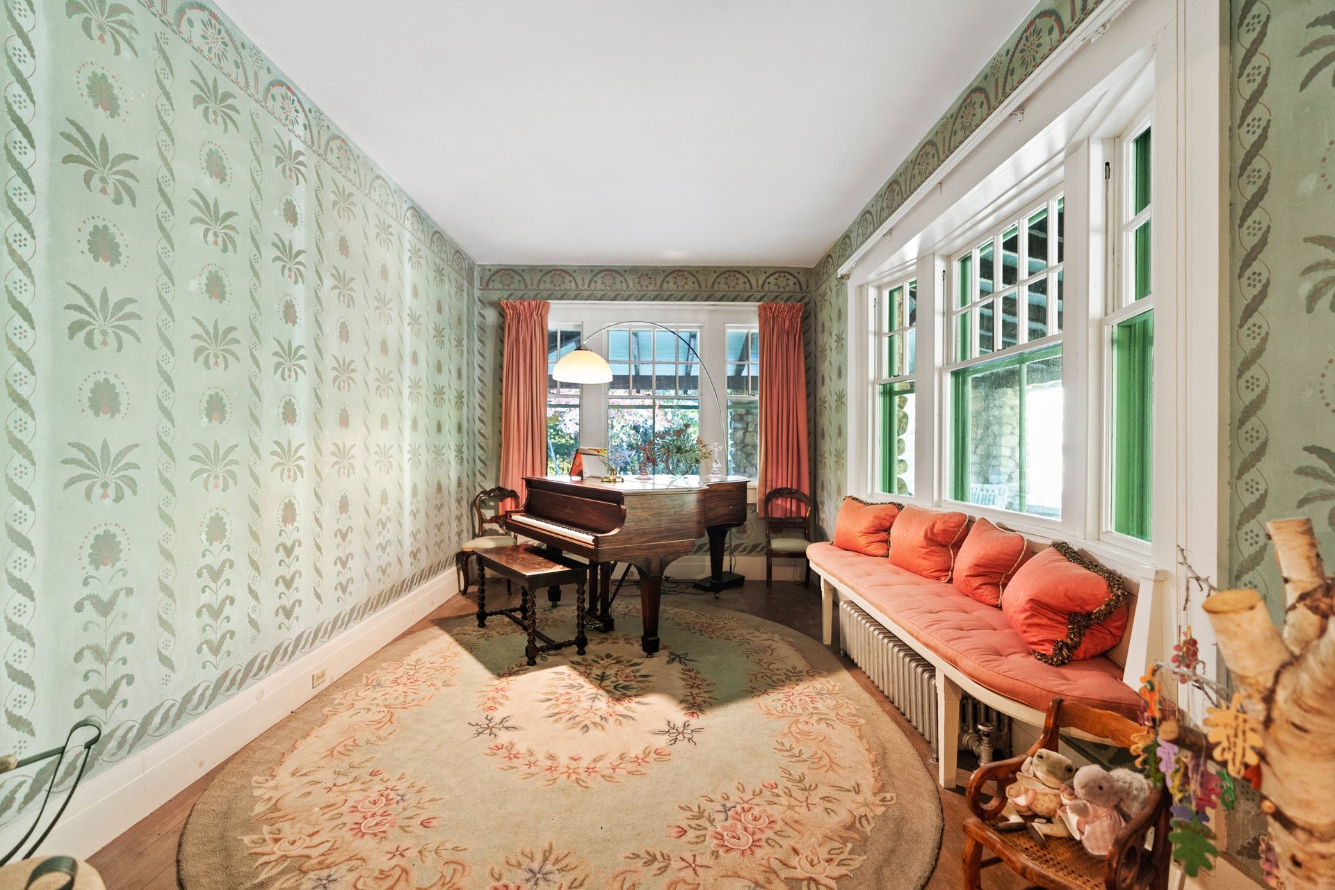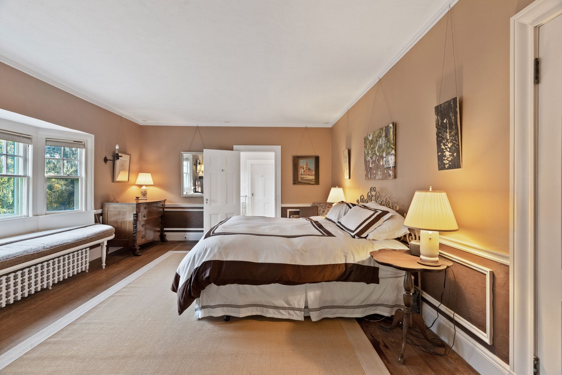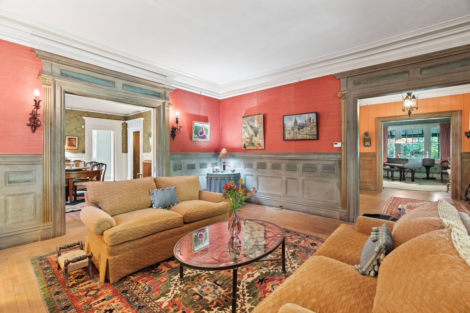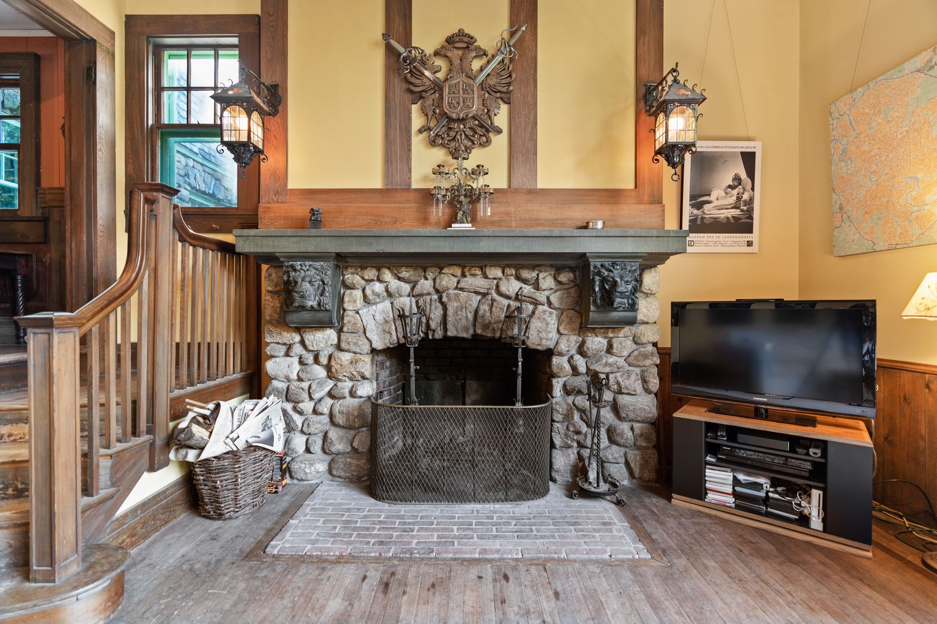 Built by Old Lyme Colony artist Harry Hoffman and his wife Beatrice Pope, "Chuluota" was constructed between 1908-1910 and designed to replicate an Italian Villa by Boston architects Magee and Rowe. This majestic, baronial like manor has elements that would be impossible to duplicate today. Constructed with local fieldstone and perched atop of Harding Hill and almost entirely surrounded by Old Lyme Preserve land, this iconic property boasts grandeur and privacy. A massive wrap around porch welcomes guests to this remarkable home which greets its inhabitants with 9'+ ceiling, four fireplaces and displays unusual and intriguing elements. Most of the light fixtures were acquired in Spain when Harry and Beatrice travelled there during the two years that the house was being built. The stone fireplace in Harry's studio has a massive fabricated mantle with lion-heads. The music room has hand-stenciled walls by the artist's wife, Beatrice. But, surely, the highlight of the home is the painted panels in the living room and the upstairs bedroom. Like the tradition at the Florence Griswold Museum for Old Lyme Colony artists, Harry chose to paint various, artistic scenes in the wood panels of his home which still remain on display today. A custom kitchen enhances the home. Agent owner.