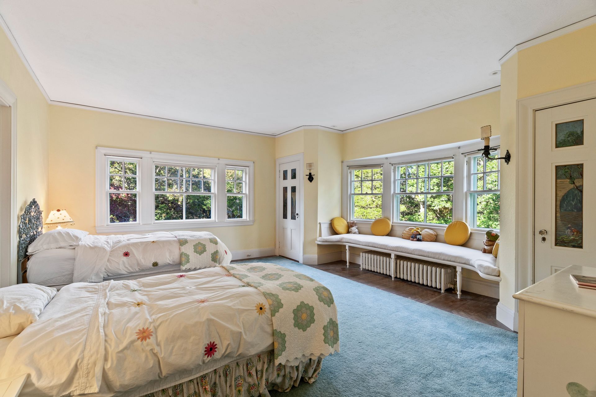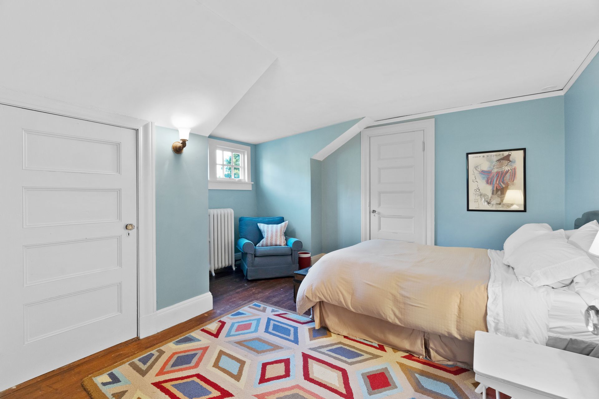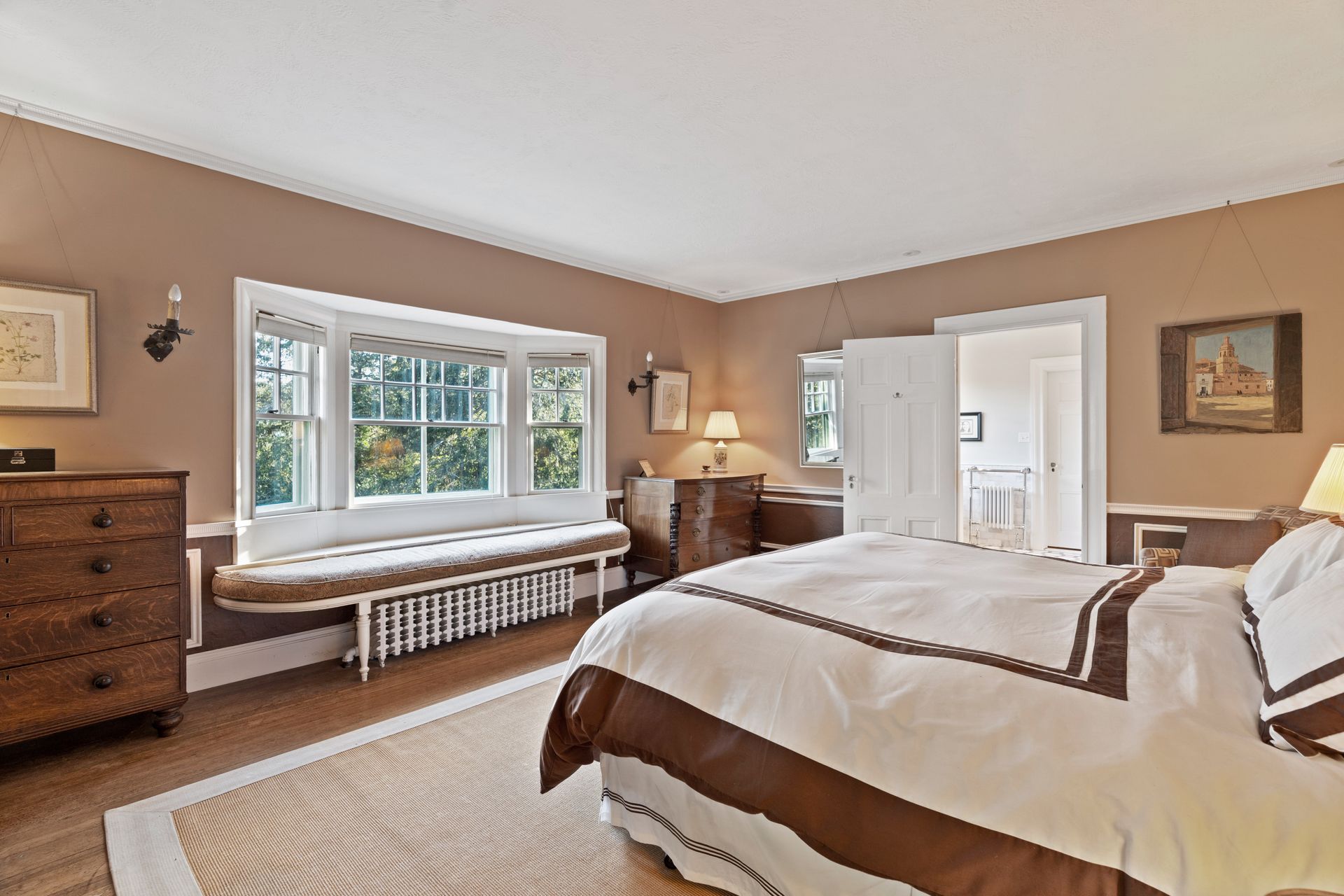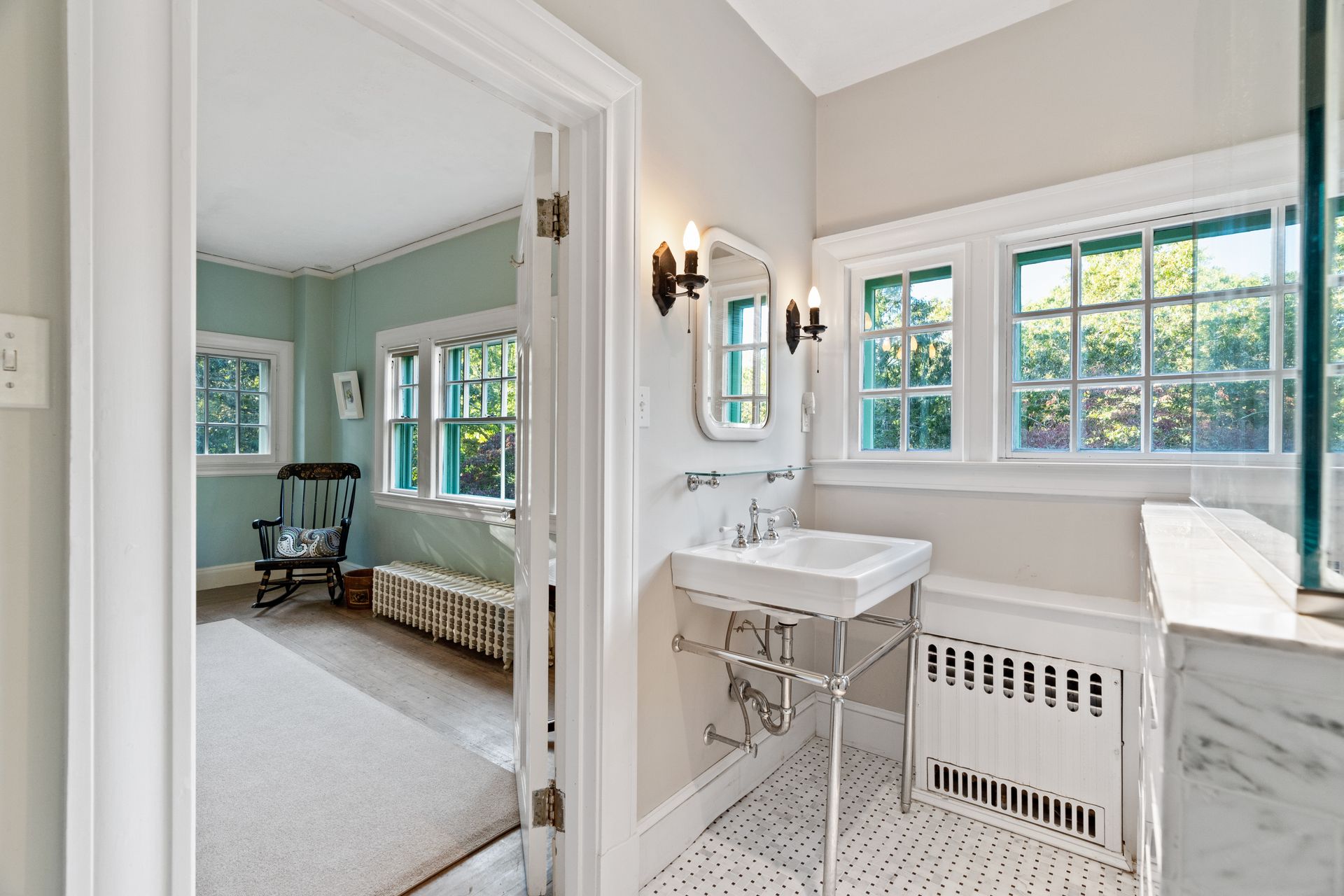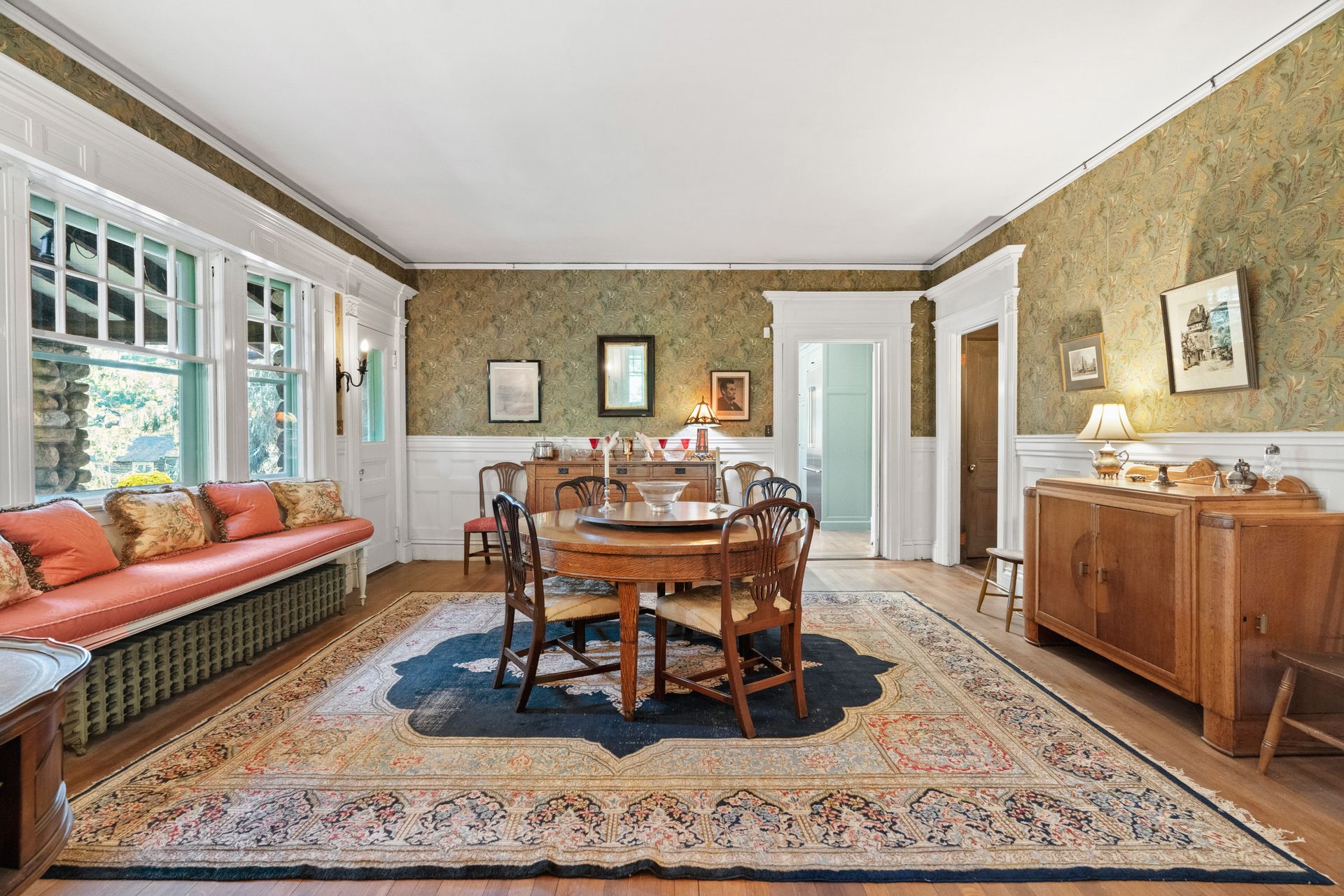 Built by Old Lyme Colony artist Harry Hoffman and his wife Beatrice Pope, "Chuluota" was constructed between 1908-1910 and designed to replicate an Italian Villa by Boston architects Magee and Rowe. This majestic, baronial like manor has elements that would be impossible to duplicate today. Constructed with local fieldstone and perched atop of Harding Hill and almost entirely surrounded by Old Lyme Preserve land, this iconic property boasts grandeur and privacy. A massive wrap around porch welcomes guests to this remarkable home which greets its inhabitants with 9'+ ceiling, four fireplaces and displays unusual and intriguing elements. Most of the light fixtures were acquired in Spain when Harry and Beatrice travelled there during the two years that the house was being built. The stone fireplace in Harry's studio has a massive fabricated mantle with lion-heads. The music room has hand-stenciled walls by the artist's wife, Beatrice. But, surely, the highlight of the home is the painted panels in the living room and the upstairs bedroom. Like the tradition at the Florence Griswold Museum for Old Lyme Colony artists, Harry chose to paint various, artistic scenes in the wood panels of his home which still remain on display today. A custom kitchen enhances the home. Agent owner.
