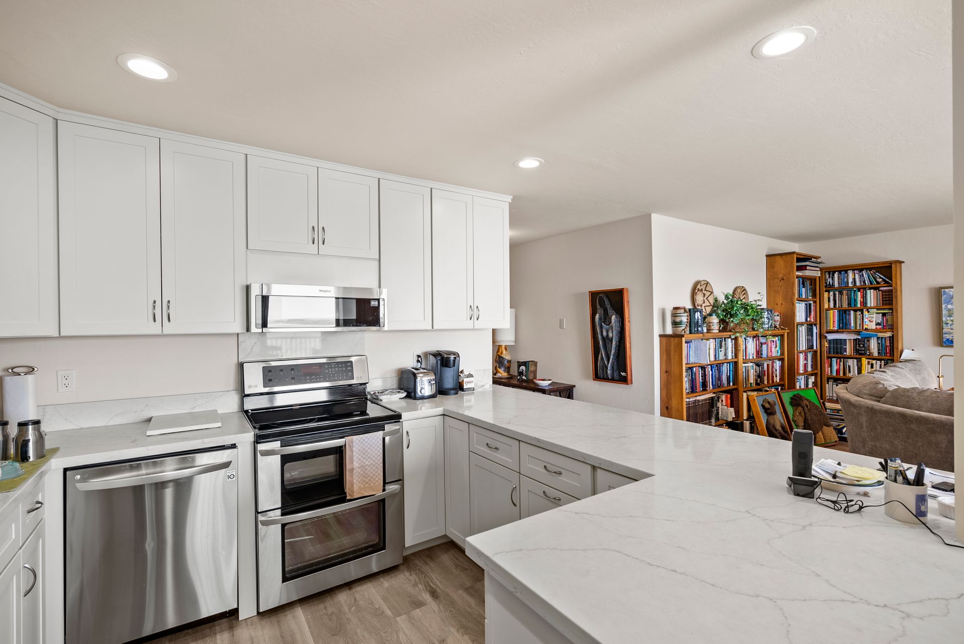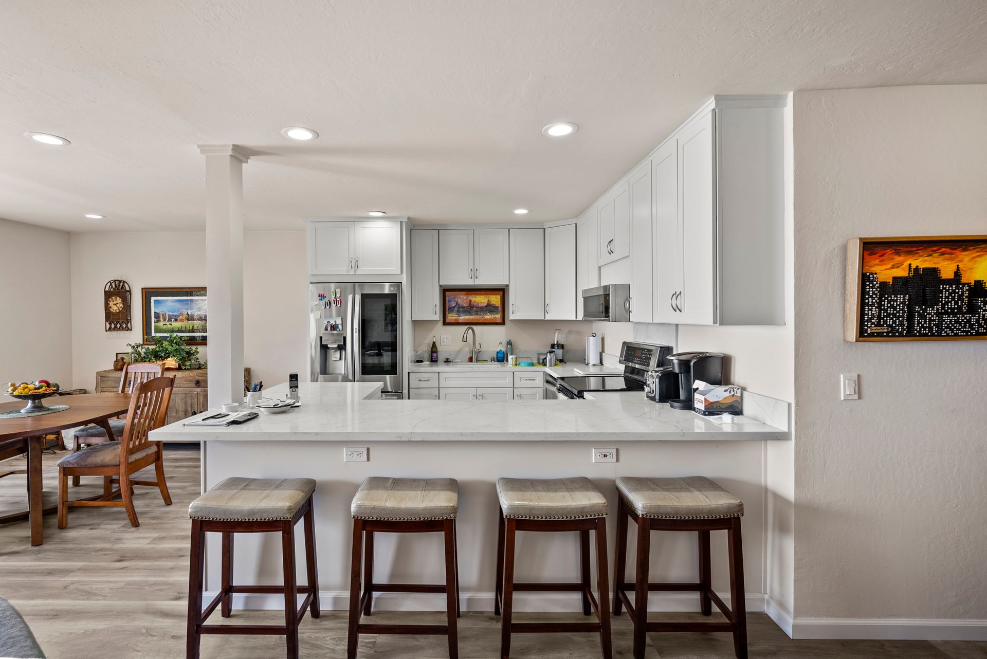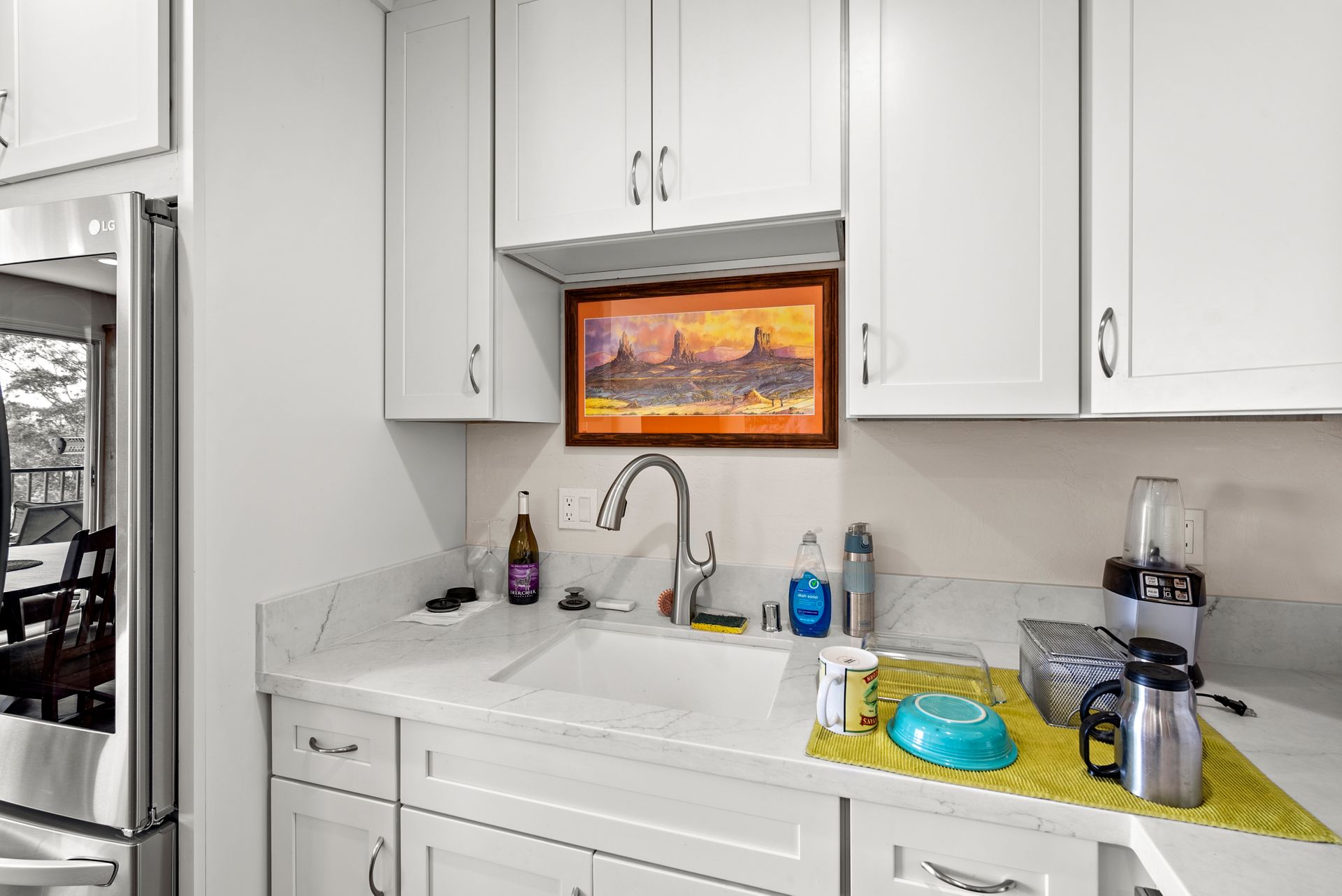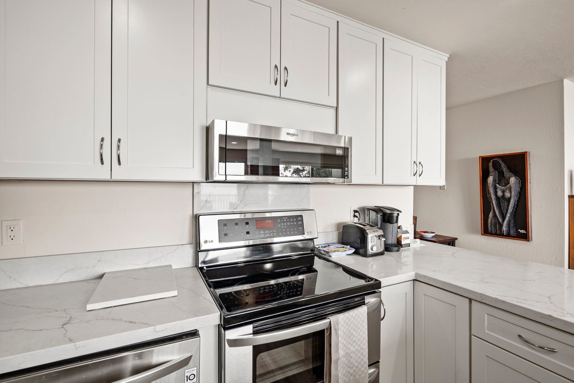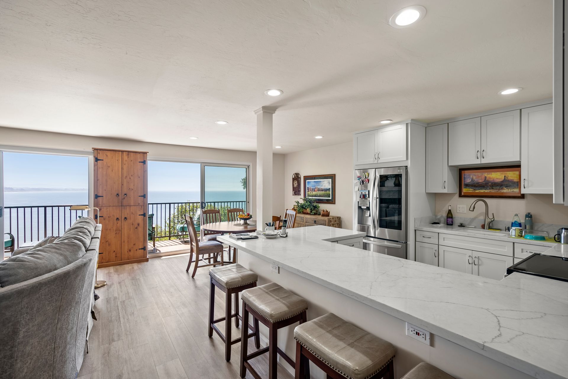 In the beautifully remodeled kitchen (with newer appliances) a wall was removed maximizing space and creating an open, great room to enjoy the spectacular ocean view. Enjoy an in-unit laundry with washer and dryer.