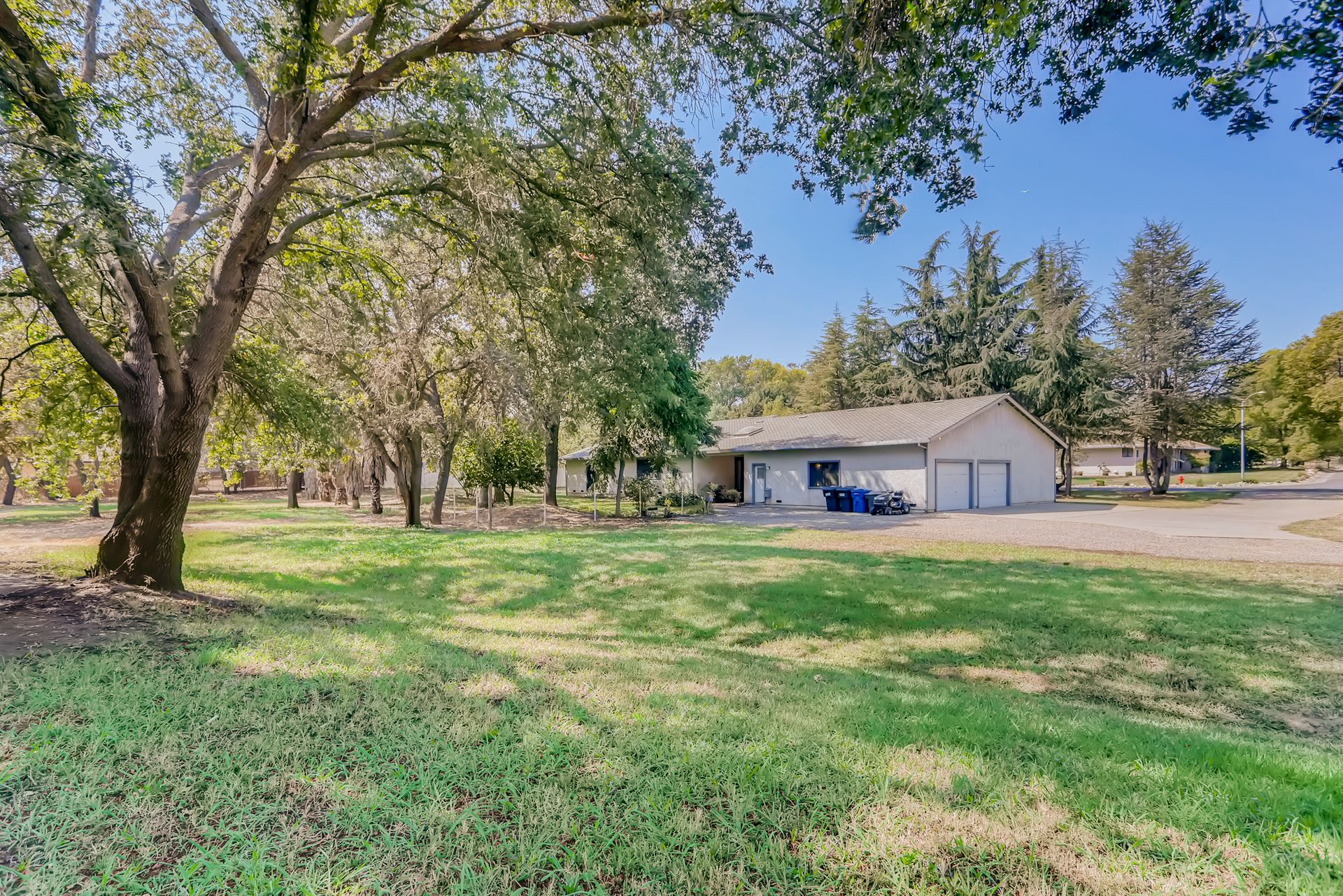 Unique, private Orangevale property offers space of all kinds. This well loved home on a quiet cul-de-sac sits on 1 acre and is ready for you to put your stamp on it. The home boasts large bedrooms and spacious full bathrooms. The great room concept kitchen/family room is expansive with vaulted ceilings and direct access to the covered breezeway. The kitchen layout and large, walk-in pantry offers plenty of space for modernization. If you need space for your cars, toys or hobbies, this is the garage for you! At approximately 1500 sq. ft., there is room for just about anything. Easily park 4 cars in tandem. Possibly space for a vehicle lift as well. 1/3 of the garage (approx. 575 sq. ft.) was originally planned for an ADU with the bathroom rough-in already in place. This space could be an ADU or even connected to the main house. The opportunities are limitless with this one-of-a-kind property.