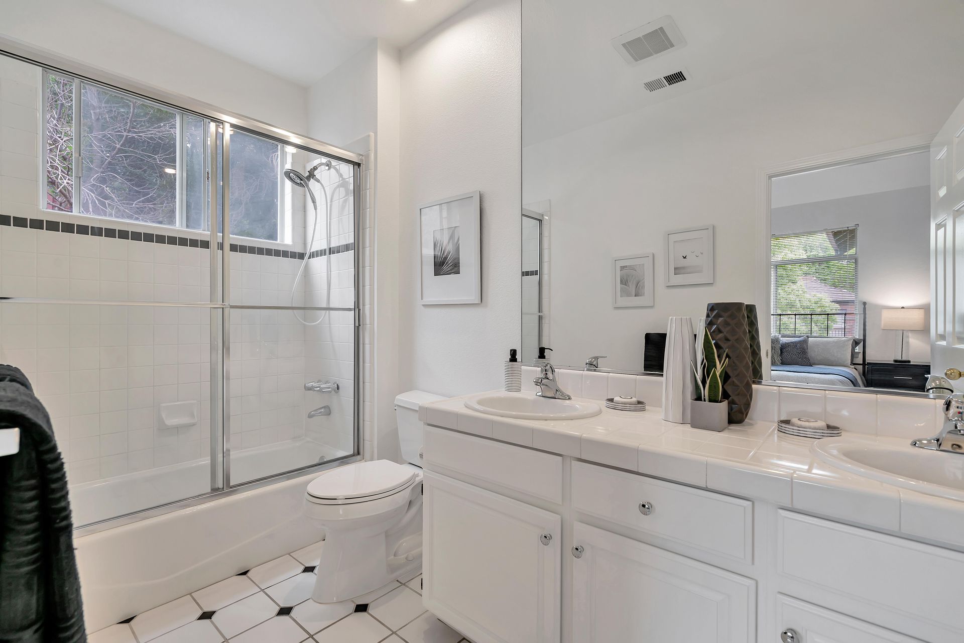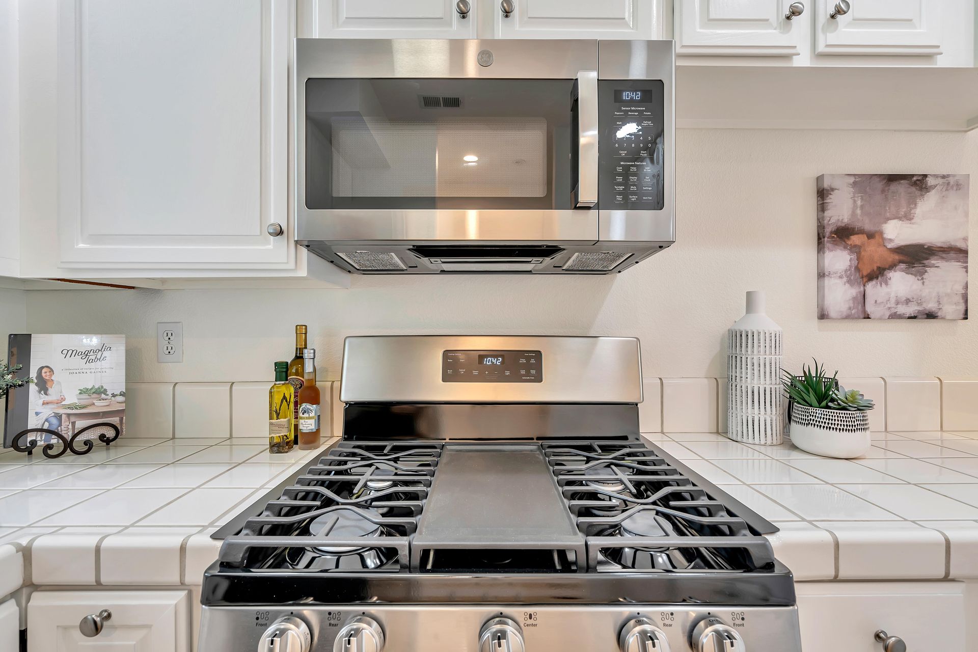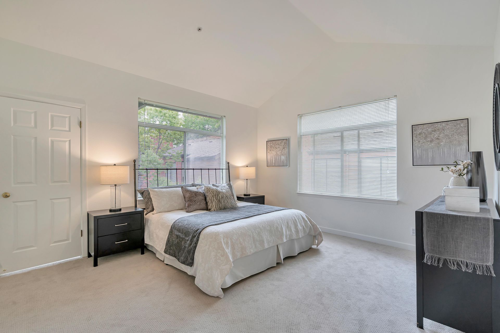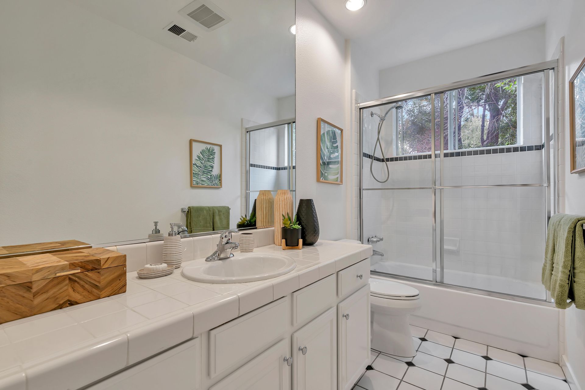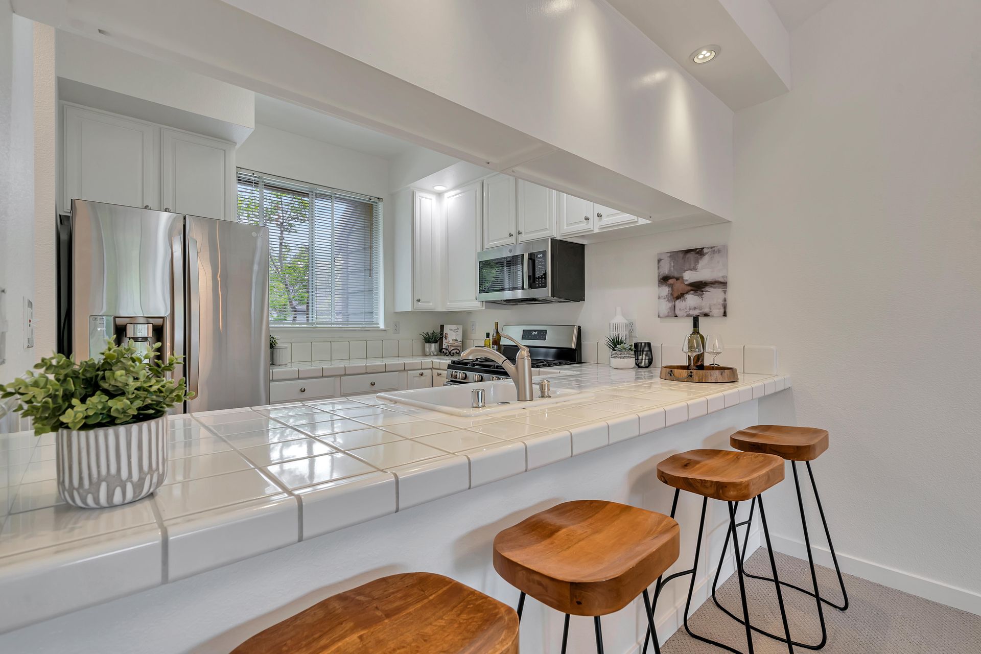 This is an amazing price for this charming, move-in ready, top floor end unit! Nestled on a private lane in a serene setting, this light and airy, two bedroom, two bath plus den (can be ideally used for a third bedroom) home features vaulted ceilings, a fireplace, newer carpeting, fresh paint, a newly installed stainless stove/microwave, a single-car garage with storage and one additional assigned parking spot. Enjoy summer evenings on your private balcony or stroll to town for shopping and fine restaurants.