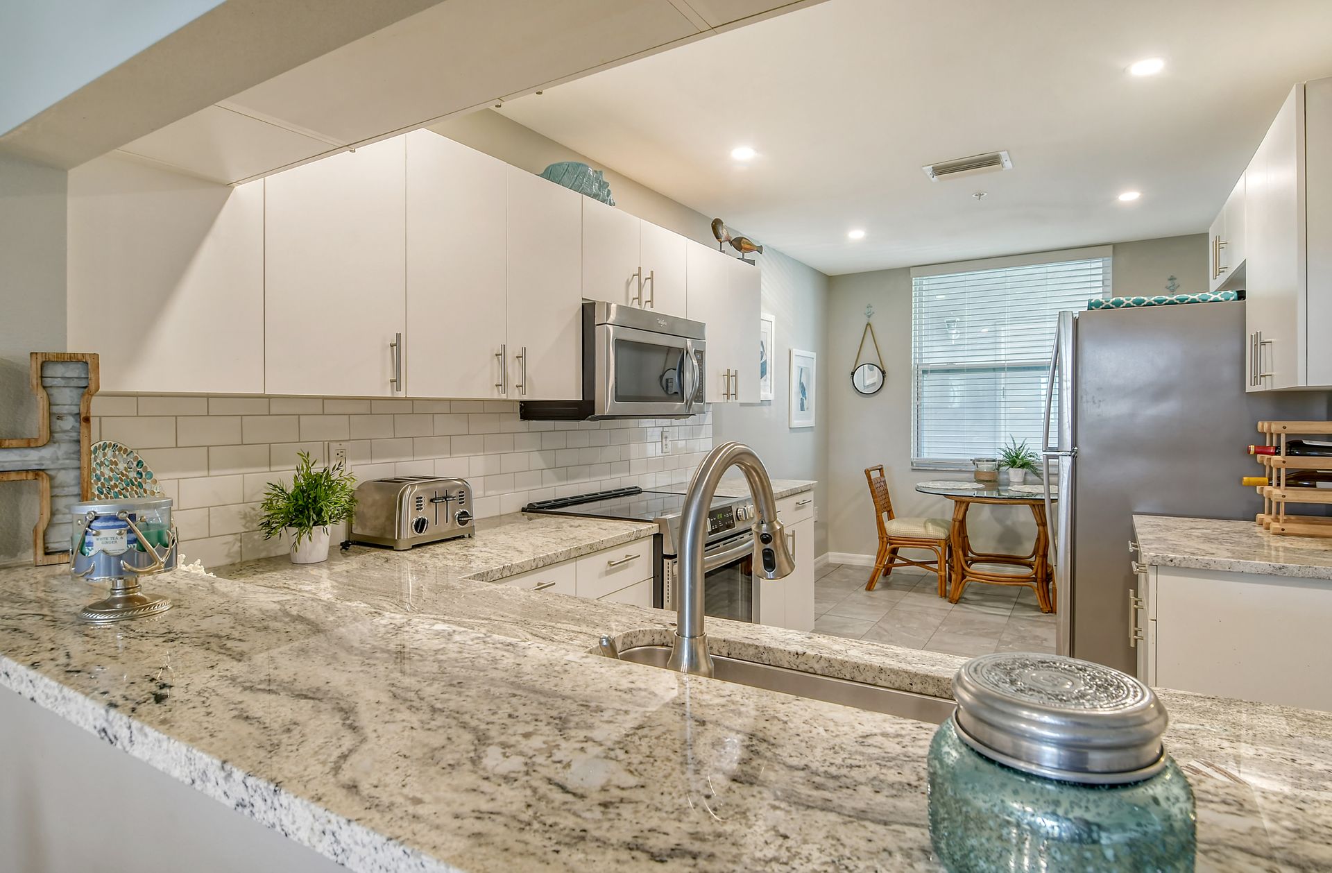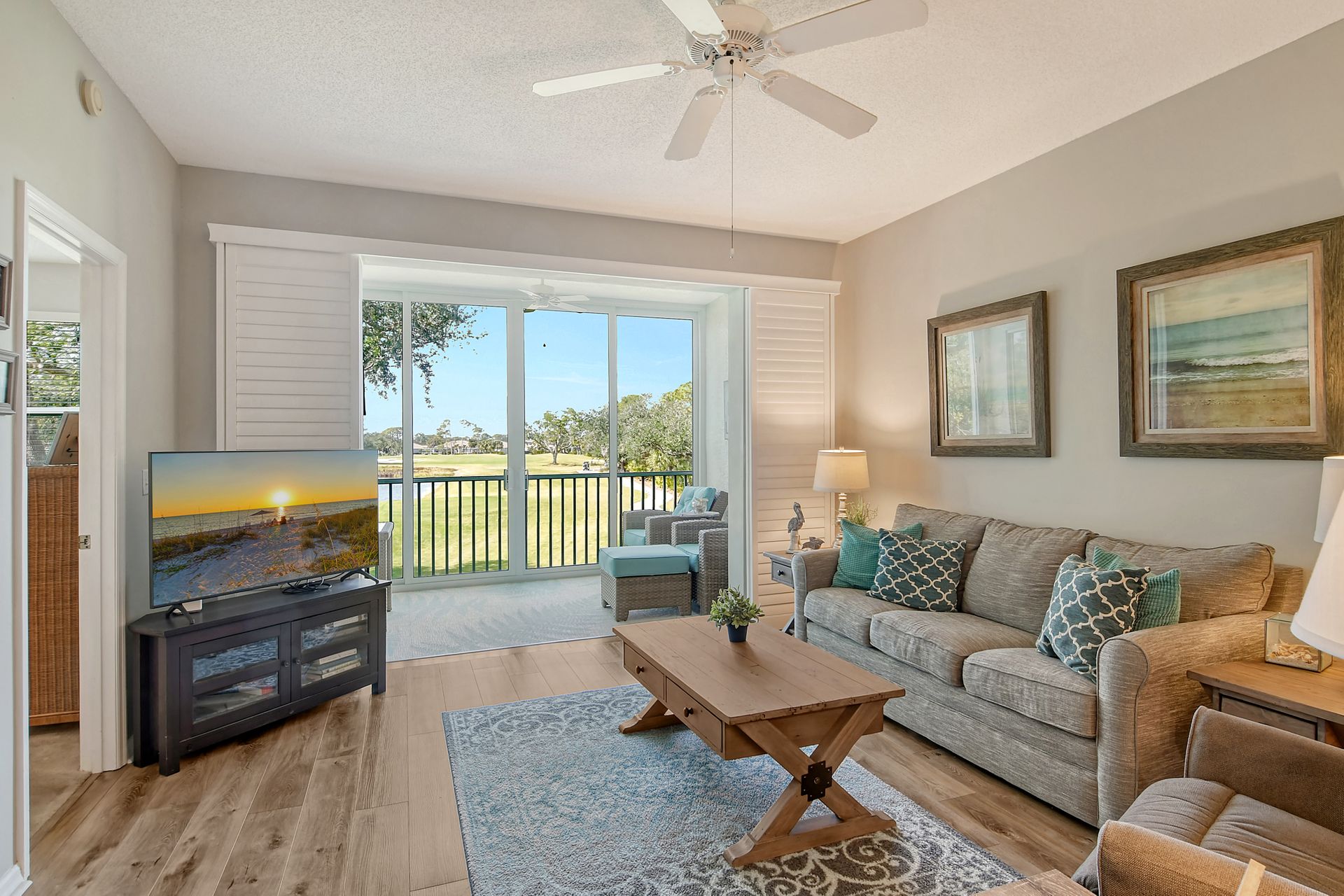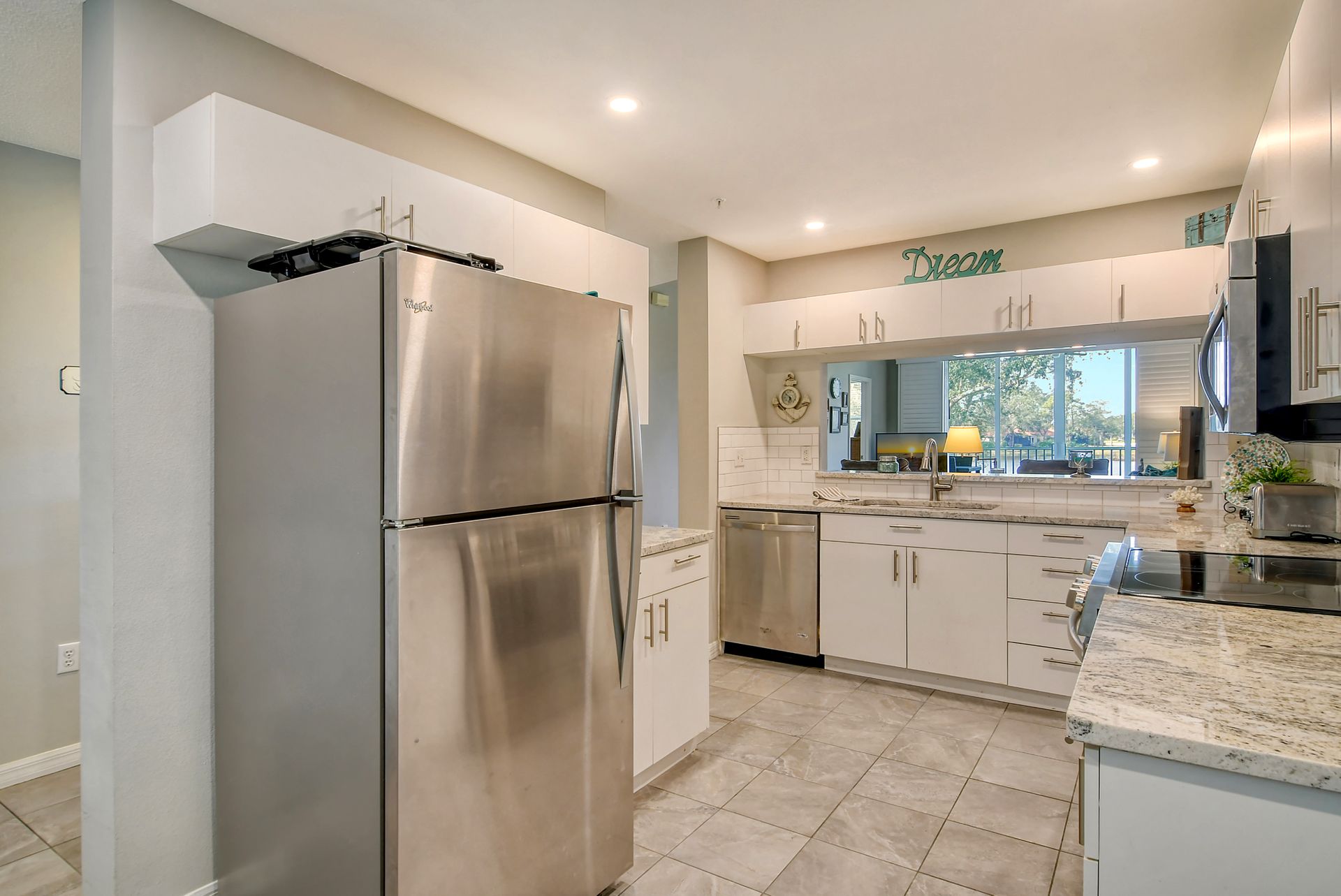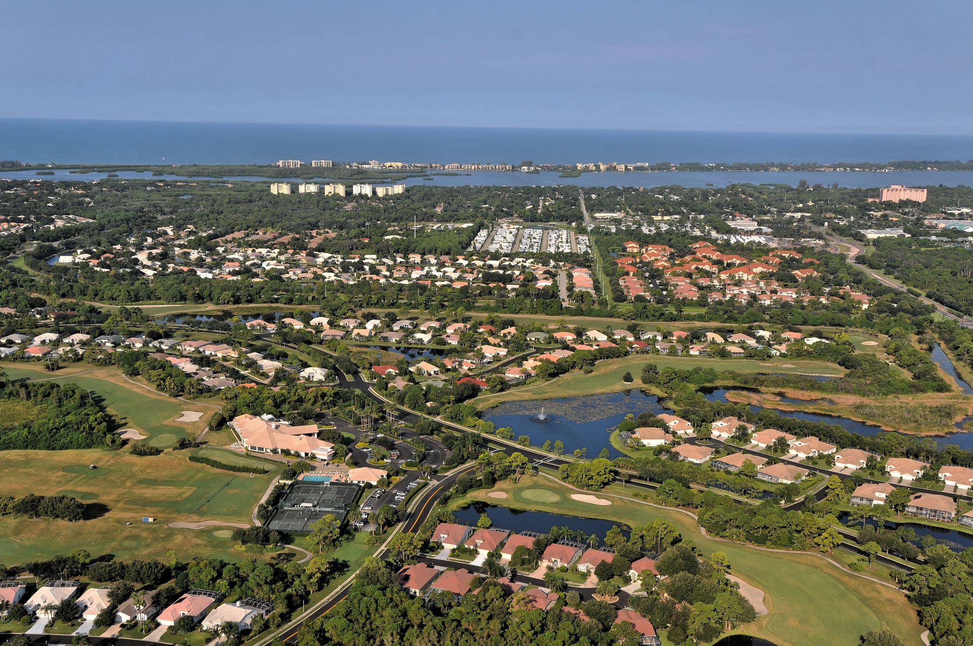 This beautifully furnished second-floor condo offers stunning views of the lake and the 9th Tee. Recently updated, you'll love the bright and open floor plan enhanced by impact windows throughout. The well-appointed kitchen is equipped with white cabinetry, granite countertops, stainless steel appliances and a dinette area that comfortably seats two to four people. The spacious living and dining areas seamlessly lead to a glass-enclosed lanai, with built-in screens for outdoor enjoyment and additional living space. The primary bedroom, with its generous walk-in closet, offers direct access to the lanai, providing picturesque views of the golf course and lake. The ensuite bathroom is equipped with a walk-in shower and ample counter space for two people. The guest room is equally inviting with two twin beds, while the guest bathroom conveniently houses a full-sized washer and dryer in the closet. The Terrace is a vibrant neighborhood with numerous social events and amenities, including a community pool, tennis and pickleball courts. Each unit includes its own carport space plus an external storage closet. Stoneybrook, a premier member-owned country club, features a newly redesigned Arthur Hill 18-hole golf course, a pro shop, indoor and outdoor dining options, a Har-Tru tennis facility, an impressive fitness center, and an additional community pool and spa. Perfectly situated just minutes from Siesta Key, a variety of shopping options, and adjacent to the Legacy Trail, this condo offers the perfect opportunity to enjoy the sought-after Sarasota Lifestyle. Schedule your appointment today to experience this exceptional property firsthand!