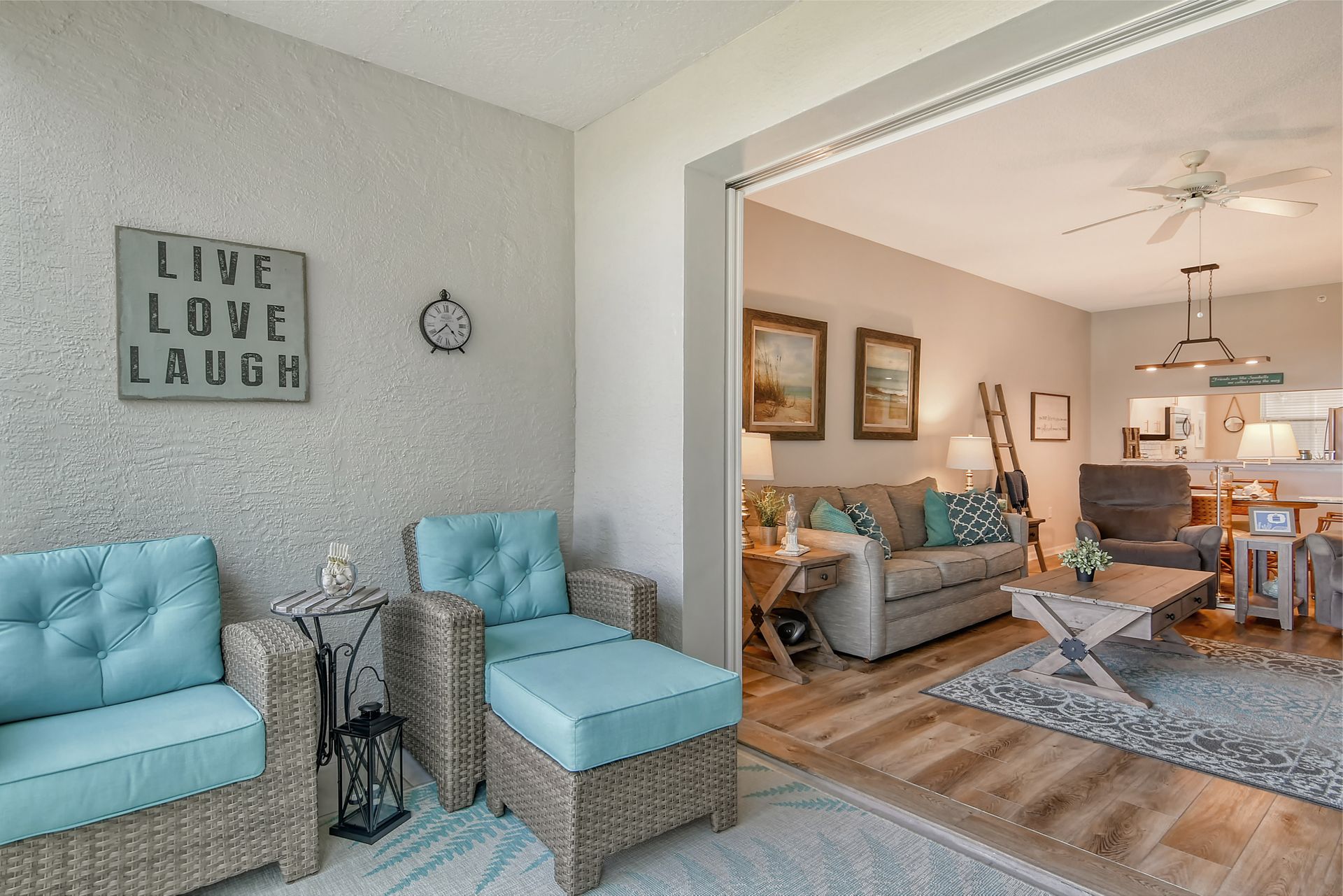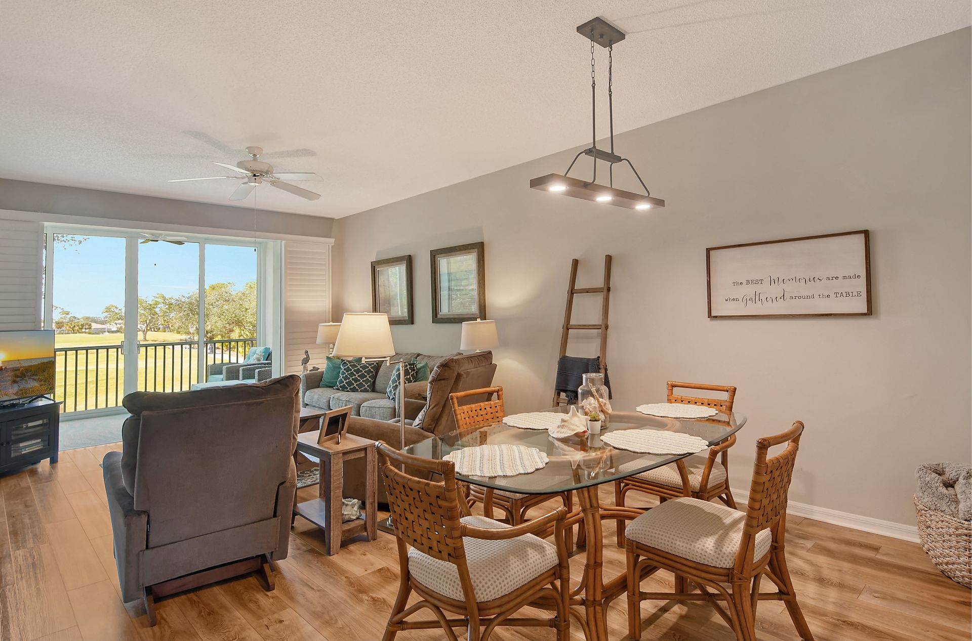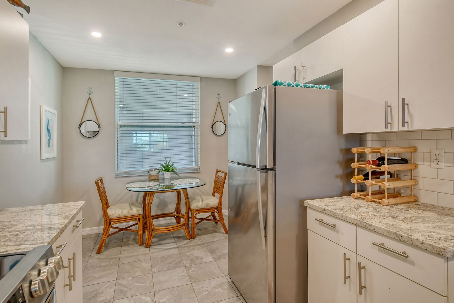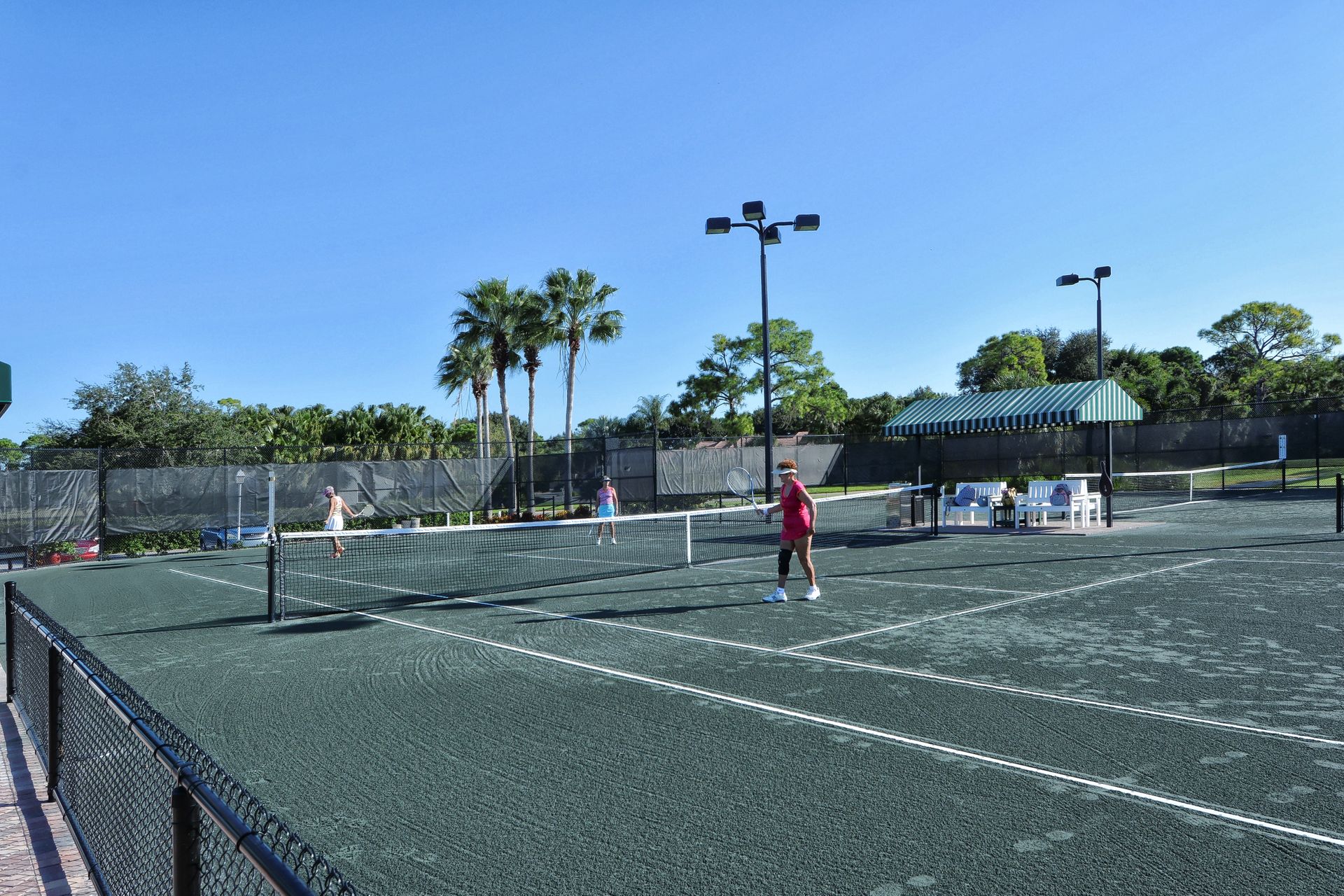 This beautifully furnished second-floor condo offers stunning views of the lake and the 9th Tee. Recently updated, you'll love the bright and open floor plan enhanced by impact windows throughout. The well-appointed kitchen is equipped with white cabinetry, granite countertops, stainless steel appliances and a dinette area that comfortably seats two to four people. The spacious living and dining areas seamlessly lead to a glass-enclosed lanai, with built-in screens for outdoor enjoyment and additional living space. The primary bedroom, with its generous walk-in closet, offers direct access to the lanai, providing picturesque views of the golf course and lake. The ensuite bathroom is equipped with a walk-in shower and ample counter space for two people. The guest room is equally inviting with two twin beds, while the guest bathroom conveniently houses a full-sized washer and dryer in the closet. The Terrace is a vibrant neighborhood with numerous social events and amenities, including a community pool, tennis and pickleball courts. Each unit includes its own carport space plus an external storage closet. Stoneybrook, a premier member-owned country club, features a newly redesigned Arthur Hill 18-hole golf course, a pro shop, indoor and outdoor dining options, a Har-Tru tennis facility, an impressive fitness center, and an additional community pool and spa. Perfectly situated just minutes from Siesta Key, a variety of shopping options, and adjacent to the Legacy Trail, this condo offers the perfect opportunity to enjoy the sought-after Sarasota Lifestyle. Schedule your appointment today to experience this exceptional property firsthand!