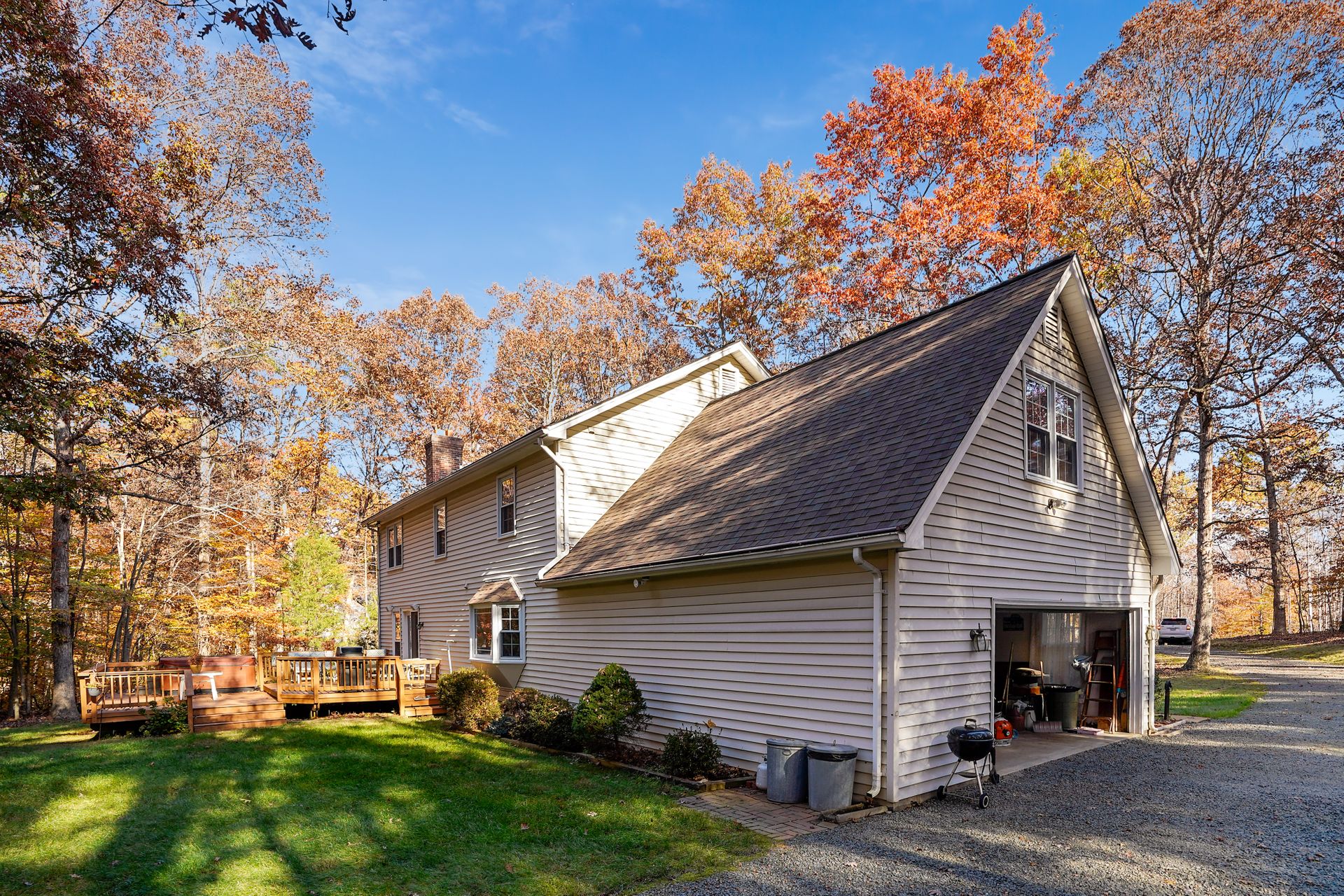 Enjoy this large home tucked away and offering ultimate privacy with all the conveniences of the city. This recently refreshed 3-level single family home sits on 5 pristine acres, just 40 miles from DC, and has a 2-car attached garage, additional oversized detached garage, large rear deck, and shed - all waiting for you to call home. The newly renovated kitchen offers stainless steel Whirlpool appliances, granite counters, bay window, breakfast area, and lots of natural light. The formal living and dining areas are flexible and can easily be converted into office areas. The family room is large and opens to the large deck with hot tub. Four bedrooms on the upper level all have fantastic views of the woods on the property. The owner's suite is massive with a large walk-in closet and private bath with soaking tub, standing shower and two vanities. Spacious lower level has walkout access to the garden and is large enough for game room, full bath, and lots of additional storage. Located in Woodbine Forest and charging just $30 a month for HOA, it's almost like not having one. This gorgeous home is a must-see!