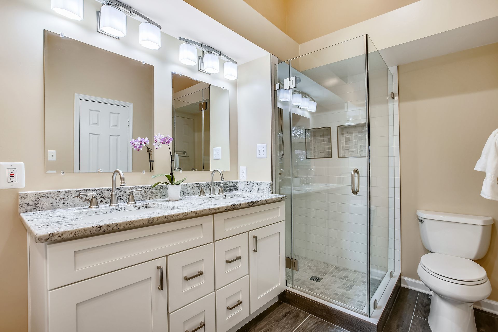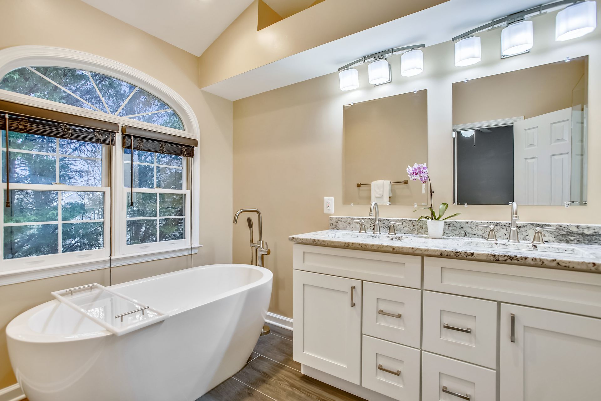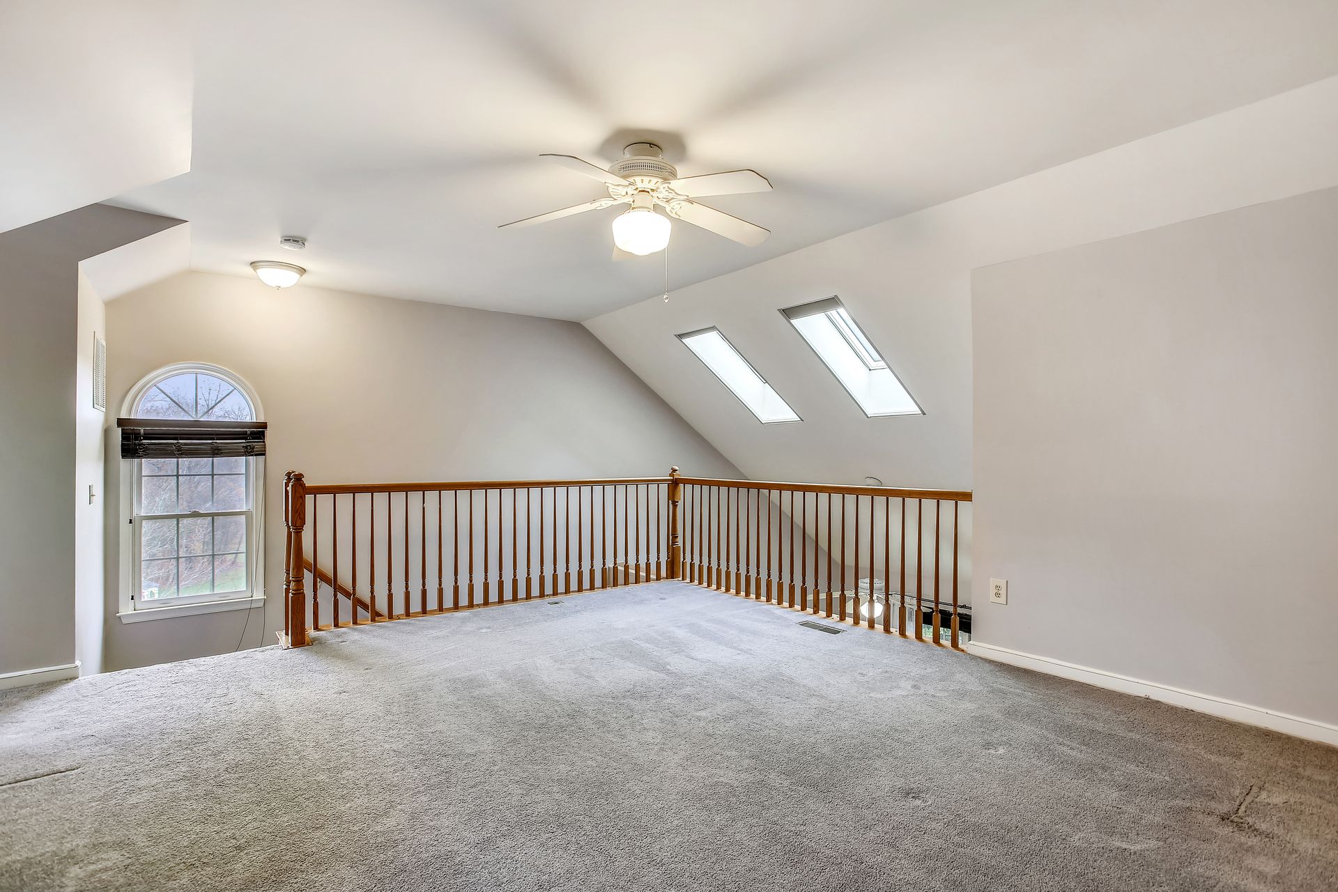 Upstairs find three generous bedrooms. Two of the bedrooms share a lovely hall full bath updated in 2020. The spacious primary suite offers vaulted ceilings and a large picture window that frames the room. Inside the large en-suite bath (updated in 2020) find a modern soaking tub, double vanity, recessed lighting, and stall shower. The expansive walk-in closet offers plenty of storage. Need a home office or gym? The primary suite’s private loft is the perfect spot.