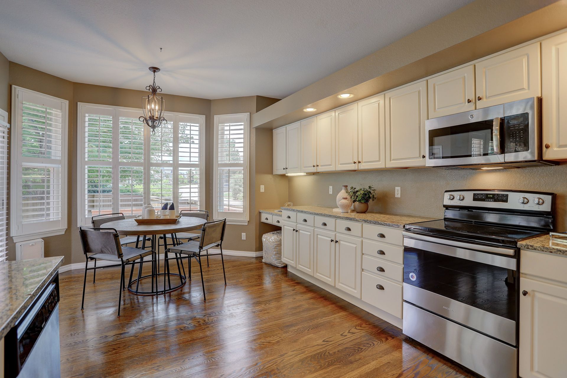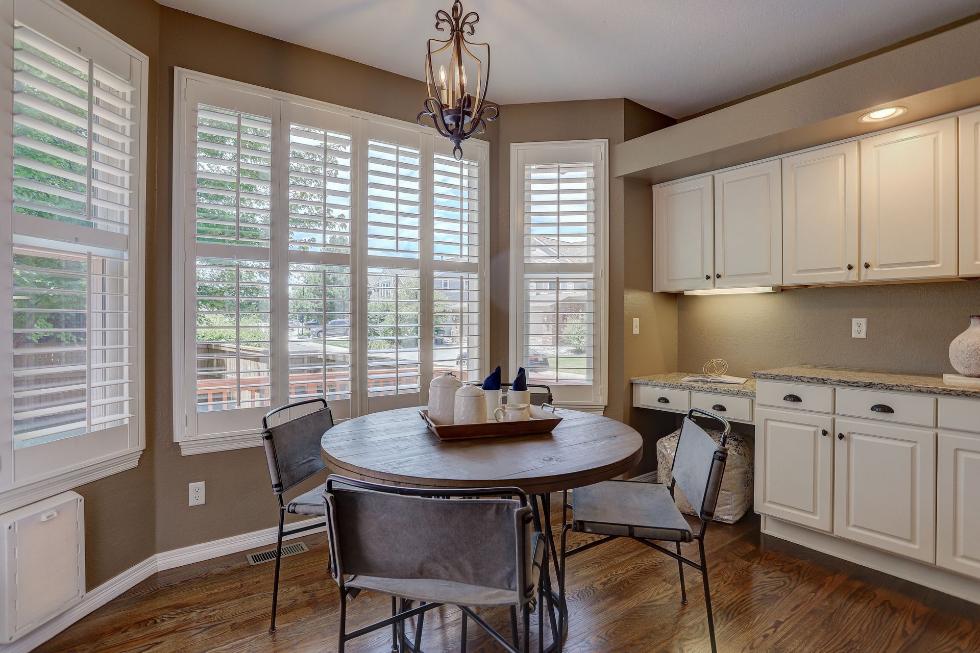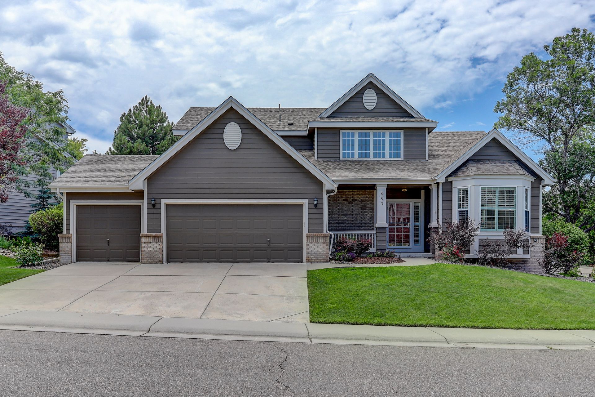 Situated on a large corner lot, your guests will be welcomed with a covered front porch and a dramatic two-story foyer. Formal entertaining will be a joy with this family room with bay window and adjoining dining room with tray ceiling. Plantation shutters throughout the main floor add a touch of elegance.