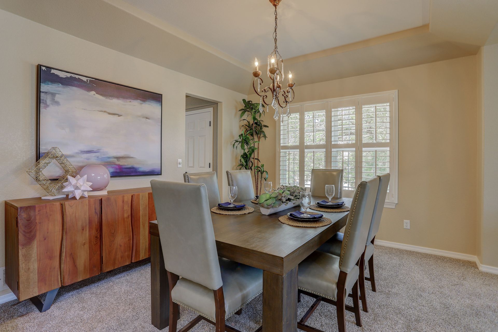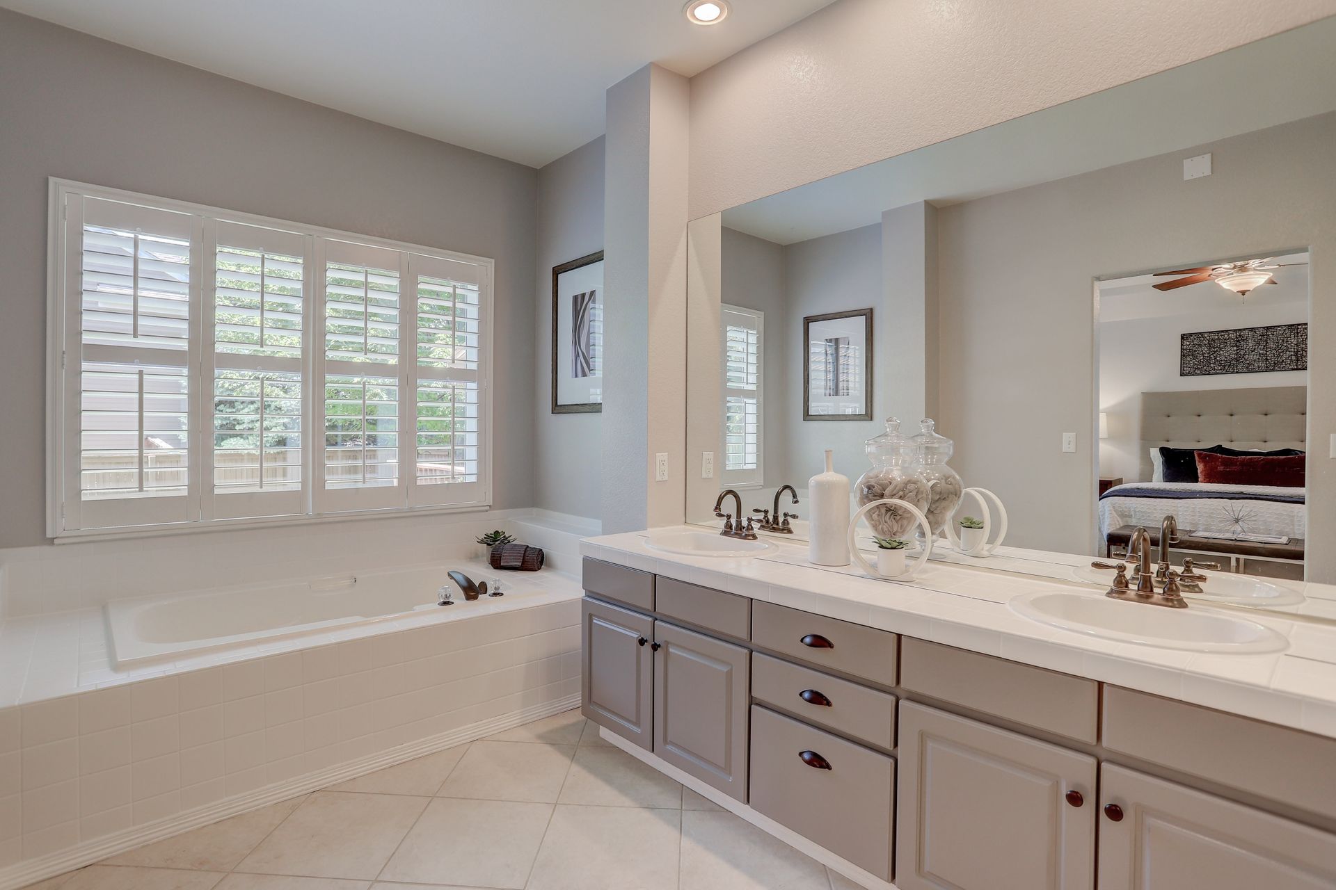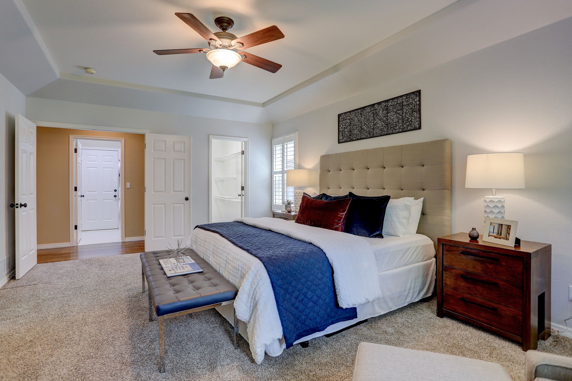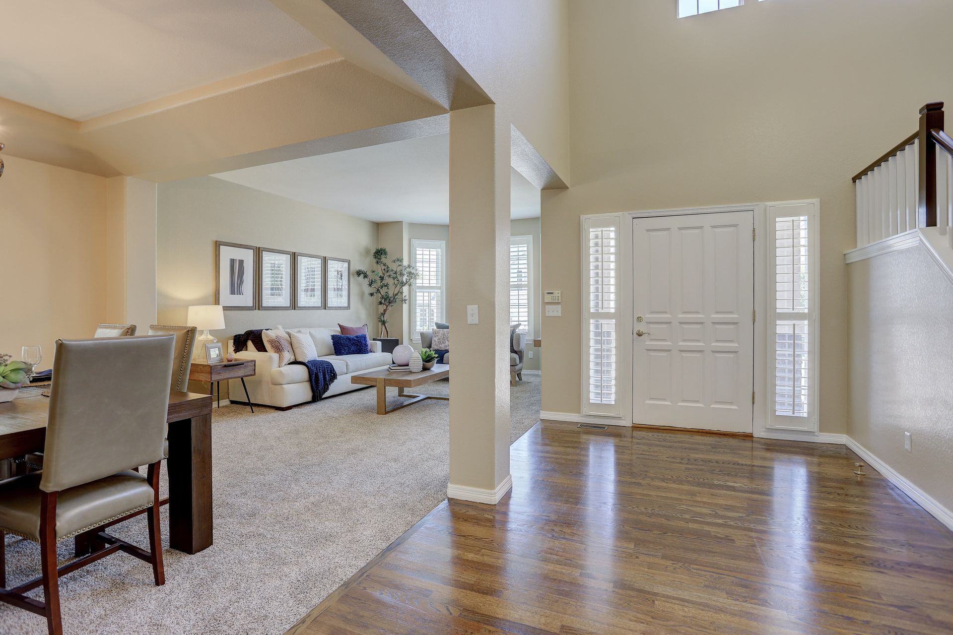 Situated on a large corner lot, your guests will be welcomed with a covered front porch and a dramatic two-story foyer. Formal entertaining will be a joy with this family room with bay window and adjoining dining room with tray ceiling. Plantation shutters throughout the main floor add a touch of elegance.