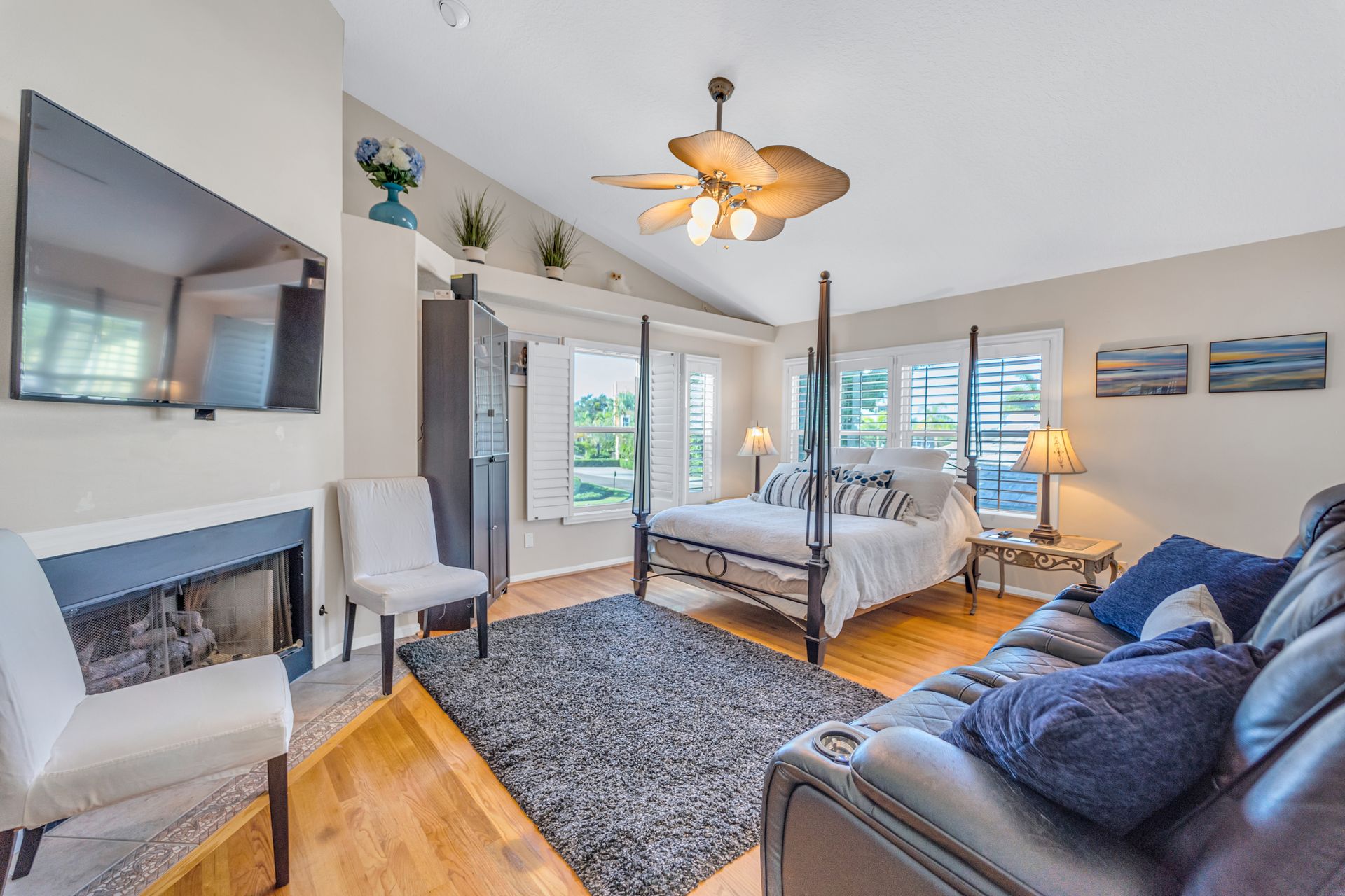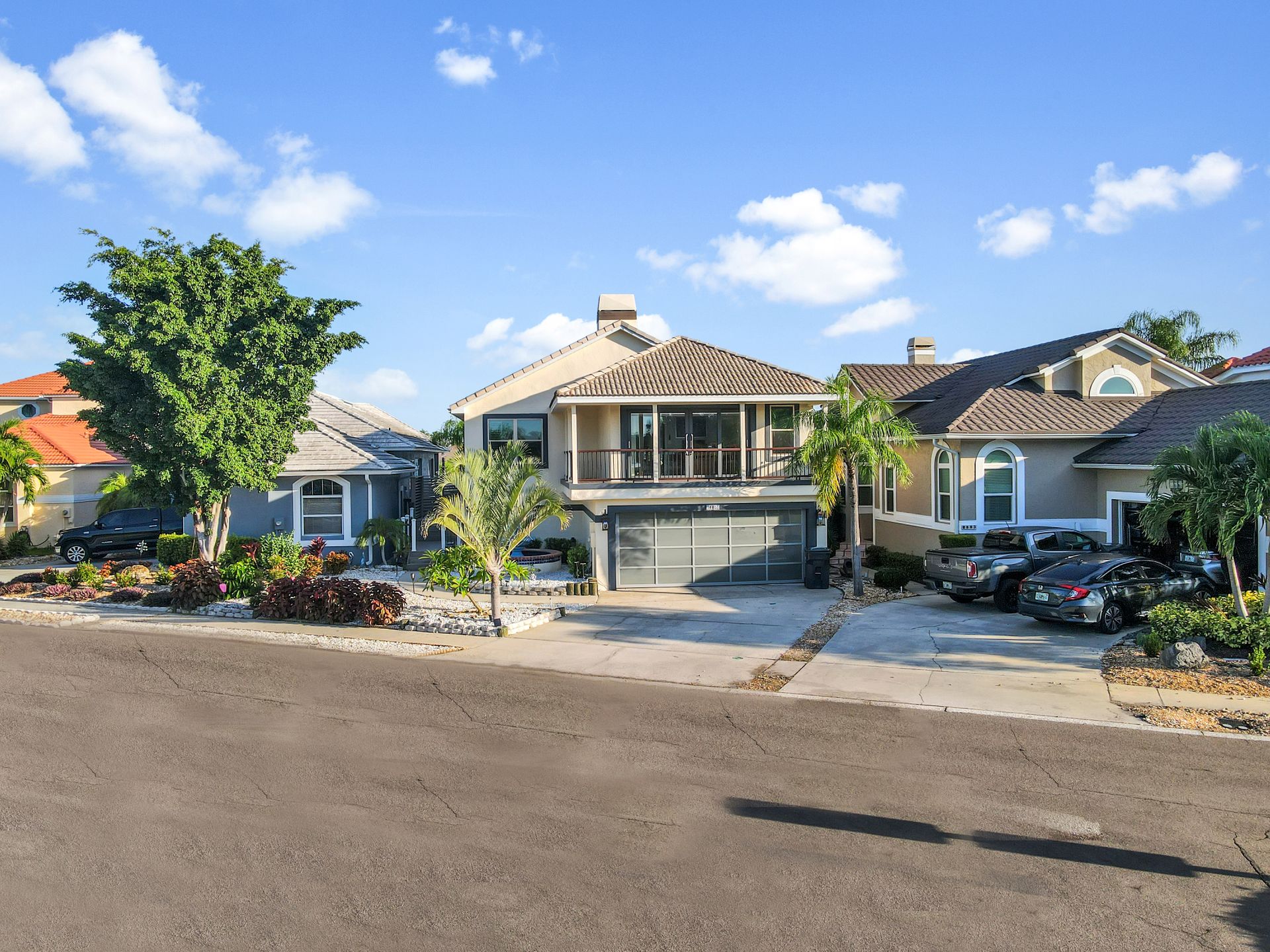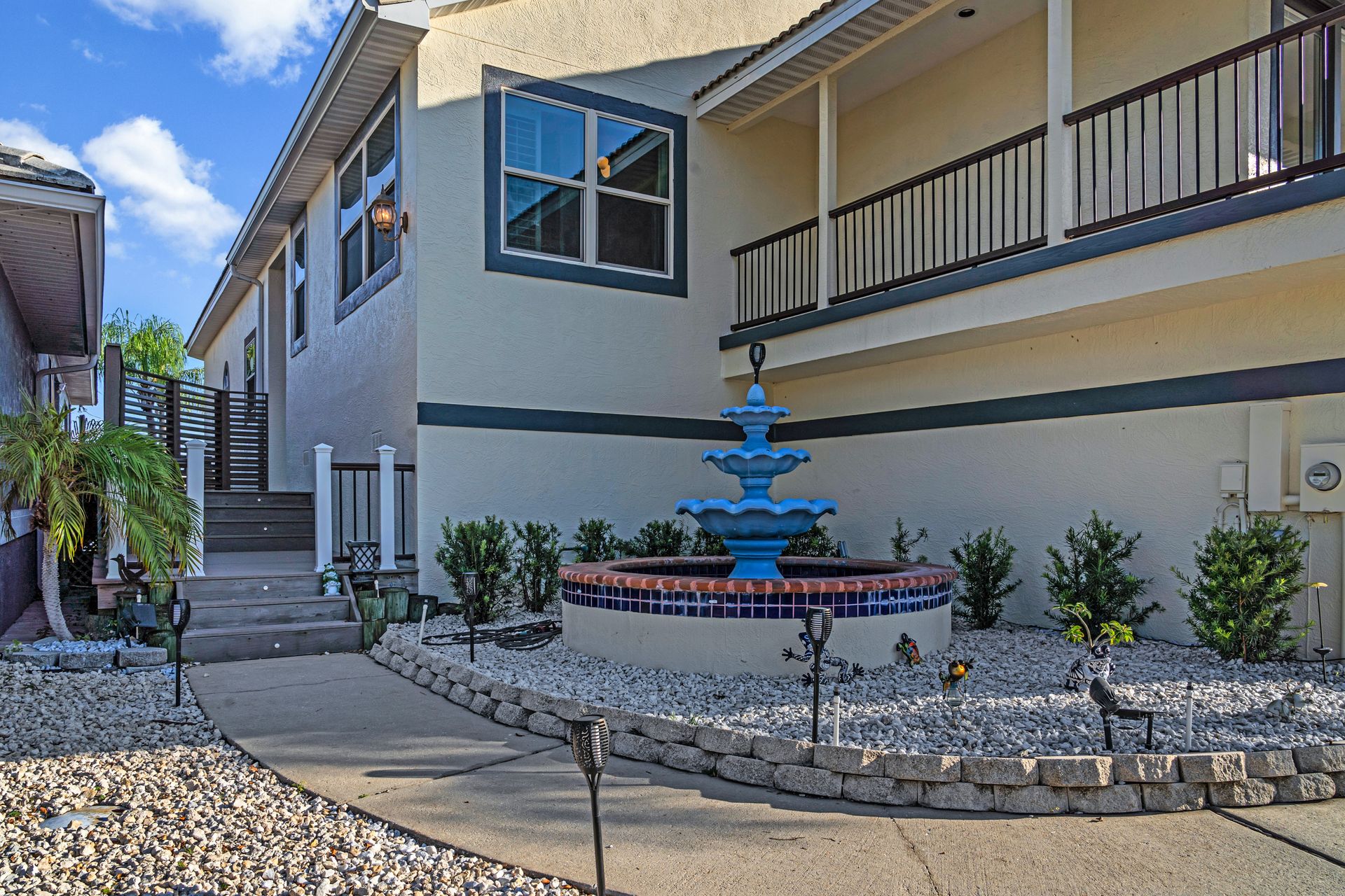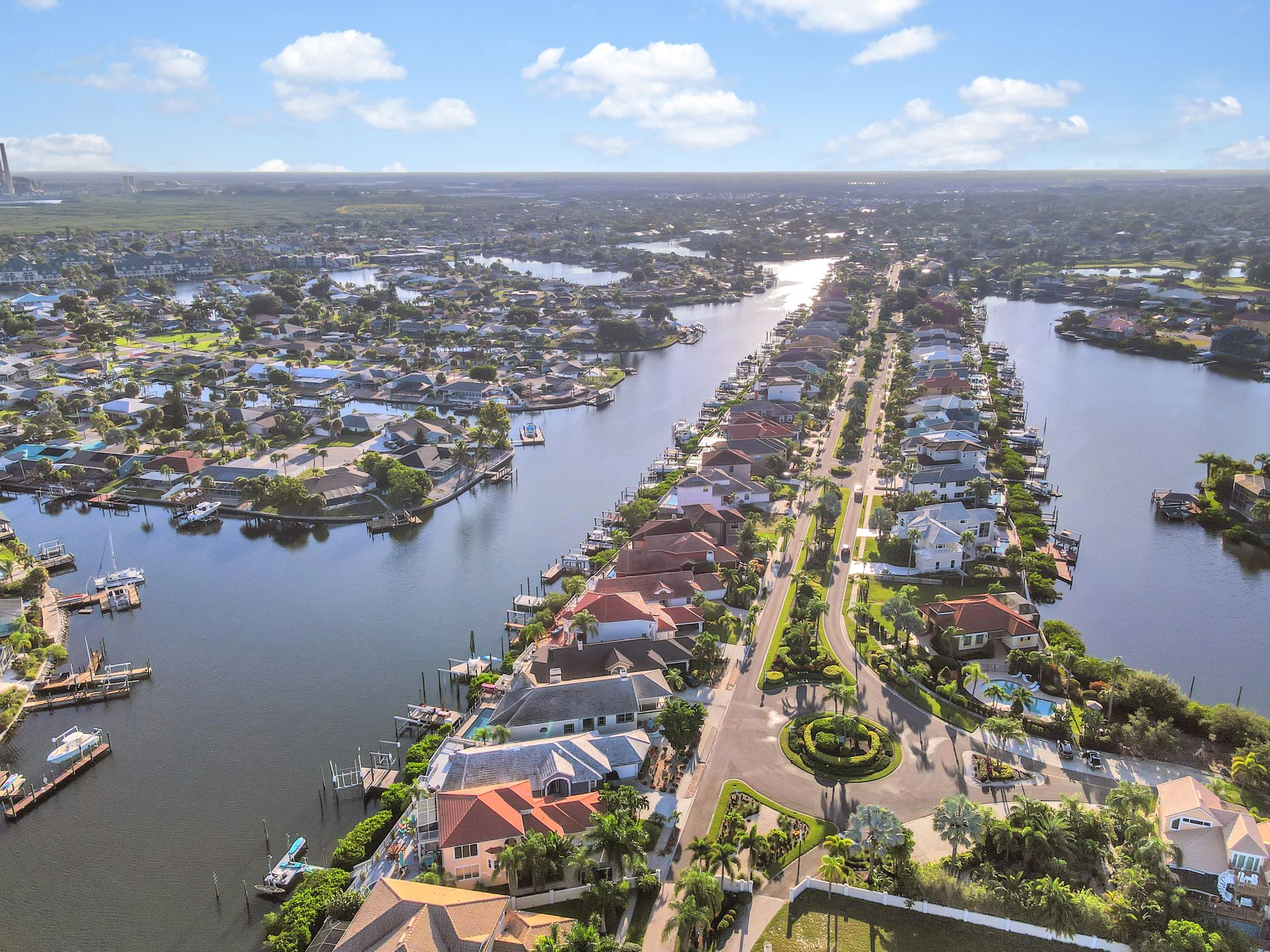 Welcome to intercoastal living at its finest! When entering past the guard checkpoint, you will notice the beautifully maintained common grounds as well as the stunning waterfront homes that adorn the streets on either side. Leading to the entry, step onto solid hardwood oak floors and a custom wood inlay that separates the foyer from the rest of the home. THIS THREE-BEDROOM THREE-BATHROOM HOME, WITH THE ADDITION OF A BONUS ROOM THAT CAN SERVE AS A FOURTH BEDROOM, IS A HOME YOU WON'T WANT TO MISS. The entire home has vaulted ceilings throughout with a grand open concept offering water views from the kitchen, dining, and main living areas. The living room has a gas-burning fireplace adorned with custom coastal decorative wood paneling from floor to ceiling. With custom floating glass and LED-lit stairs and a custom glass handrail throughout with LED lighting, enter the second level where the large dining room and kitchen are opened. The kitchen has all-wood custom cabinetry and a granite countertop with a great peninsula. Adjacent to this space includes a bonus room with a large on-suite bathroom and custom glass door sliders leading to a front wrap-around balcony. Another oversized bedroom sits on this level with a gas-burning fireplace that gives this room a unique ambiance with its vaulted ceilings. The primary bedroom also sits on the first level offering breathtaking water views and vaulted ceilings. The on-suite bath is equipped with a large jetted soaking tub and an oversized shower with a private toilet and a large walk-in closet. The staircase leading you to the third-floor level loft offers amazing water views. This level also offers a large mechanical room for added storage and hidden access into another unique space. Coming down this staircase you can access the back screened lanai where you can enjoy entertaining with water views. Head down onto the heated saltwater pool deck and continue down to the updated boat dock equipped with a 23,000-pound lift, BOAT ON PROPERTY IS UP FOR SALE AND CAN BE DISCOUNTED WITH THE PURCHASE OF THIS PROPERTY. The garage has an oversized glass door with parking enough for four cars tandemly. The garage also has an incredibly large storage/workspace, unlike any other property in this community. Come and see for yourself intercoastal living at its finest.