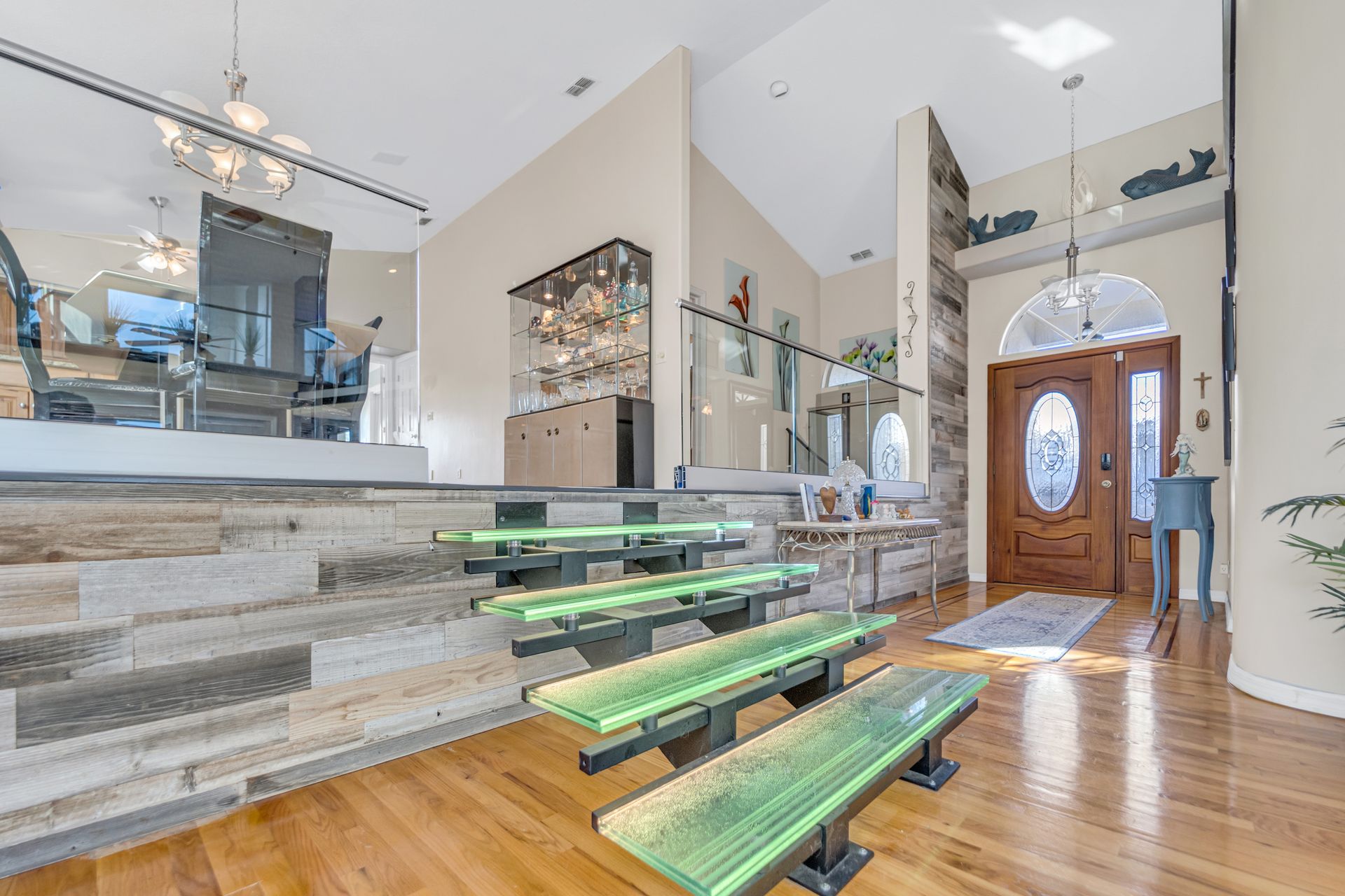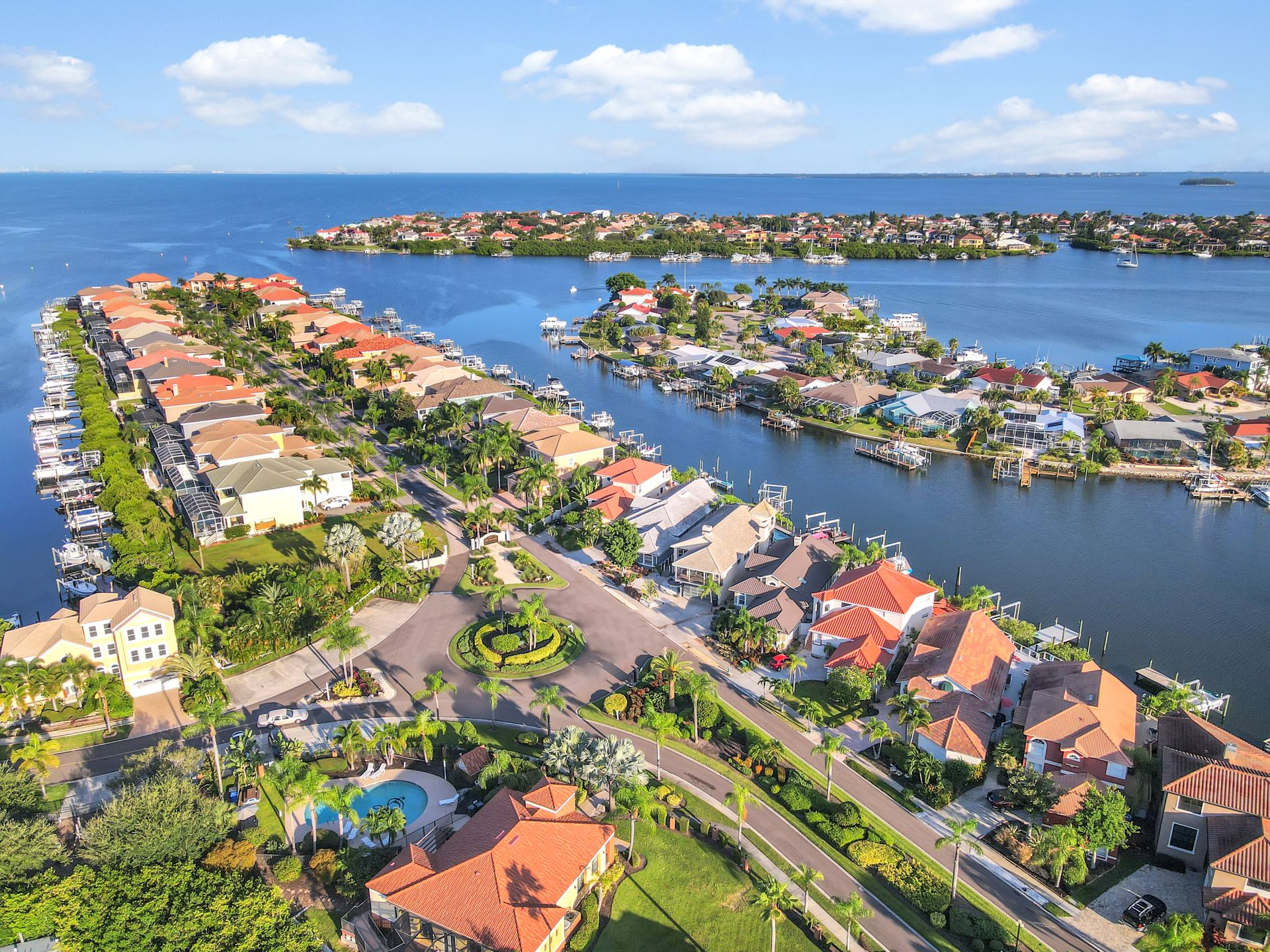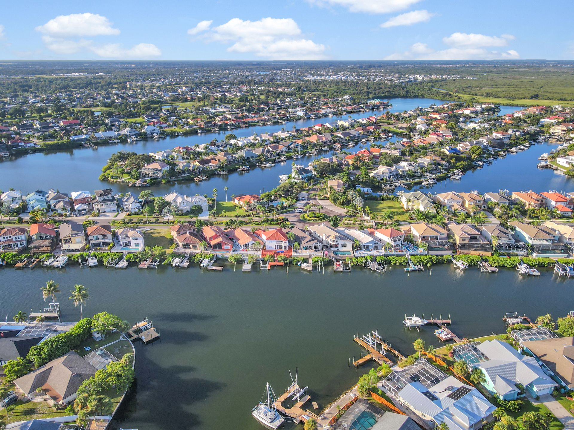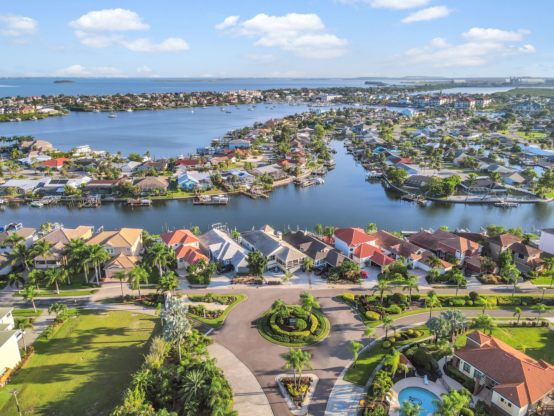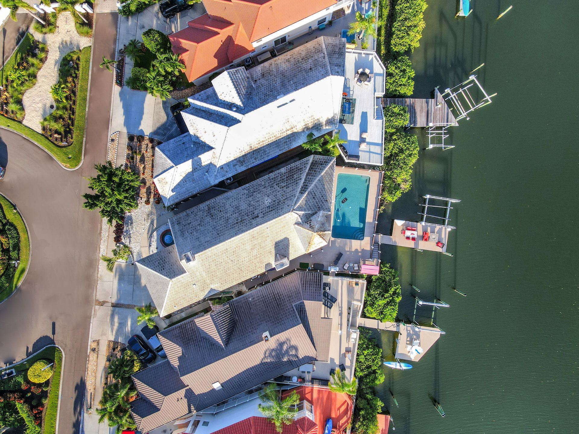 Welcome to intercoastal living at its finest! When entering past the guard checkpoint, you will notice the beautifully maintained common grounds as well as the stunning waterfront homes that adorn the streets on either side. Leading to the entry, step onto solid hardwood oak floors and a custom wood inlay that separates the foyer from the rest of the home. THIS THREE-BEDROOM THREE-BATHROOM HOME, WITH THE ADDITION OF A BONUS ROOM THAT CAN SERVE AS A FOURTH BEDROOM, IS A HOME YOU WON'T WANT TO MISS. The entire home has vaulted ceilings throughout with a grand open concept offering water views from the kitchen, dining, and main living areas. The living room has a gas-burning fireplace adorned with custom coastal decorative wood paneling from floor to ceiling. With custom floating glass and LED-lit stairs and a custom glass handrail throughout with LED lighting, enter the second level where the large dining room and kitchen are opened. The kitchen has all-wood custom cabinetry and a granite countertop with a great peninsula. Adjacent to this space includes a bonus room with a large on-suite bathroom and custom glass door sliders leading to a front wrap-around balcony. Another oversized bedroom sits on this level with a gas-burning fireplace that gives this room a unique ambiance with its vaulted ceilings. The primary bedroom also sits on the first level offering breathtaking water views and vaulted ceilings. The on-suite bath is equipped with a large jetted soaking tub and an oversized shower with a private toilet and a large walk-in closet. The staircase leading you to the third-floor level loft offers amazing water views. This level also offers a large mechanical room for added storage and hidden access into another unique space. Coming down this staircase you can access the back screened lanai where you can enjoy entertaining with water views. Head down onto the heated saltwater pool deck and continue down to the updated boat dock equipped with a 23,000-pound lift, BOAT ON PROPERTY IS UP FOR SALE AND CAN BE DISCOUNTED WITH THE PURCHASE OF THIS PROPERTY. The garage has an oversized glass door with parking enough for four cars tandemly. The garage also has an incredibly large storage/workspace, unlike any other property in this community. Come and see for yourself intercoastal living at its finest.