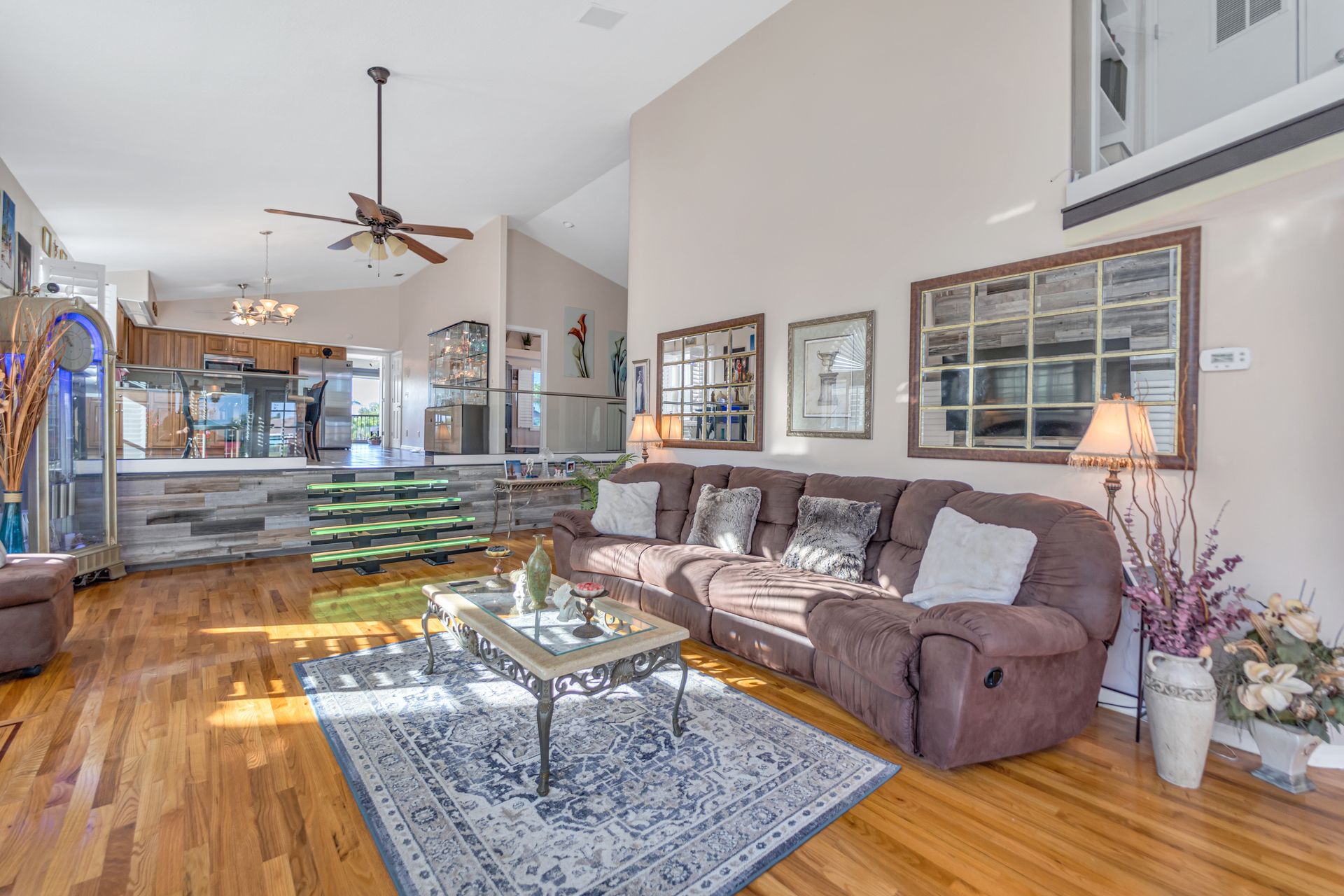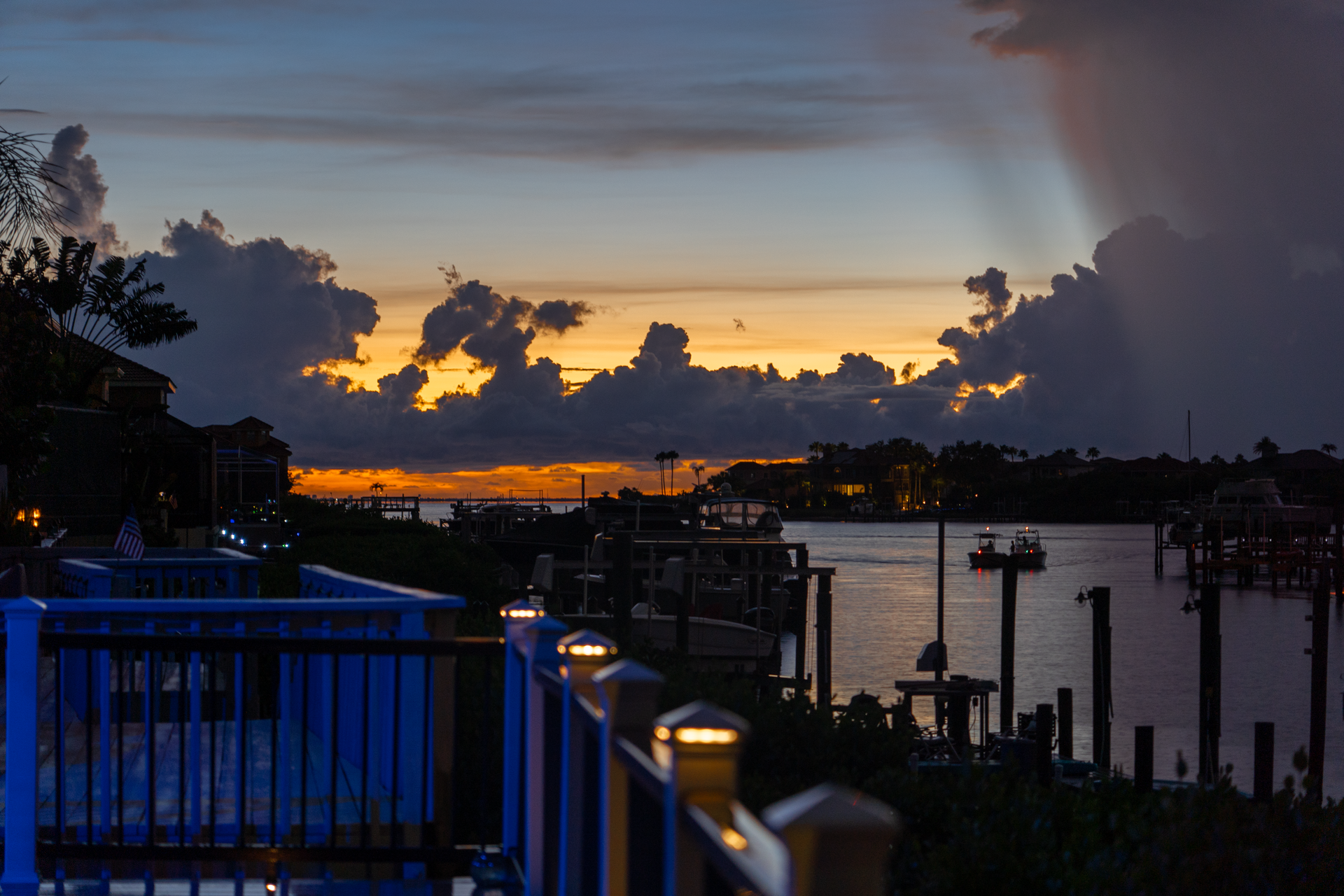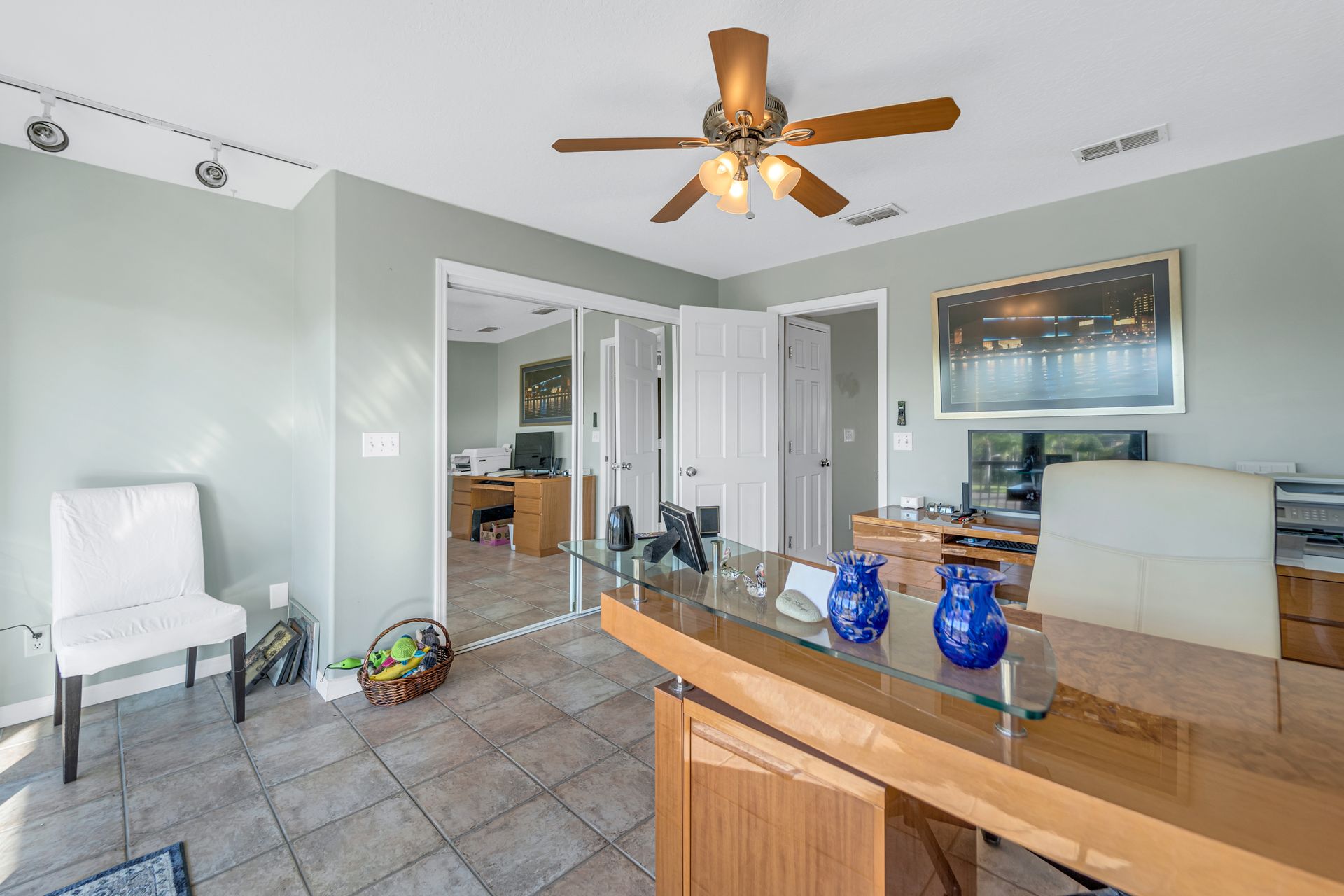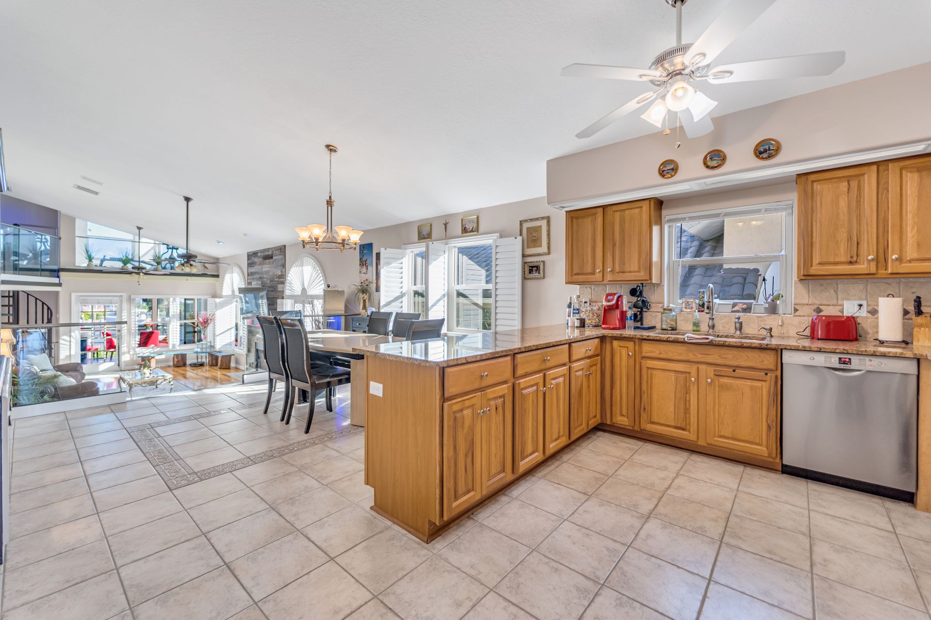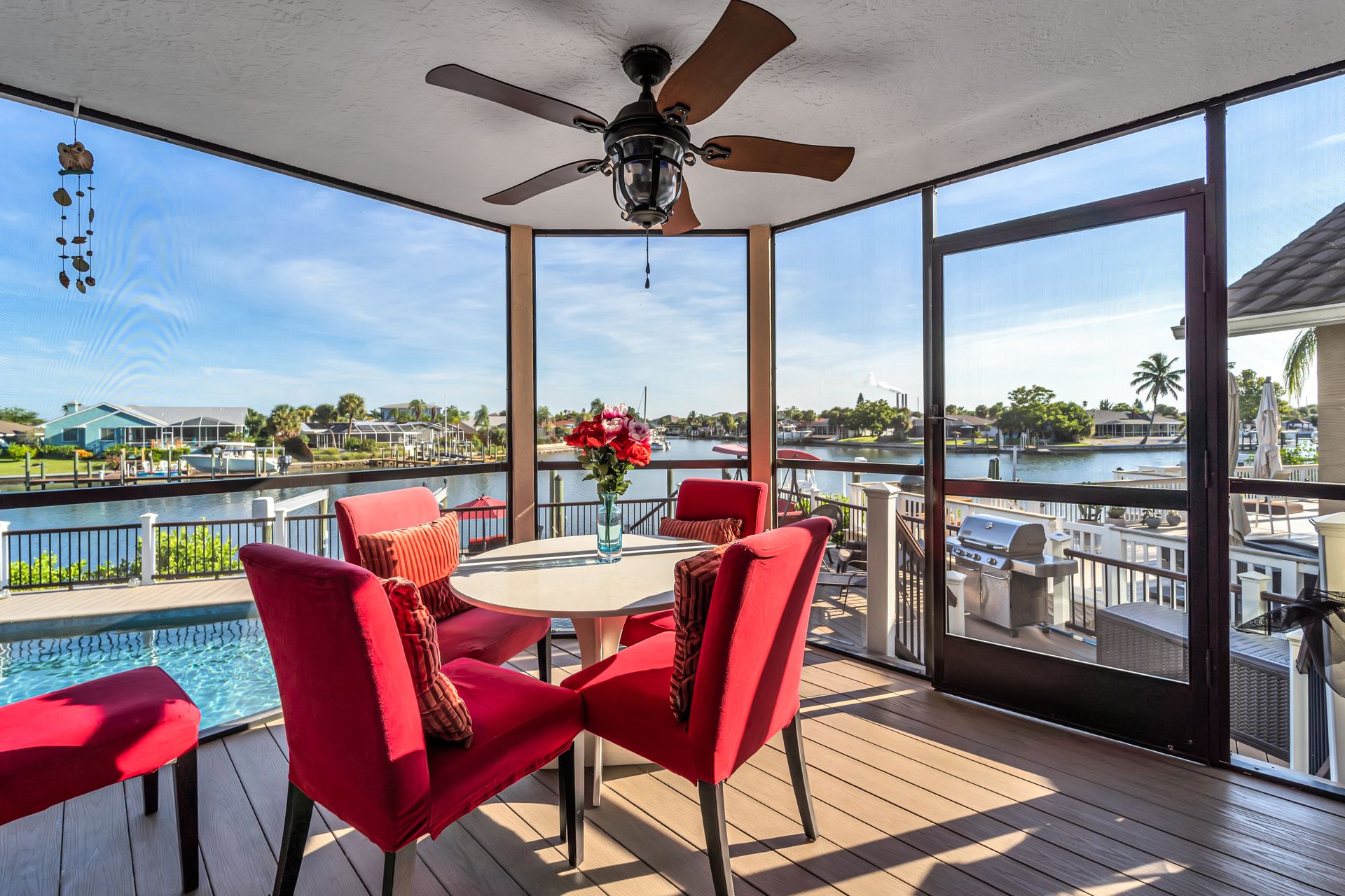 Welcome to intercoastal living at its finest! When entering past the guard checkpoint, you will notice the beautifully maintained common grounds as well as the stunning waterfront homes that adorn the streets on either side. Leading to the entry, step onto solid hardwood oak floors and a custom wood inlay that separates the foyer from the rest of the home. THIS THREE-BEDROOM THREE-BATHROOM HOME, WITH THE ADDITION OF A BONUS ROOM THAT CAN SERVE AS A FOURTH BEDROOM, IS A HOME YOU WON'T WANT TO MISS. The entire home has vaulted ceilings throughout with a grand open concept offering water views from the kitchen, dining, and main living areas. The living room has a gas-burning fireplace adorned with custom coastal decorative wood paneling from floor to ceiling. With custom floating glass and LED-lit stairs and a custom glass handrail throughout with LED lighting, enter the second level where the large dining room and kitchen are opened. The kitchen has all-wood custom cabinetry and a granite countertop with a great peninsula. Adjacent to this space includes a bonus room with a large on-suite bathroom and custom glass door sliders leading to a front wrap-around balcony. Another oversized bedroom sits on this level with a gas-burning fireplace that gives this room a unique ambiance with its vaulted ceilings. The primary bedroom also sits on the first level offering breathtaking water views and vaulted ceilings. The on-suite bath is equipped with a large jetted soaking tub and an oversized shower with a private toilet and a large walk-in closet. The staircase leading you to the third-floor level loft offers amazing water views. This level also offers a large mechanical room for added storage and hidden access into another unique space. Coming down this staircase you can access the back screened lanai where you can enjoy entertaining with water views. Head down onto the heated saltwater pool deck and continue down to the updated boat dock equipped with a 23,000-pound lift, BOAT ON PROPERTY IS UP FOR SALE AND CAN BE DISCOUNTED WITH THE PURCHASE OF THIS PROPERTY. The garage has an oversized glass door with parking enough for four cars tandemly. The garage also has an incredibly large storage/workspace, unlike any other property in this community. Come and see for yourself intercoastal living at its finest.
