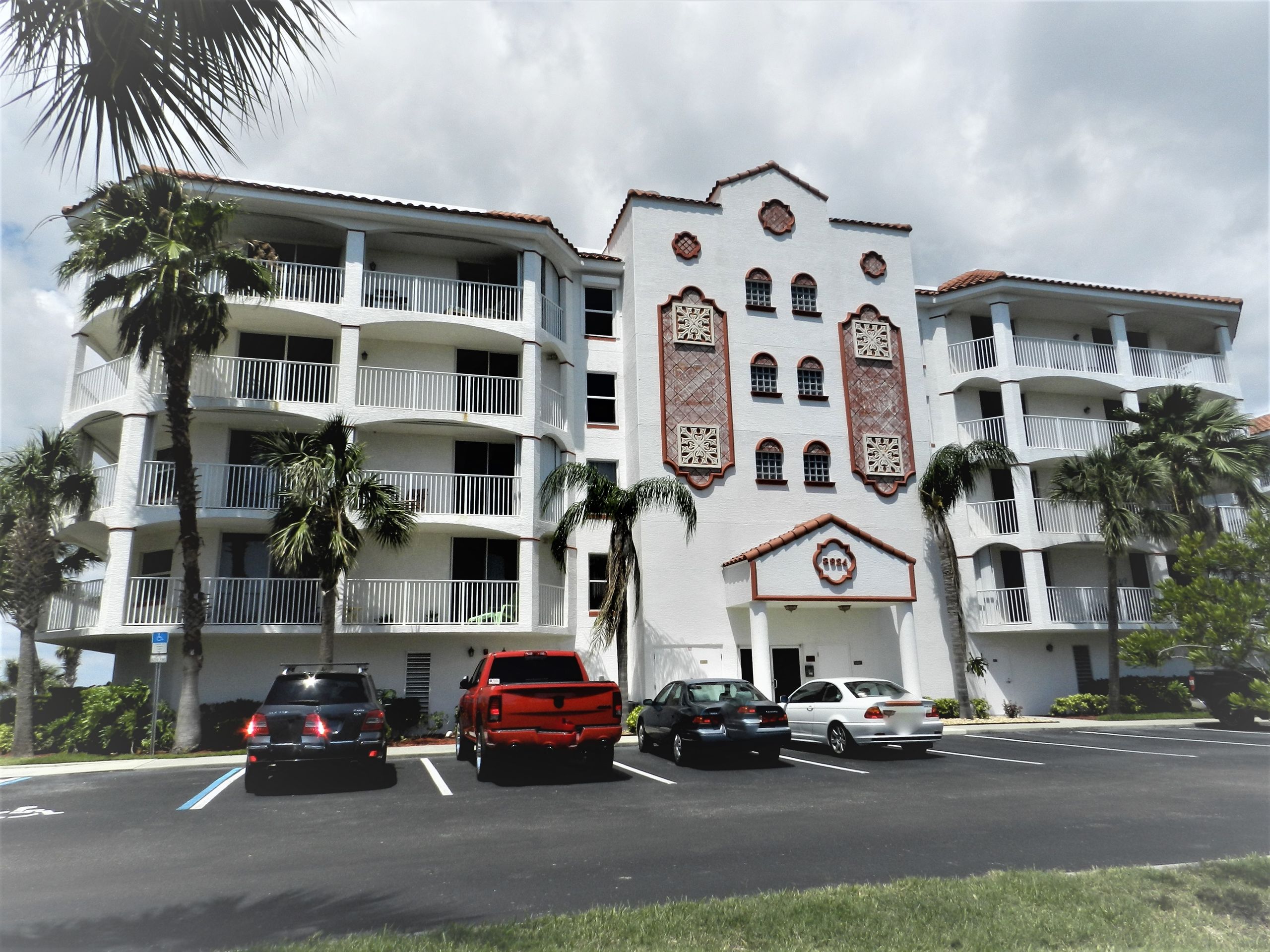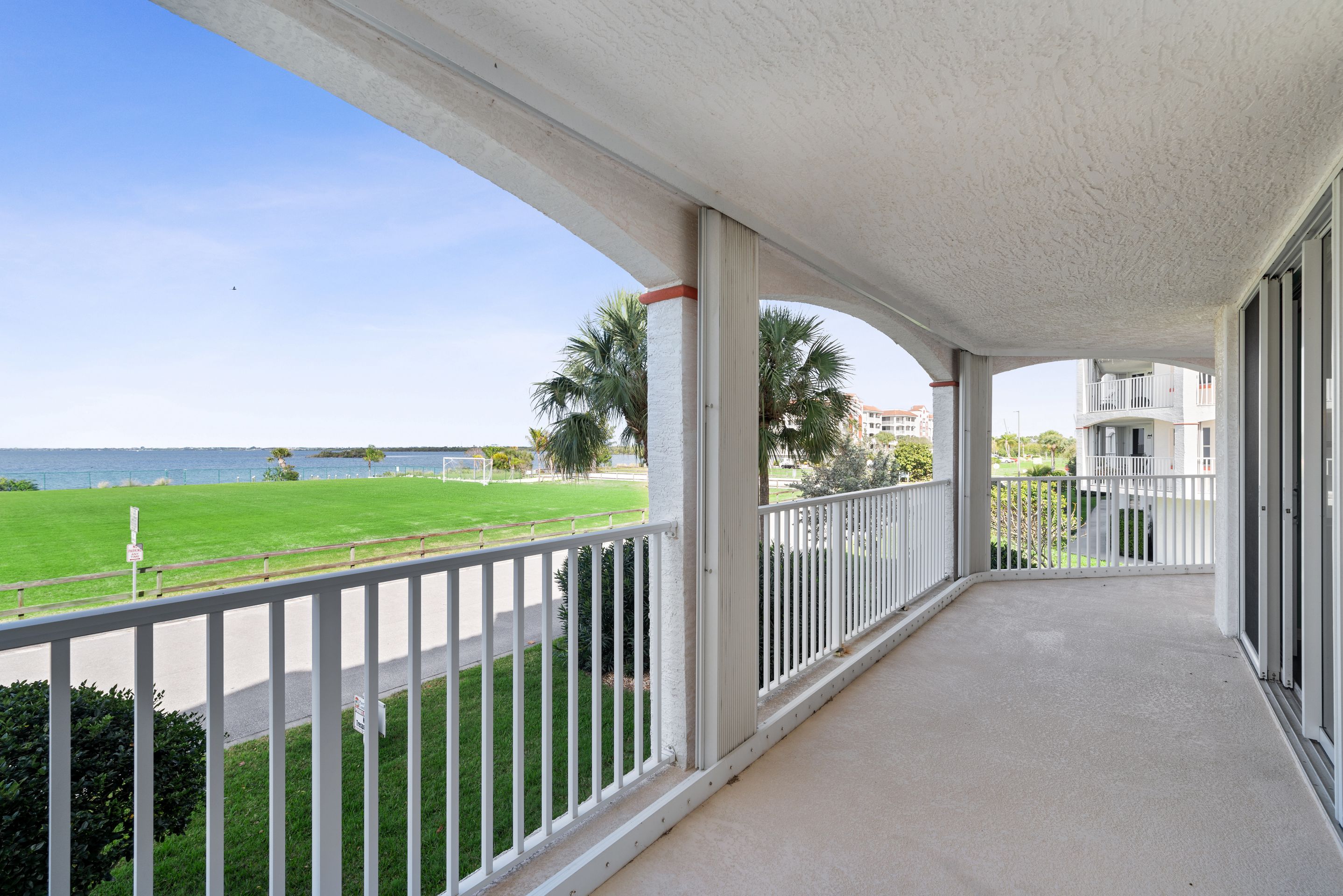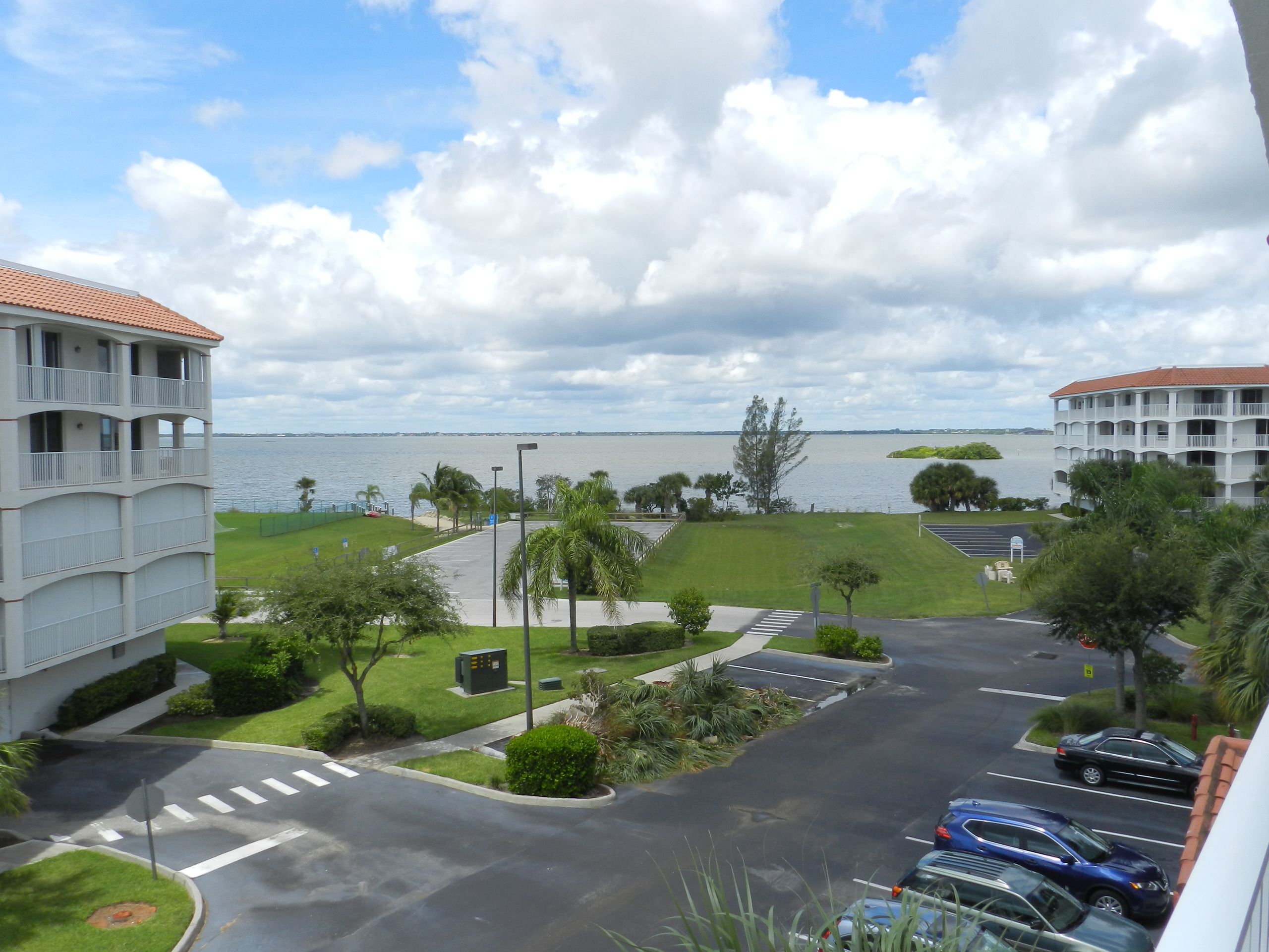 Direct riverfront with stunning sunsets to enjoy in this highly sought after Puerto del Rio Community. It is resort-style maintenance free living. Relax on the large wrap around balcony equipped with hurricane shutters throughout. The community offers two pools and hot tubs. Each building has two elevators, one that will drop you at your front door. Each building offers a fitness and recreational room. Kayak launch steps from your door at the Banana River park. You will be within close distance to parks, restaurants, shops, mini golf and the port. Bike path to the port and to the beach. Assigned indoor parking spot with shared storage area and plenty of outside parking. Stress free living. Cable and internet included in HOA.
