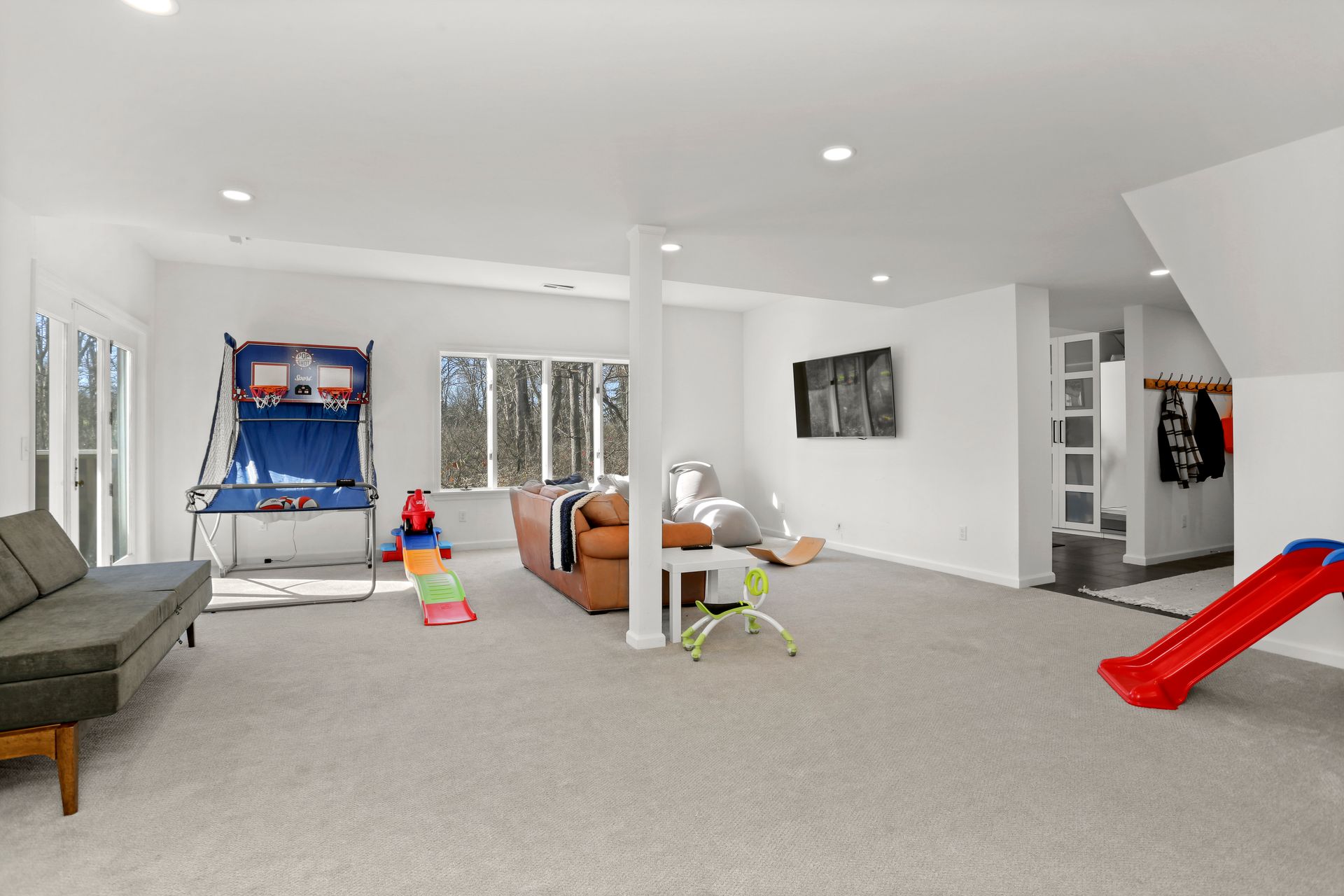 If you've ever dreamed of living on a golf course, this is the house for you! As you enter the large foyer with vaulted ceiling, skylights and a view of the 18th hole, you sense a special home awaits. This warm and sunlit contemporary has been extensively updated including three-and-one-half new bathrooms, refreshed kitchen with quartz counters, white cabinets, and walk-in pantry, newer mechanicals, and finished lower level with bedroom, full bath, playroom and "flex" room (currently used as a gym and mudroom). The lower level offers a fabulous living space for an au-pair or guests, with option for a separate entrance from the covered deck off the bedroom. Multiple spaces to enjoy the outdoors include a screened porch, Juliet balconies, and a large deck, all overlooking the golf course with water views and the wooded wetlands, a true bird sanctuary. All of the rooms are gracious and oversized and offer plenty of room for everyday living and working from home. Upstairs are four-bedrooms, three-full-bathrooms and a laundry room. You'll love waking up in the dreamy primary bedroom. When you want to socialize, go down the cart path, under a tunnel, and to Aspetuck Valley Country Club, with 18-hole golf course, swimming pool, tennis and paddle tennis courts, and a gorgeous clubhouse with gourmet dining and year-round social activities. The award-winning Weston schools are just minutes away, and you'll also have rights to use Compo Beach in Westport. This is a home that is bound to be loved by many, so don't wait to schedule a visit today!