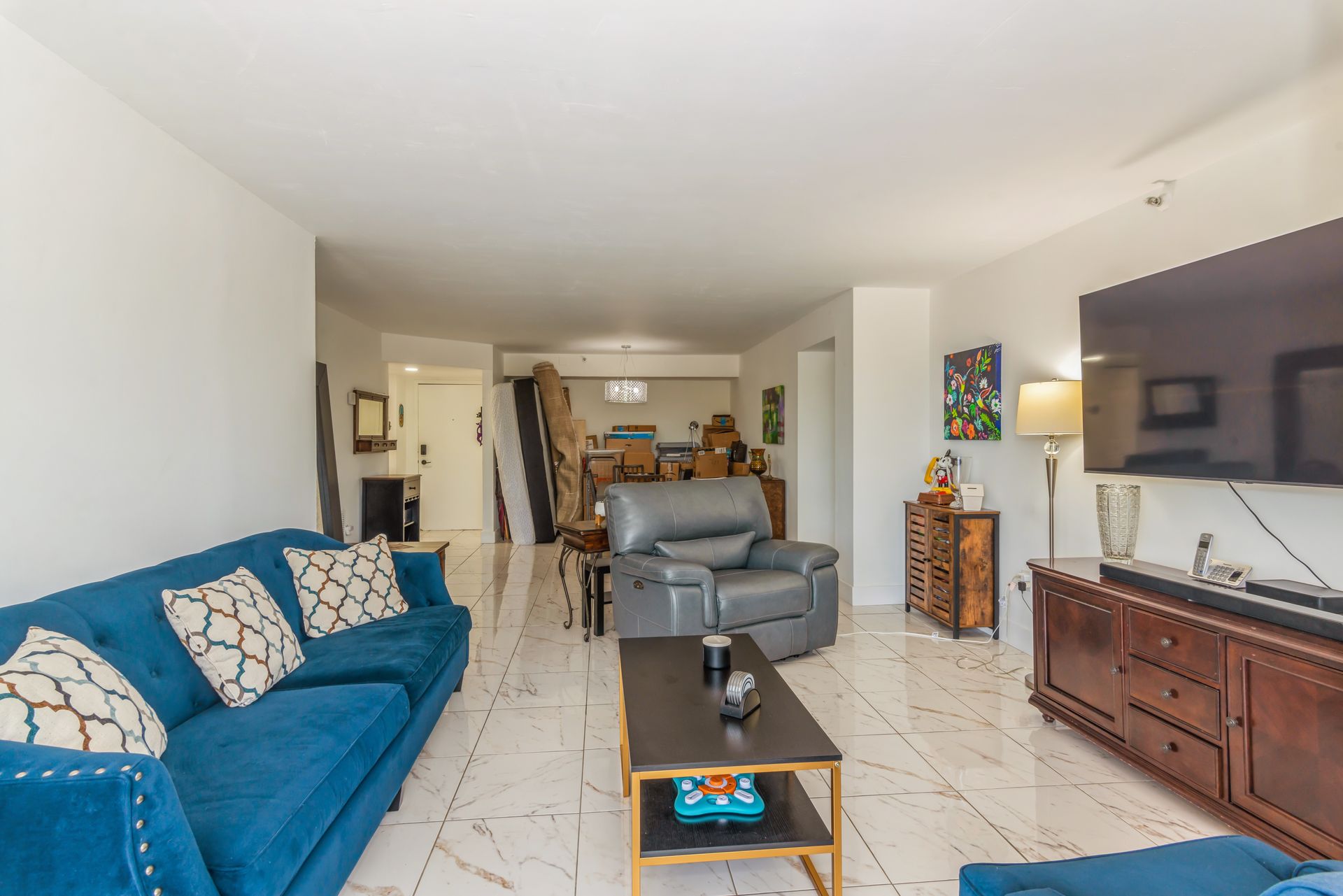 Spacious and functional split bedroom design with 1,680 Sf. Sleek eat in kitchen featuring white quartz counters, white cabinets and newer stainless steel appliances. Large open dining and living area overlook large private balcony. Principal bedroom with 2 walk in closets, vanity area, and en suite bath. In unit full size washer/dryer + tons of storage. All appliances 2 yrs old. Well managed building with pool, sauna, gym, bbq area, 24 hour attended lobby, assigned parking and plenty of guest pkg. 40 yr recertification passed. Conveniently located close to Aventura and easy access to I-95. Leasing allowed after 1 yr ,only if building has not exceeded 16 rental units at a time. Min 25% down required by association for financed offers. Pets under 20lbs ok.