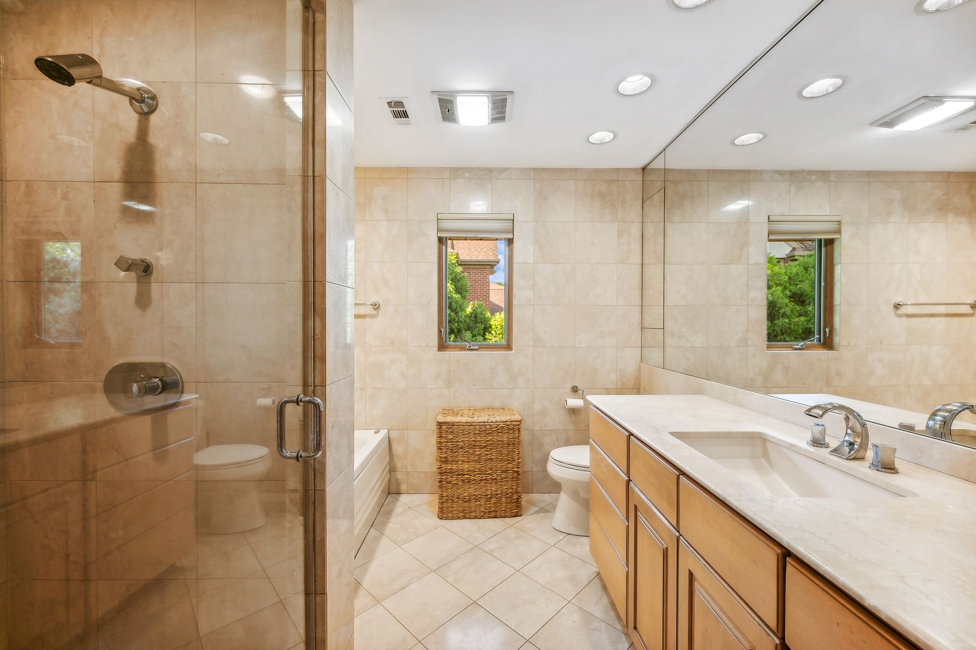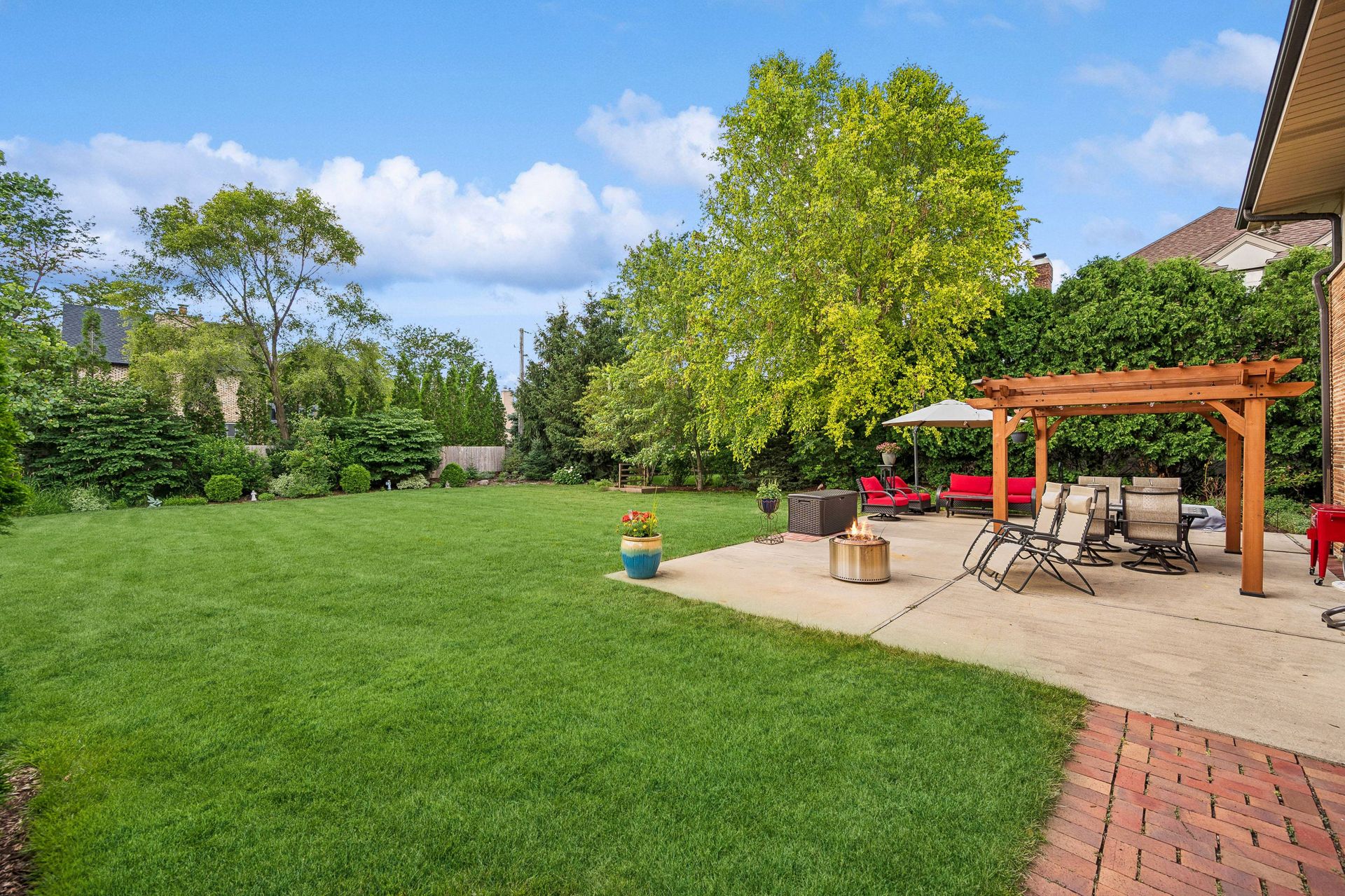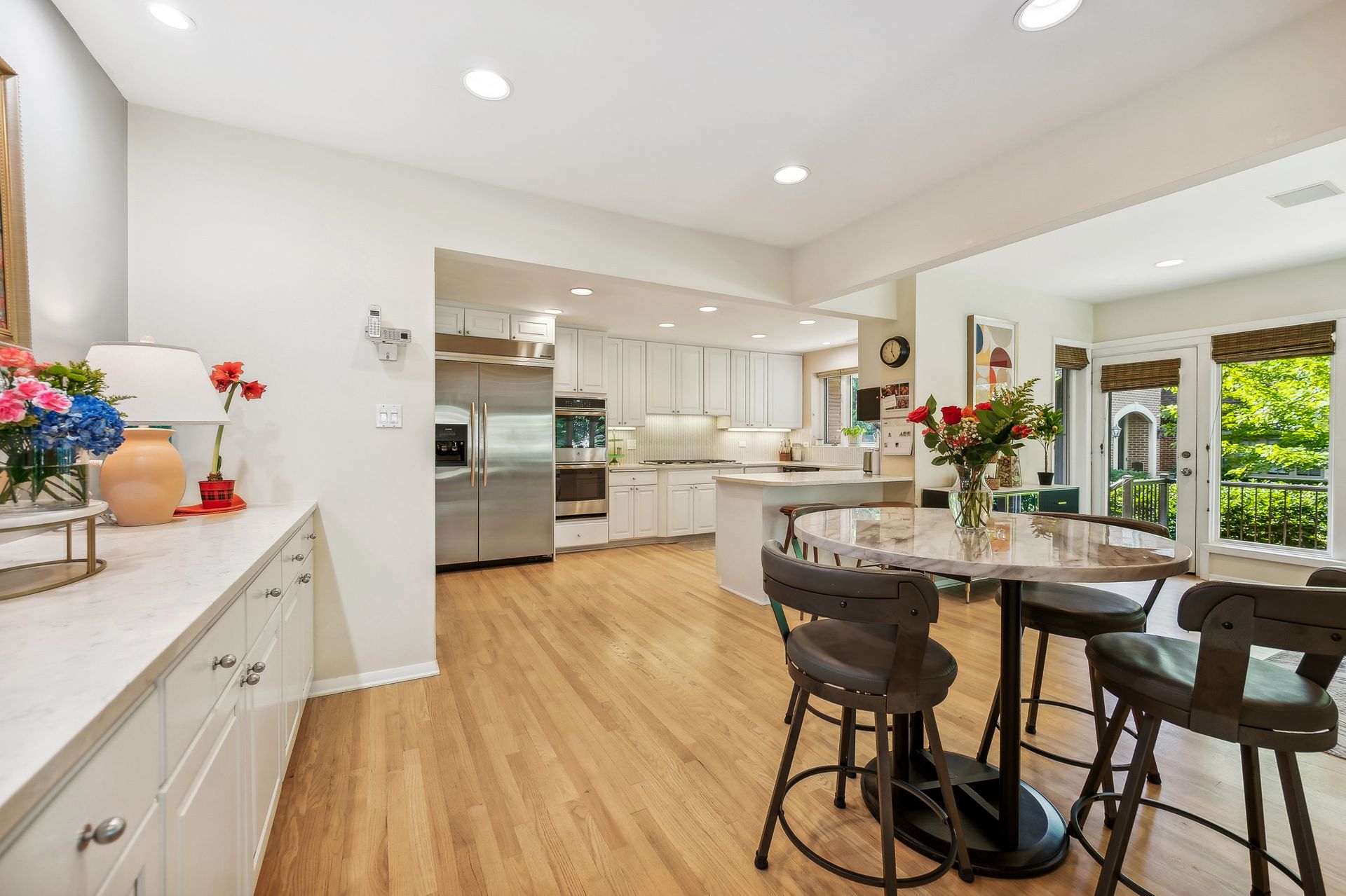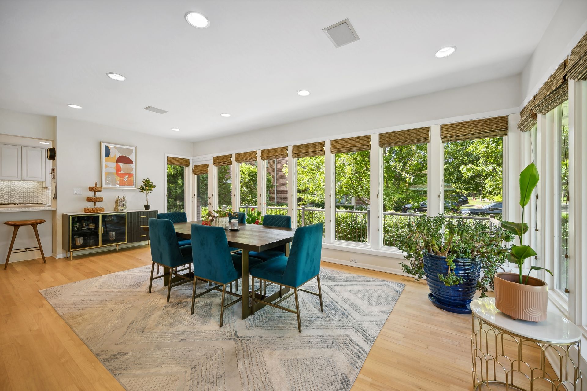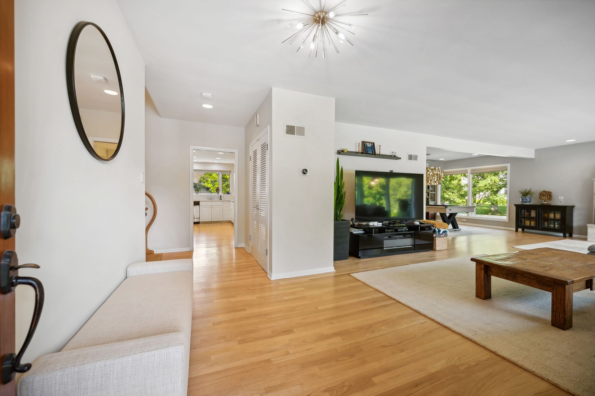 This Mid-Century Modern home has a California feel. Large open floor plan. Gracious Living Room with fireplace, formal Dining Room, Sun Room with windows galore and a terrific Kitchen with Breakfast Room that boasts newer appliances and Quartzite countertops. Family Room with sliding glass doors that lead to a spectacular yard! Primary bedroom with private bath and dressing area. Two more bedrooms up with a full bath. Basement features a Rec Room, Laundry Room and Bedroom. Hardwood floors throughout except for the Family Room which has ceramic tile flooring. Newer windows on the main floor except for over the Kitchen sink. Deck, patio and pergola in back yard.