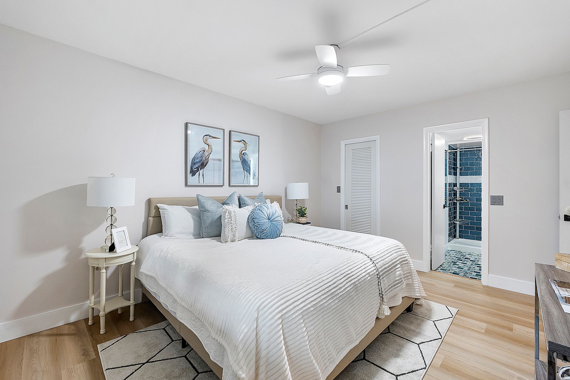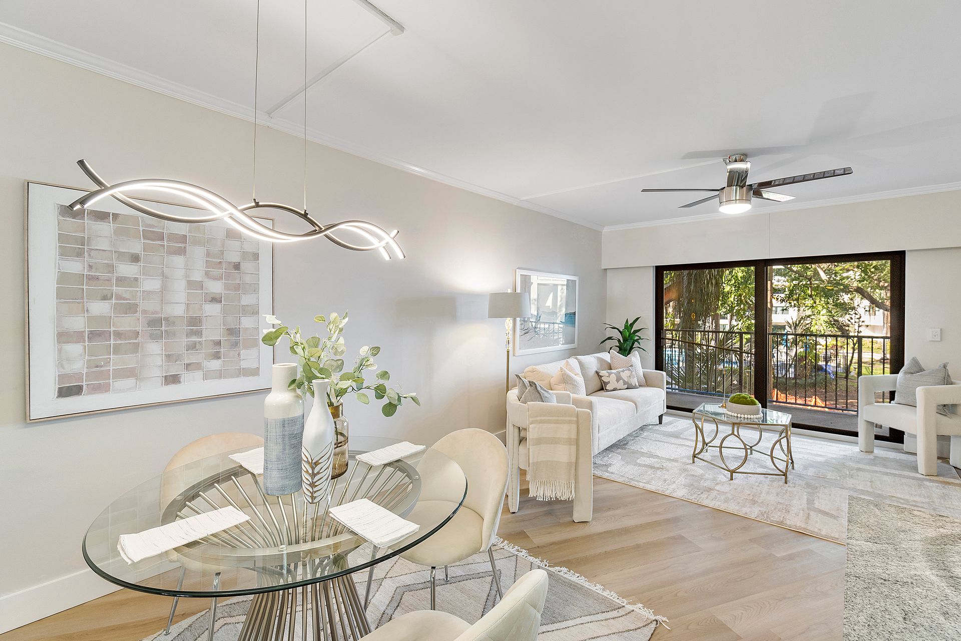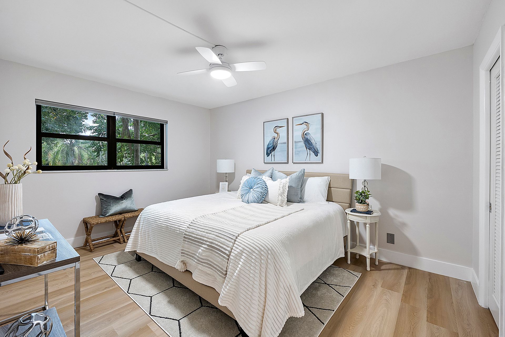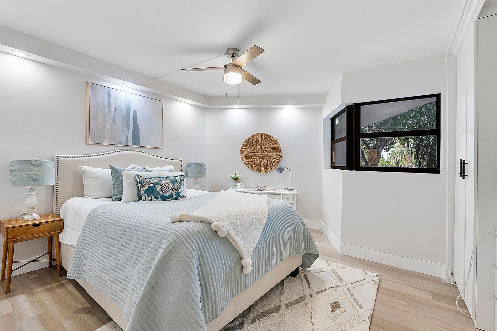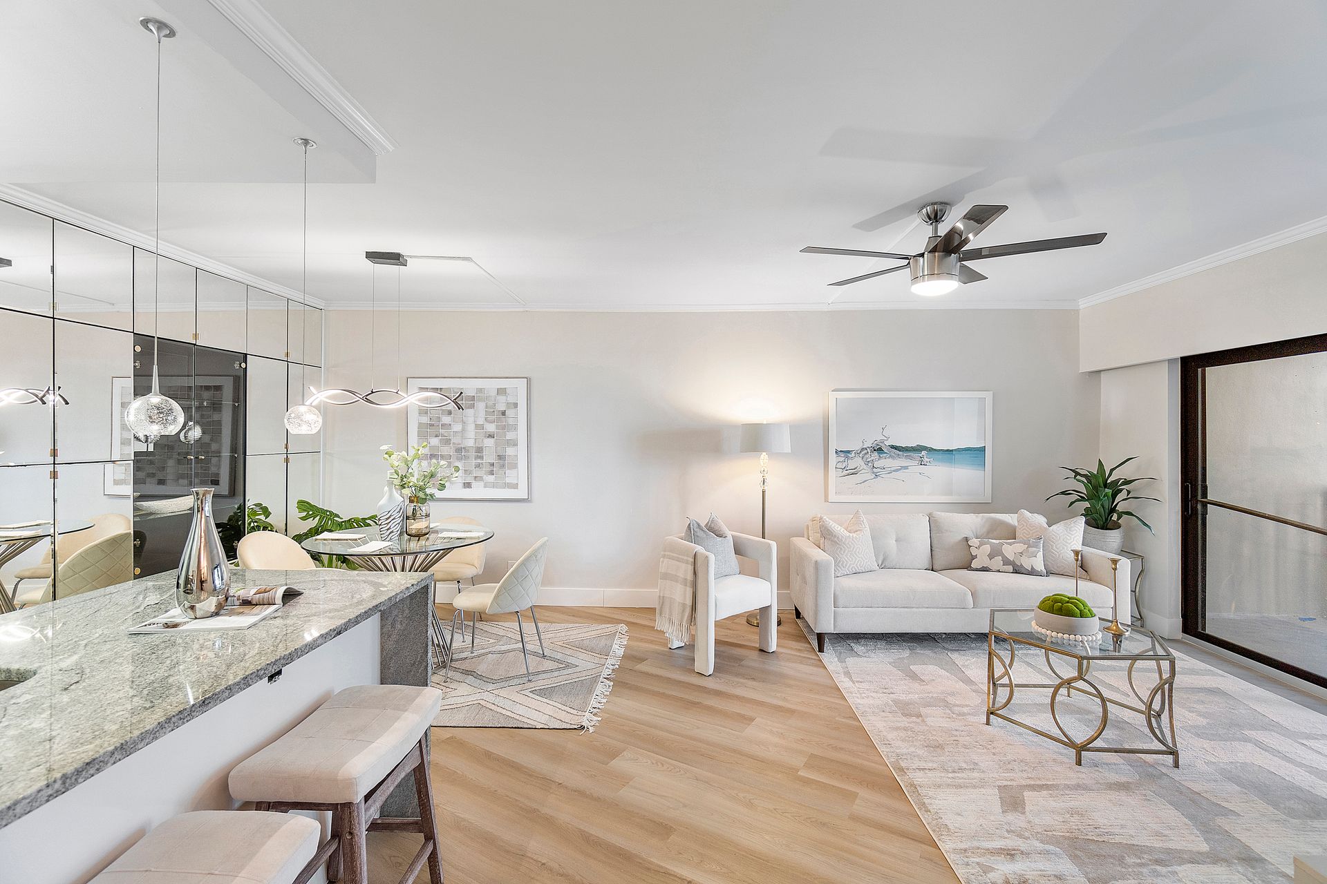 The stylish open-concept kitchen boasts custom cabinetry, sleek granite countertops, and high-end appliances, while luxurious laminate flooring flows seamlessly throughout the unit. Freshly painted with a modern, elegant aesthetic, this home is move-in ready.