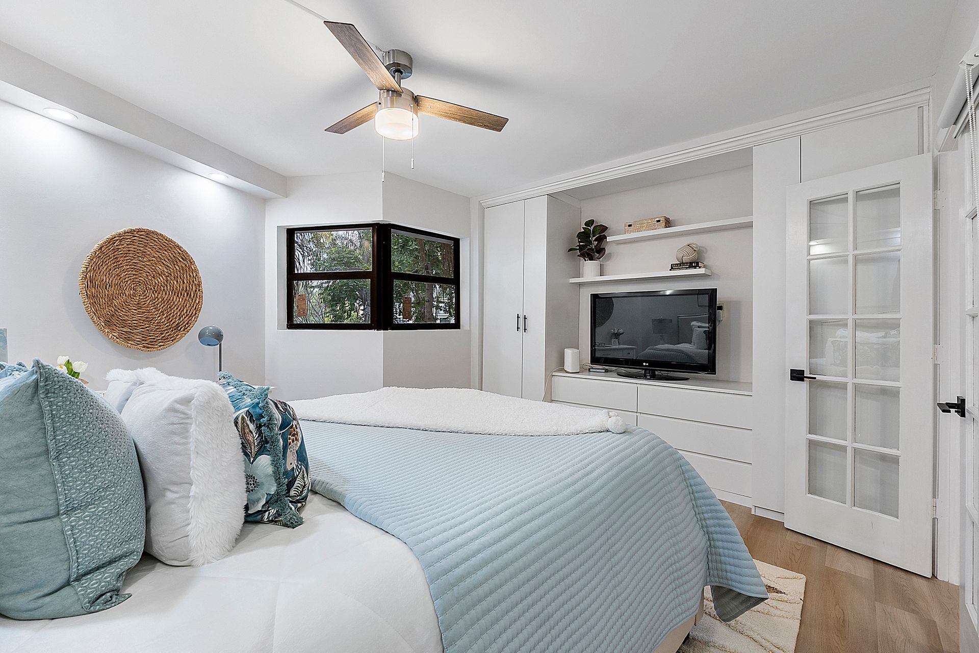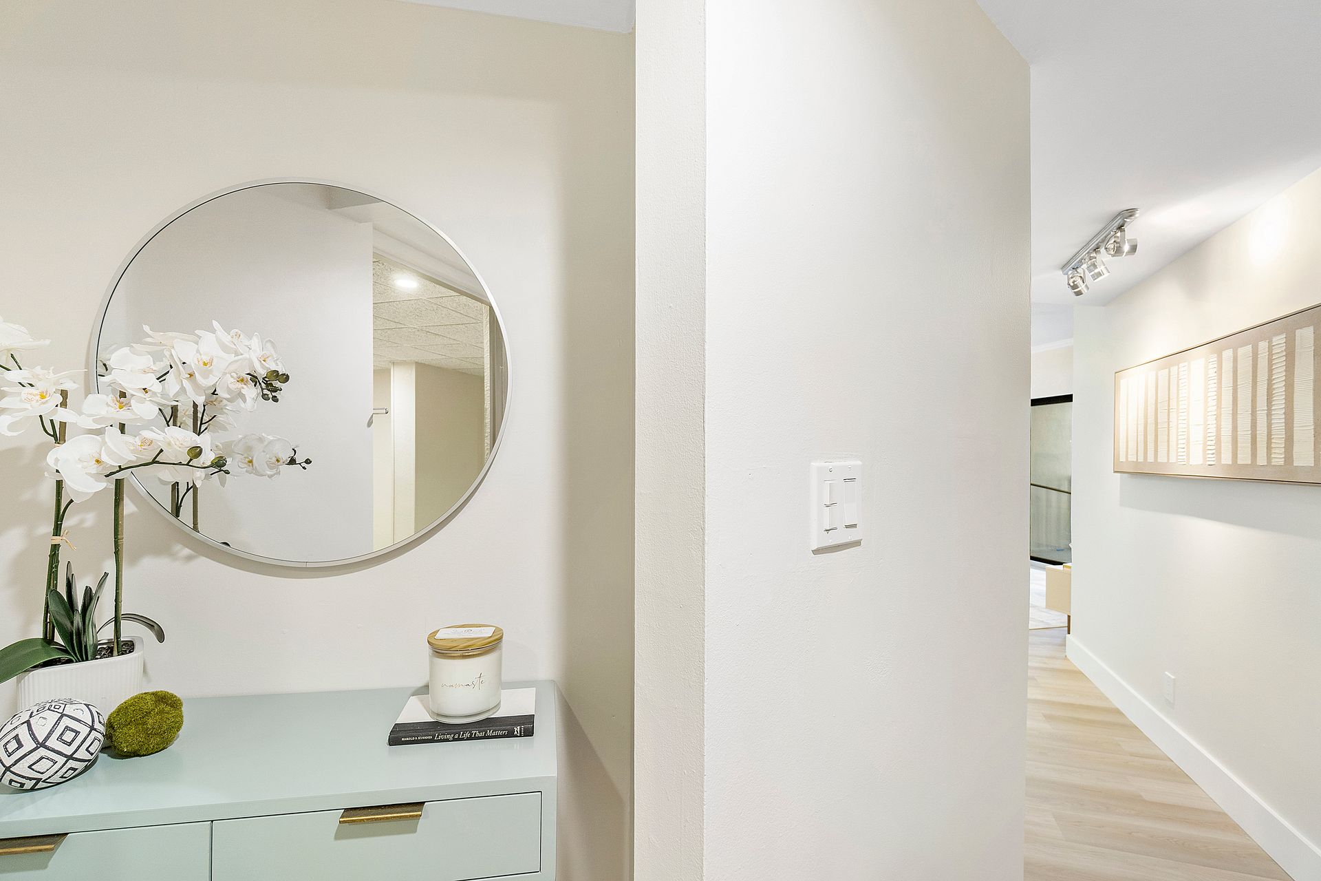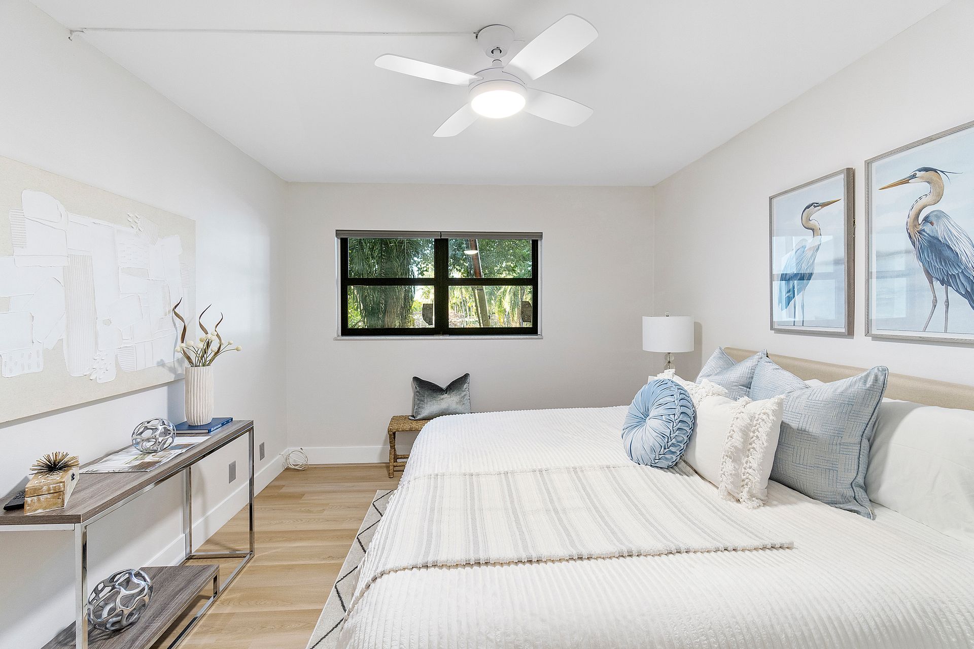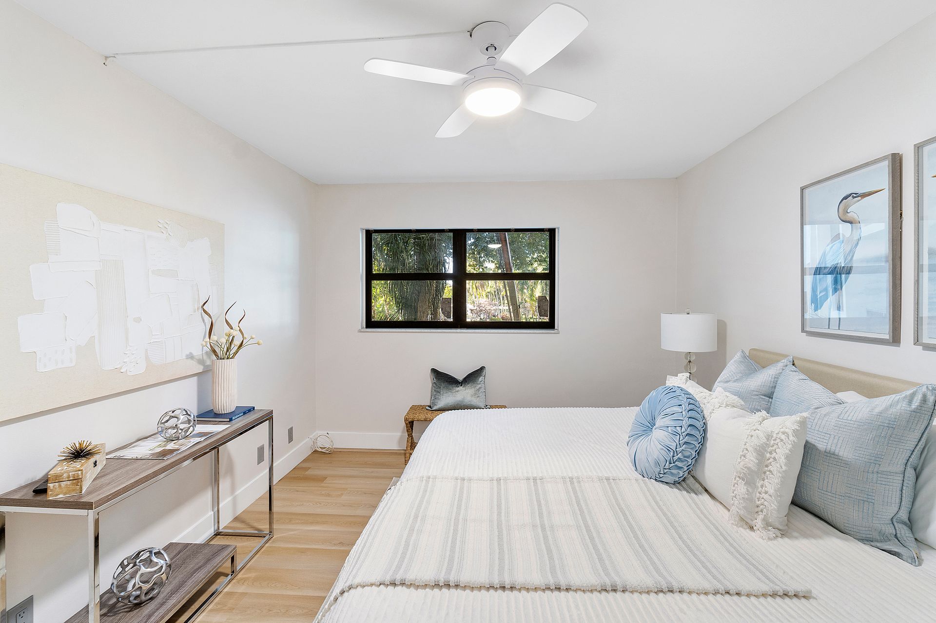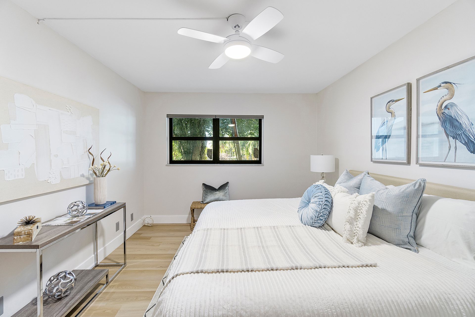 The stylish open-concept kitchen boasts custom cabinetry, sleek granite countertops, and high-end appliances, while luxurious laminate flooring flows seamlessly throughout the unit. Freshly painted with a modern, elegant aesthetic, this home is move-in ready.