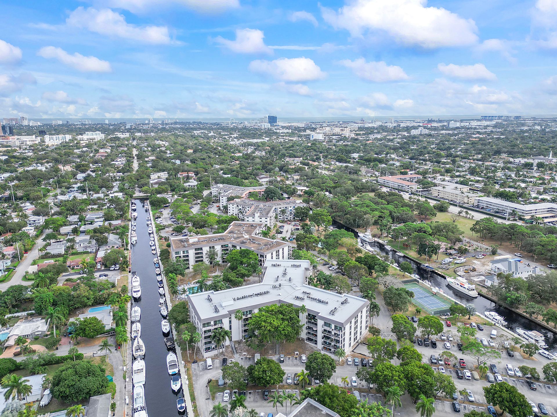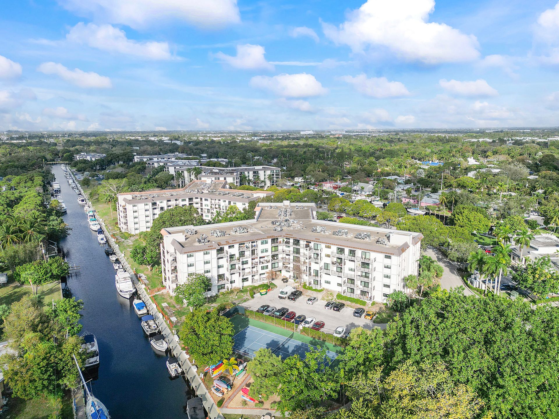 Located on River Reach, a private island community near downtown Fort Lauderdale, this pet-friendly enclave offers resort-style amenities, including three heated pools, two tennis courts, a fully equipped gym, kayak facilities, and 24-hour gated security.