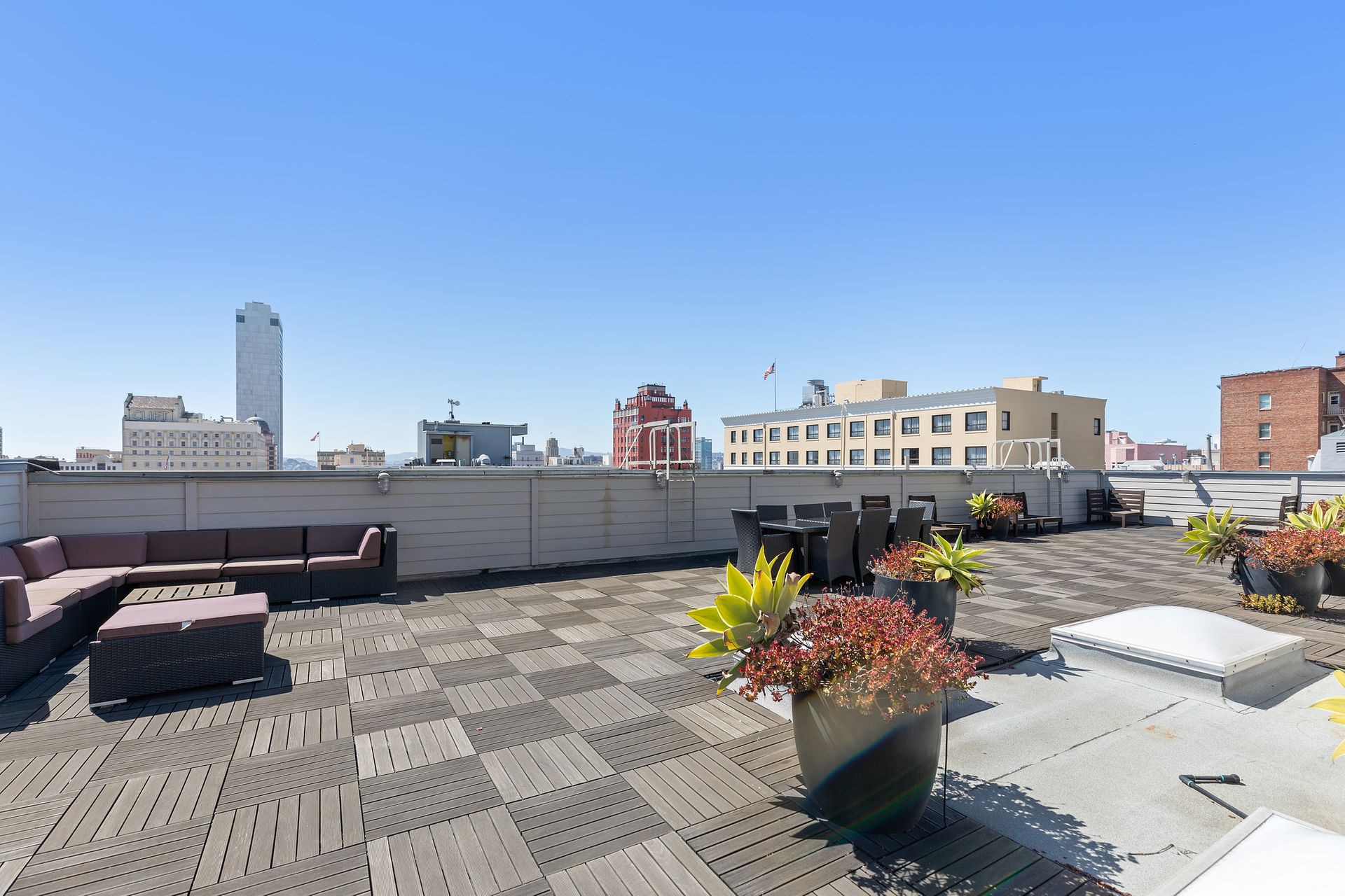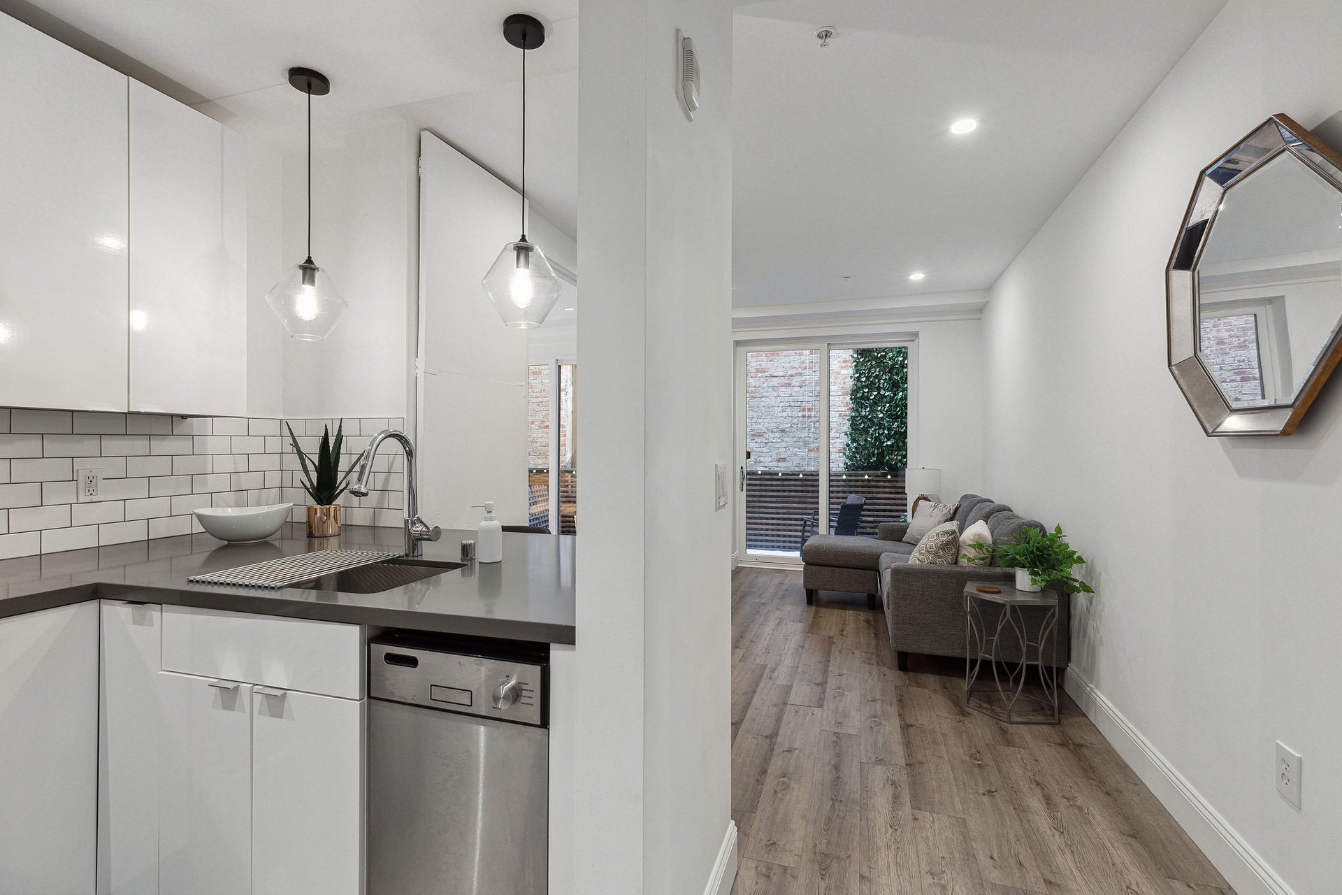 This 1 BD/1BA features a large private patio nestled into the side of the building - a rare, highly coveted feature in this building - provides a tranquil retreat from the city. Located within a completely refurbished historic boutique building with only 38 homes and originally constructed in 1909 and meticulously renovated in 2008. High-end finishes throughout including CaesarStone countertops, stainless steel appliances, including gas stove top, and recessed lighting throughout. The owner made several upgrades including the newly refinished hardwood flooring, marble bathroom flooring, backsplash in the kitchen, and recent painted with Benjamin Moore Paint, a newer Washer, nestled within the inner part of the building, it offers peace and privacy. This home has an in-unit washer (new in 2022) and dryer and features a large storage closet directly outside the front door of the unit. Residents also have access to a large rooftop patio with breathtaking downtown views and a secured bike room.