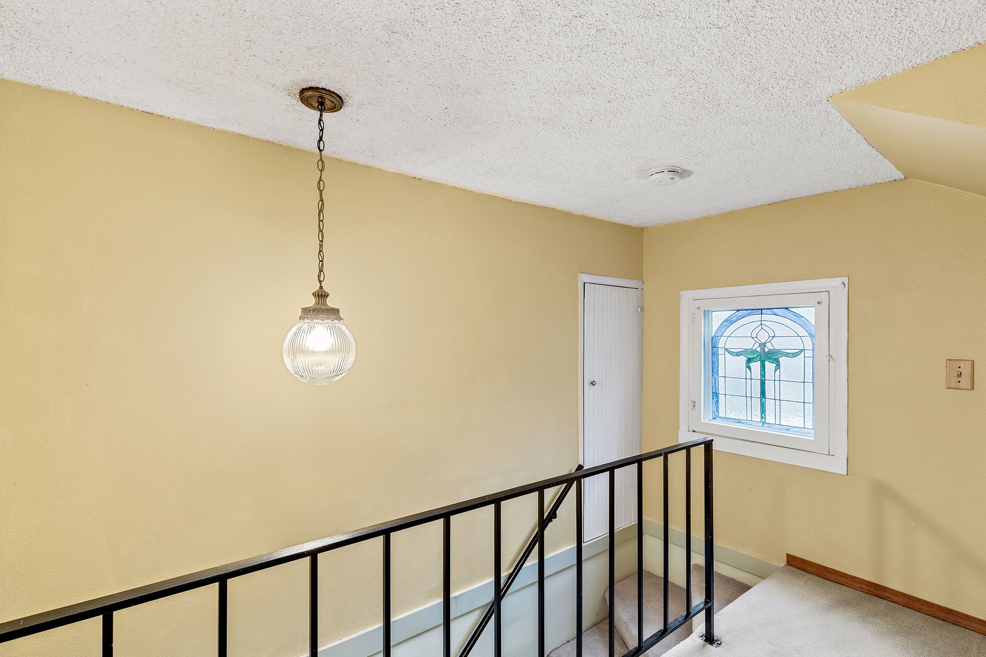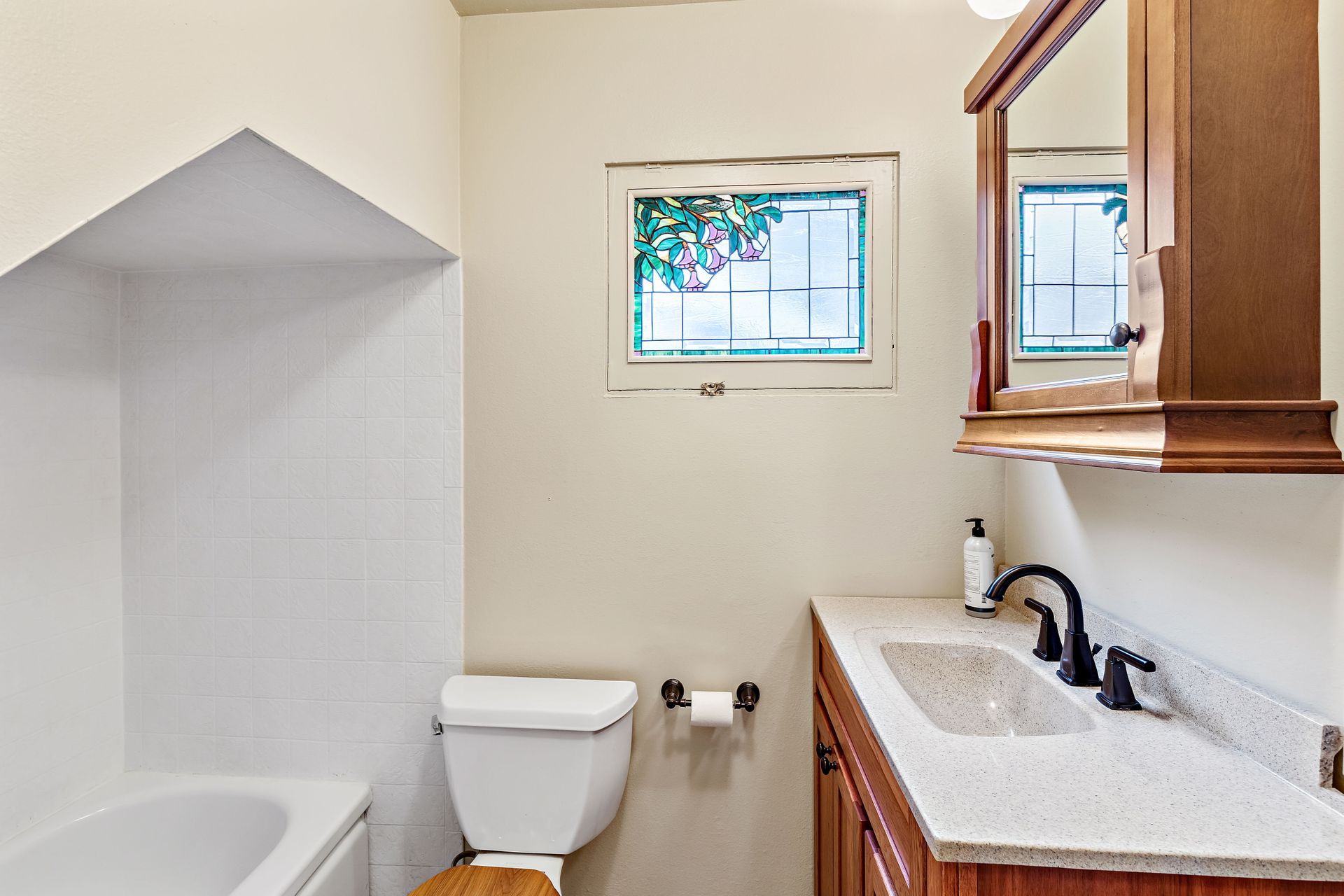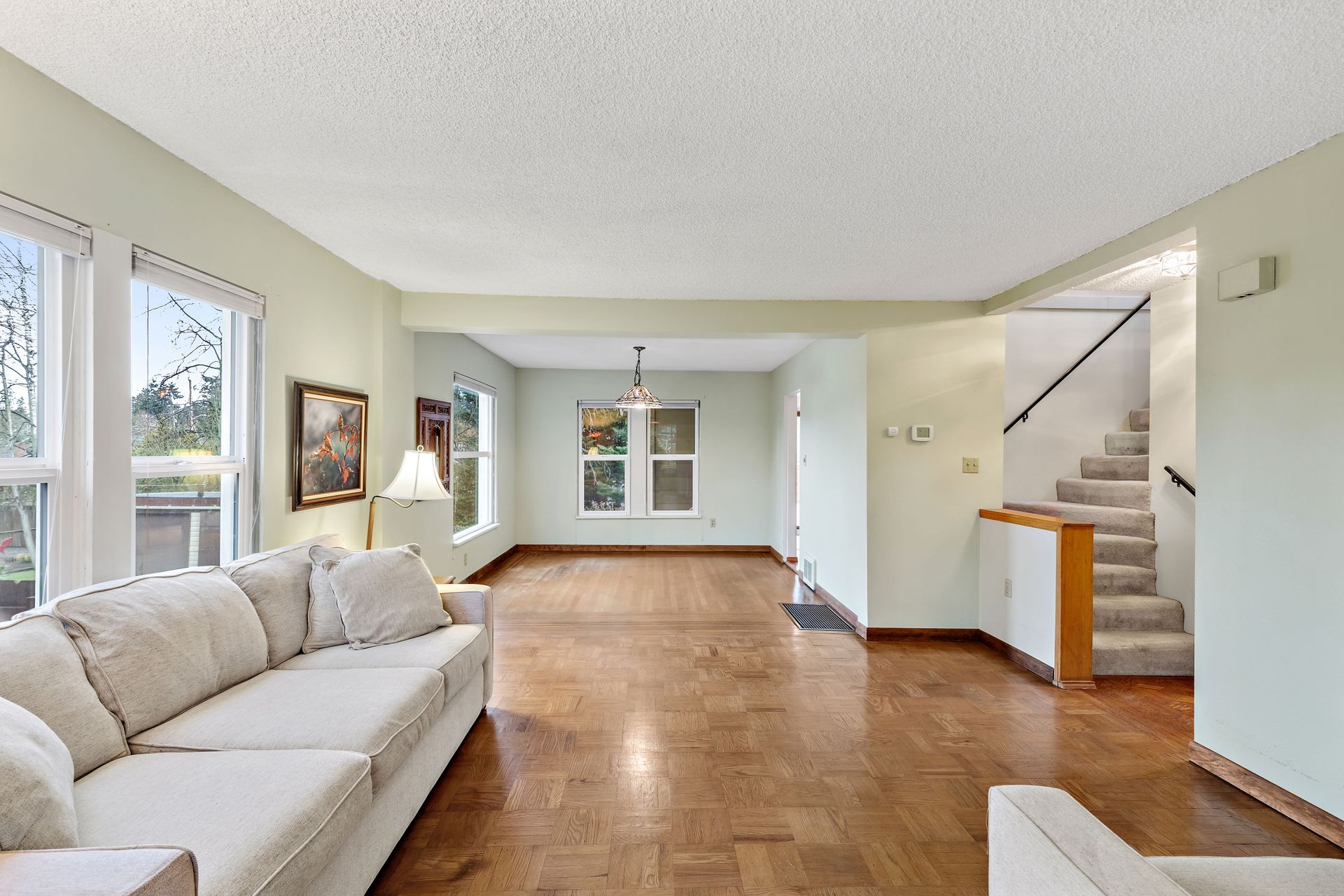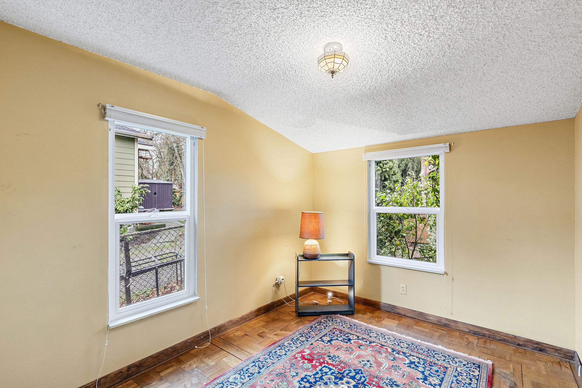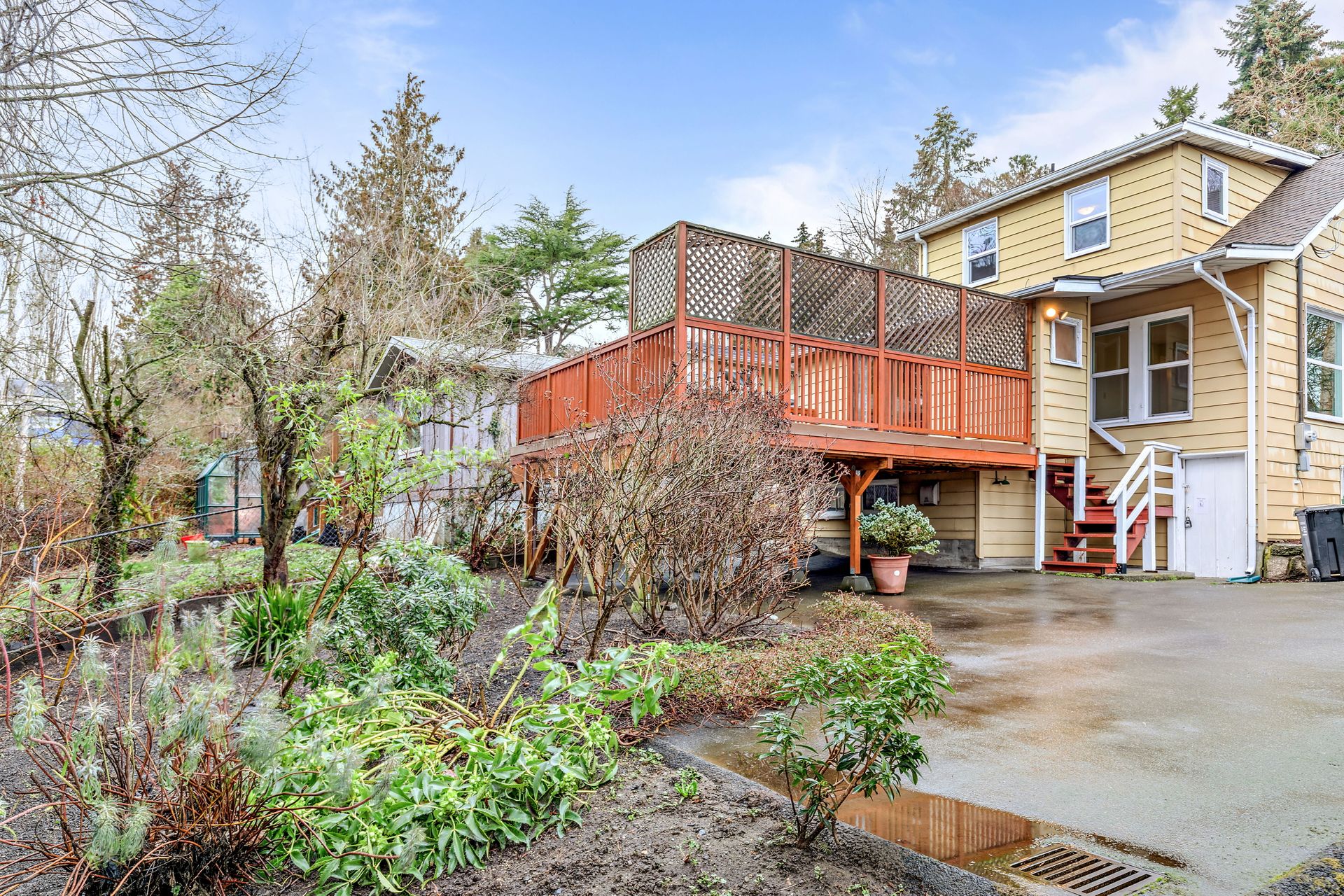 Vintage charm, park view. Ready for modern living in a home with historic features. This Greenwood home offers hardwood floors, a spacious main living area and an eat-in kitchen. The private bedroom on the main floor is perfect for sleep or work. Enjoy the expansive deck that oversees a private backyard with plenty of room to entertain or create an outdoor oasis. Upstairs features two bedrooms with privacy from the main living area, storage and a tile bathroom. Handmade stained-glass windows offer both character and beauty. This home is complete with an immaculate yard with great curb appeal as well as a backyard ideal for play or gardening. Onsite parking, roomy basement storage and convenient access to Greenwood amenities. Move in now, update to your taste.