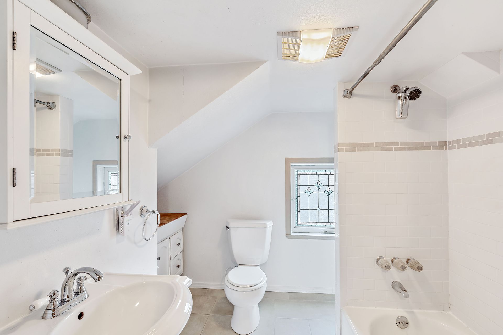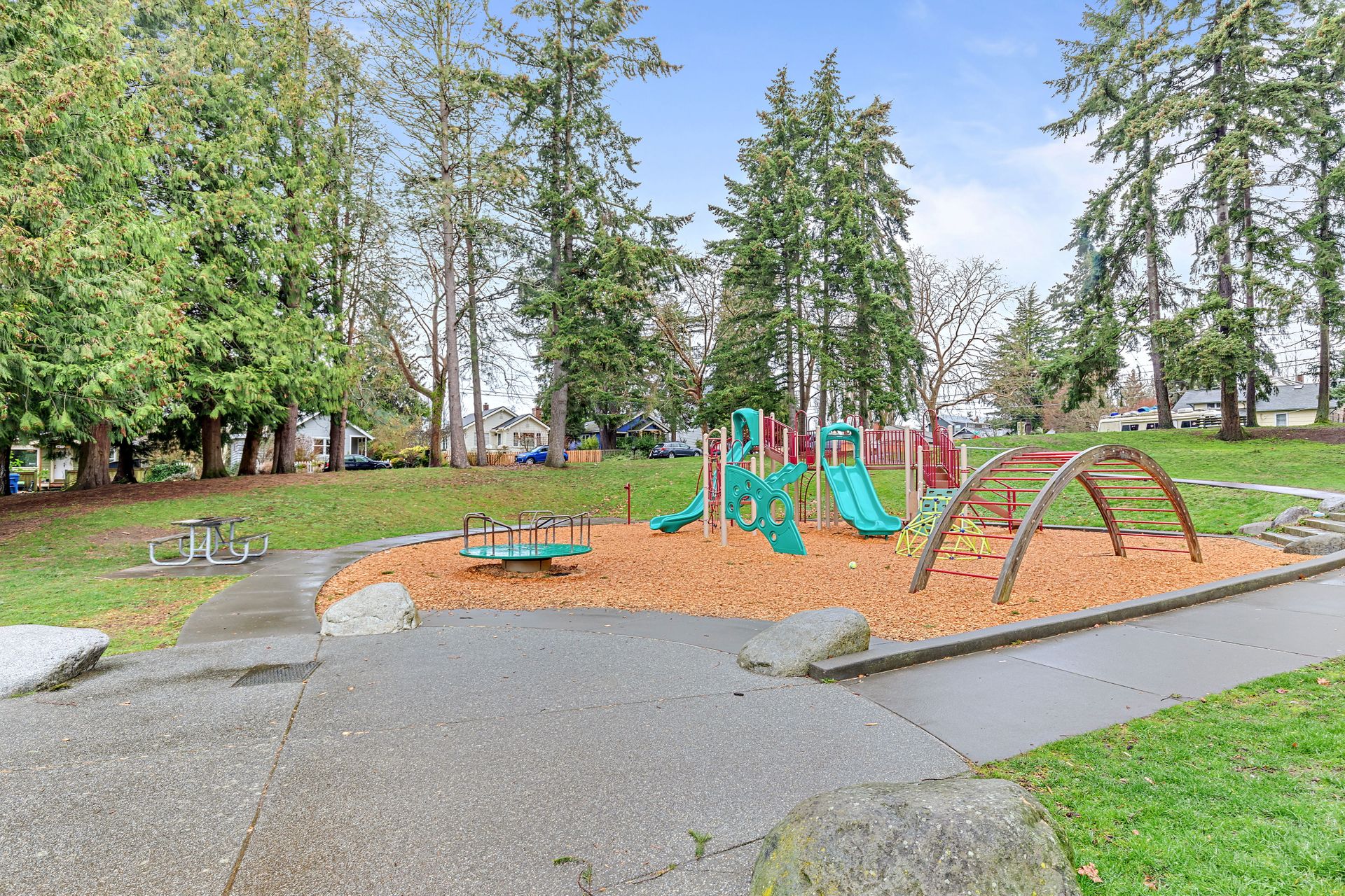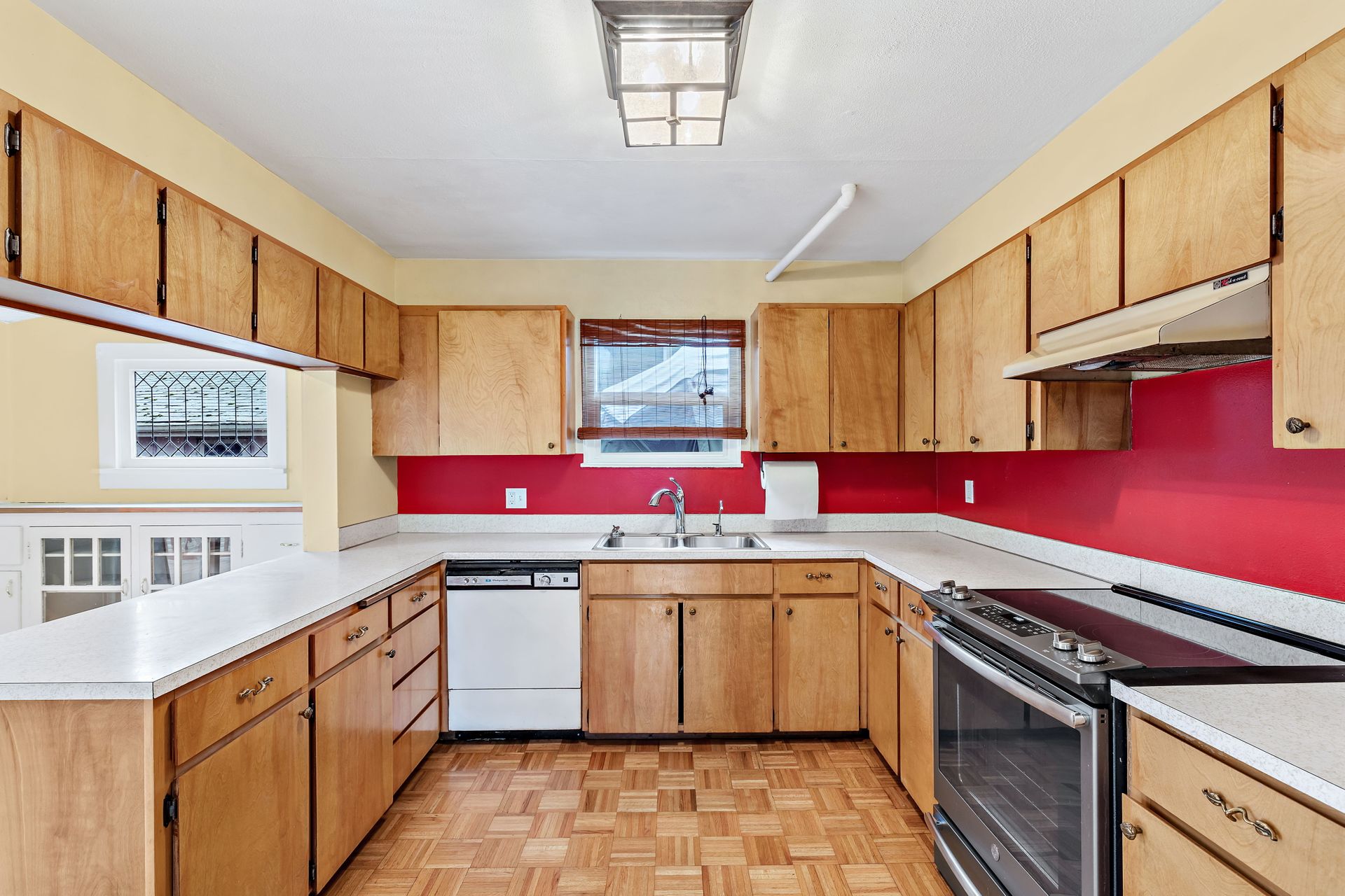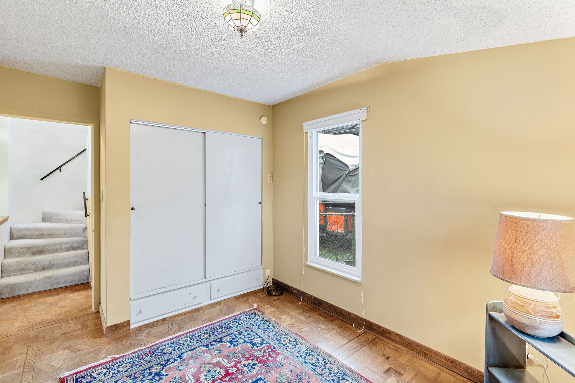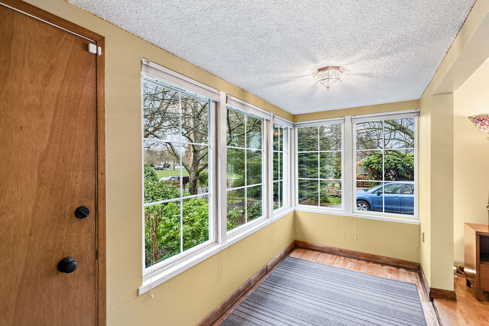 Vintage charm, park view. Ready for modern living in a home with historic features. This Greenwood home offers hardwood floors, a spacious main living area and an eat-in kitchen. The private bedroom on the main floor is perfect for sleep or work. Enjoy the expansive deck that oversees a private backyard with plenty of room to entertain or create an outdoor oasis. Upstairs features two bedrooms with privacy from the main living area, storage and a tile bathroom. Handmade stained-glass windows offer both character and beauty. This home is complete with an immaculate yard with great curb appeal as well as a backyard ideal for play or gardening. Onsite parking, roomy basement storage and convenient access to Greenwood amenities. Move in now, update to your taste.