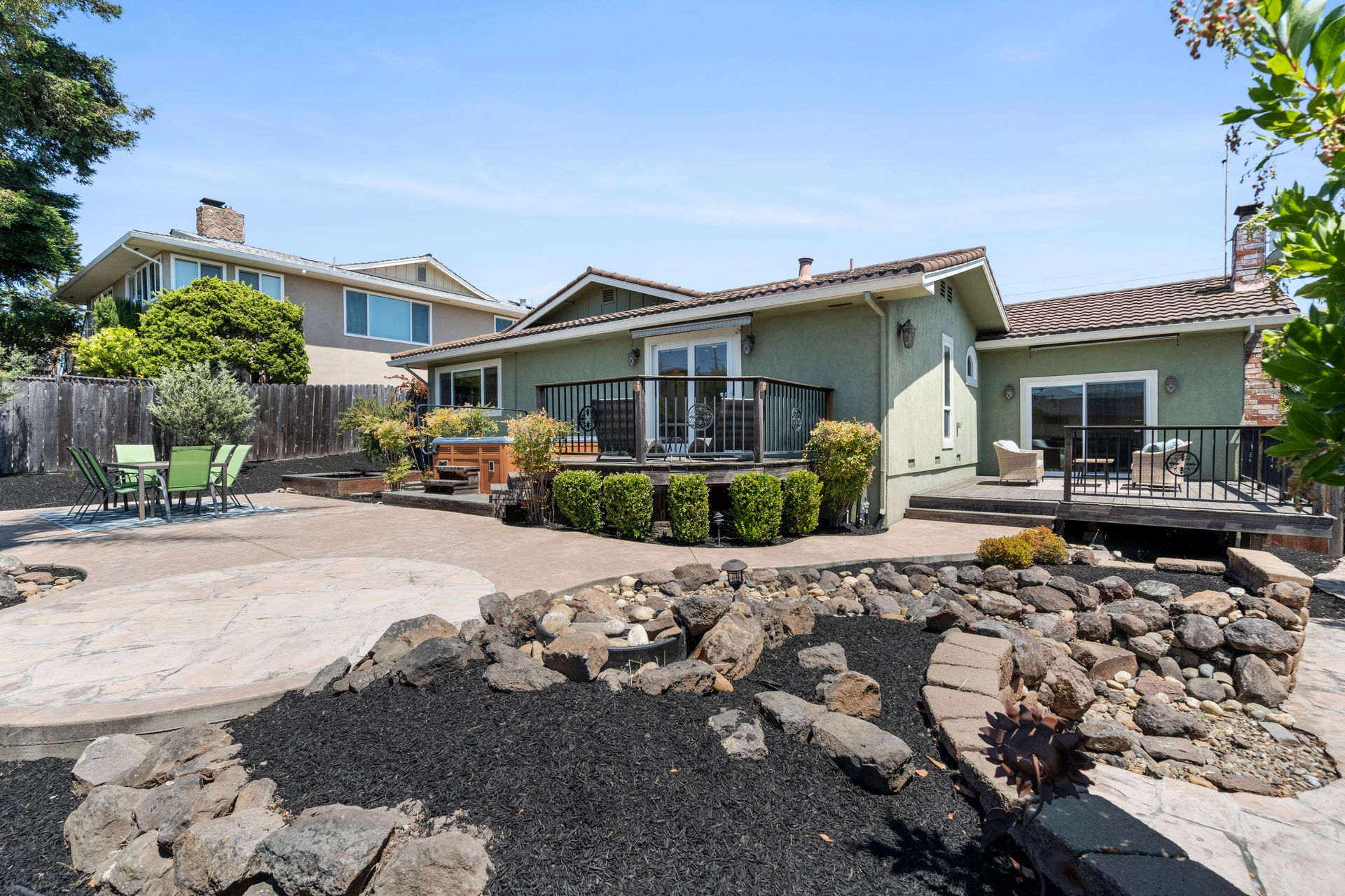 Beautiful home nestled in this rich captivating, charming bayside town of Rodeo. Set against the backdrop of views of the bay and Mount Tam, this home feels like a serene retreat. This truly special property is designed for both comfortable living and seamless entertaining. The well-thought-out floor plan encompasses formal living and dining areas, as well as a generously-sized family room. With three bedrooms and two bathrooms, this home boasts great amenities such as skylights, a gas range, a hot tub, ample storage and a finished side-by-side two-car garage. The spacious primary suite is thoughtfully and tastefully designed, featuring an upscale bathroom with a large modern easy access shower, dual sinks, a large closet, and a sizable patio outside the bedroom. Exit outside into the stunning low-maintenance oasis with expansive decks and a patio, surrounded by beautiful landscaping and a fenced yard, providing the ideal setting for BBQs and entertaining. Set in a great neighborhood, this property offers the ideal combination of comfort, functionality and indoor/outdoor serenity.