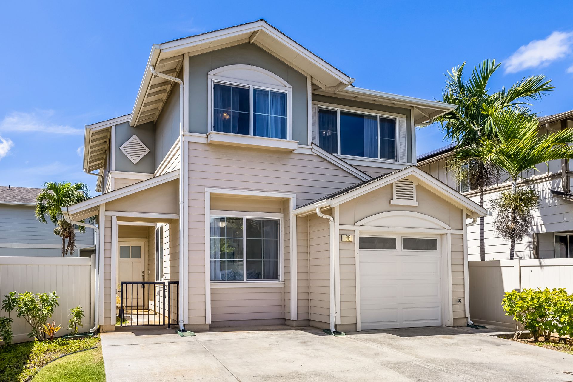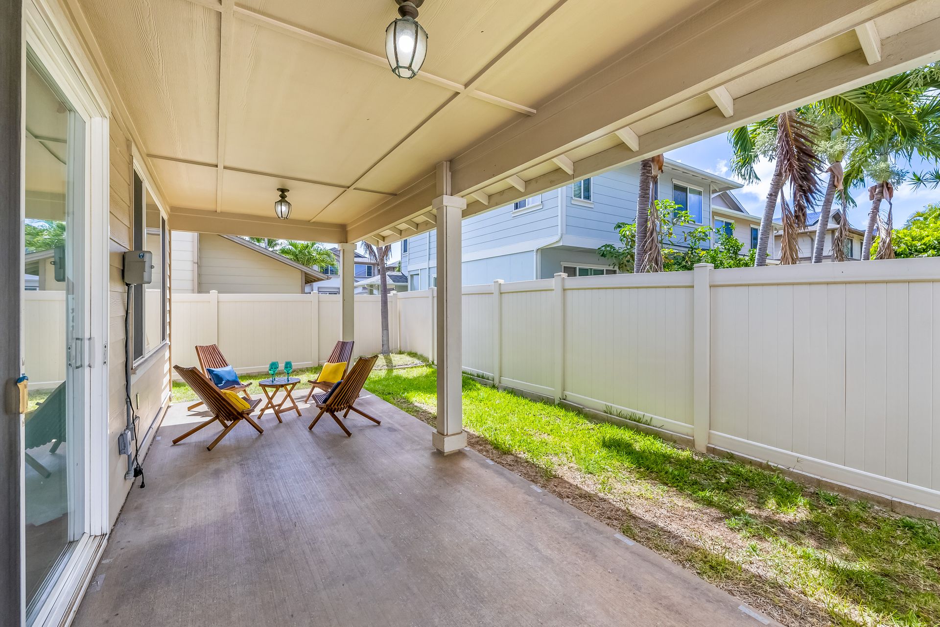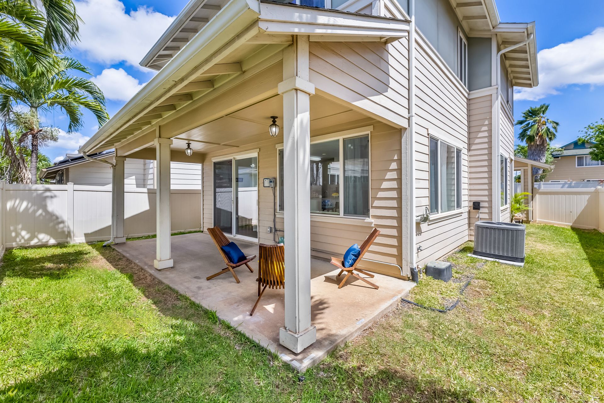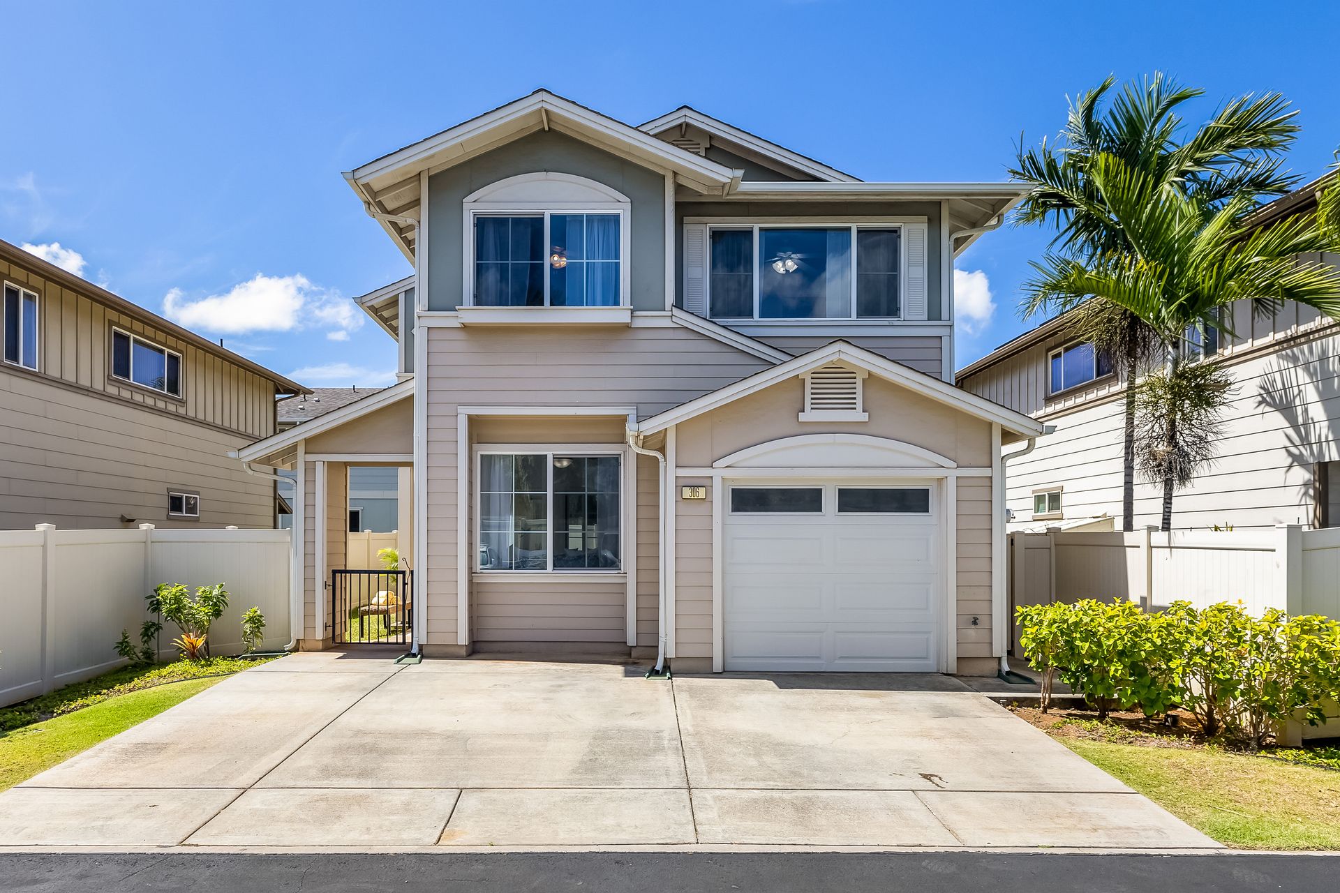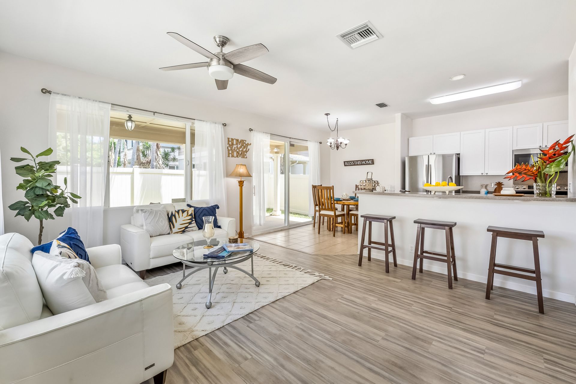 Enjoy quality time with family and friends in the large covered lanai and fenced backyard. The community pool and recreational facility are nearby for more options. Upstairs, discover a primary suite, three additional bedrooms, a guest bathroom, and extra space for an office or playroom. The primary bedroom features a large walk-in closet and dual sinks.