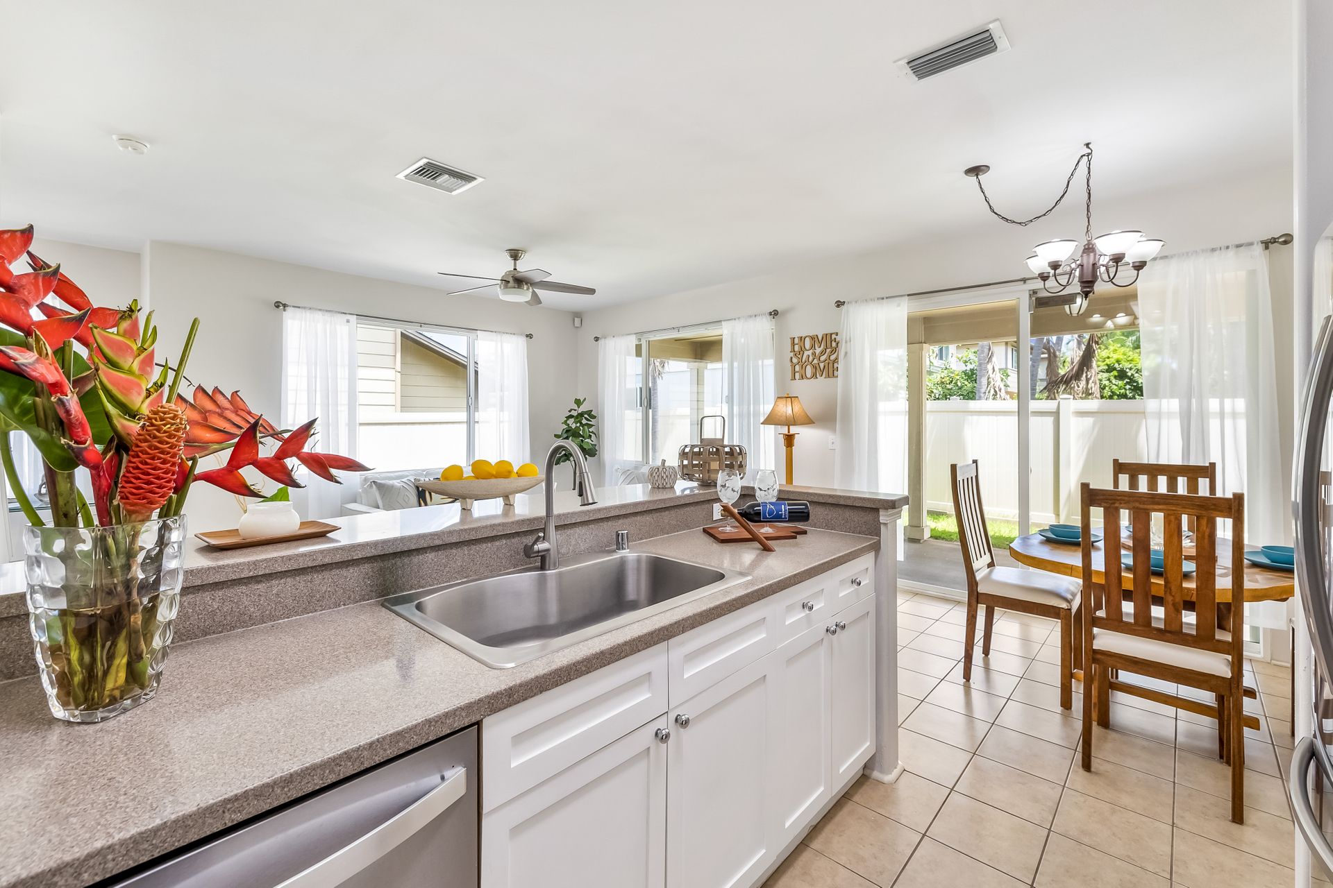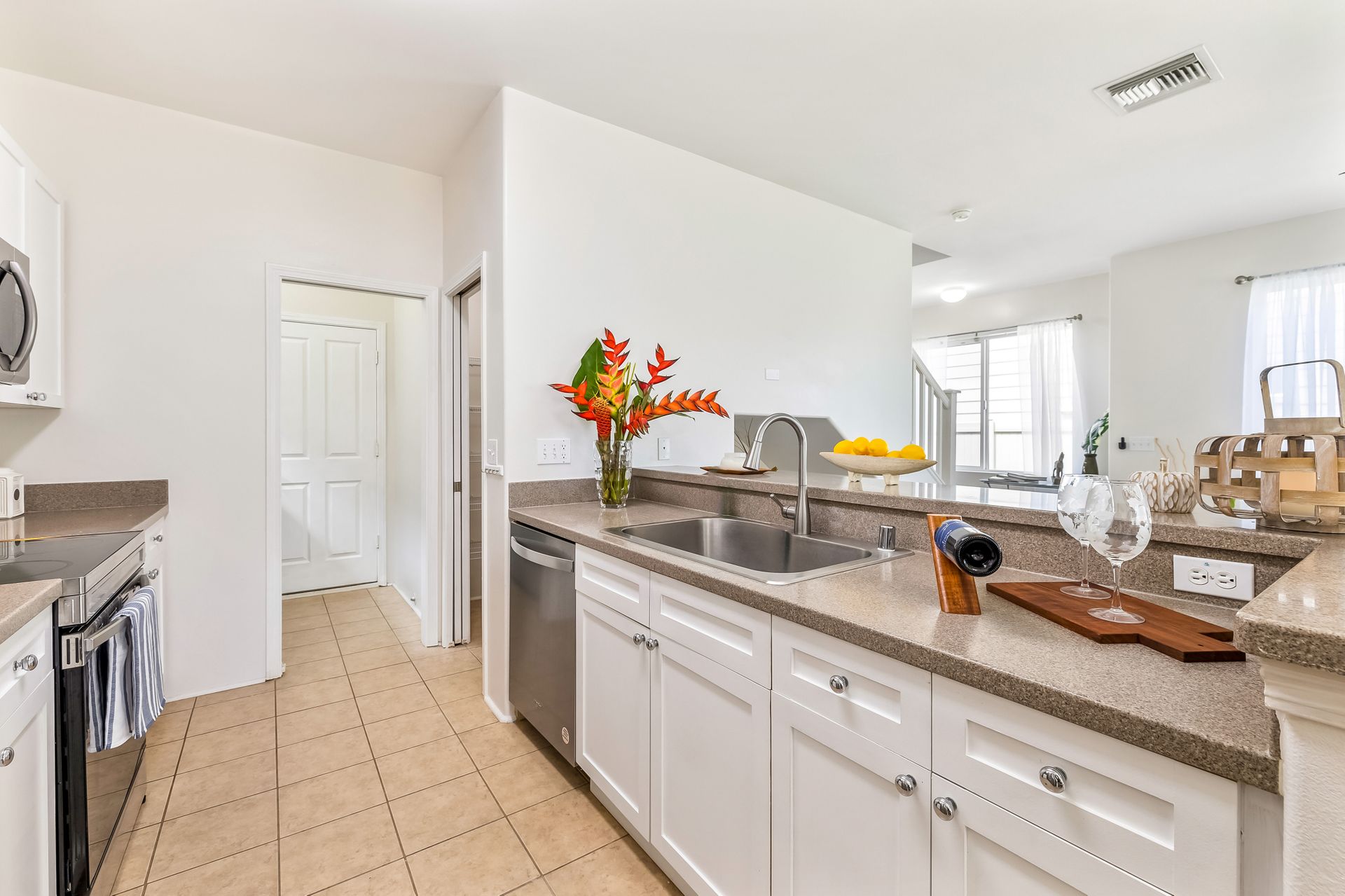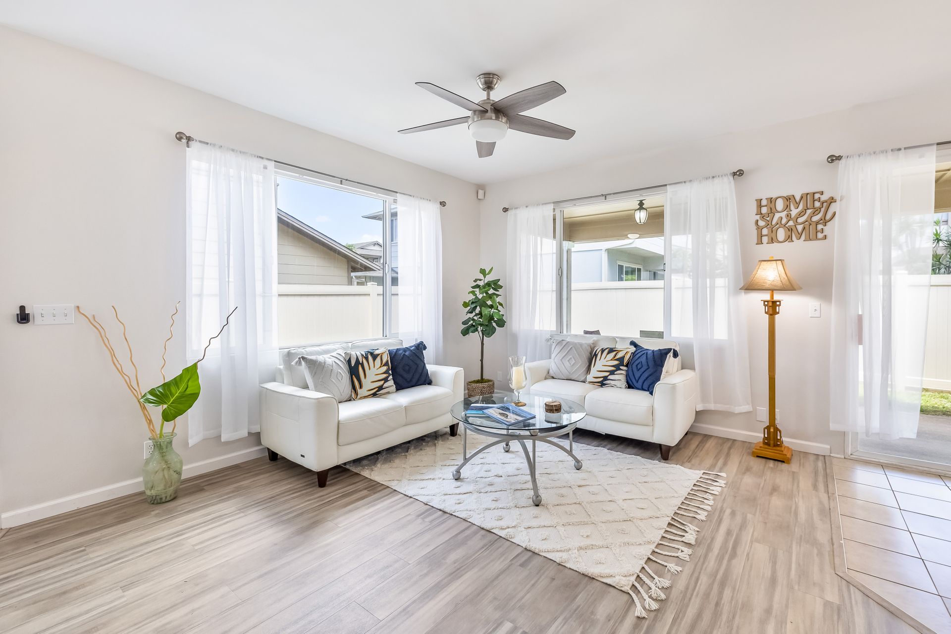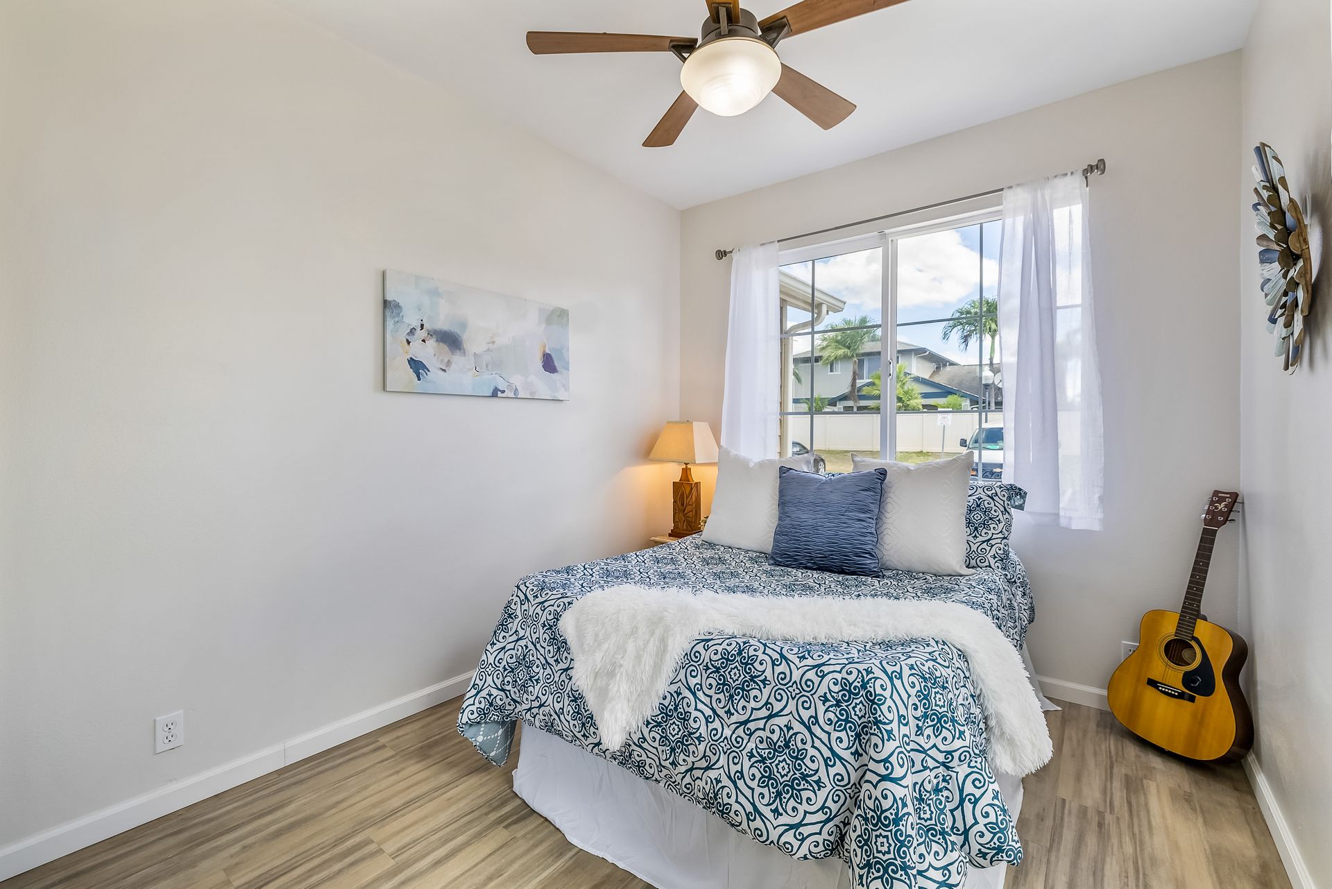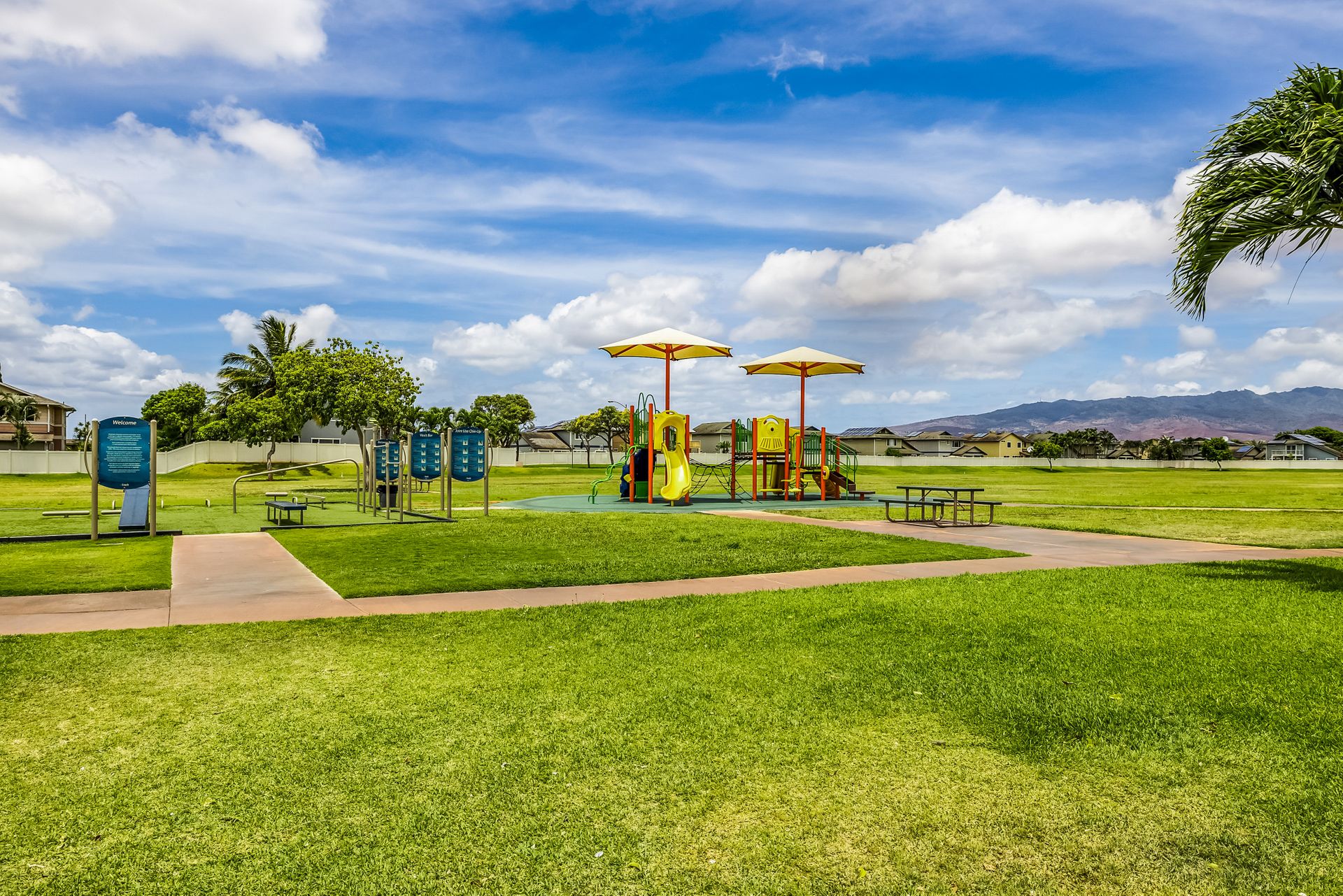 Enjoy quality time with family and friends in the large covered lanai and fenced backyard. The community pool and recreational facility are nearby for more options. Upstairs, discover a primary suite, three additional bedrooms, a guest bathroom, and extra space for an office or playroom. The primary bedroom features a large walk-in closet and dual sinks.