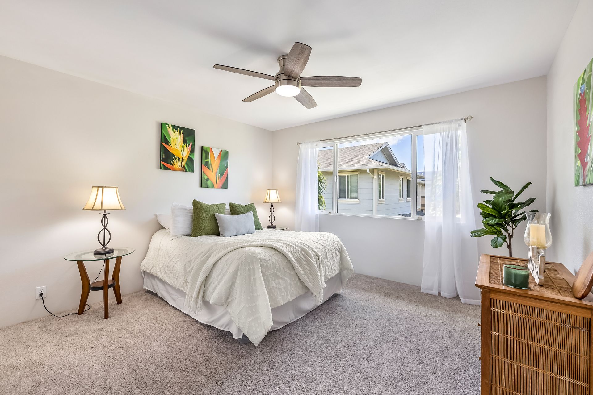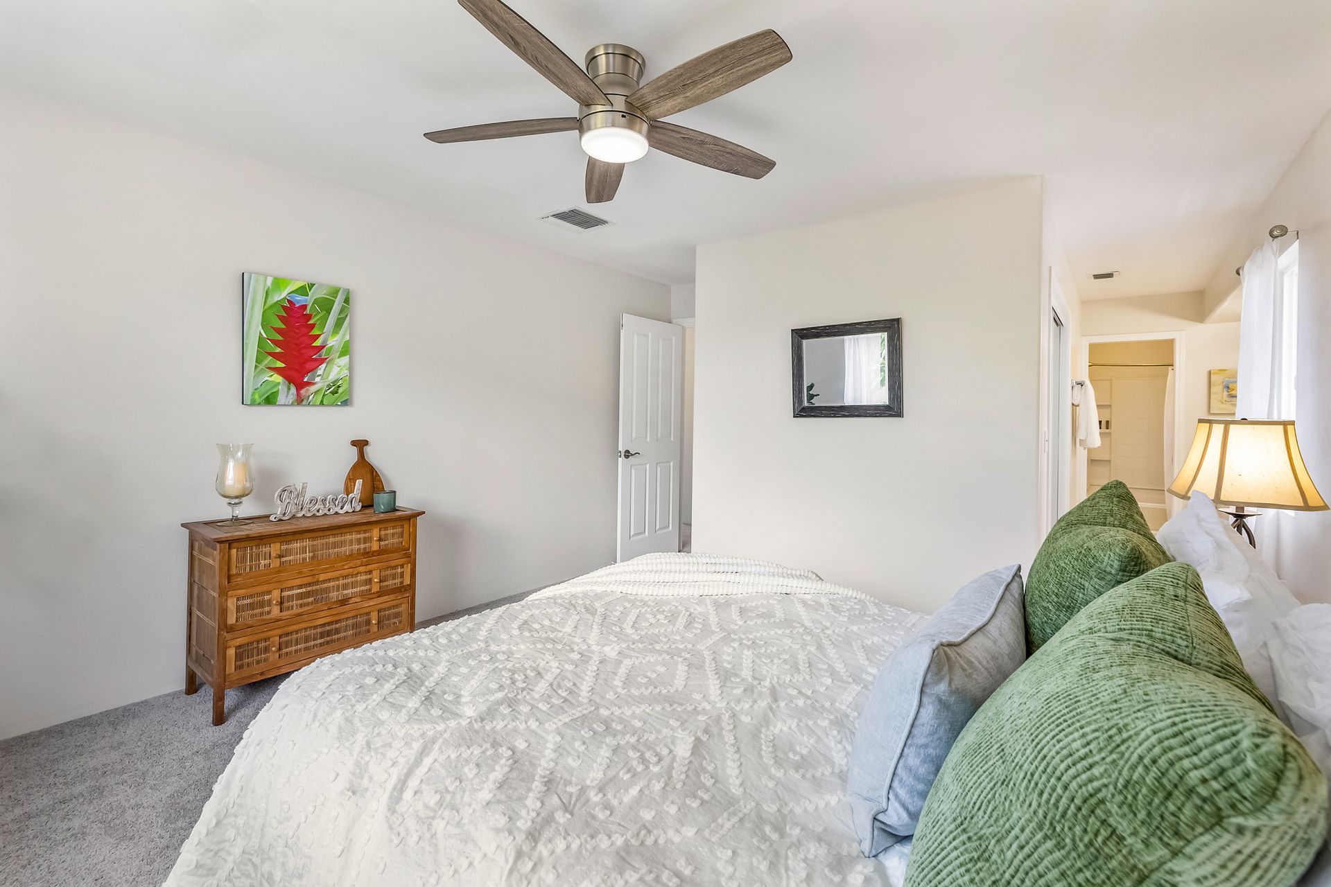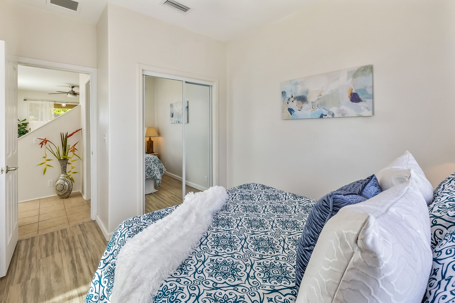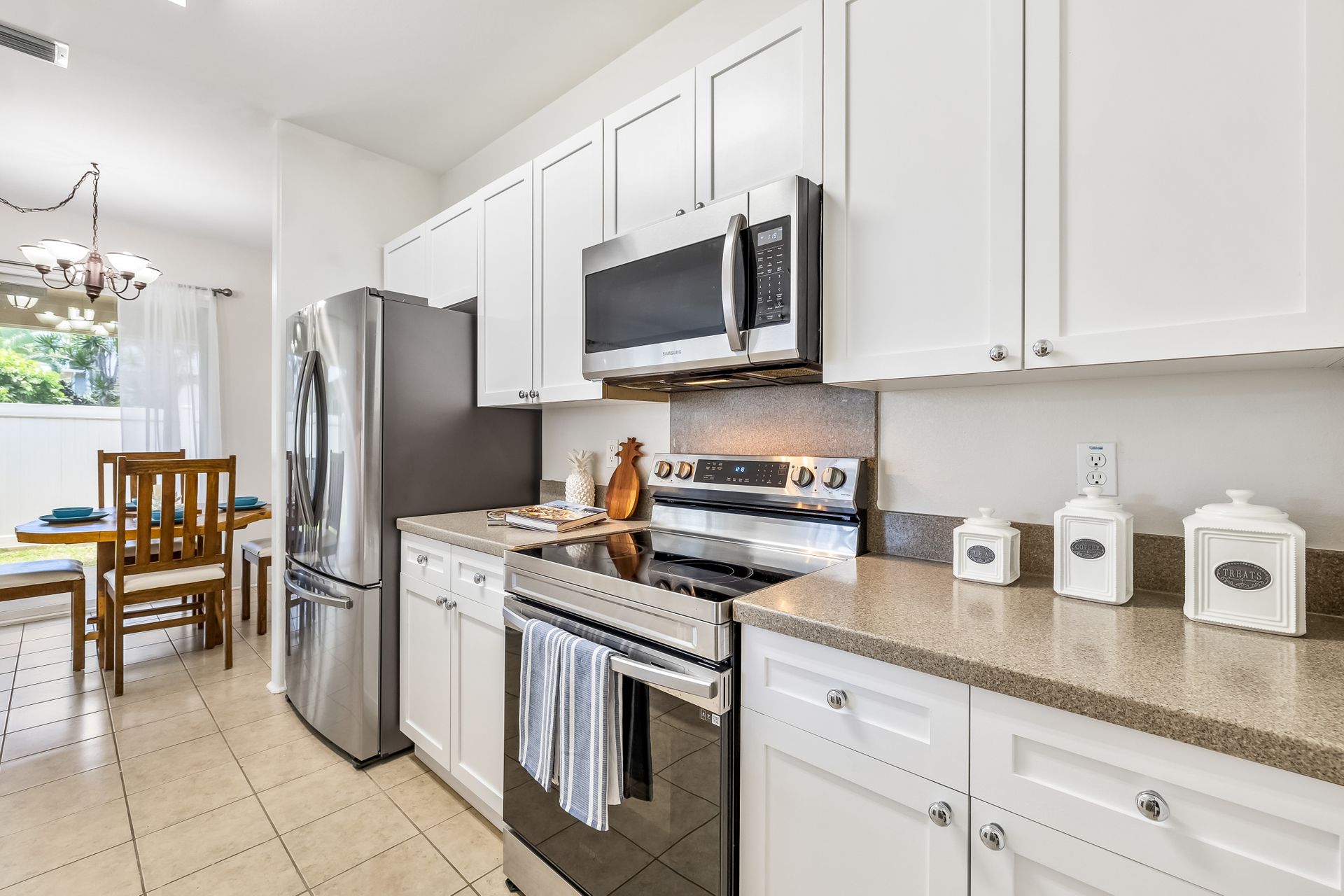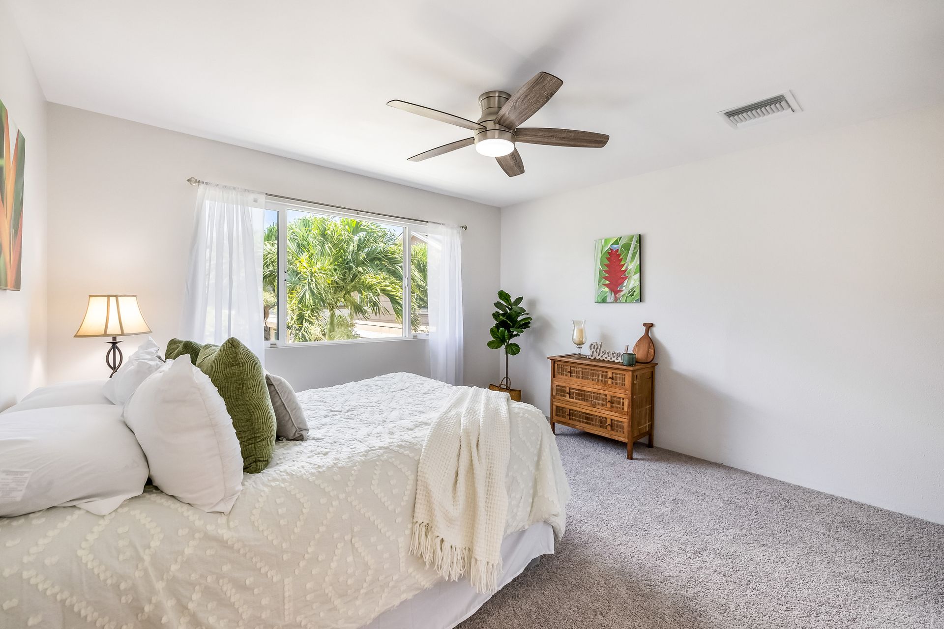 Enjoy quality time with family and friends in the large covered lanai and fenced backyard. The community pool and recreational facility are nearby for more options. Upstairs, discover a primary suite, three additional bedrooms, a guest bathroom, and extra space for an office or playroom. The primary bedroom features a large walk-in closet and dual sinks.